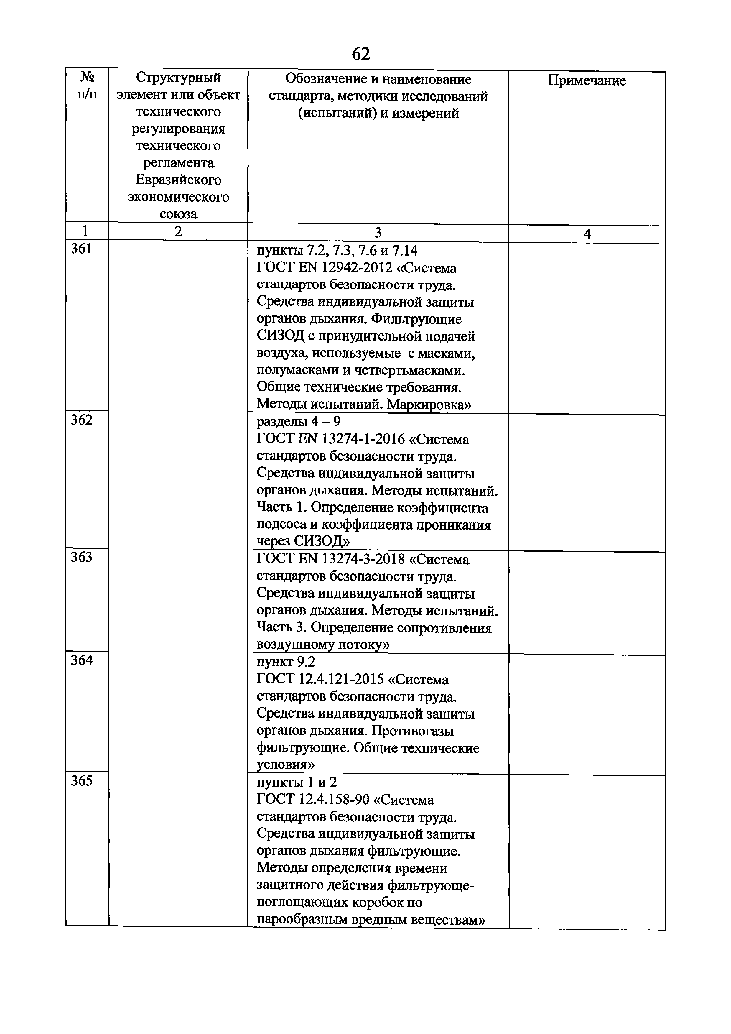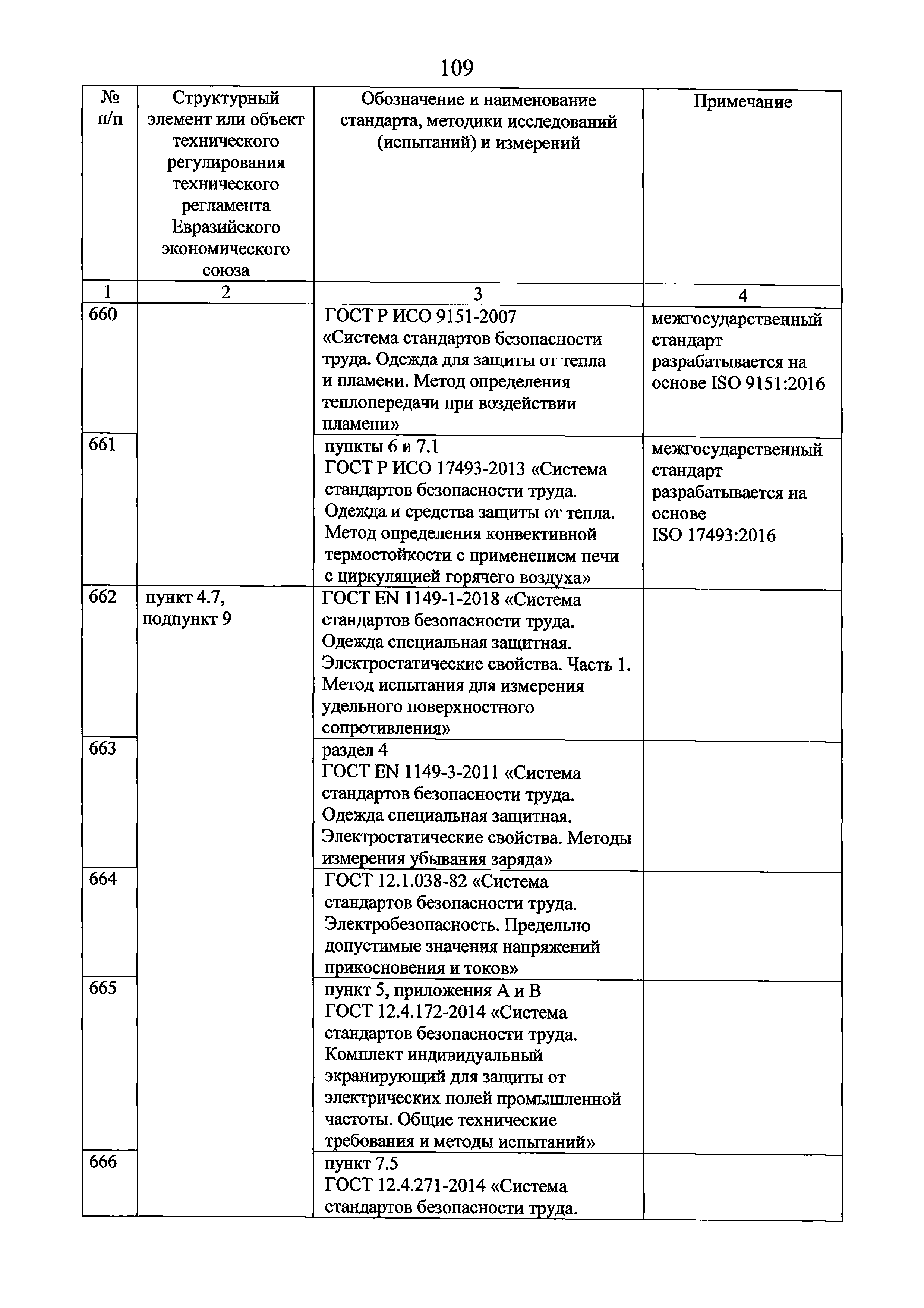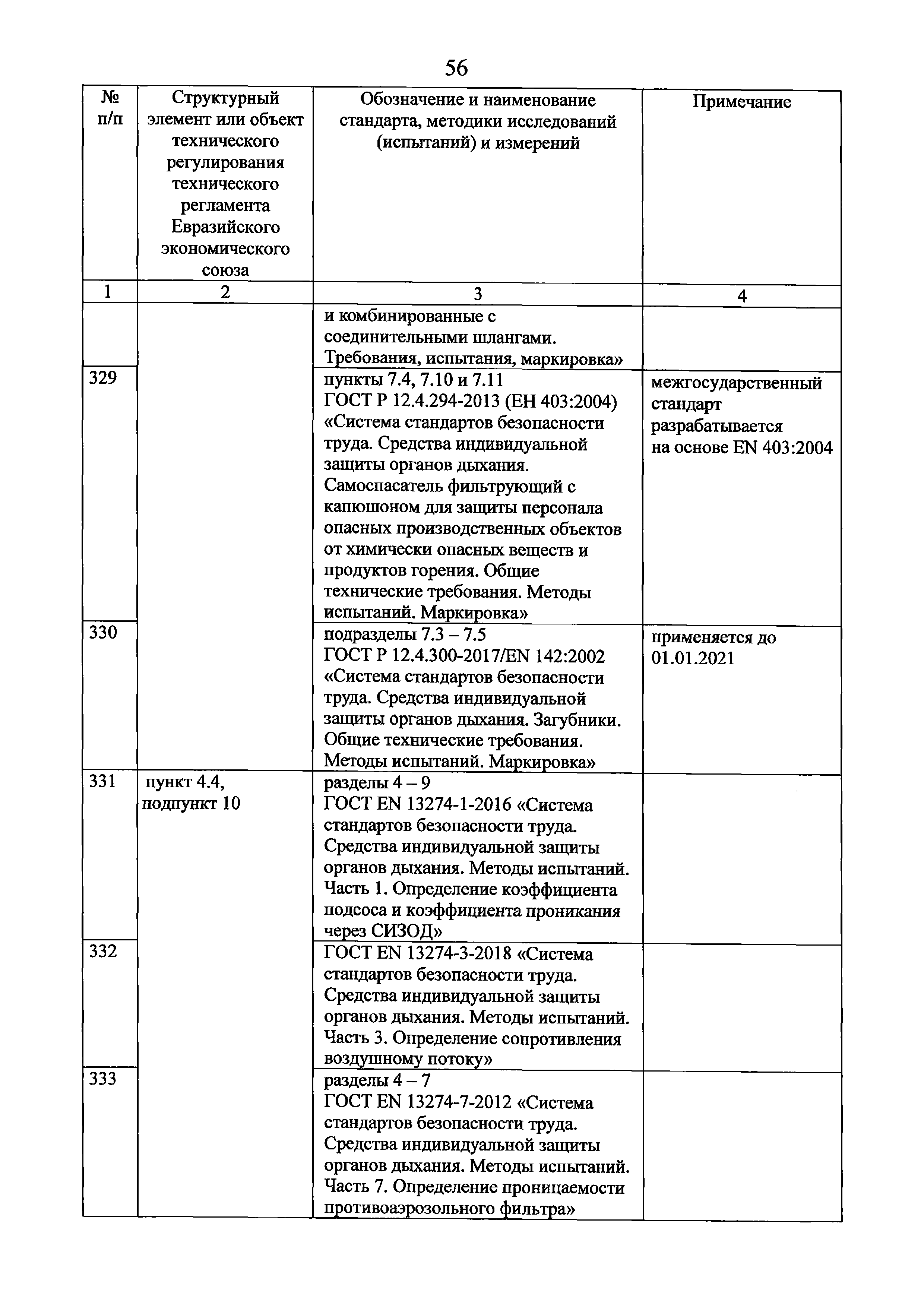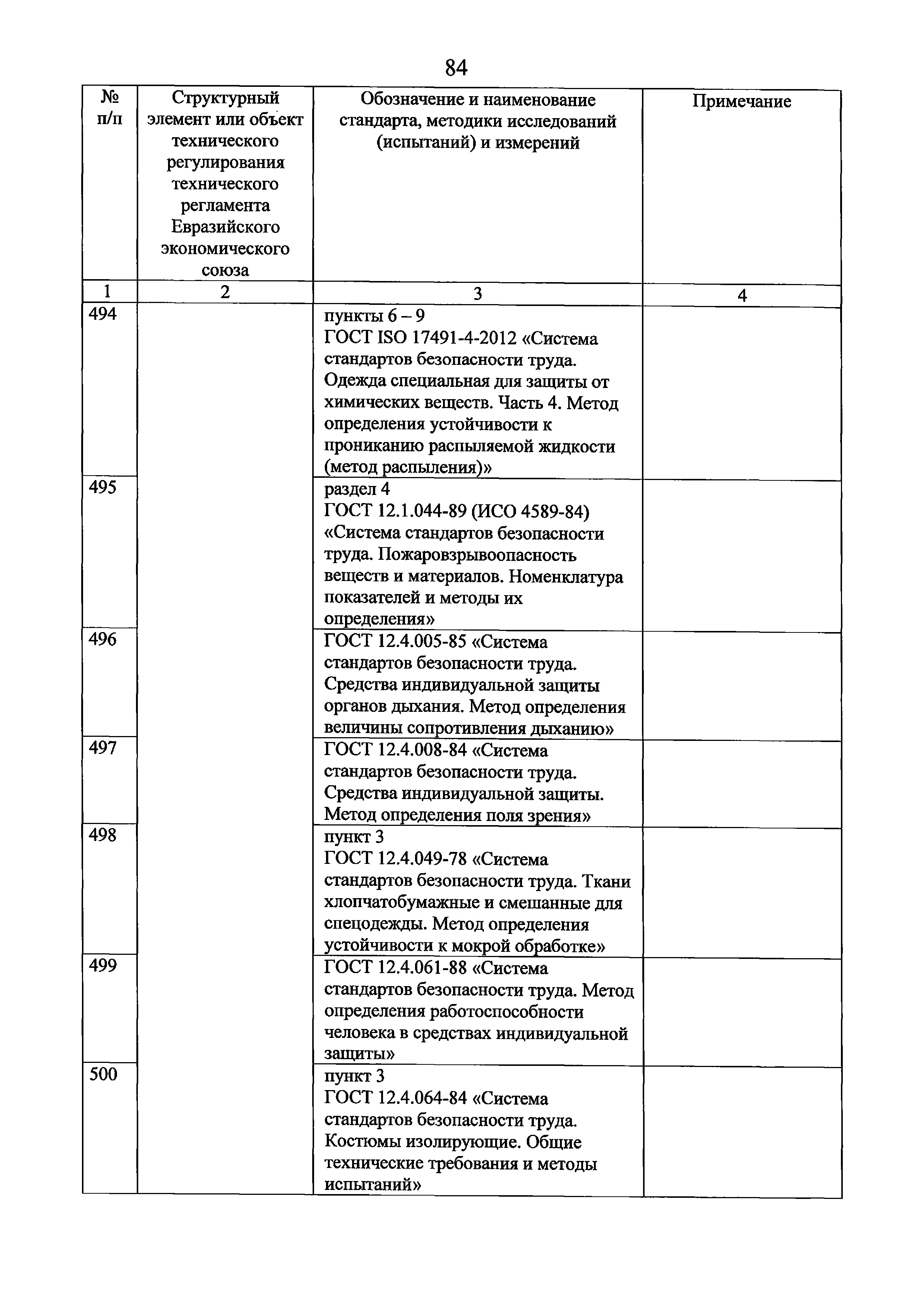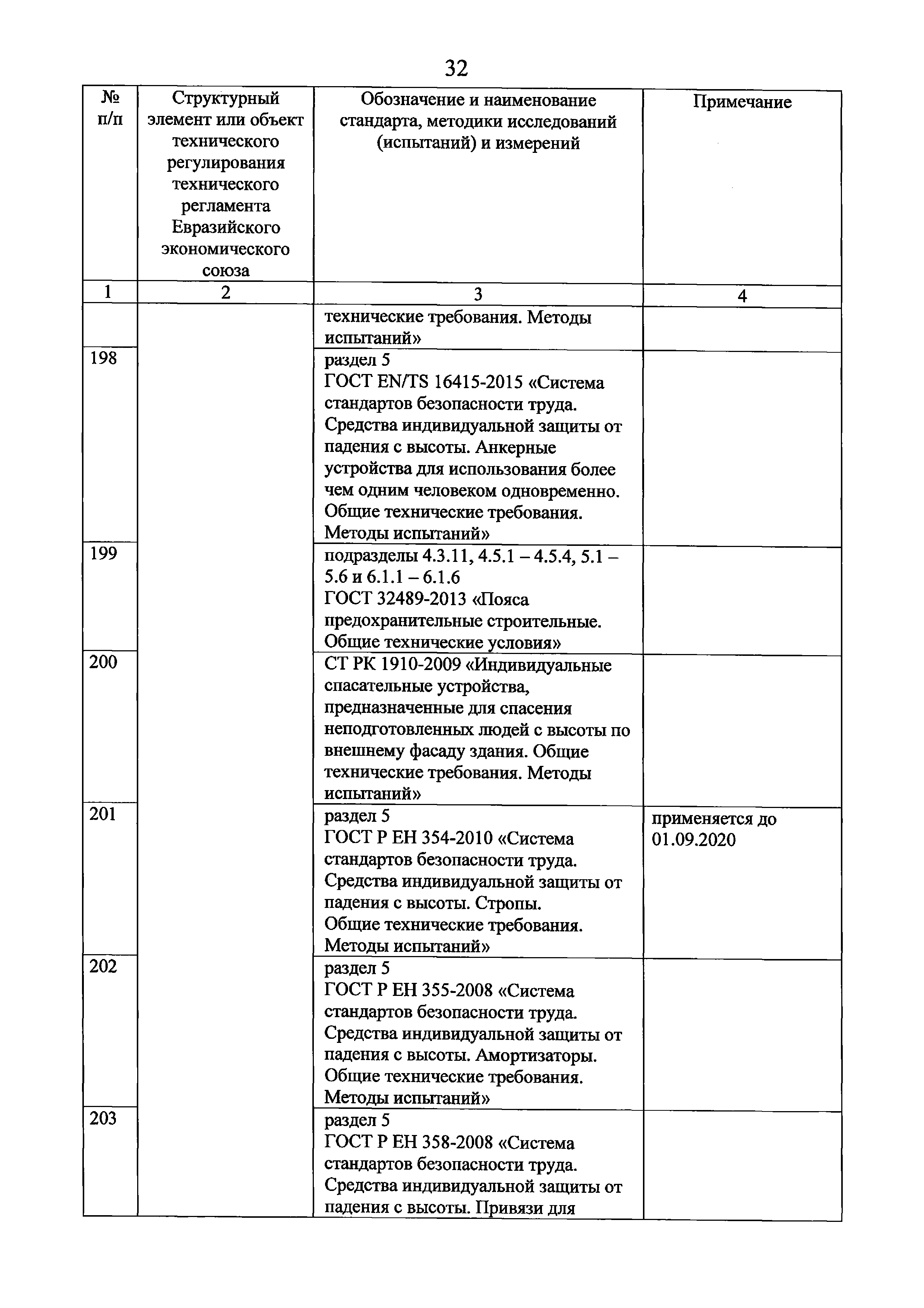 Перечень международных и региональных (межгосударственных) стандартов, а в случае их отсутствия - национальных (государственных) стандартов, содержащих правила и методы исследований (испытаний) и измерений, в том числе правила отбора образцов, необходимые для применения и исполнения требований технического регламента Таможенного союза "О безопасности средств индивидуальной защиты" (ТР ТС 019/2011) и осуществления оценки соответствия объектов технического регулирования. Редакция 3| Статус: | действует | | Название рус.: | Перечень международных и региональных (межгосударственных) стандартов, а в случае их отсутствия - национальных (государственных) стандартов, содержащих правила и методы исследований (испытаний) и измерений, в том числе правила отбора образцов, необходимые для применения и исполнения требований технического регламента Таможенного союза "О безопасности средств индивидуальной защиты" (ТР ТС 019/2011) и осуществления оценки соответствия объектов технического регулирования. Редакция 3 | | Дата добавления в базу: | 01.01.2021 | | Дата актуализации: | 01.01.2021 | | Дата введения: | 04.04.2020 | | Утверждён: | 03.03.2020 Коллегия Евразийской экономической комиссии (30)