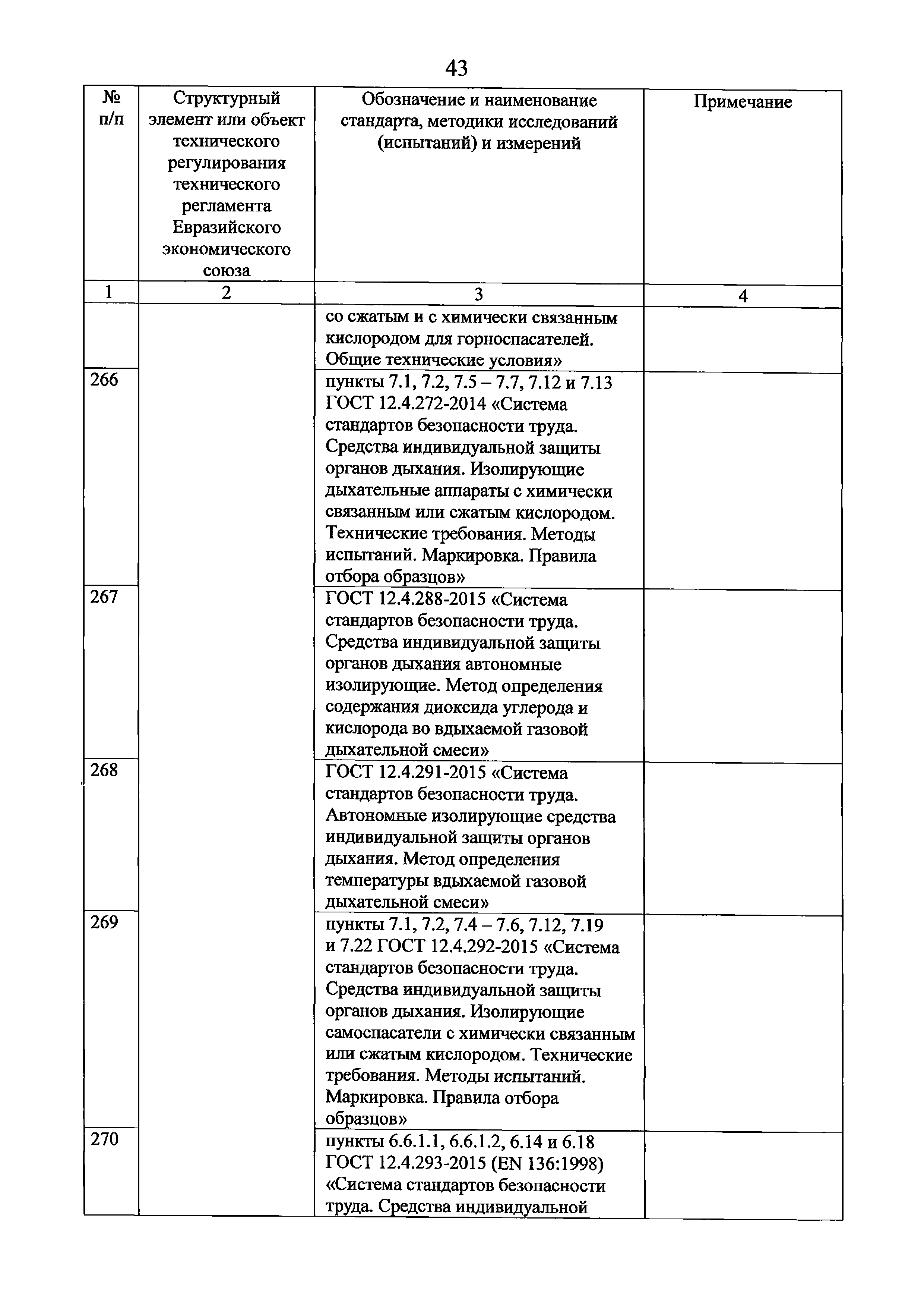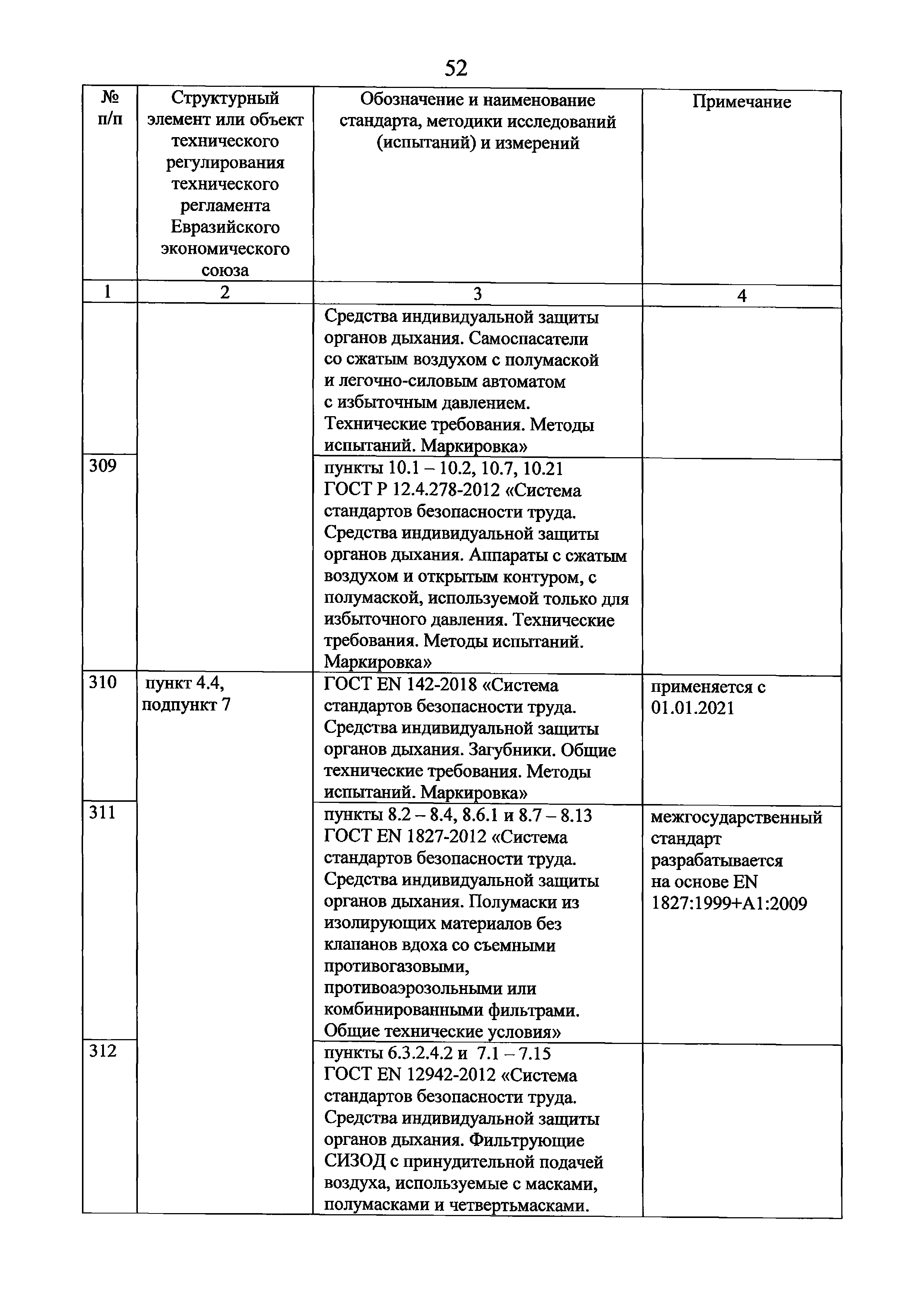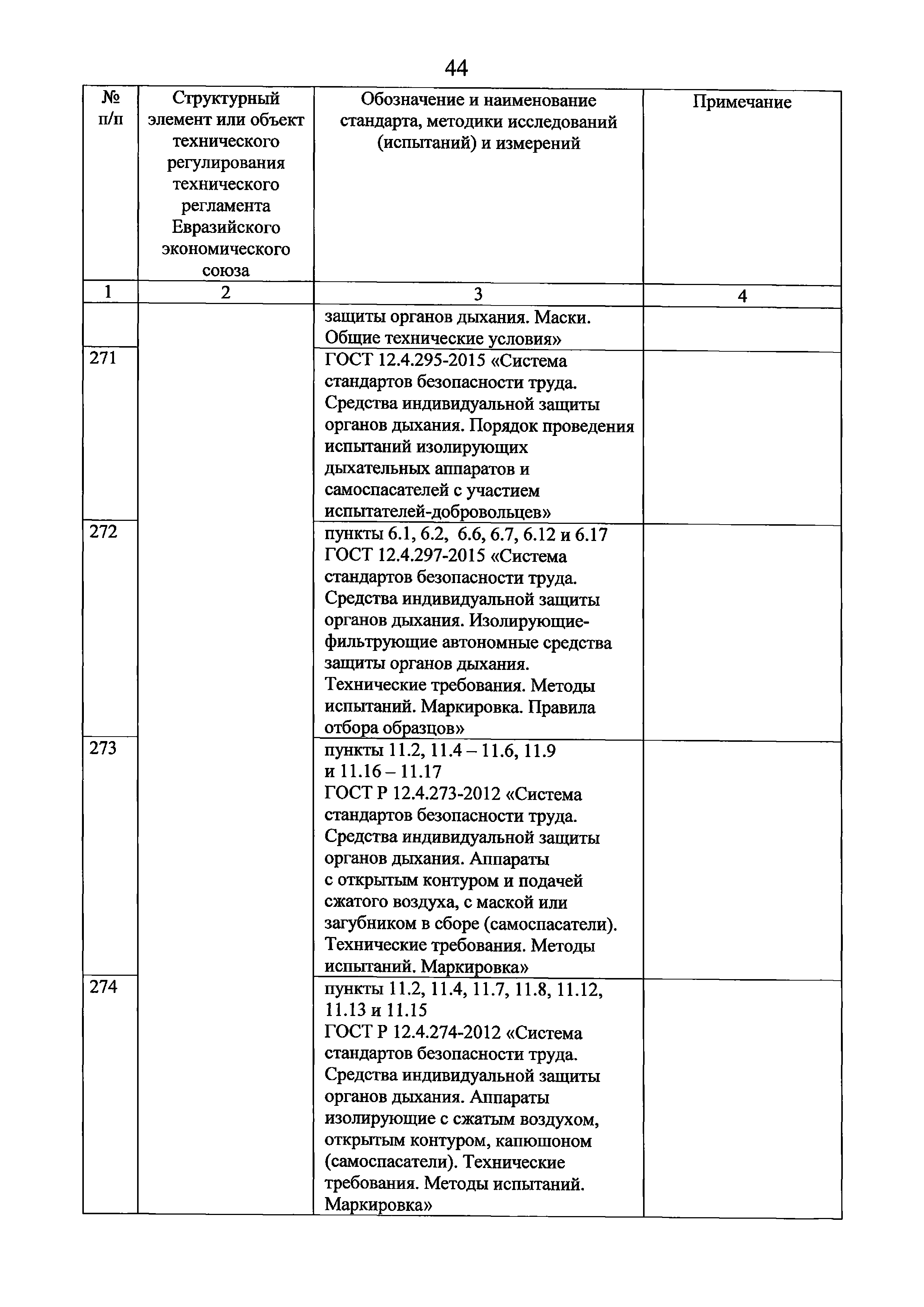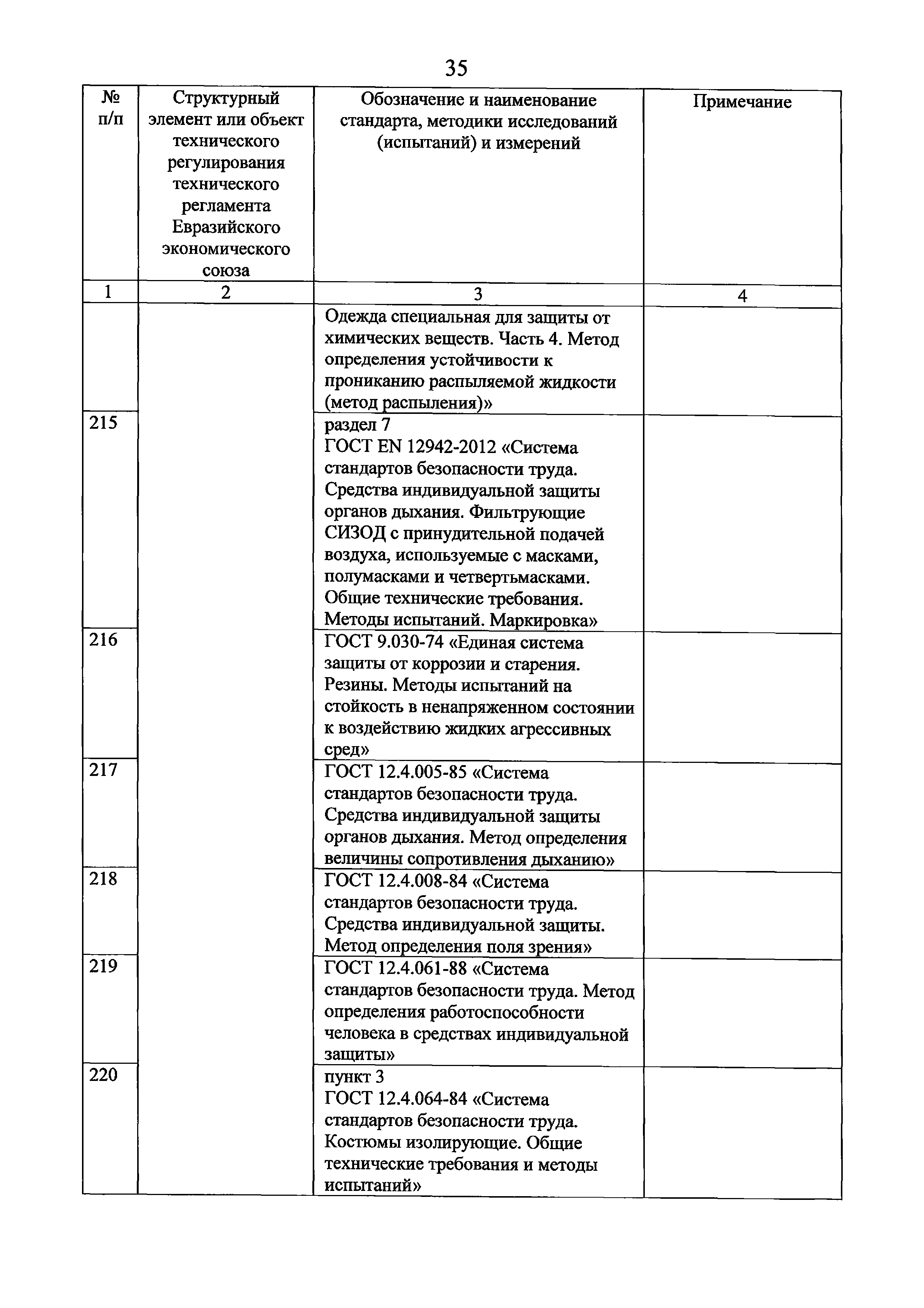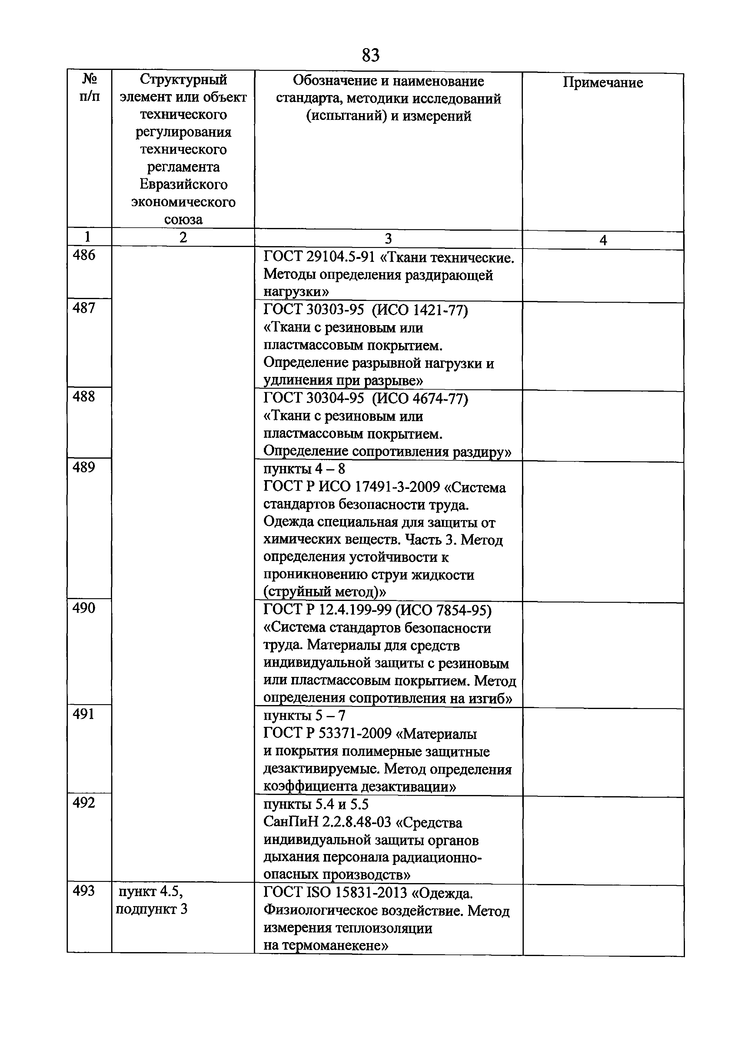 Перечень международных и региональных (межгосударственных) стандартов, а в случае их отсутствия - национальных (государственных) стандартов, содержащих правила и методы исследований (испытаний) и измерений, в том числе правила отбора образцов, необходимые для применения и исполнения требований технического регламента Таможенного союза "О безопасности средств индивидуальной защиты" (ТР ТС 019/2011) и осуществления оценки соответствия объектов технического регулирования. Редакция 3| Статус: | действует | | Название рус.: | Перечень международных и региональных (межгосударственных) стандартов, а в случае их отсутствия - национальных (государственных) стандартов, содержащих правила и методы исследований (испытаний) и измерений, в том числе правила отбора образцов, необходимые для применения и исполнения требований технического регламента Таможенного союза "О безопасности средств индивидуальной защиты" (ТР ТС 019/2011) и осуществления оценки соответствия объектов технического регулирования. Редакция 3 | | Дата добавления в базу: | 01.01.2021 | | Дата актуализации: | 01.01.2021 | | Дата введения: | 04.04.2020 | | Утверждён: | 03.03.2020 Коллегия Евразийской экономической комиссии (30)