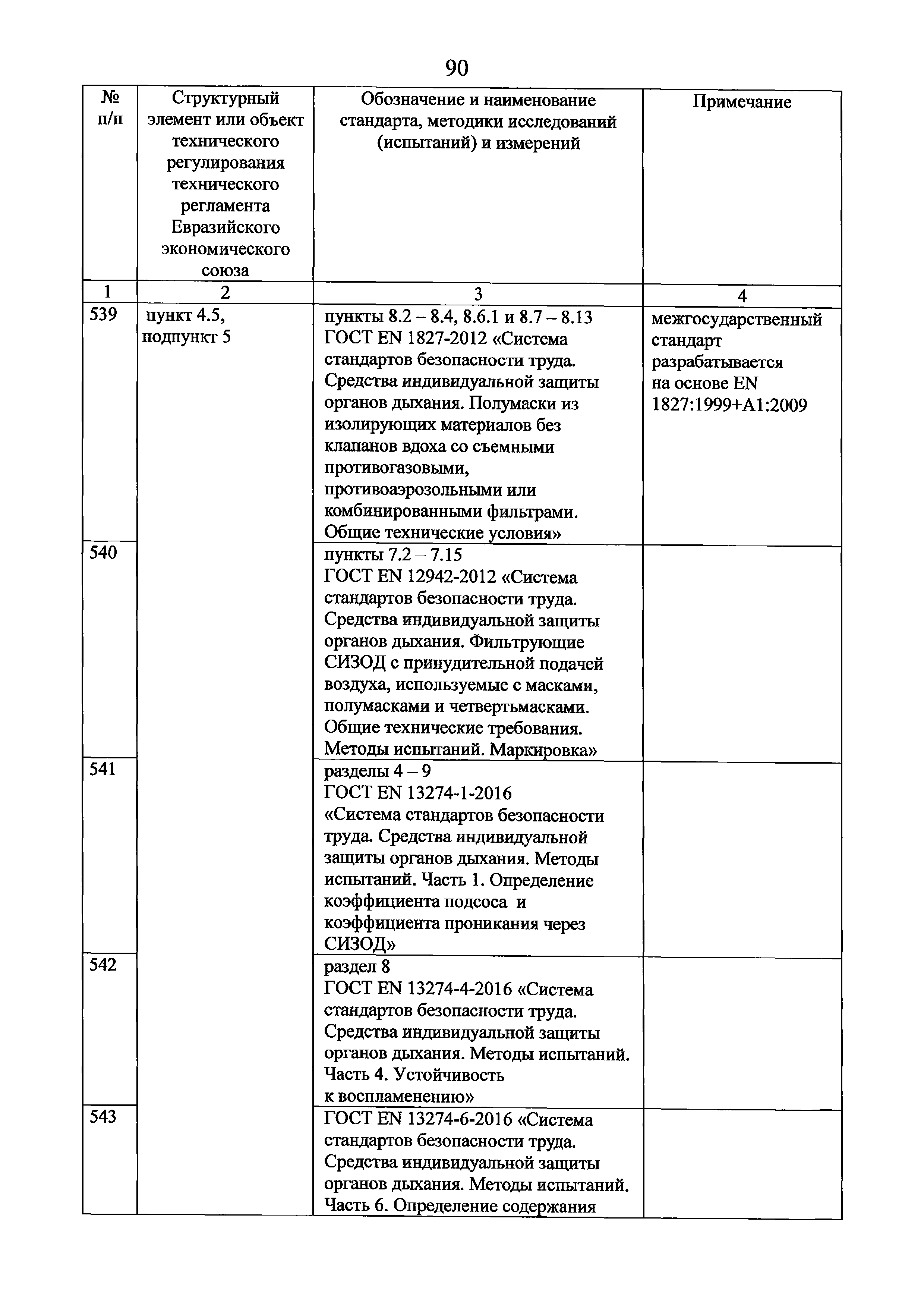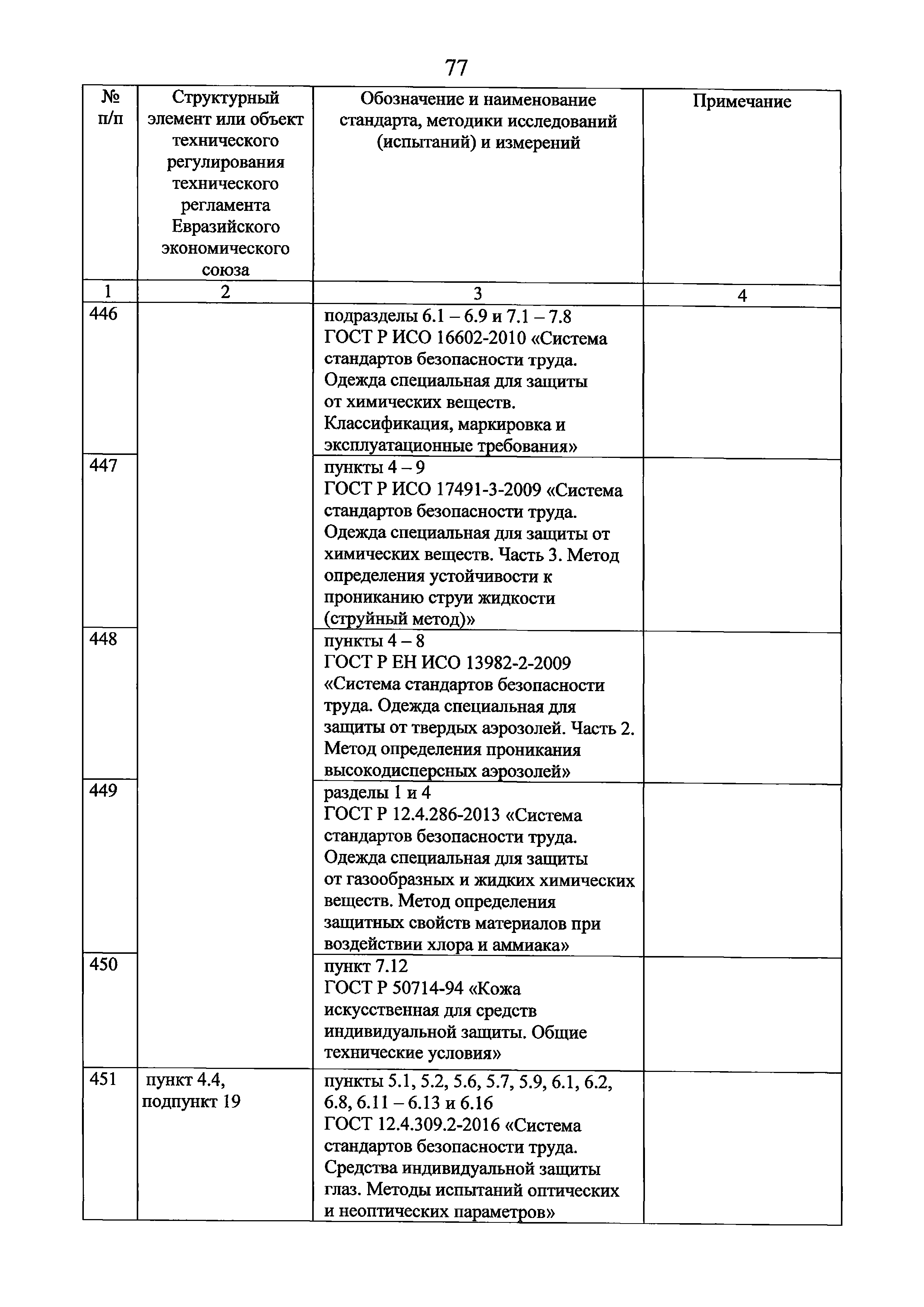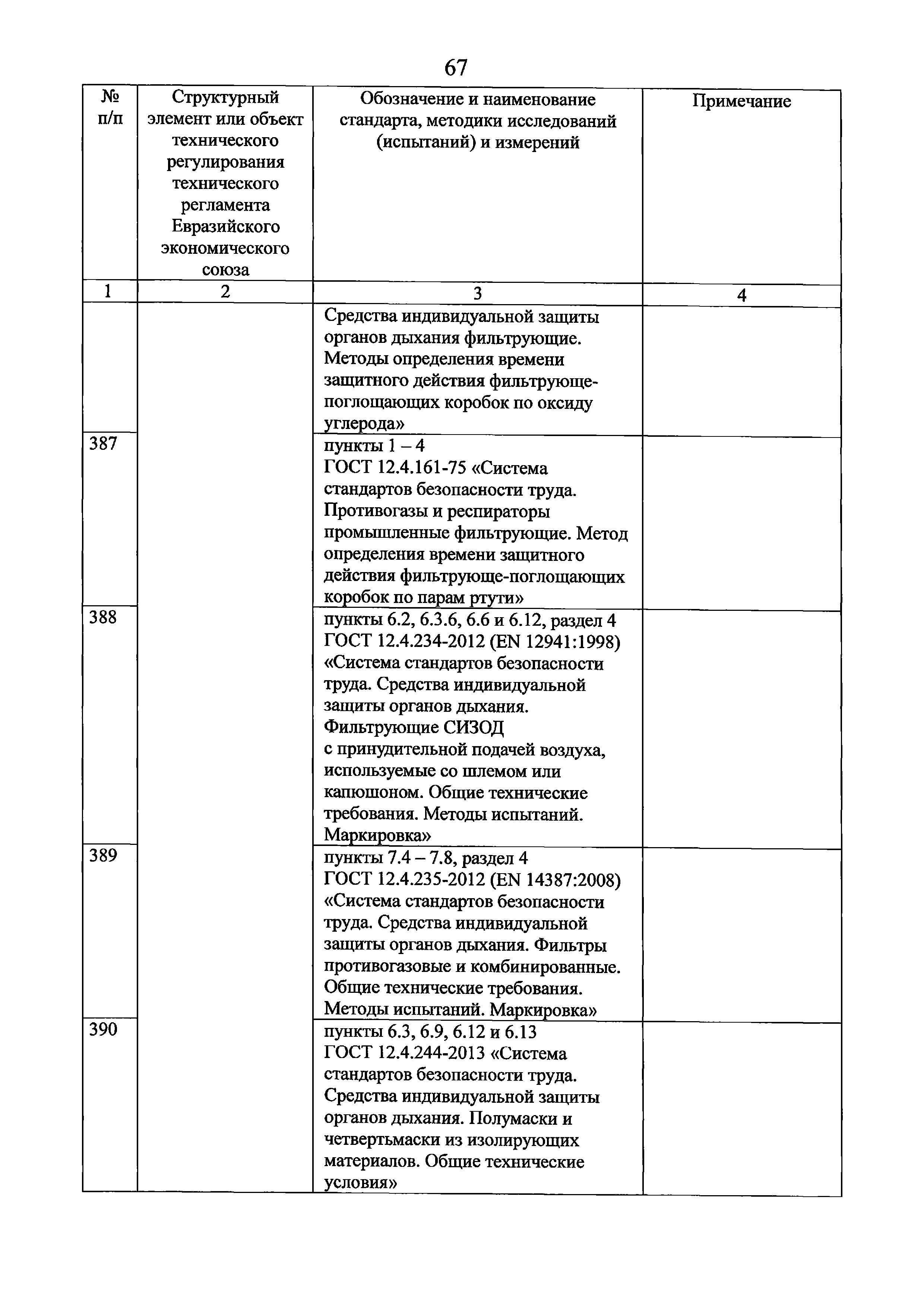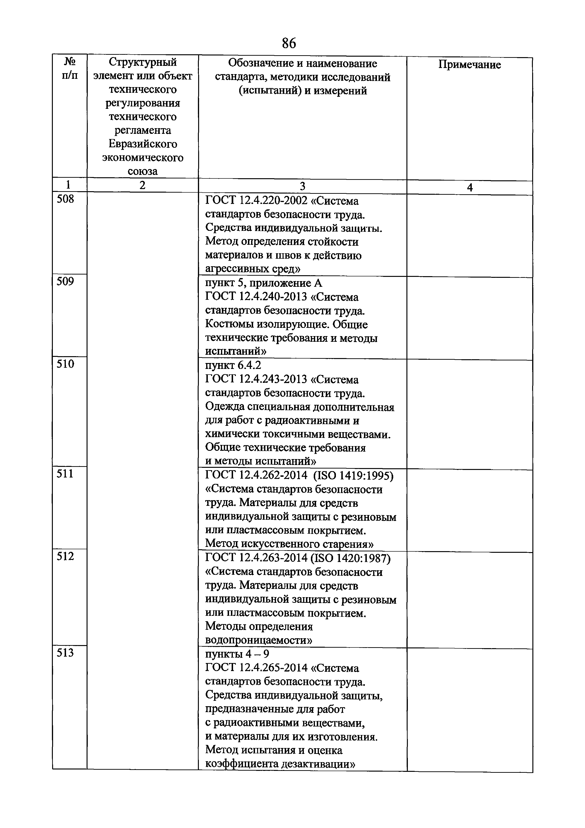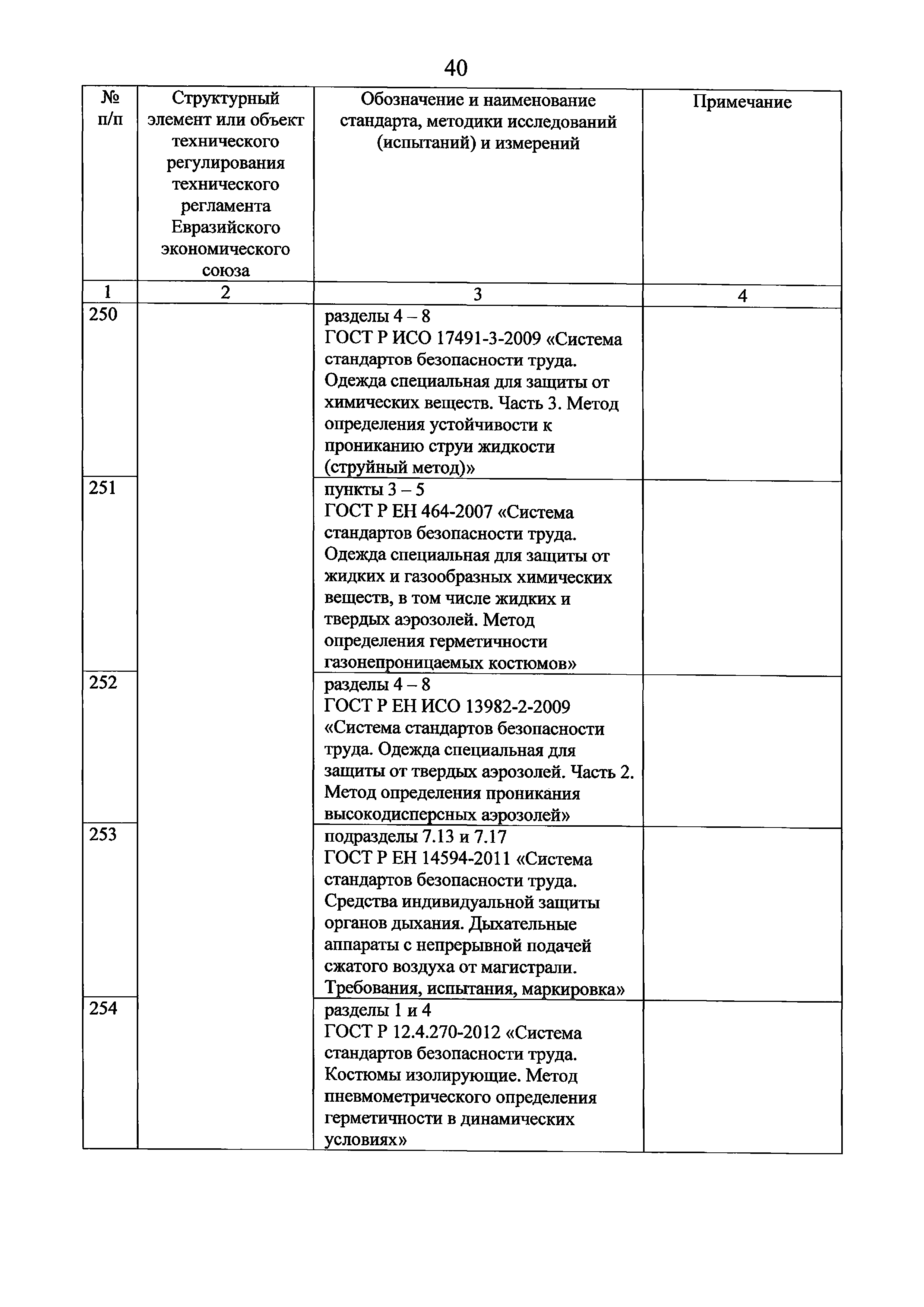 Перечень международных и региональных (межгосударственных) стандартов, а в случае их отсутствия - национальных (государственных) стандартов, содержащих правила и методы исследований (испытаний) и измерений, в том числе правила отбора образцов, необходимые для применения и исполнения требований технического регламента Таможенного союза "О безопасности средств индивидуальной защиты" (ТР ТС 019/2011) и осуществления оценки соответствия объектов технического регулирования. Редакция 3| Статус: | действует | | Название рус.: | Перечень международных и региональных (межгосударственных) стандартов, а в случае их отсутствия - национальных (государственных) стандартов, содержащих правила и методы исследований (испытаний) и измерений, в том числе правила отбора образцов, необходимые для применения и исполнения требований технического регламента Таможенного союза "О безопасности средств индивидуальной защиты" (ТР ТС 019/2011) и осуществления оценки соответствия объектов технического регулирования. Редакция 3 | | Дата добавления в базу: | 01.01.2021 | | Дата актуализации: | 01.01.2021 | | Дата введения: | 04.04.2020 | | Утверждён: | 03.03.2020 Коллегия Евразийской экономической комиссии (30)