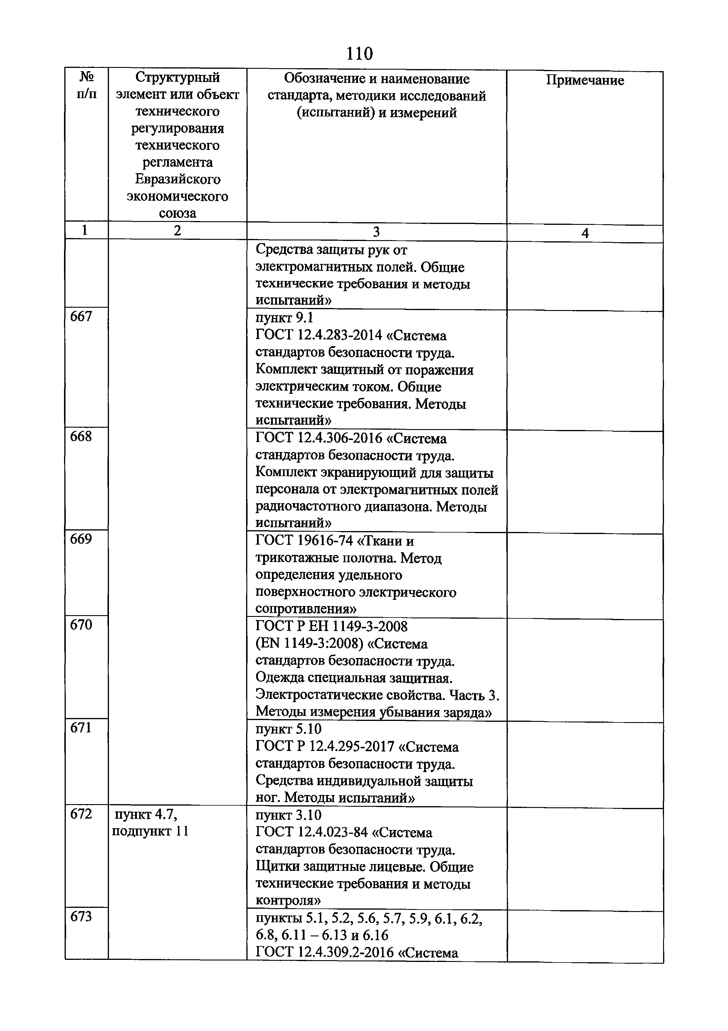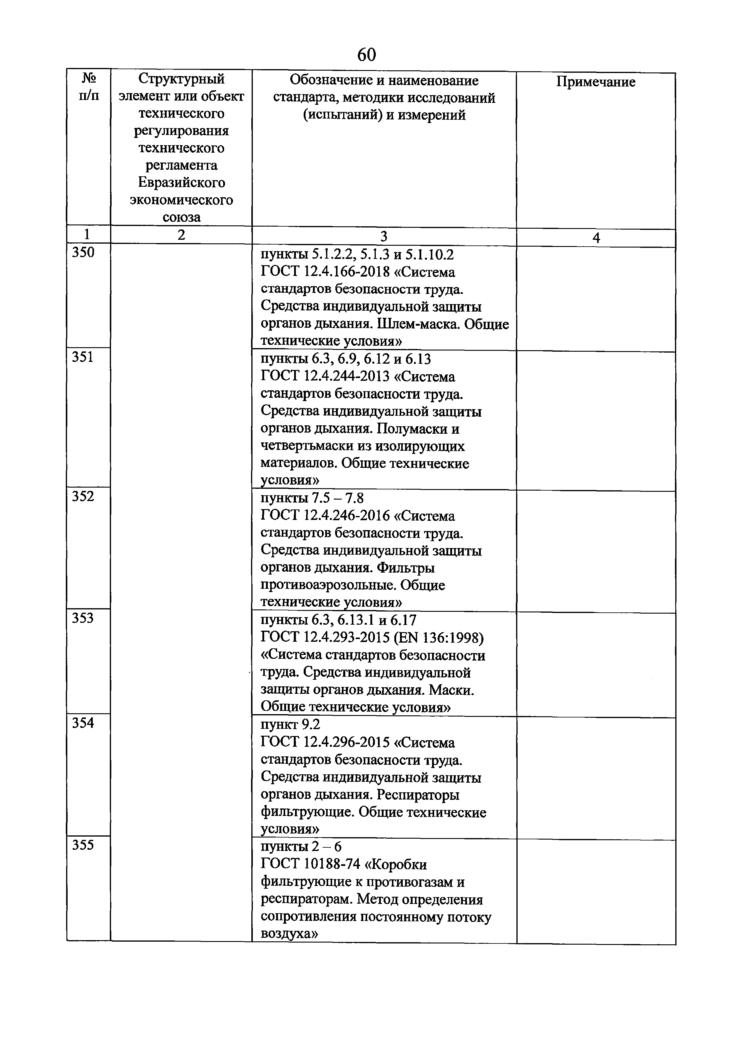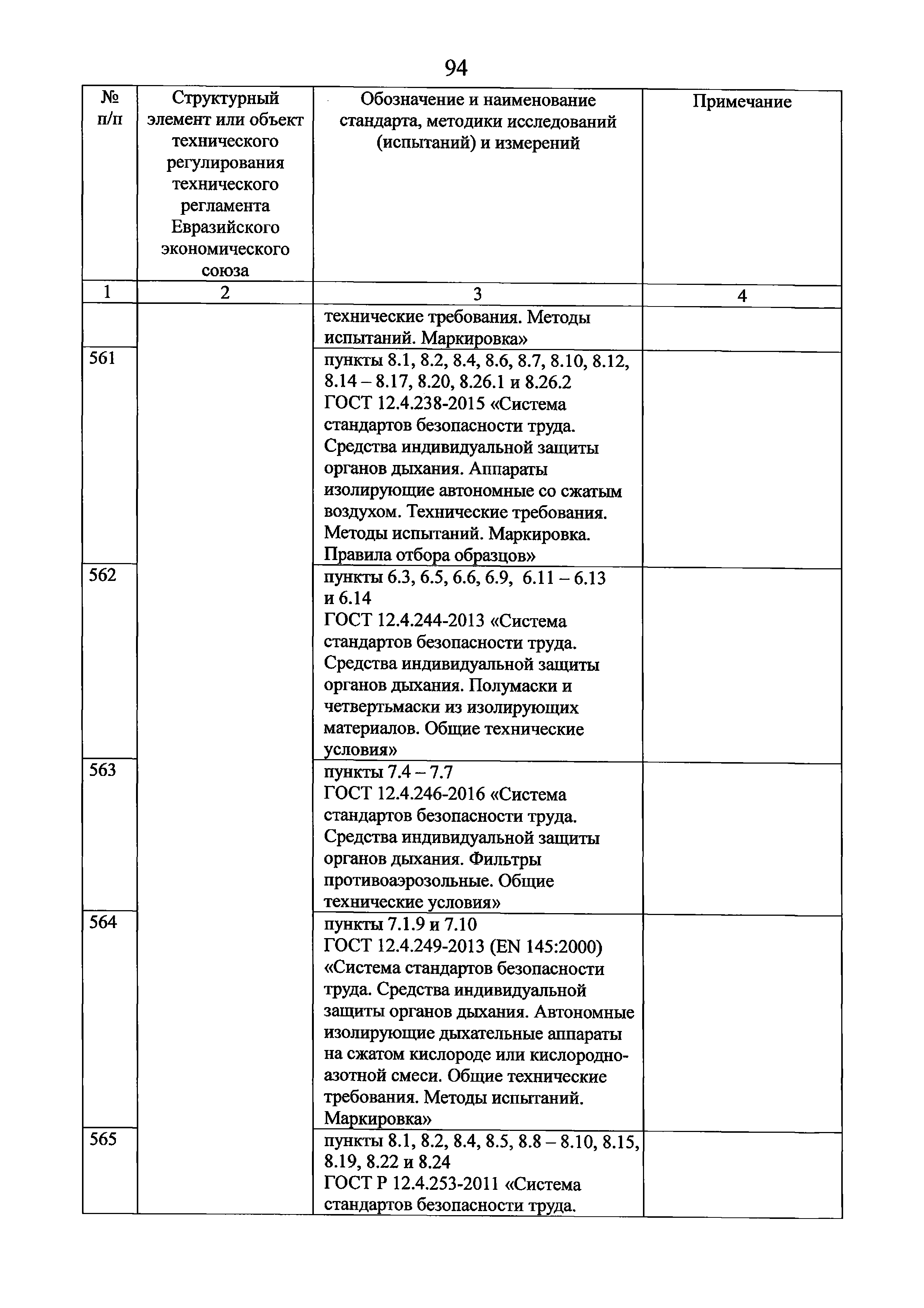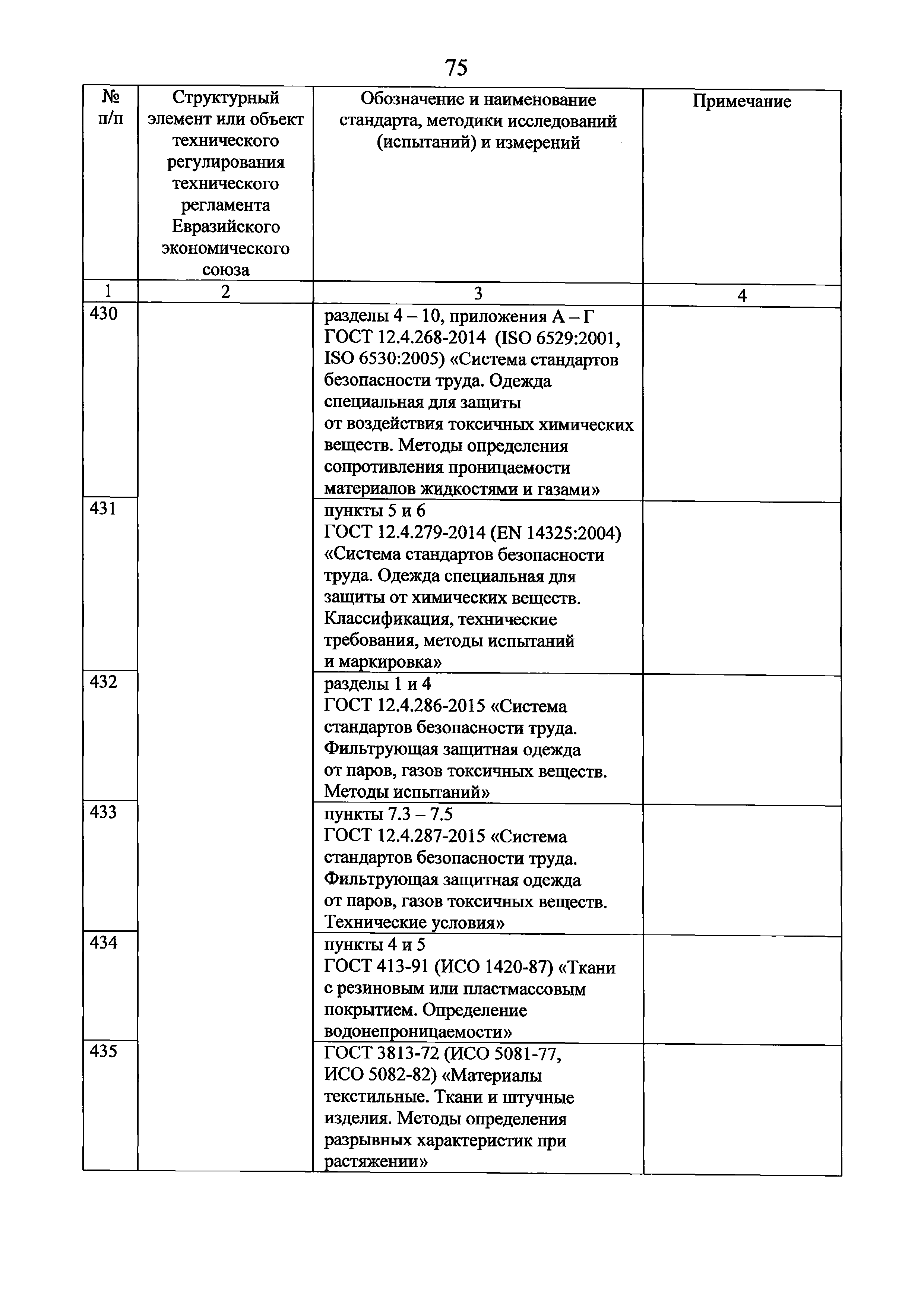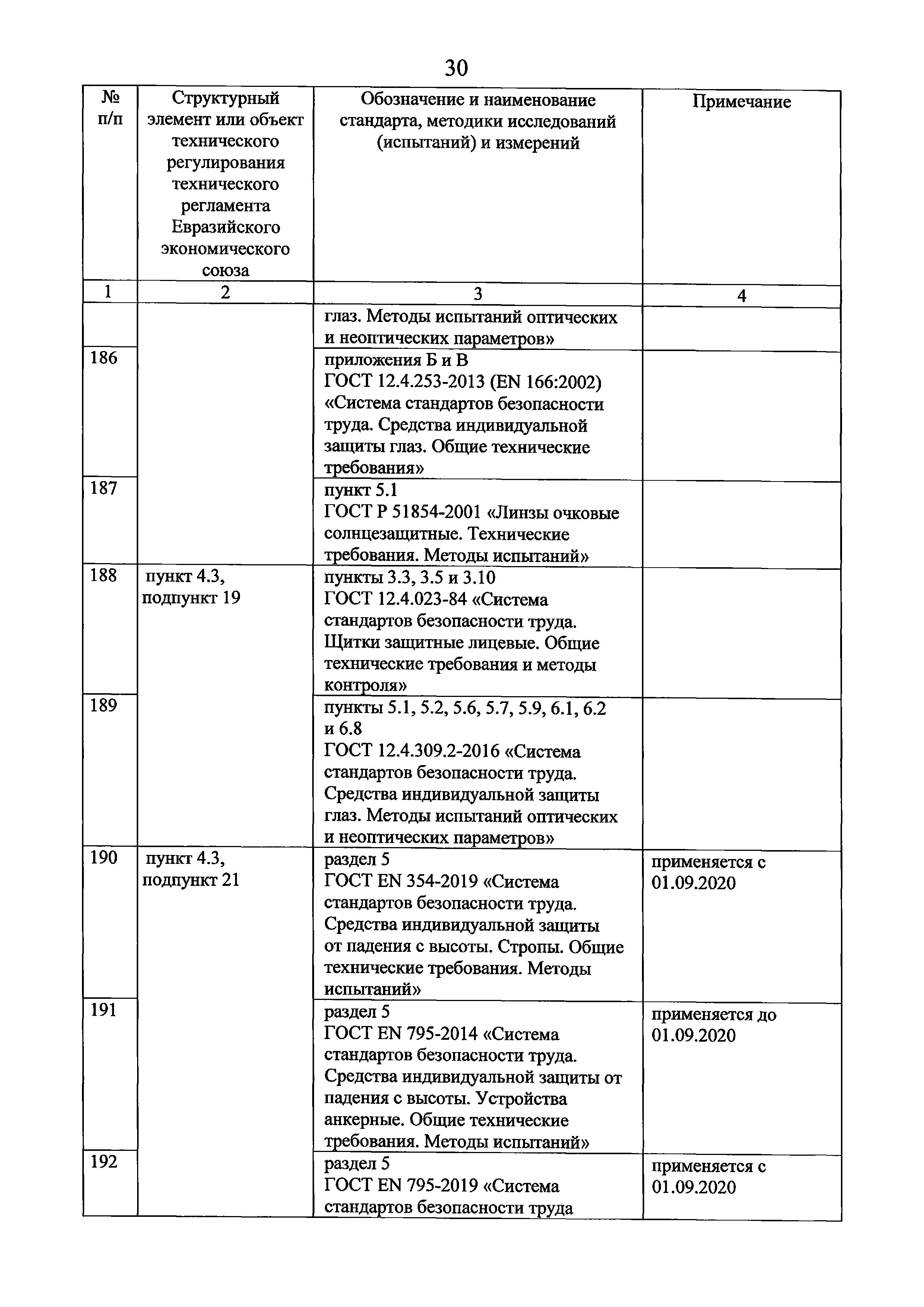 Перечень международных и региональных (межгосударственных) стандартов, а в случае их отсутствия - национальных (государственных) стандартов, содержащих правила и методы исследований (испытаний) и измерений, в том числе правила отбора образцов, необходимые для применения и исполнения требований технического регламента Таможенного союза "О безопасности средств индивидуальной защиты" (ТР ТС 019/2011) и осуществления оценки соответствия объектов технического регулирования. Редакция 3| Статус: | действует | | Название рус.: | Перечень международных и региональных (межгосударственных) стандартов, а в случае их отсутствия - национальных (государственных) стандартов, содержащих правила и методы исследований (испытаний) и измерений, в том числе правила отбора образцов, необходимые для применения и исполнения требований технического регламента Таможенного союза "О безопасности средств индивидуальной защиты" (ТР ТС 019/2011) и осуществления оценки соответствия объектов технического регулирования. Редакция 3 | | Дата добавления в базу: | 01.01.2021 | | Дата актуализации: | 01.01.2021 | | Дата введения: | 04.04.2020 | | Утверждён: | 03.03.2020 Коллегия Евразийской экономической комиссии (30)