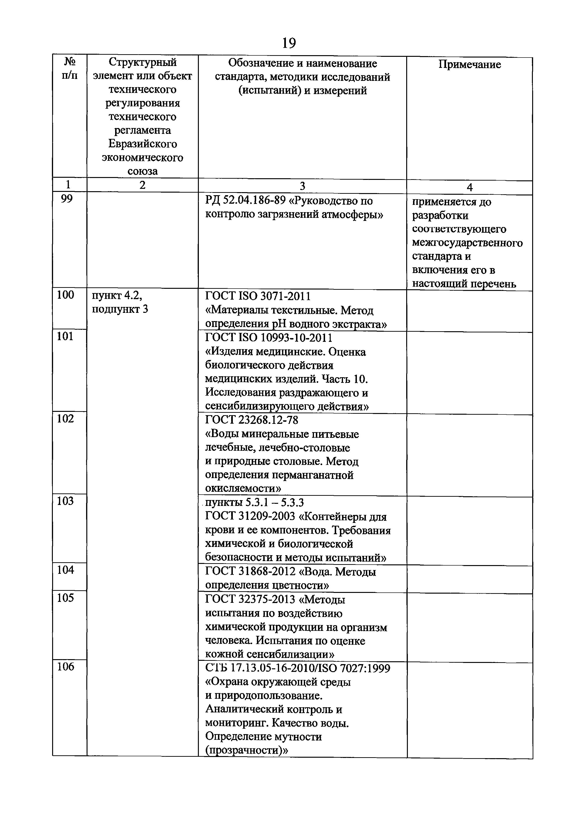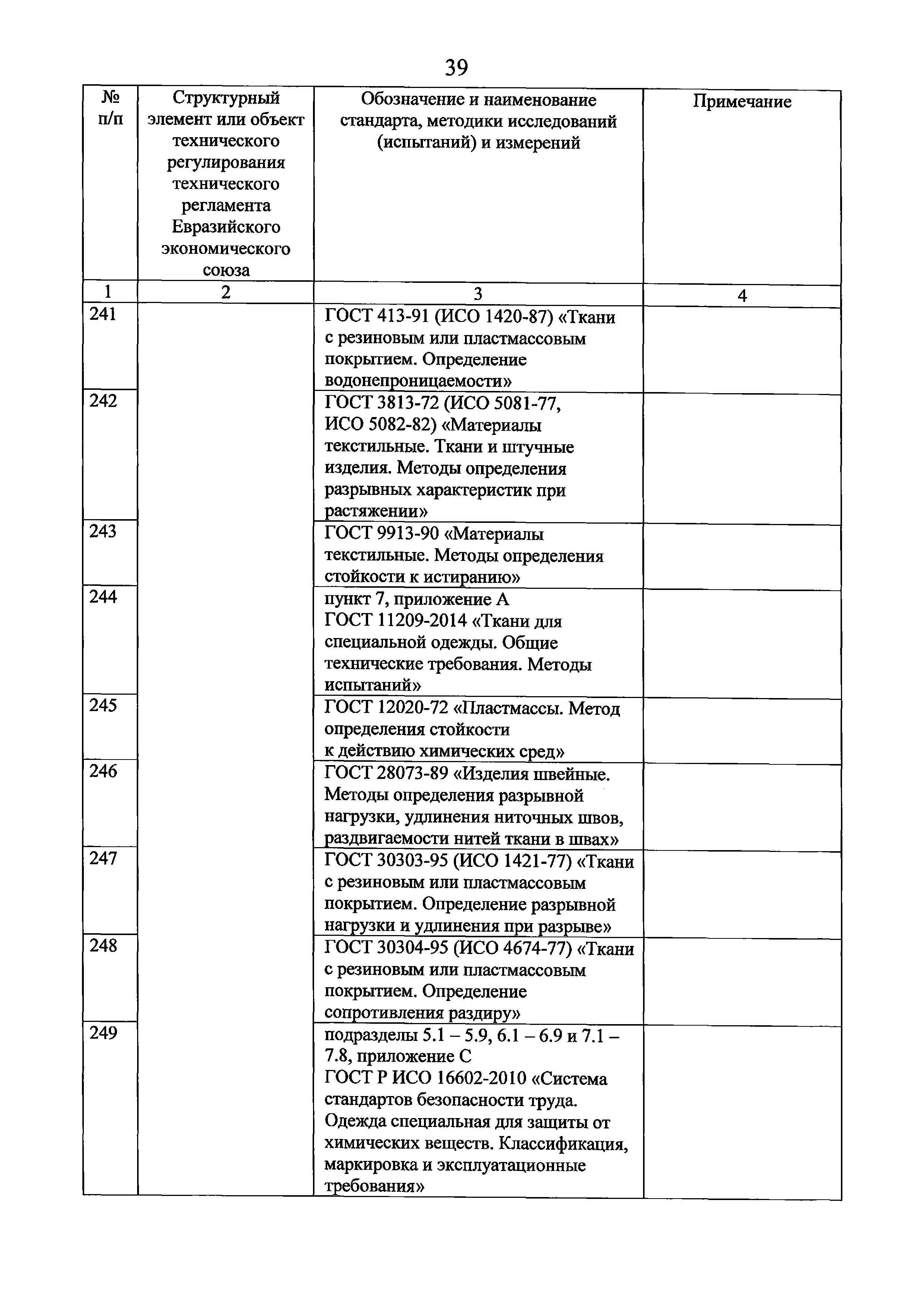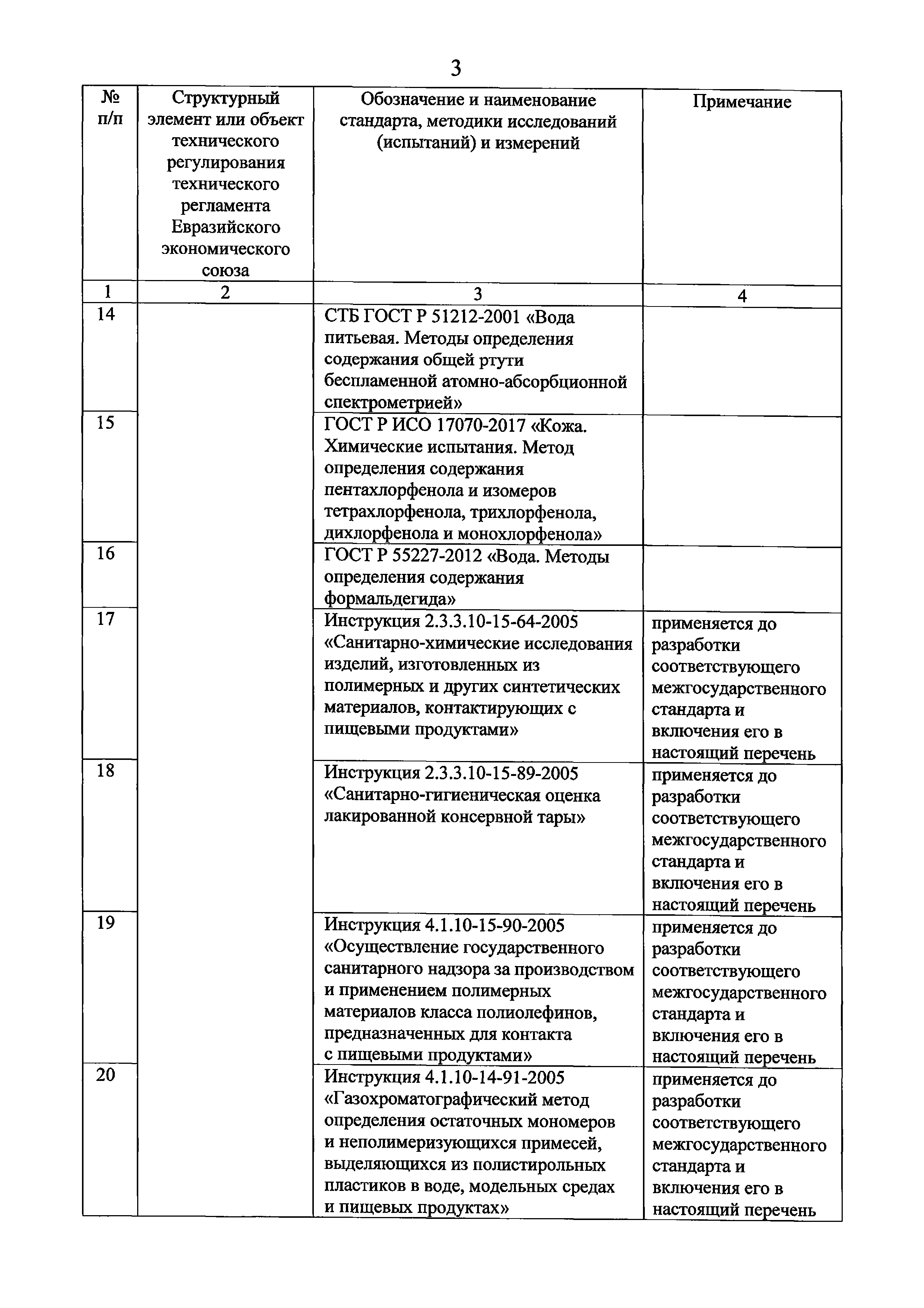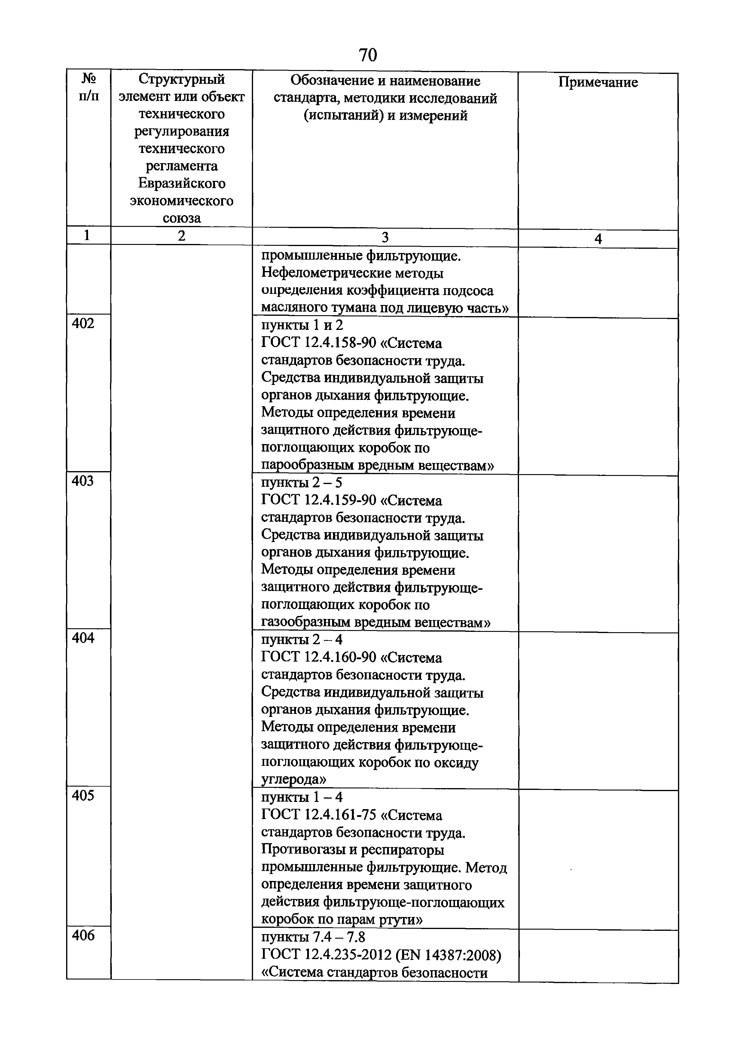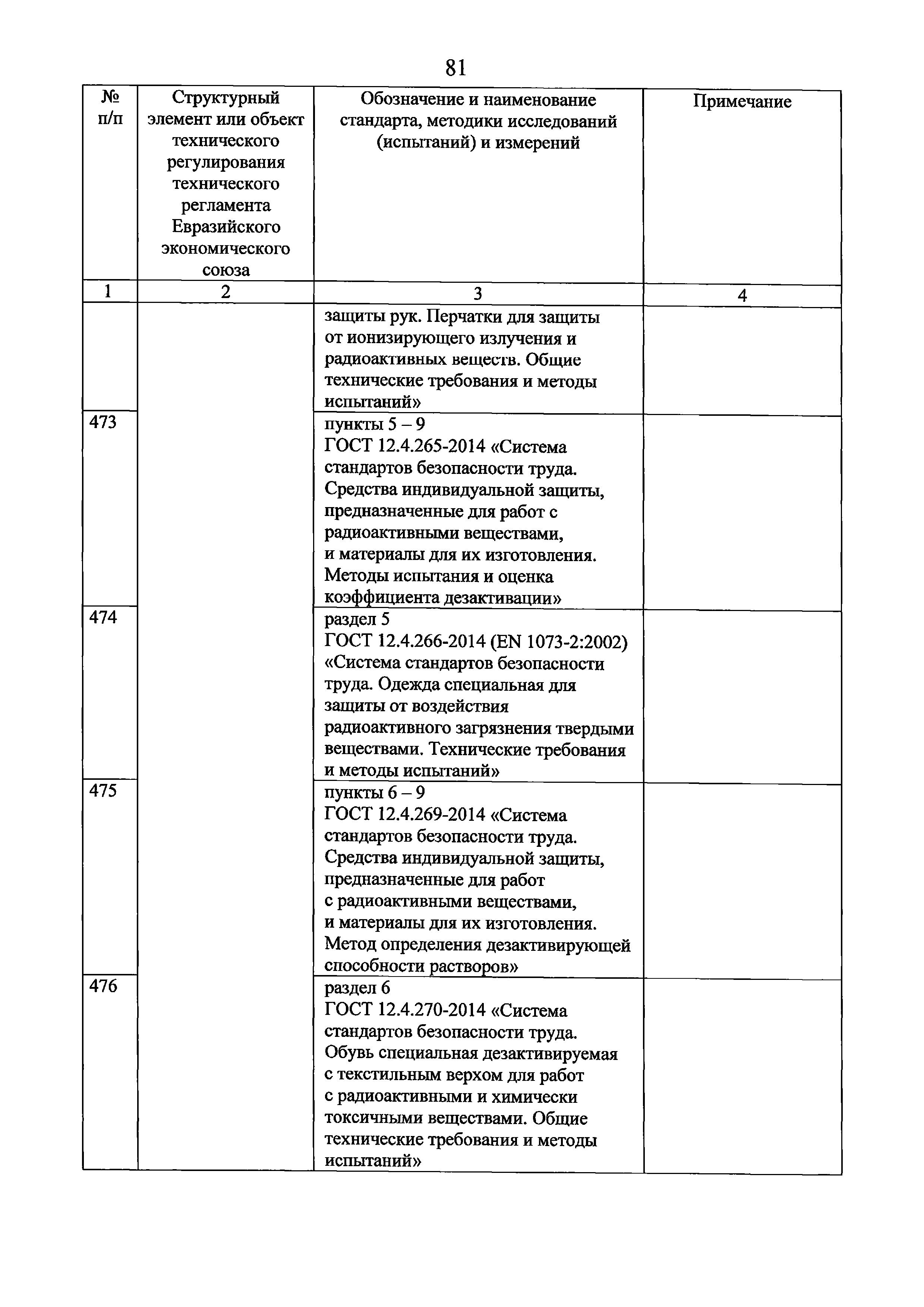 Перечень международных и региональных (межгосударственных) стандартов, а в случае их отсутствия - национальных (государственных) стандартов, содержащих правила и методы исследований (испытаний) и измерений, в том числе правила отбора образцов, необходимые для применения и исполнения требований технического регламента Таможенного союза "О безопасности средств индивидуальной защиты" (ТР ТС 019/2011) и осуществления оценки соответствия объектов технического регулирования. Редакция 3| Статус: | действует | | Название рус.: | Перечень международных и региональных (межгосударственных) стандартов, а в случае их отсутствия - национальных (государственных) стандартов, содержащих правила и методы исследований (испытаний) и измерений, в том числе правила отбора образцов, необходимые для применения и исполнения требований технического регламента Таможенного союза "О безопасности средств индивидуальной защиты" (ТР ТС 019/2011) и осуществления оценки соответствия объектов технического регулирования. Редакция 3 | | Дата добавления в базу: | 01.01.2021 | | Дата актуализации: | 01.01.2021 | | Дата введения: | 04.04.2020 | | Утверждён: | 03.03.2020 Коллегия Евразийской экономической комиссии (30)