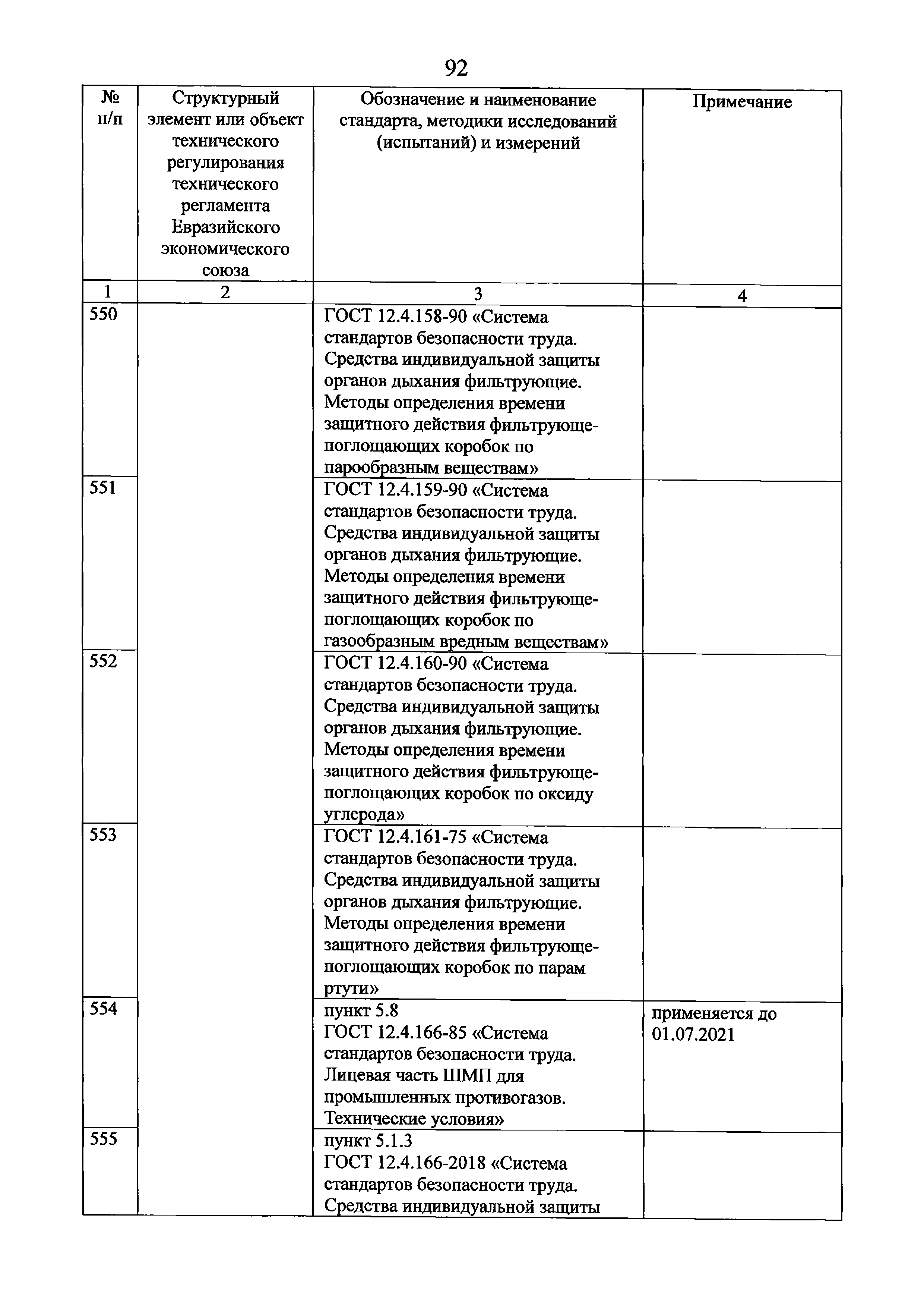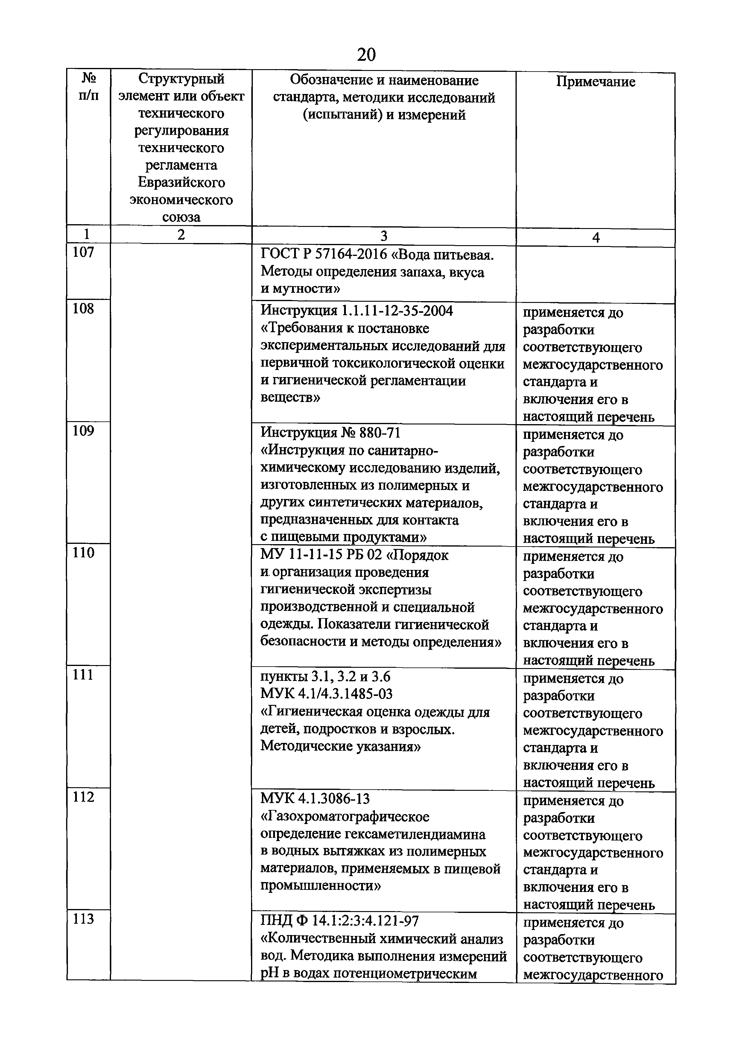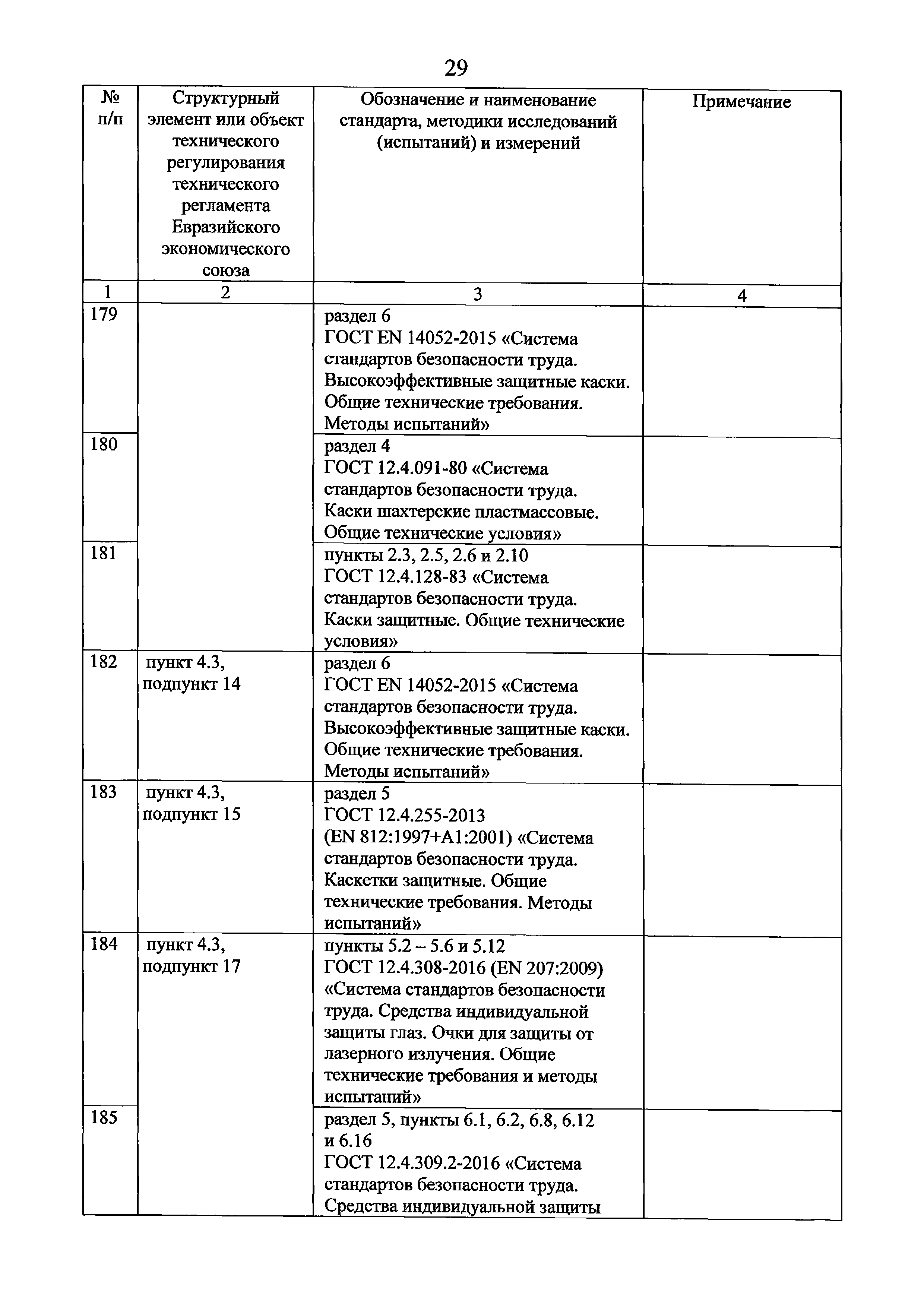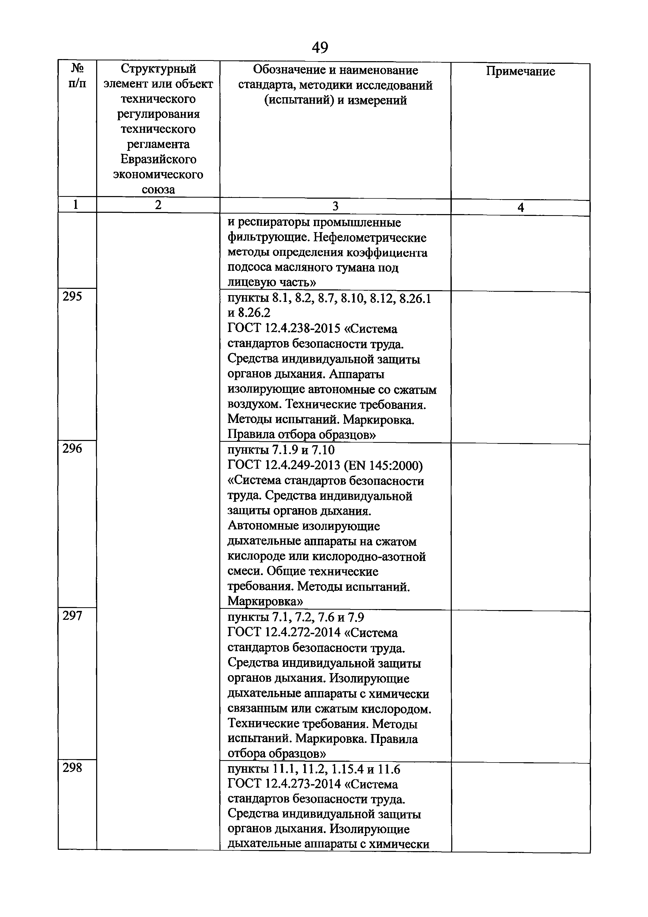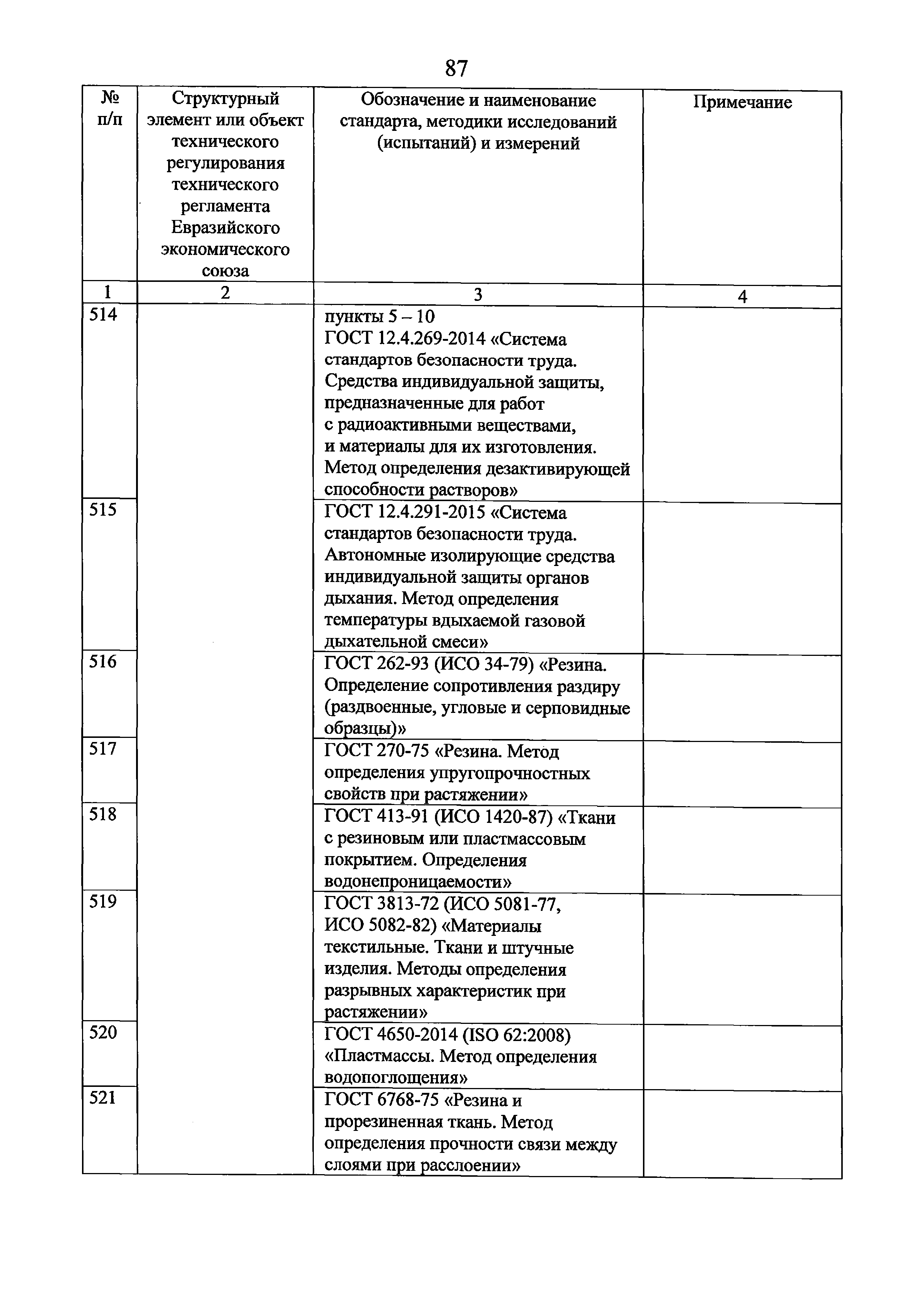 Перечень международных и региональных (межгосударственных) стандартов, а в случае их отсутствия - национальных (государственных) стандартов, содержащих правила и методы исследований (испытаний) и измерений, в том числе правила отбора образцов, необходимые для применения и исполнения требований технического регламента Таможенного союза "О безопасности средств индивидуальной защиты" (ТР ТС 019/2011) и осуществления оценки соответствия объектов технического регулирования. Редакция 3| Статус: | действует | | Название рус.: | Перечень международных и региональных (межгосударственных) стандартов, а в случае их отсутствия - национальных (государственных) стандартов, содержащих правила и методы исследований (испытаний) и измерений, в том числе правила отбора образцов, необходимые для применения и исполнения требований технического регламента Таможенного союза "О безопасности средств индивидуальной защиты" (ТР ТС 019/2011) и осуществления оценки соответствия объектов технического регулирования. Редакция 3 | | Дата добавления в базу: | 01.01.2021 | | Дата актуализации: | 01.01.2021 | | Дата введения: | 04.04.2020 | | Утверждён: | 03.03.2020 Коллегия Евразийской экономической комиссии (30)