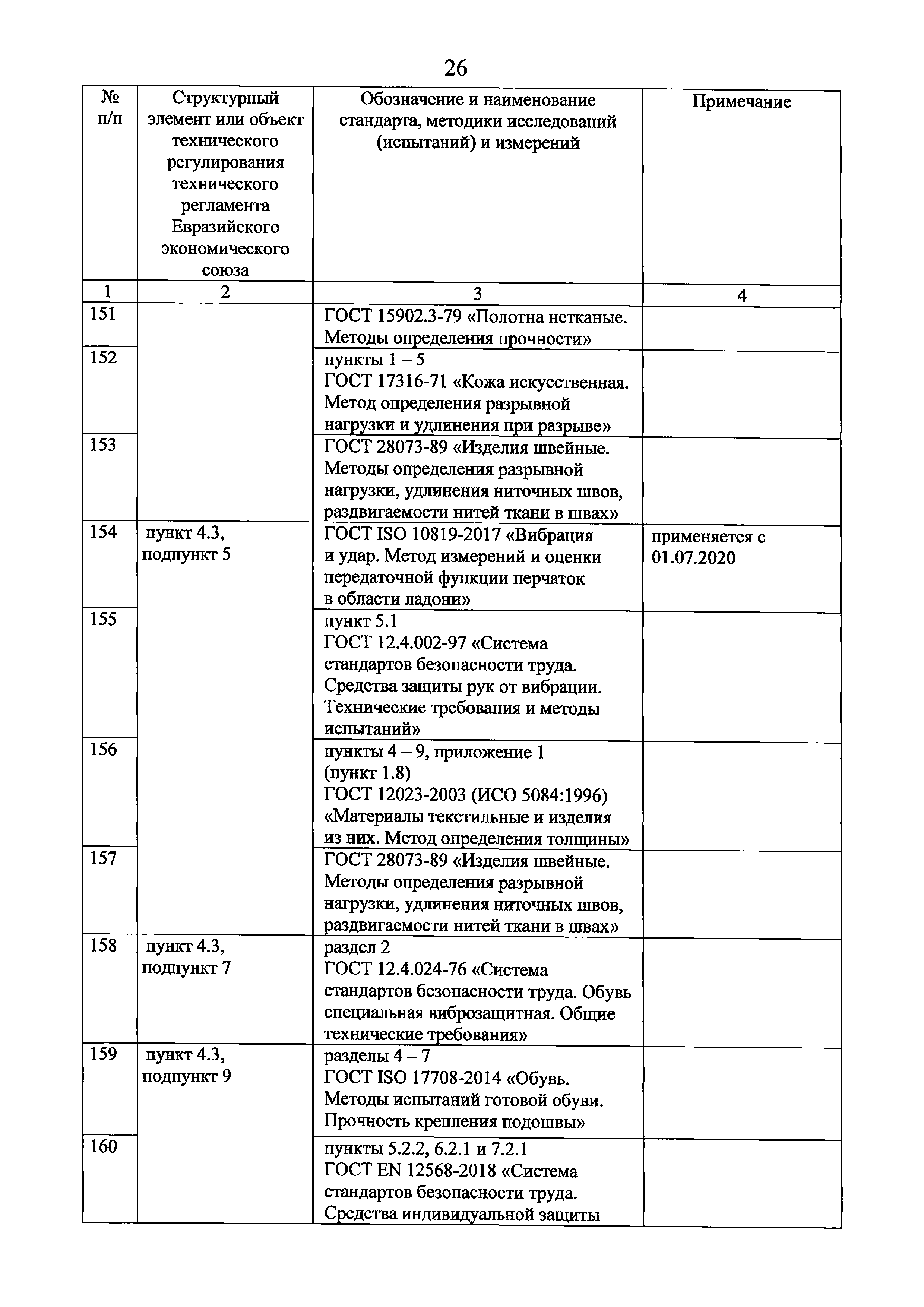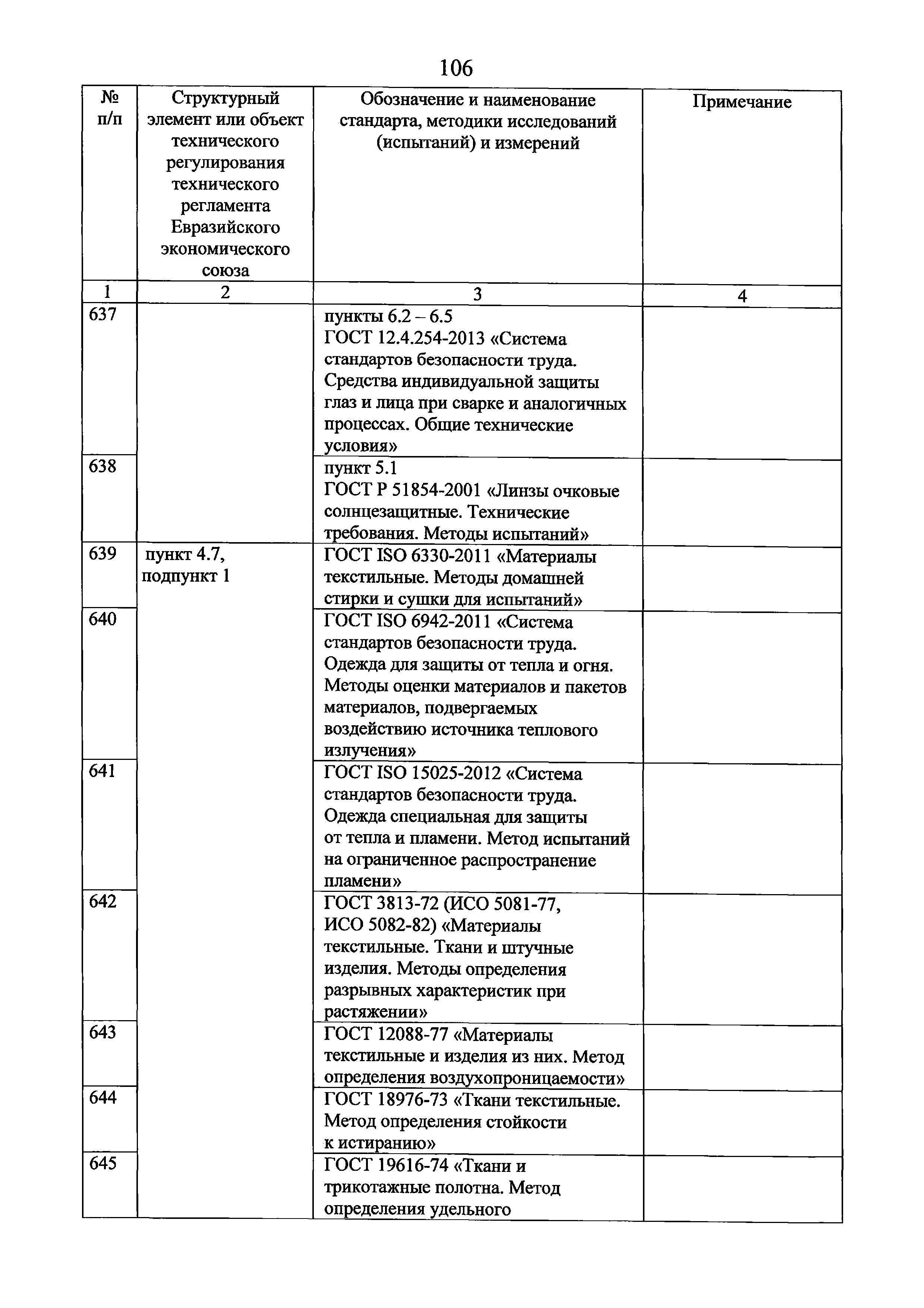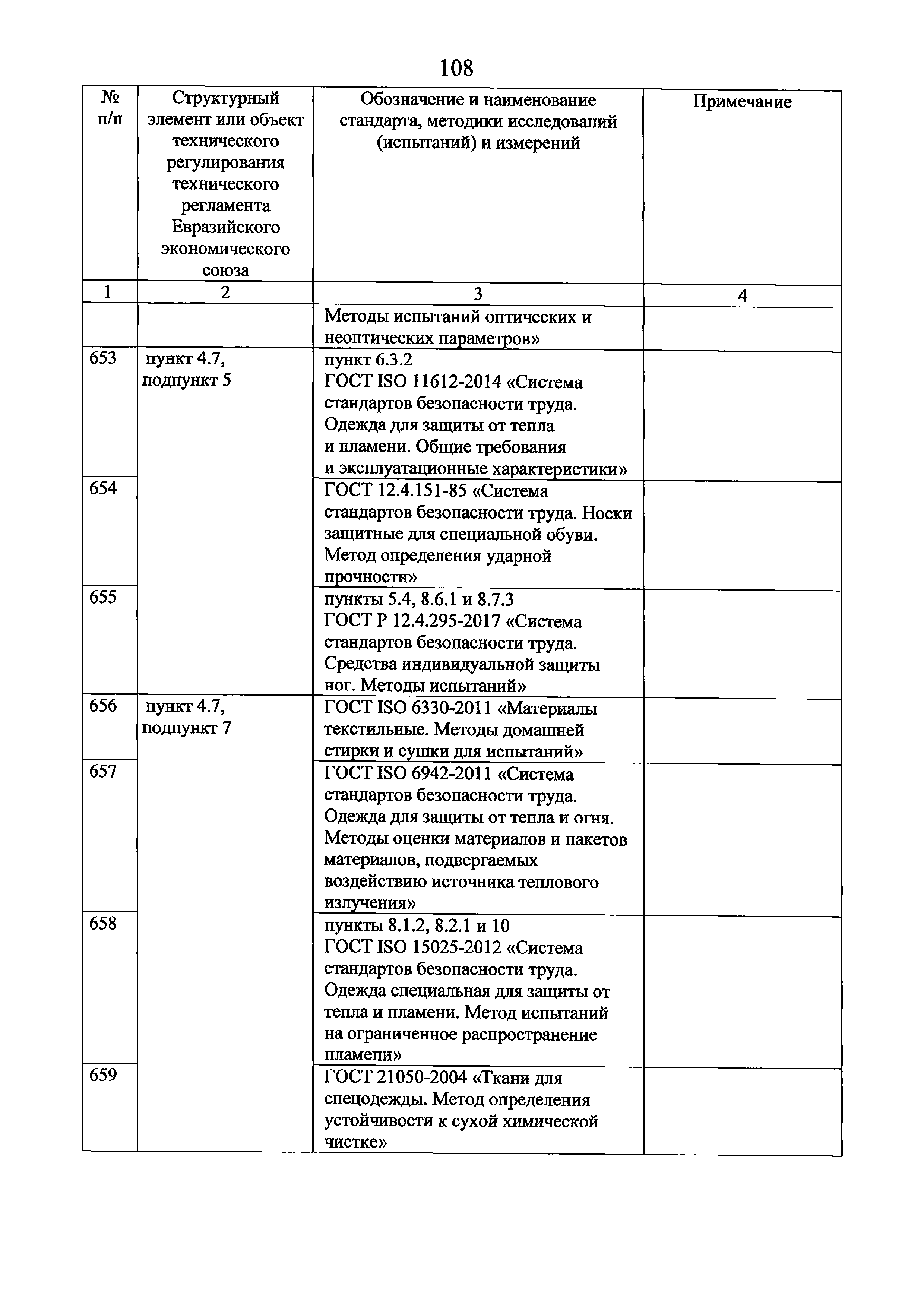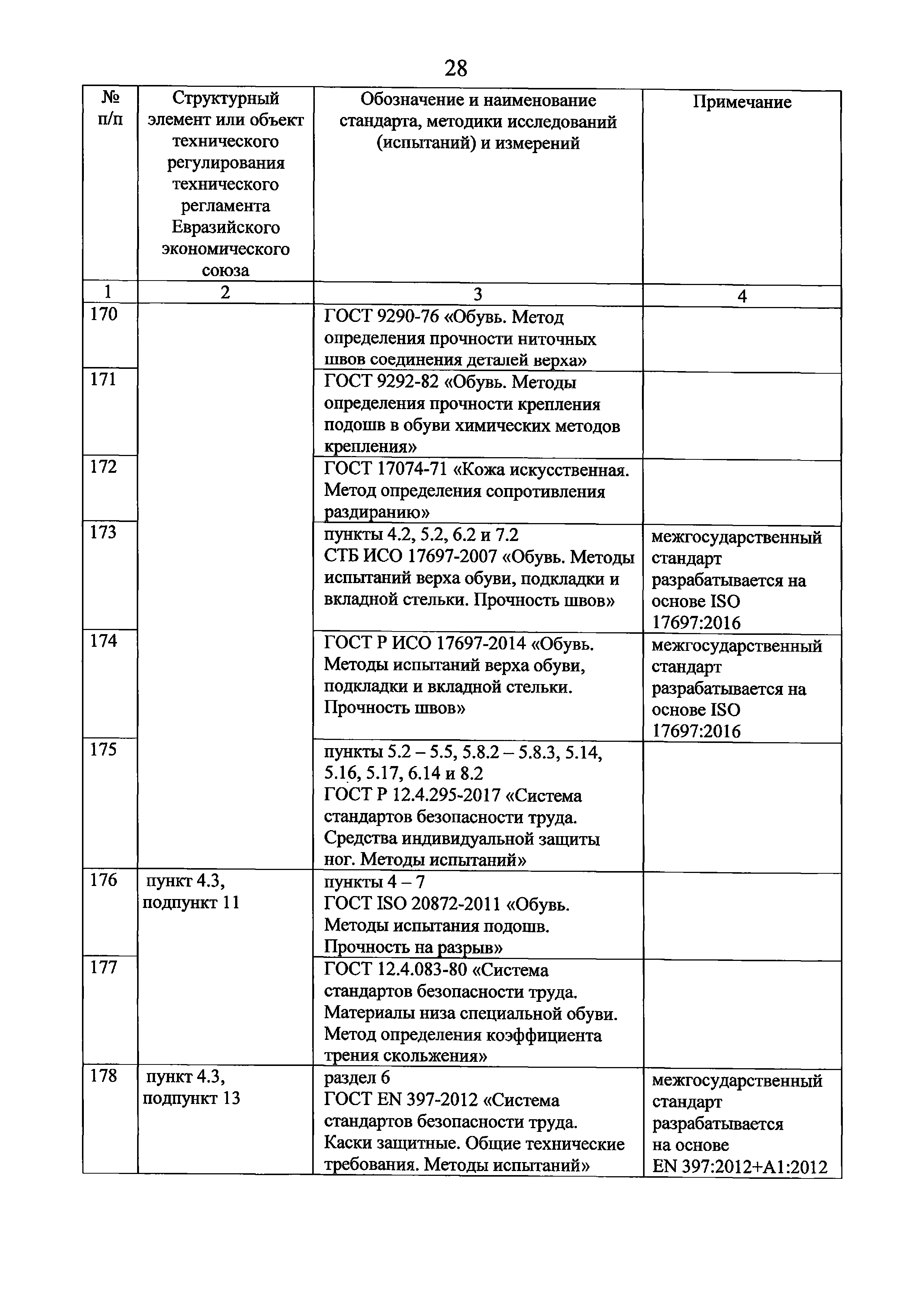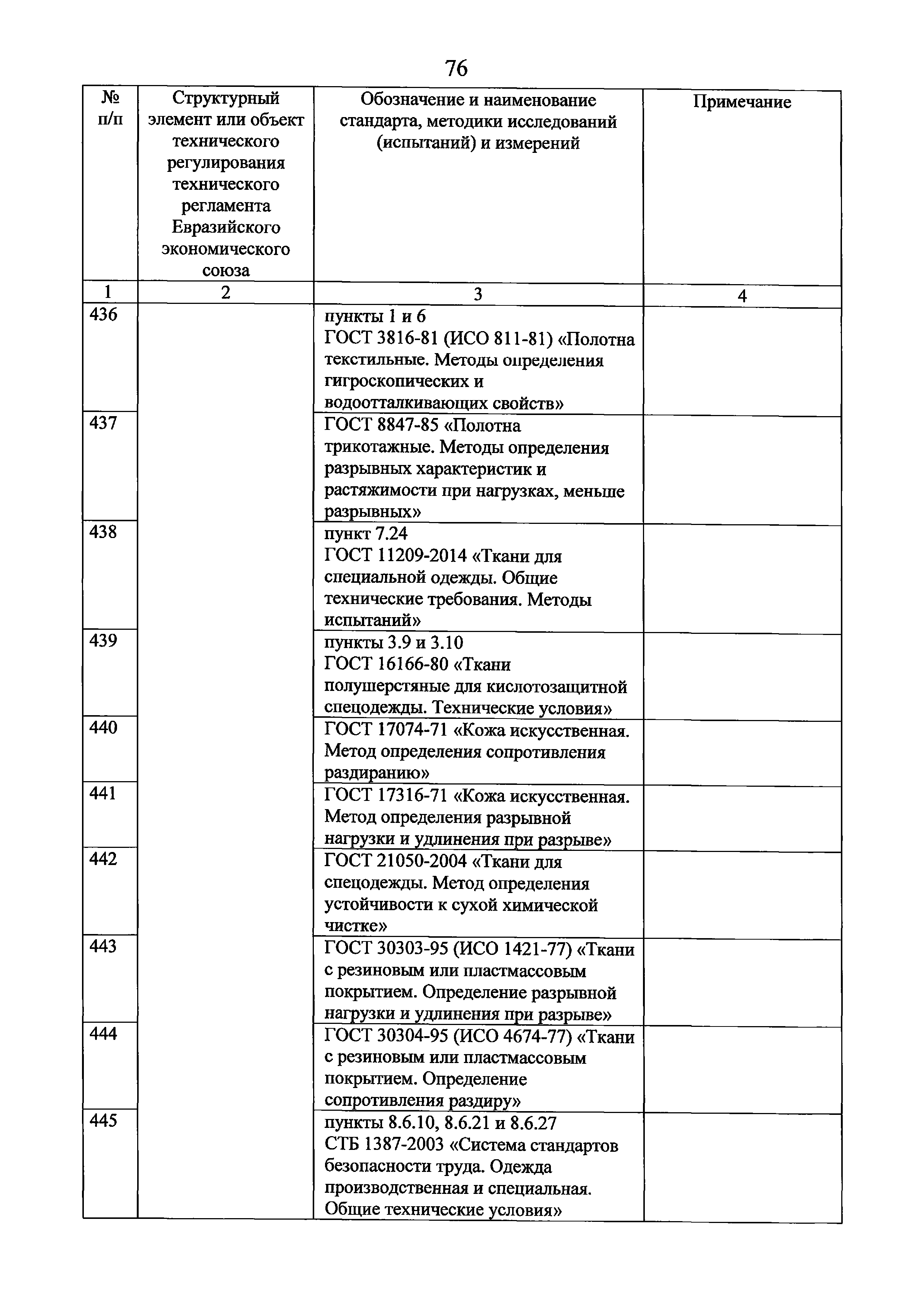 Перечень международных и региональных (межгосударственных) стандартов, а в случае их отсутствия - национальных (государственных) стандартов, содержащих правила и методы исследований (испытаний) и измерений, в том числе правила отбора образцов, необходимые для применения и исполнения требований технического регламента Таможенного союза "О безопасности средств индивидуальной защиты" (ТР ТС 019/2011) и осуществления оценки соответствия объектов технического регулирования. Редакция 3| Статус: | действует | | Название рус.: | Перечень международных и региональных (межгосударственных) стандартов, а в случае их отсутствия - национальных (государственных) стандартов, содержащих правила и методы исследований (испытаний) и измерений, в том числе правила отбора образцов, необходимые для применения и исполнения требований технического регламента Таможенного союза "О безопасности средств индивидуальной защиты" (ТР ТС 019/2011) и осуществления оценки соответствия объектов технического регулирования. Редакция 3 | | Дата добавления в базу: | 01.01.2021 | | Дата актуализации: | 01.01.2021 | | Дата введения: | 04.04.2020 | | Утверждён: | 03.03.2020 Коллегия Евразийской экономической комиссии (30)