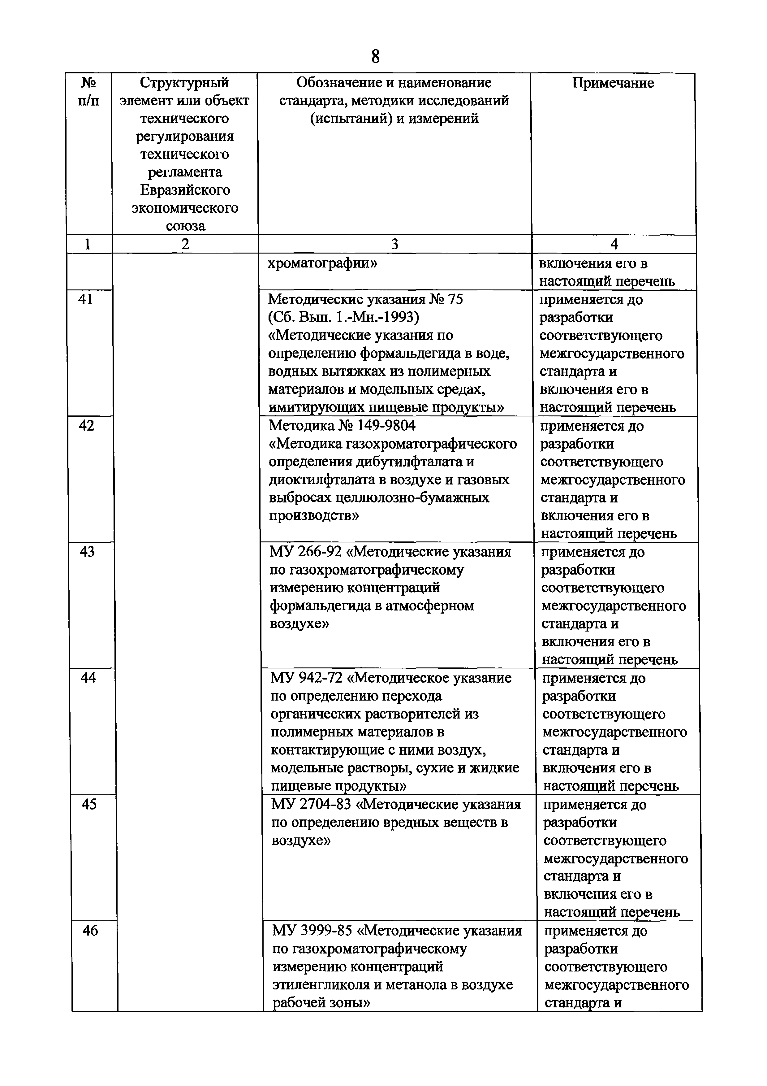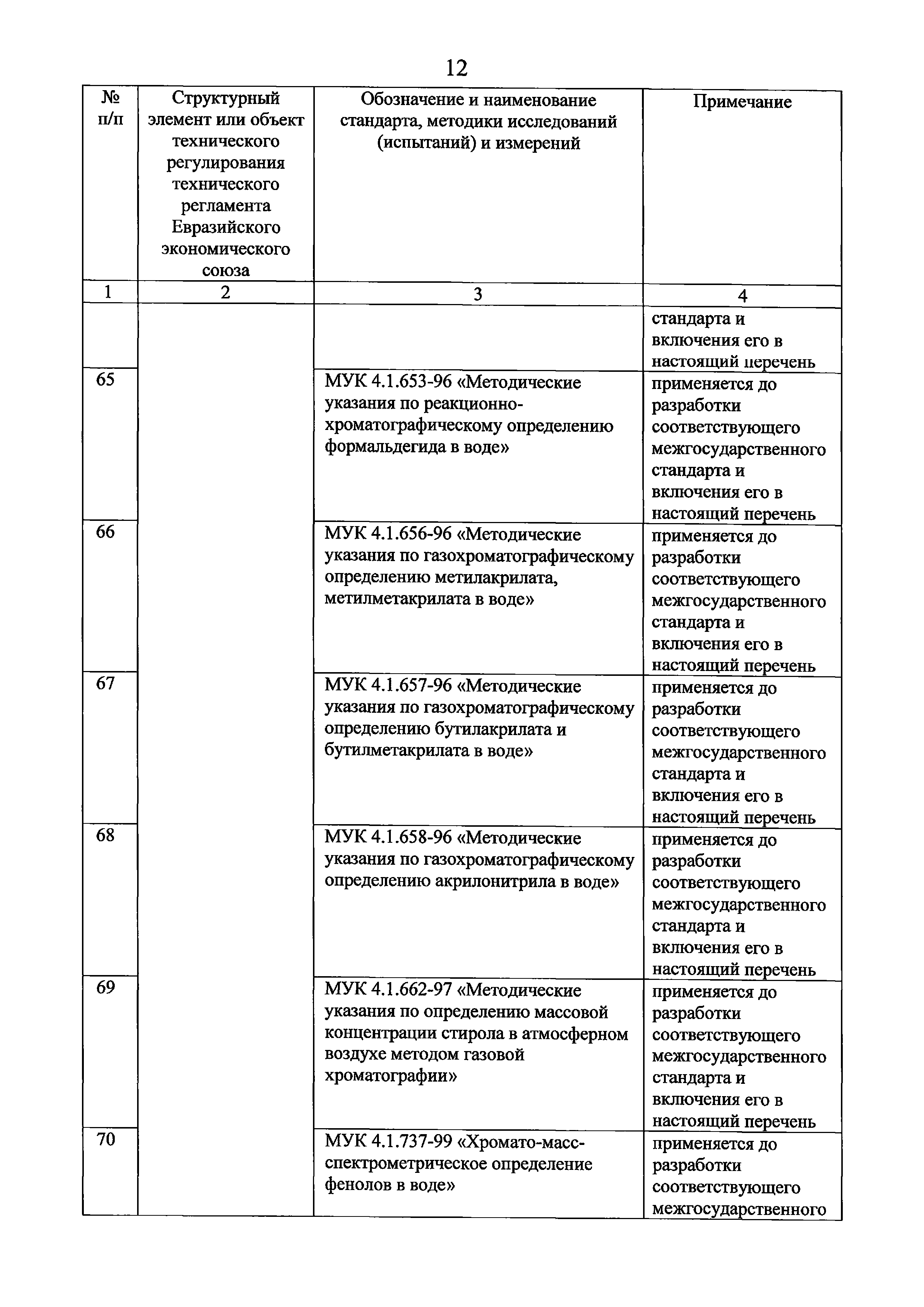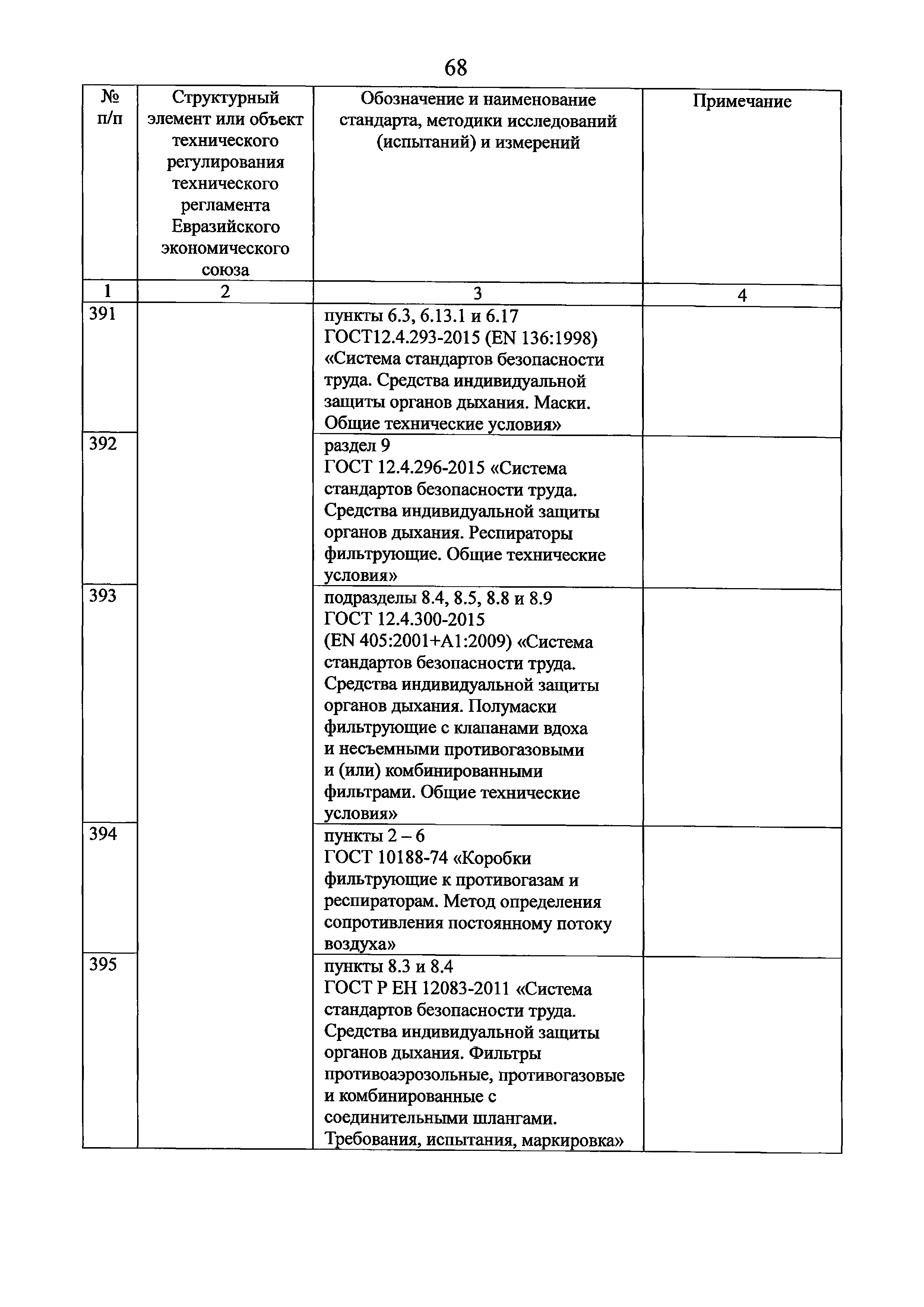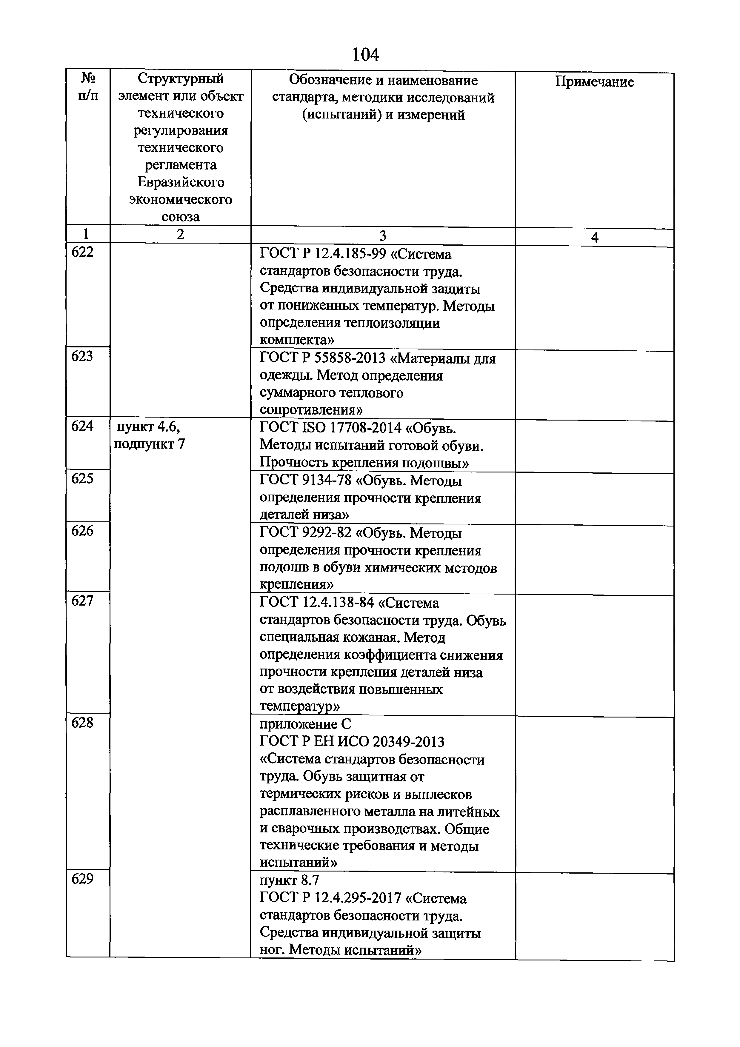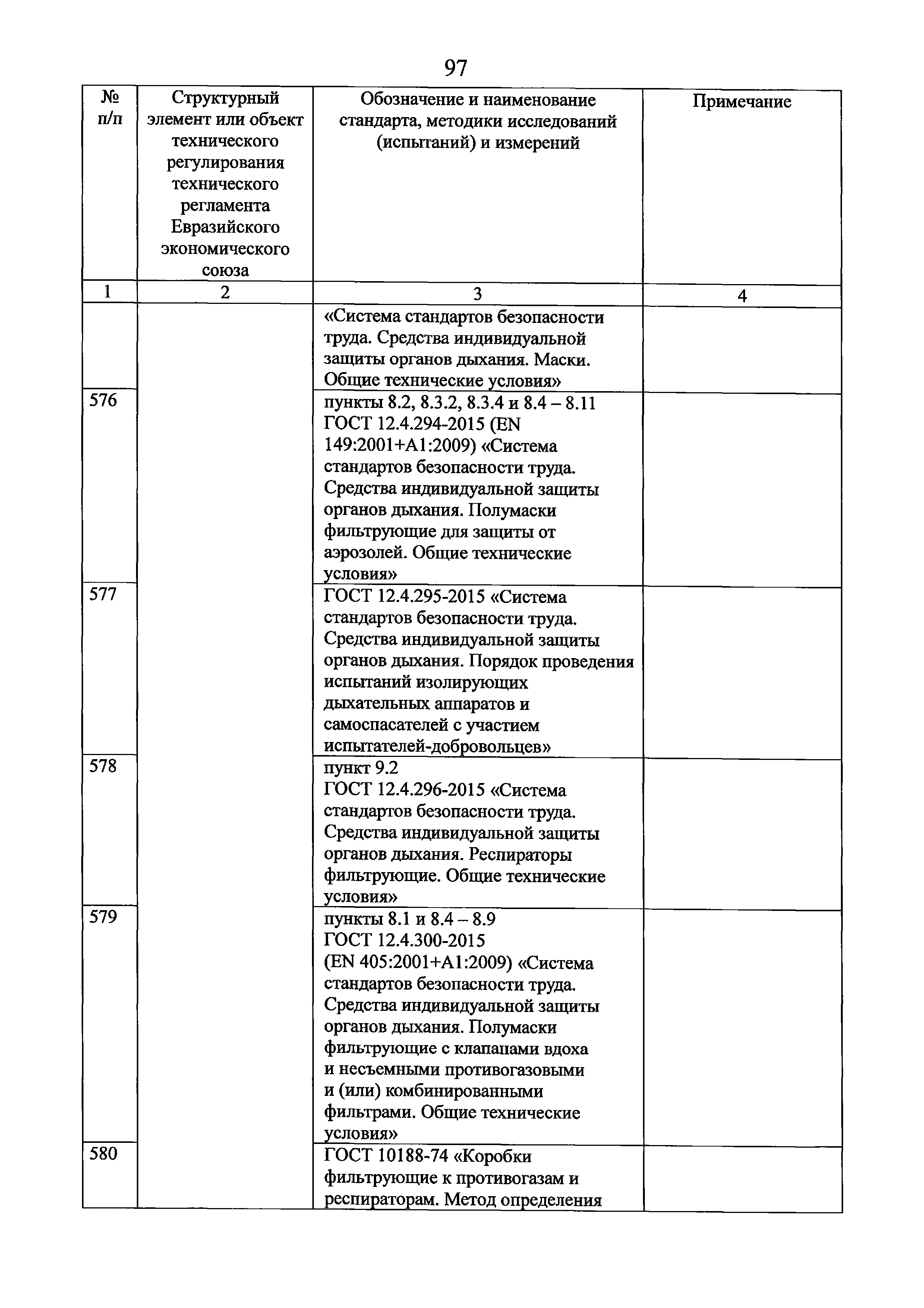 Перечень международных и региональных (межгосударственных) стандартов, а в случае их отсутствия - национальных (государственных) стандартов, содержащих правила и методы исследований (испытаний) и измерений, в том числе правила отбора образцов, необходимые для применения и исполнения требований технического регламента Таможенного союза "О безопасности средств индивидуальной защиты" (ТР ТС 019/2011) и осуществления оценки соответствия объектов технического регулирования. Редакция 3| Статус: | действует | | Название рус.: | Перечень международных и региональных (межгосударственных) стандартов, а в случае их отсутствия - национальных (государственных) стандартов, содержащих правила и методы исследований (испытаний) и измерений, в том числе правила отбора образцов, необходимые для применения и исполнения требований технического регламента Таможенного союза "О безопасности средств индивидуальной защиты" (ТР ТС 019/2011) и осуществления оценки соответствия объектов технического регулирования. Редакция 3 | | Дата добавления в базу: | 01.01.2021 | | Дата актуализации: | 01.01.2021 | | Дата введения: | 04.04.2020 | | Утверждён: | 03.03.2020 Коллегия Евразийской экономической комиссии (30)