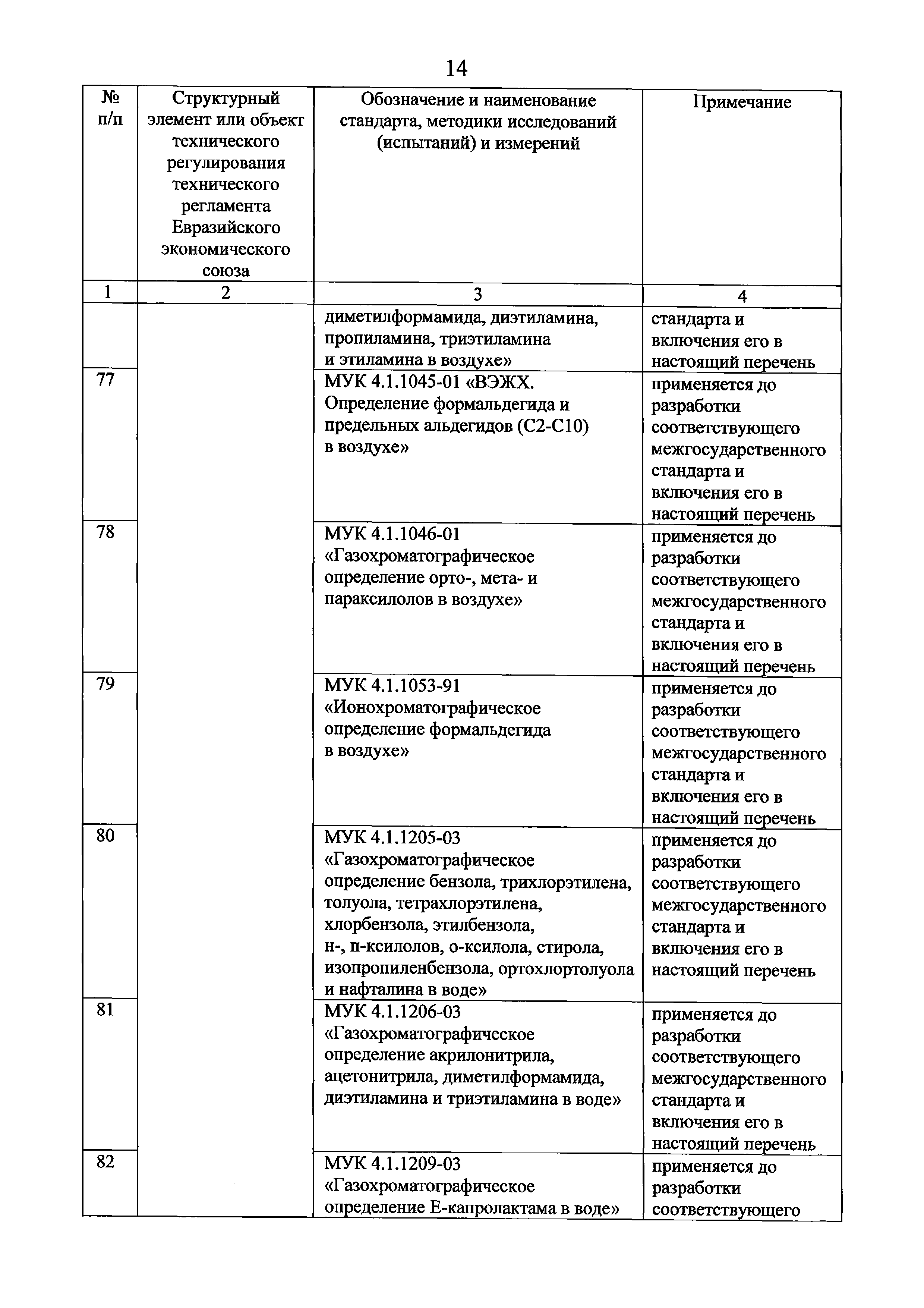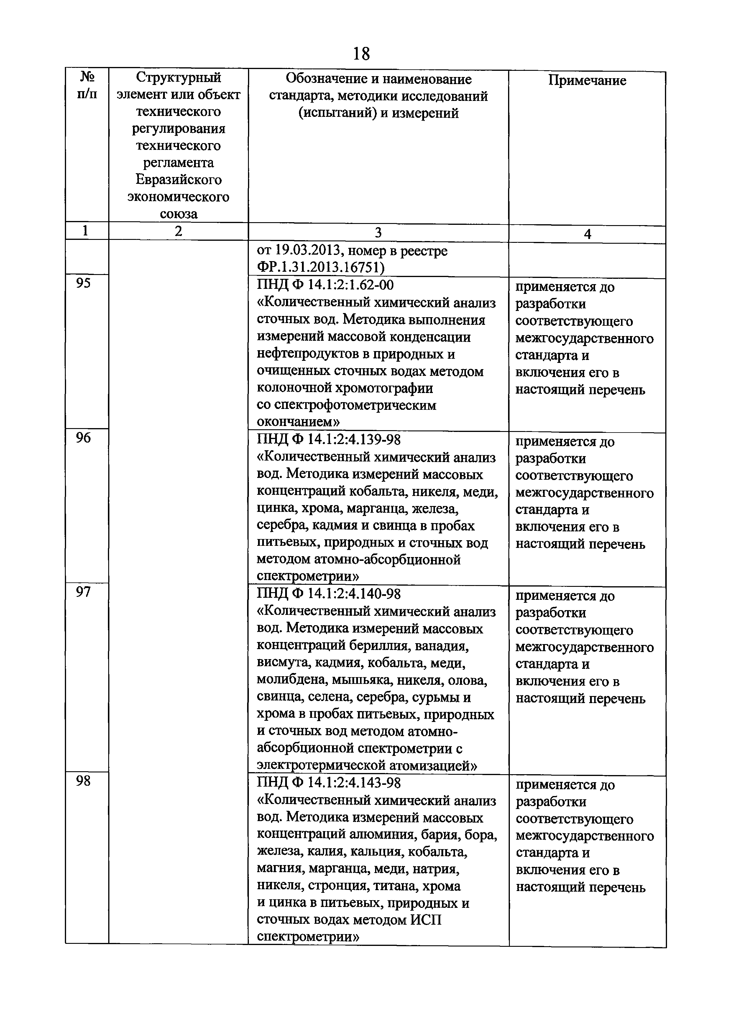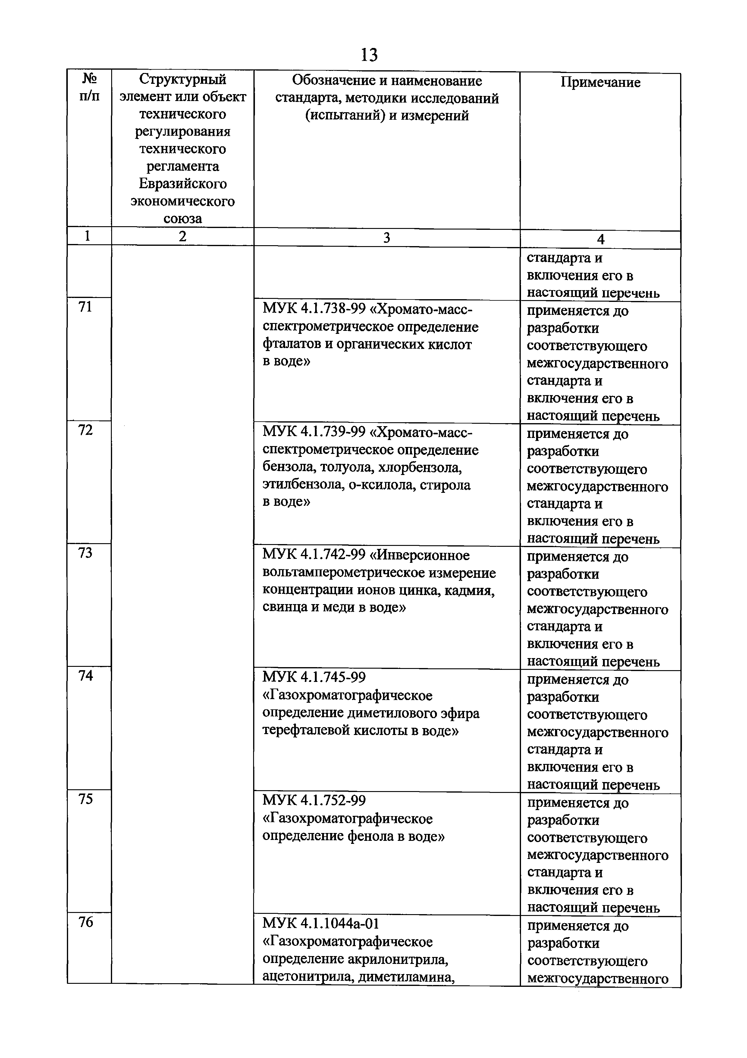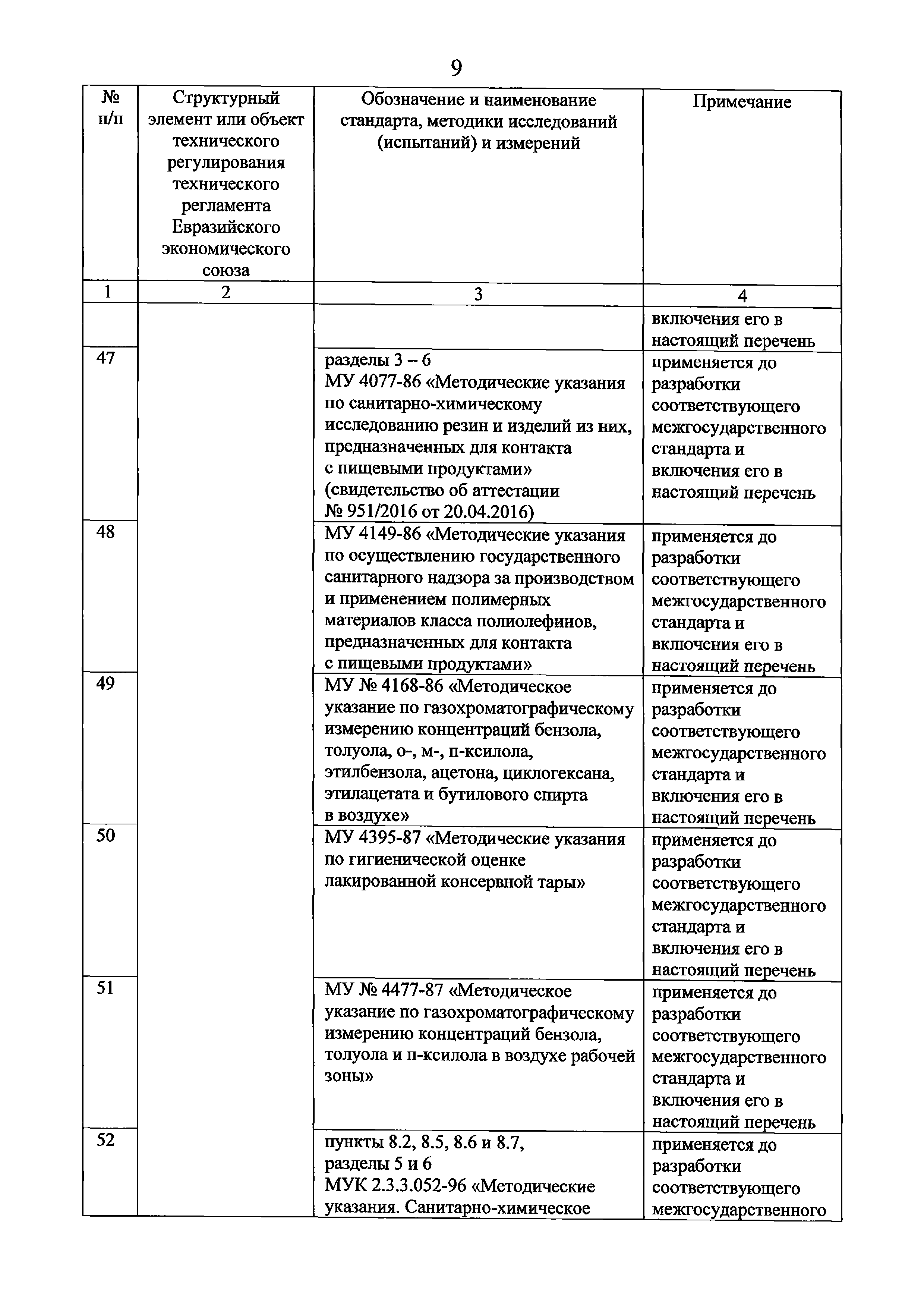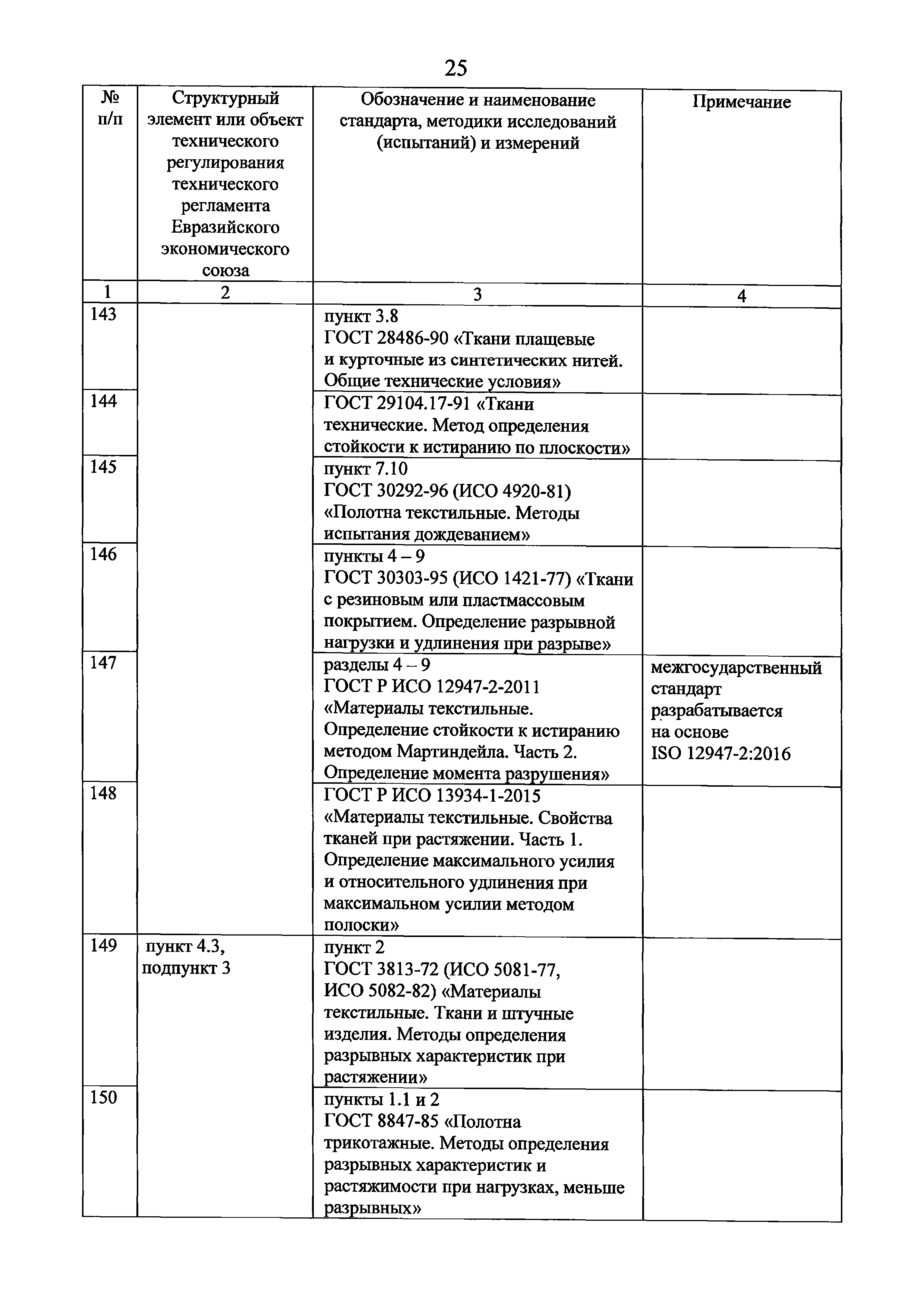 Перечень международных и региональных (межгосударственных) стандартов, а в случае их отсутствия - национальных (государственных) стандартов, содержащих правила и методы исследований (испытаний) и измерений, в том числе правила отбора образцов, необходимые для применения и исполнения требований технического регламента Таможенного союза "О безопасности средств индивидуальной защиты" (ТР ТС 019/2011) и осуществления оценки соответствия объектов технического регулирования. Редакция 3| Статус: | действует | | Название рус.: | Перечень международных и региональных (межгосударственных) стандартов, а в случае их отсутствия - национальных (государственных) стандартов, содержащих правила и методы исследований (испытаний) и измерений, в том числе правила отбора образцов, необходимые для применения и исполнения требований технического регламента Таможенного союза "О безопасности средств индивидуальной защиты" (ТР ТС 019/2011) и осуществления оценки соответствия объектов технического регулирования. Редакция 3 | | Дата добавления в базу: | 01.01.2021 | | Дата актуализации: | 01.01.2021 | | Дата введения: | 04.04.2020 | | Утверждён: | 03.03.2020 Коллегия Евразийской экономической комиссии (30)