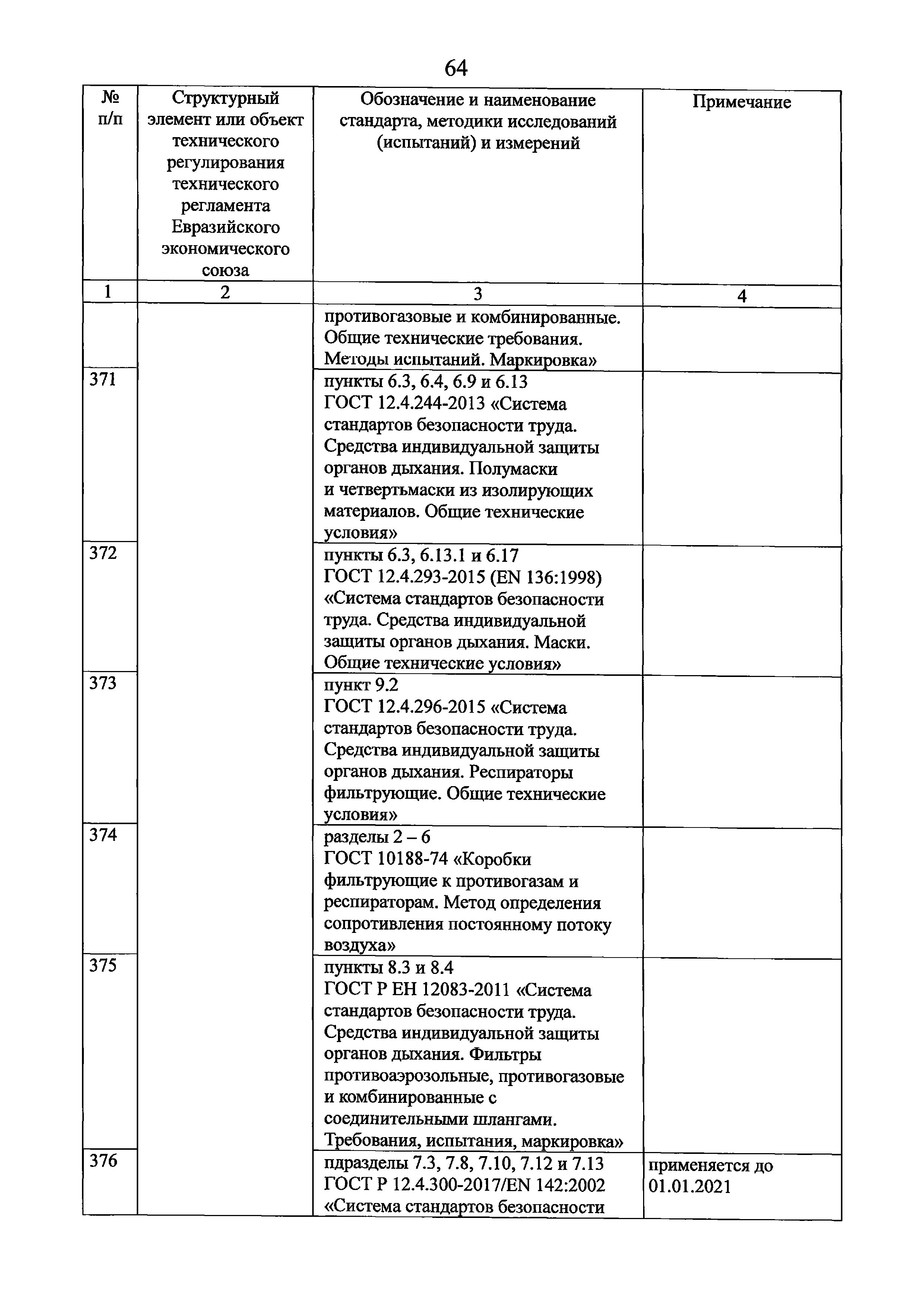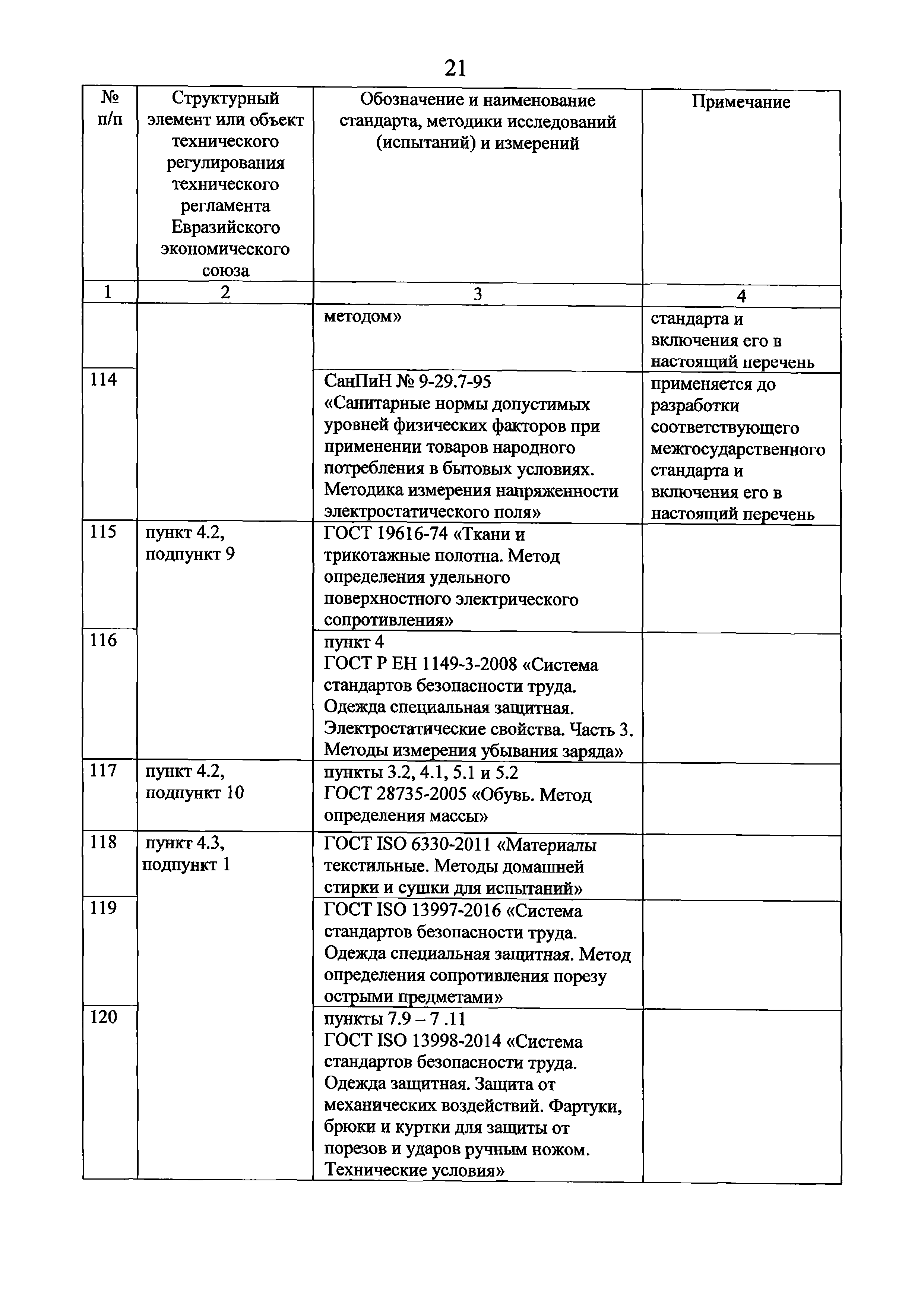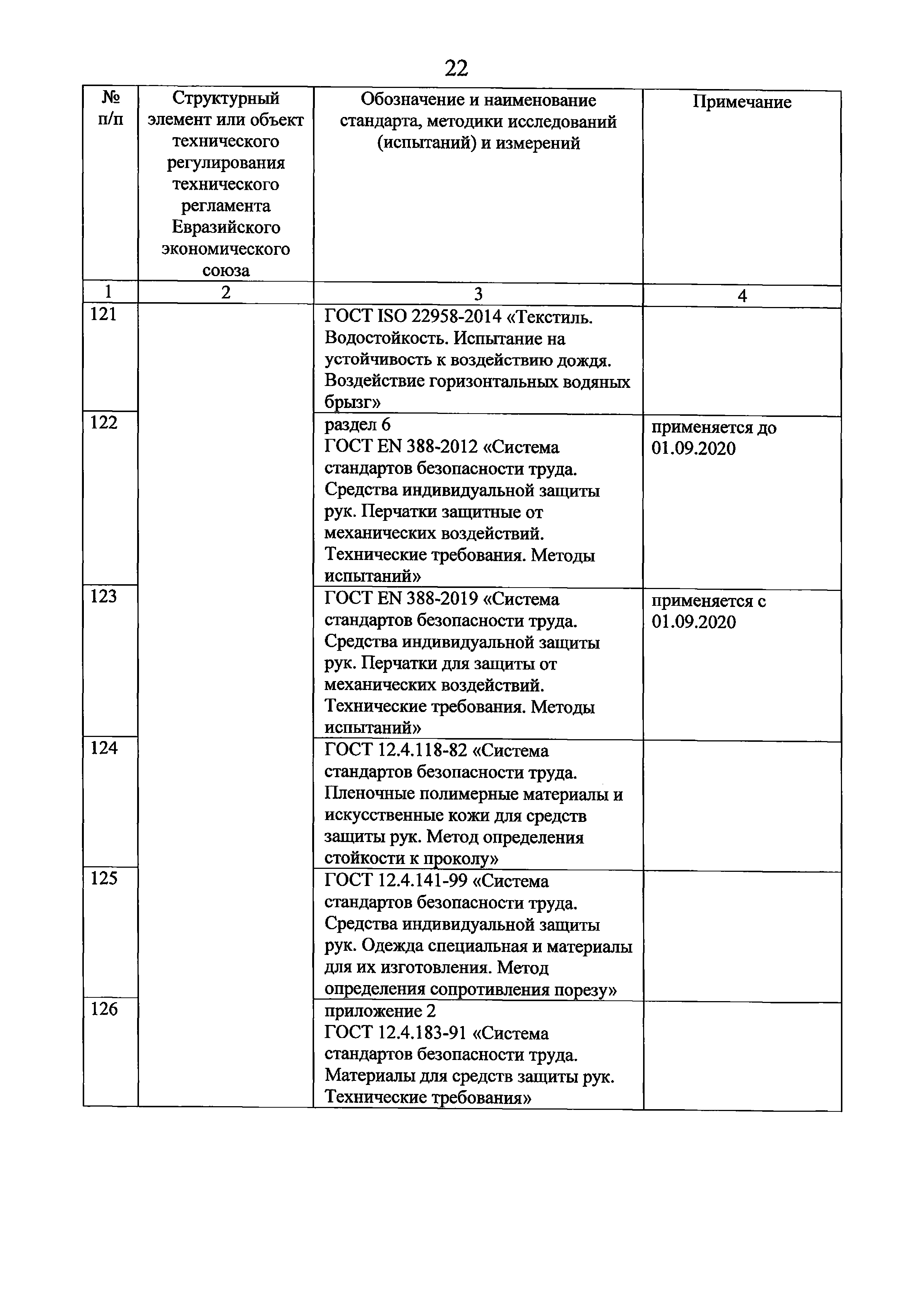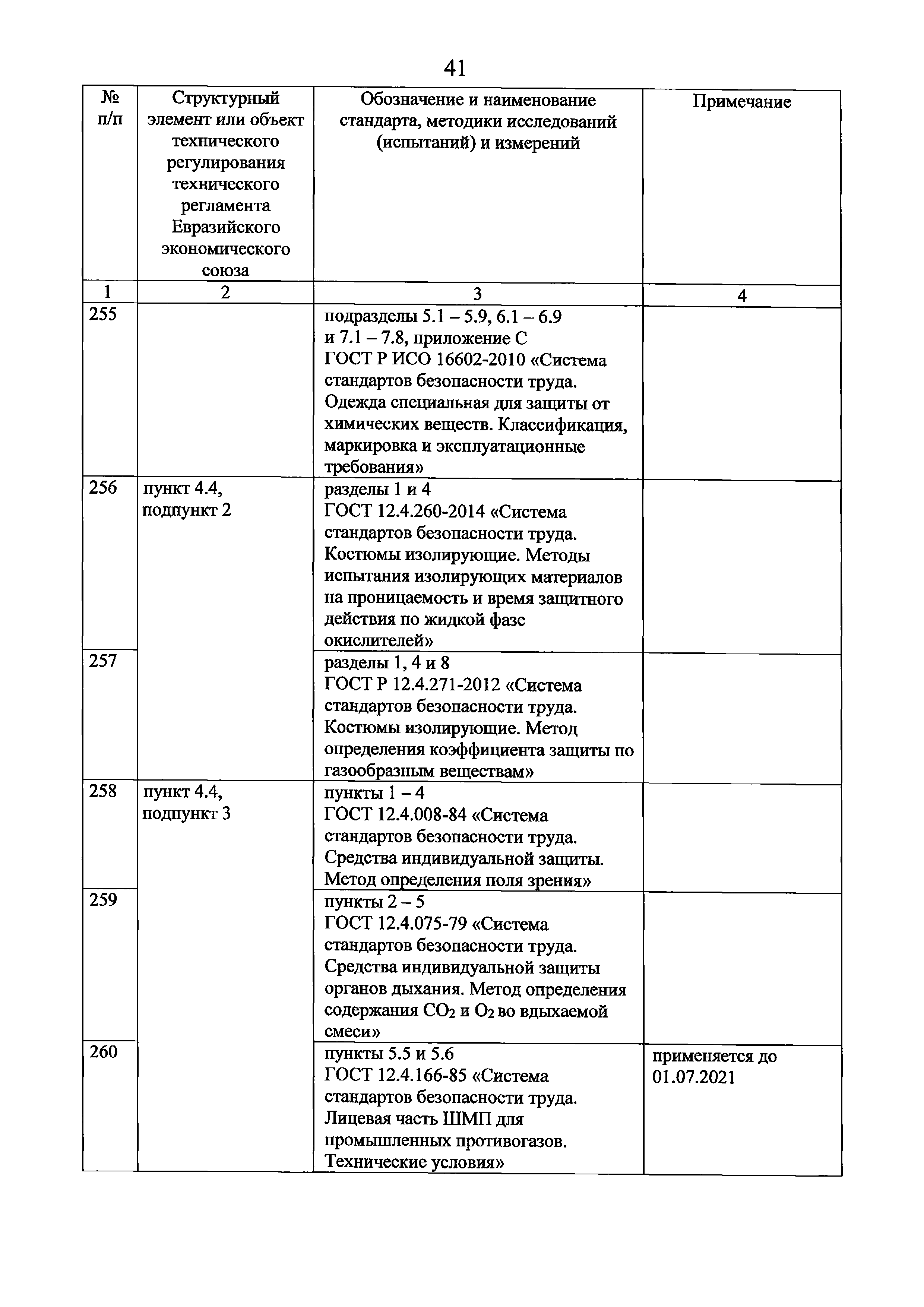 Скачать Перечень международных и региональных (межгосударственных) стандартов, а в случае их отсутствия - национальных (государственных) стандартов, содержащих правила и методы исследований (испытаний) и измерений, в том числе правила отбора образцов, необходимые для применения и исполнения требований технического регламента Таможенного союза О безопасности средств индивидуальной защиты (ТР ТС 019/2011) и осуществления оценки соответствия объектов технического регулирования. Редакция 3Дата актуализации: 01.01.2021