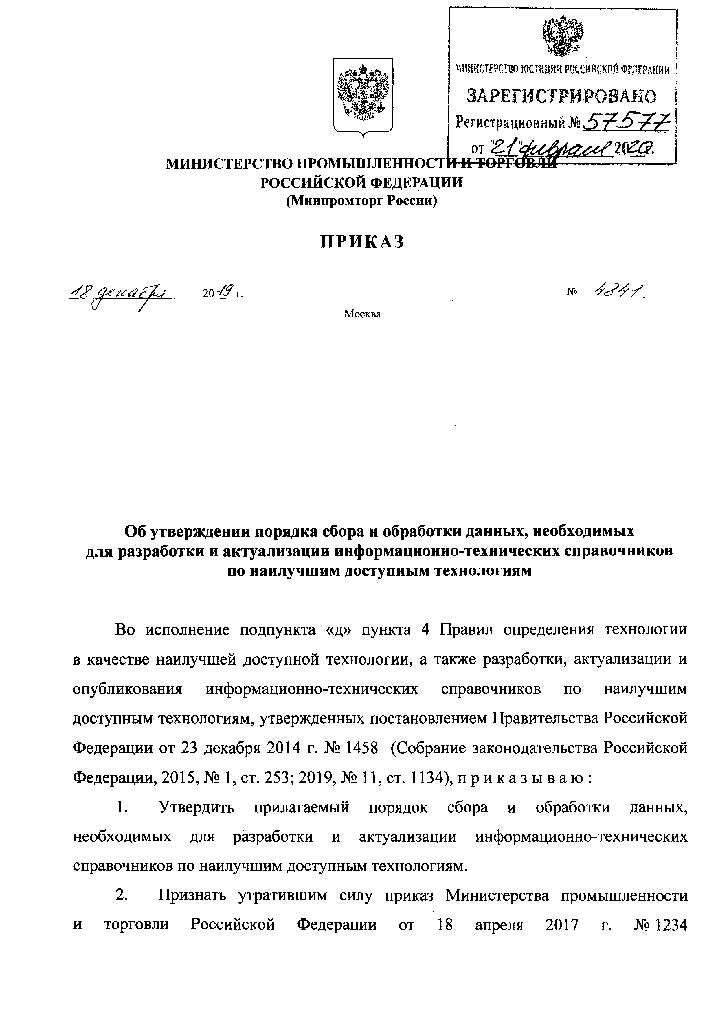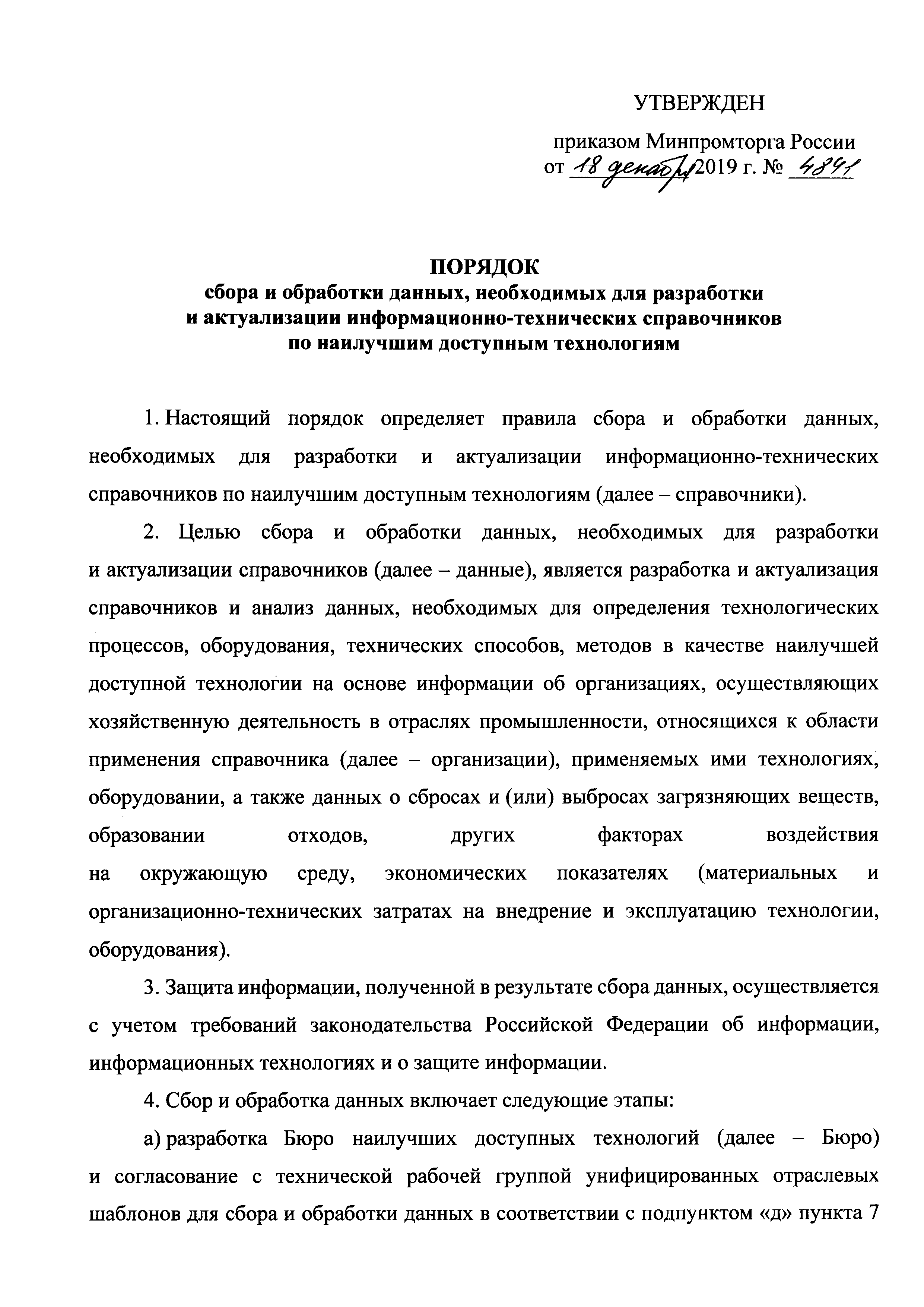 Скачать Порядок сбора и обработки данных, необходимых для разработки и актуализации информационно-технических справочников по наилучшим доступным технологиямДата актуализации: 01.01.2021