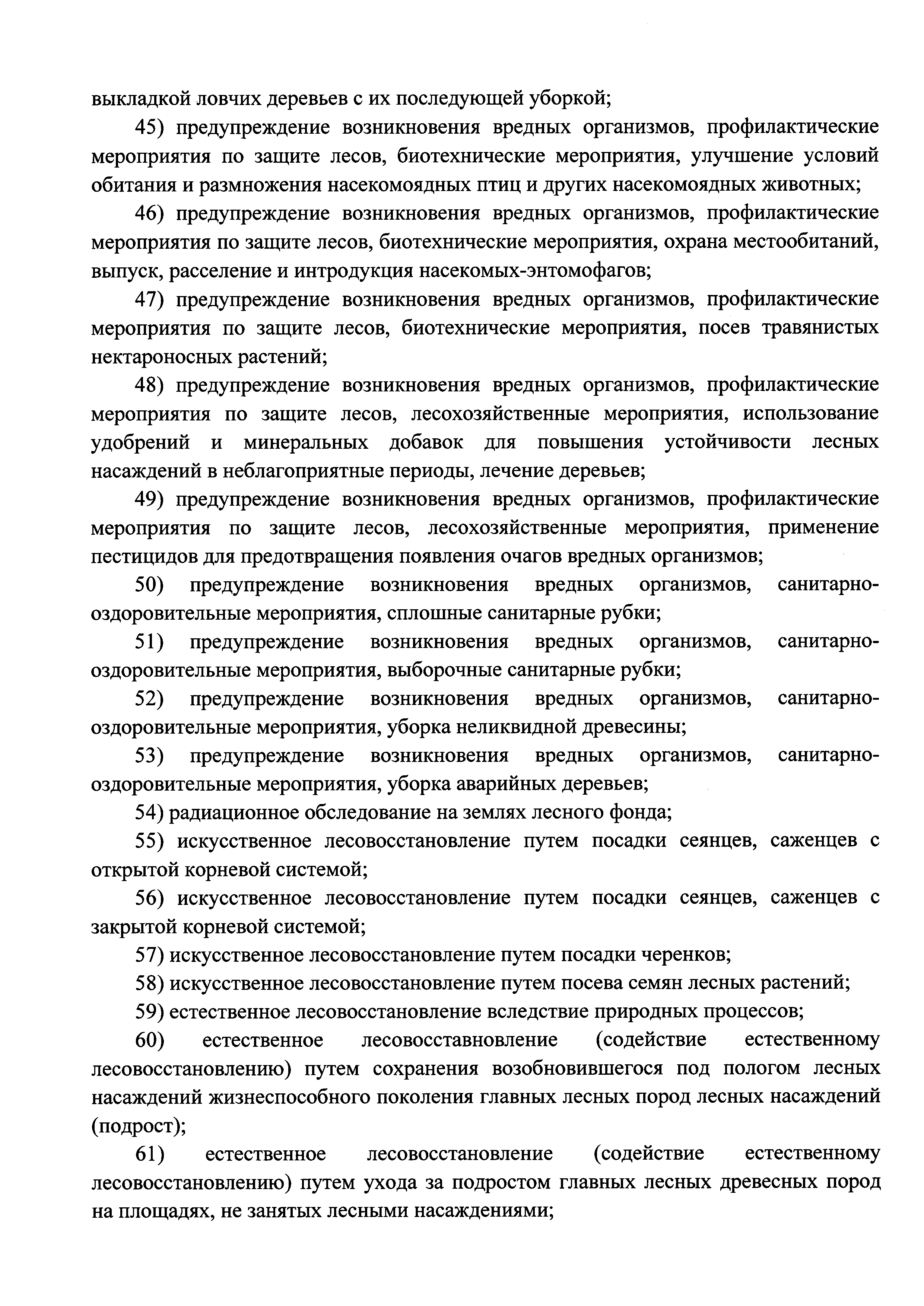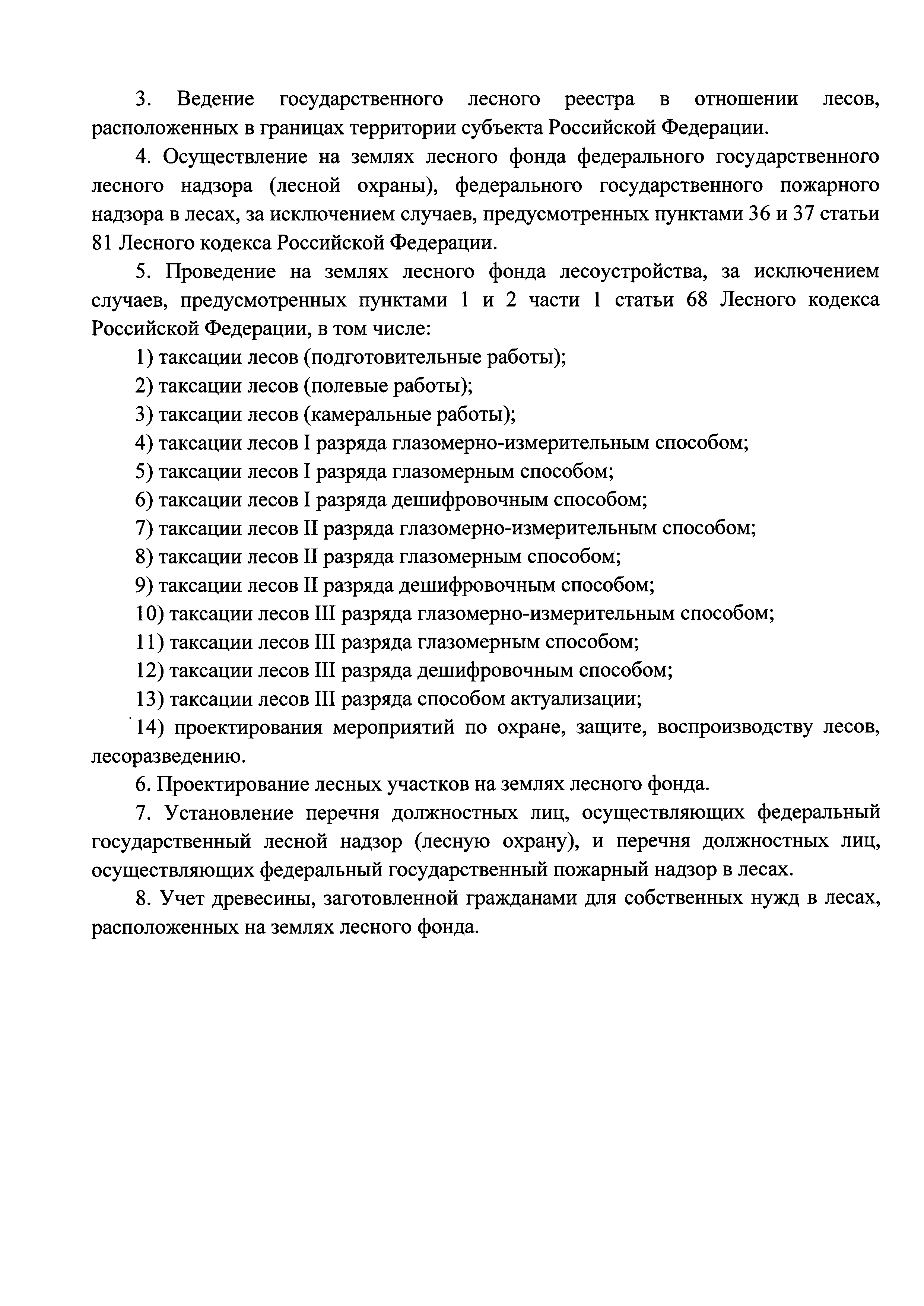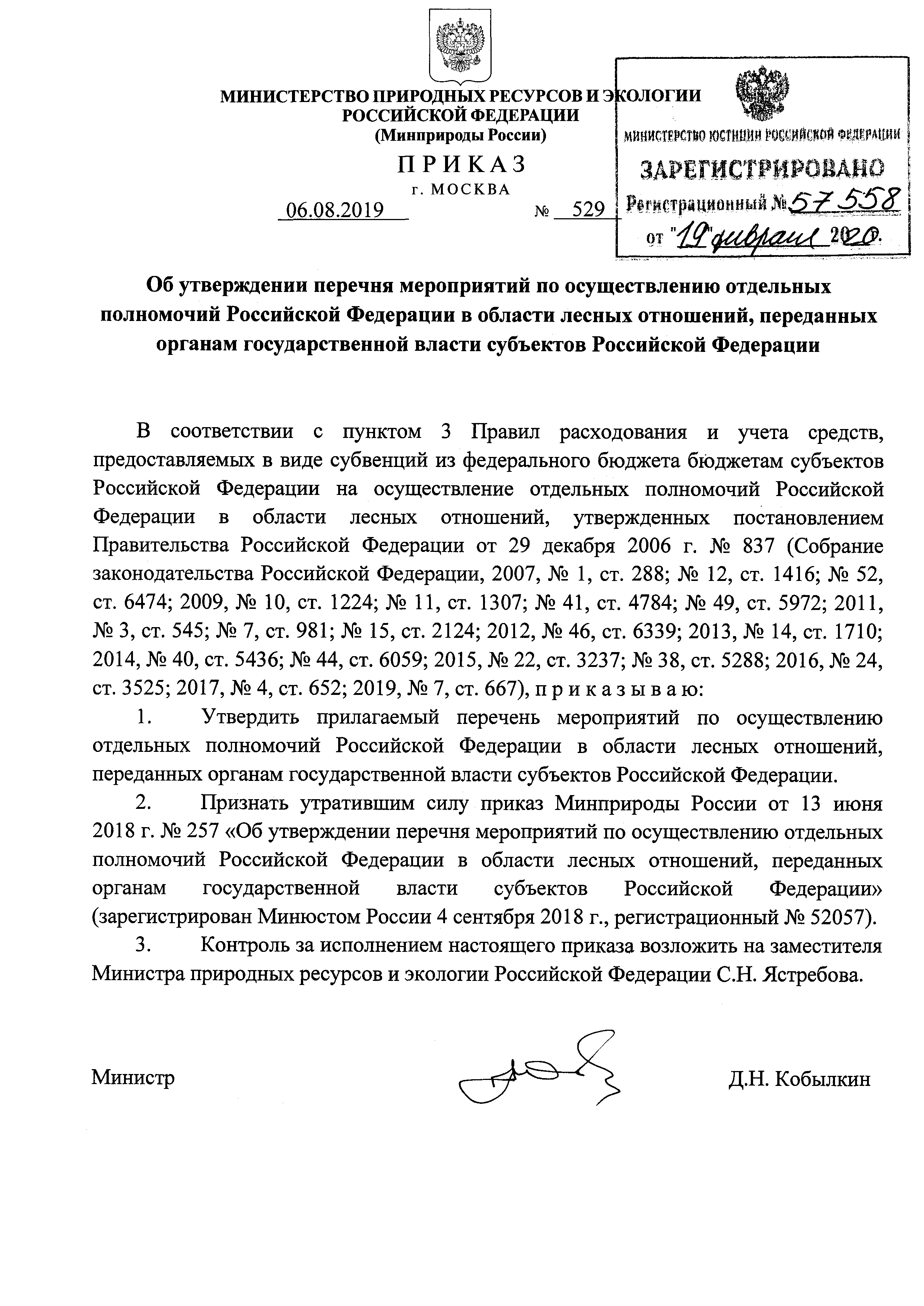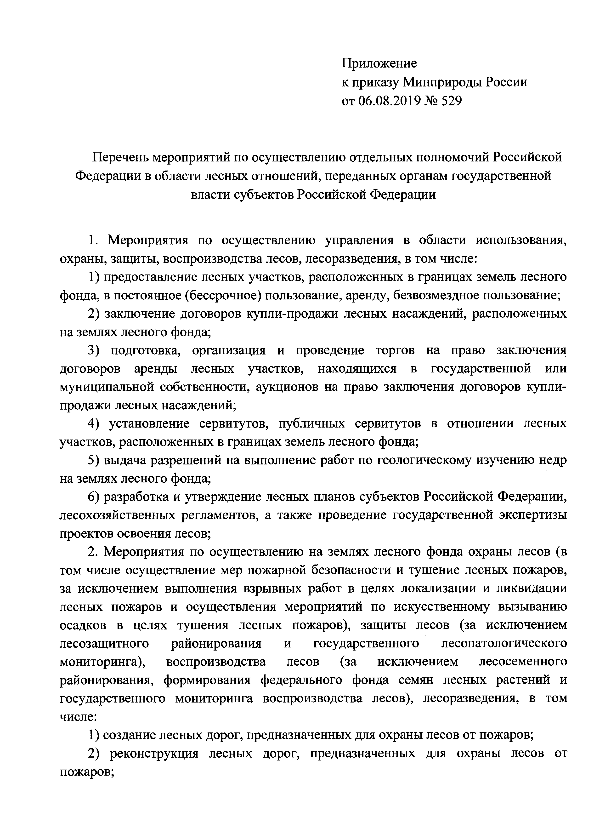 Перечень мероприятий по осуществлению отдельных полномочий Российской Федерации в области лесных отношений, переданных органам государственной власти субъектов Российской Федерации| Статус: | действует | | Название рус.: | Перечень мероприятий по осуществлению отдельных полномочий Российской Федерации в области лесных отношений, переданных органам государственной власти субъектов Российской Федерации | | Дата добавления в базу: | 01.01.2021 | | Дата актуализации: | 01.01.2021 | | Дата введения: | 02.03.2020 | | Утверждён: | 06.08.2019 Министерство природных ресурсов и экологии Российской Федерации (529)