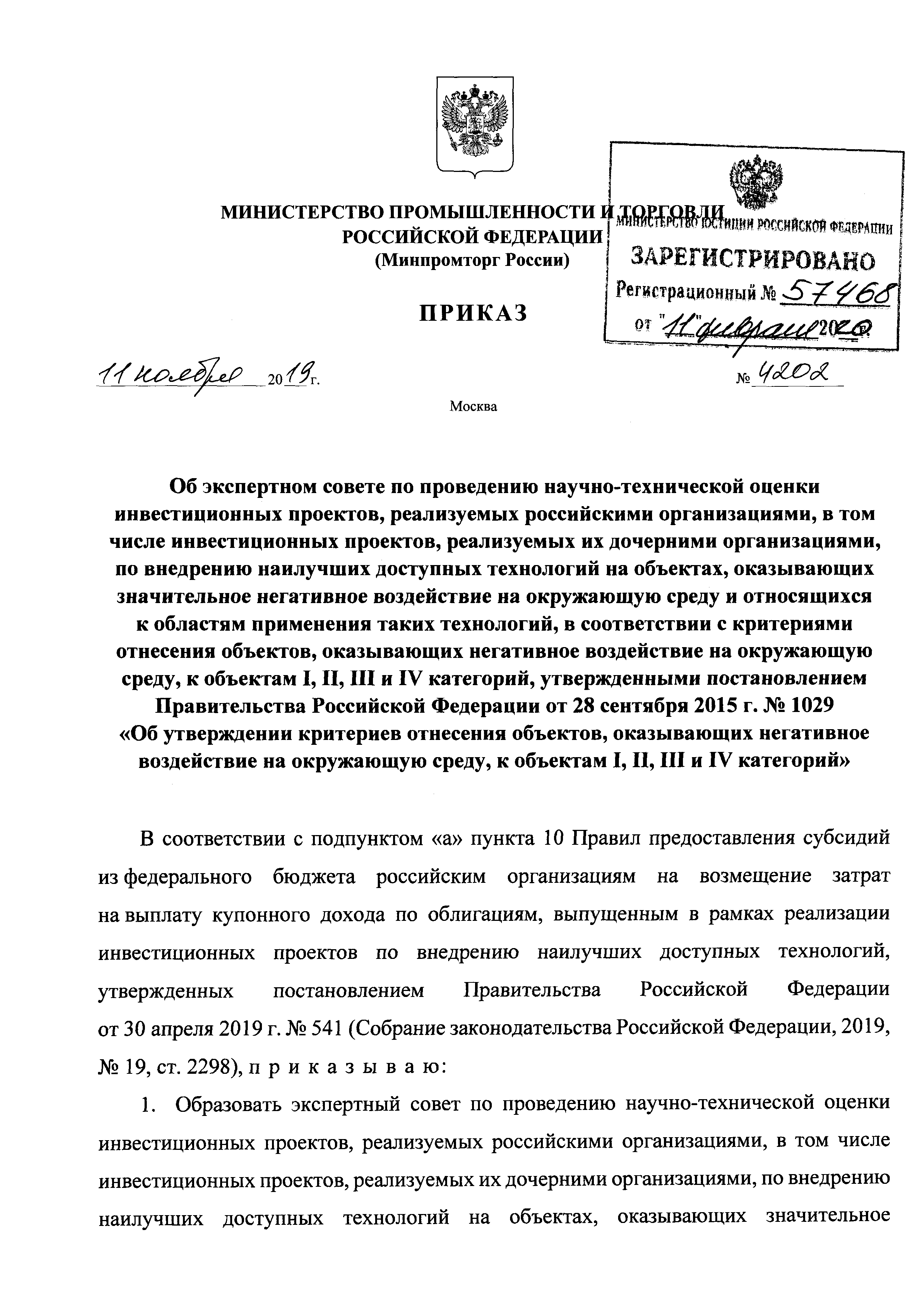 Скачать Положение об экспертном совете по проведению научно-технической оценки инвестиционных проектов, реализуемых российскими организациями, в том числе инвестиционных проектов, реализуемых их дочерними организациями, по внедрению наилучших доступных технологий на объектах, оказывающих значительное негативное воздействие на окружающую среду и относящихся к областям применения таких технологий, в соответствии с критериями отнесения объектов, оказывающих негативное воздействие на окружающую среду, к объектам I, II, III и IV категорий, утвержденными постановлением Правительства Российской Федерации от 28 сентября 2015 г. N 1029 Об утверждении критериев отнесения объектов, оказывающих негативное воздействие на окружающую среду, к объектам I, II, III и IV категорийДата актуализации: 01.01.2021