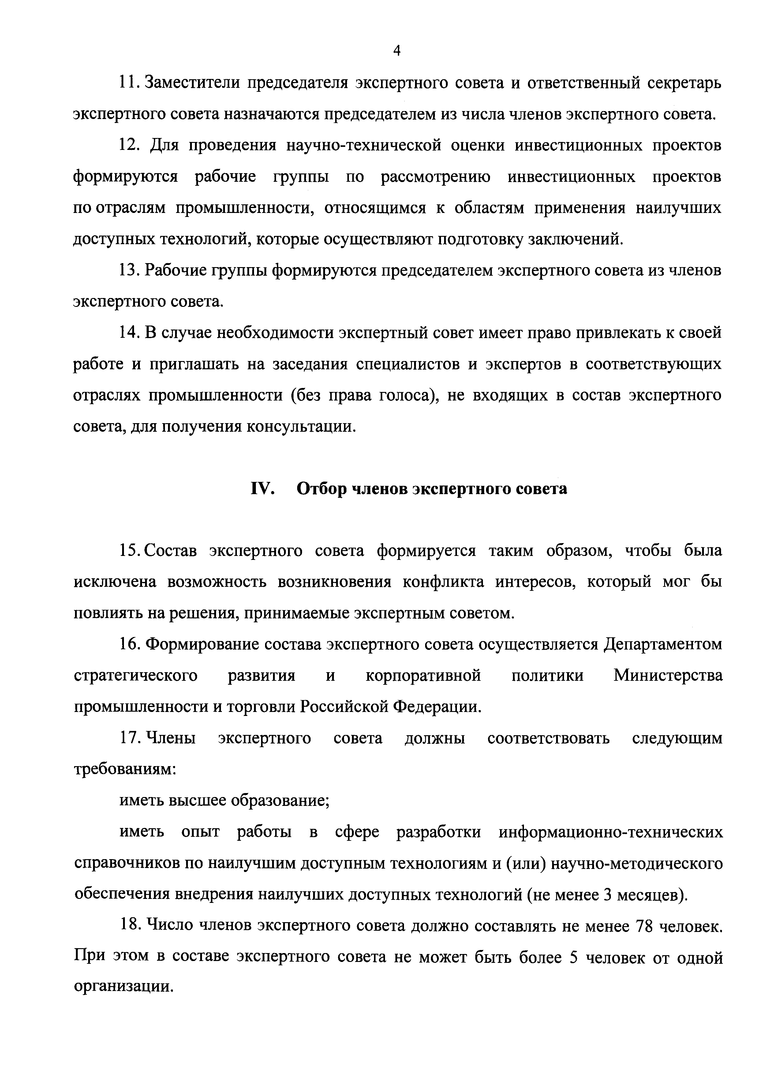 Положение об экспертном совете по проведению научно-технической оценки инвестиционных проектов, реализуемых российскими организациями, в том числе инвестиционных проектов, реализуемых их дочерними организациями, по внедрению наилучших доступных технологий на объектах, оказывающих значительное негативное воздействие на окружающую среду и относящихся к областям применения таких технологий, в соответствии с критериями отнесения объектов, оказывающих негативное воздействие на окружающую среду, к объектам I, II, III и IV категорий, утвержденными постановлением Правительства Российской Федерации от 28 сентября 2015 г. N 1029 "Об утверждении критериев отнесения объектов, оказывающих негативное воздействие на окружающую среду, к объектам I, II, III и IV категорий"| Статус: | действует | | Название рус.: | Положение об экспертном совете по проведению научно-технической оценки инвестиционных проектов, реализуемых российскими организациями, в том числе инвестиционных проектов, реализуемых их дочерними организациями, по внедрению наилучших доступных технологий на объектах, оказывающих значительное негативное воздействие на окружающую среду и относящихся к областям применения таких технологий, в соответствии с критериями отнесения объектов, оказывающих негативное воздействие на окружающую среду, к объектам I, II, III и IV категорий, утвержденными постановлением Правительства Российской Федерации от 28 сентября 2015 г. N 1029 "Об утверждении критериев отнесения объектов, оказывающих негативное воздействие на окружающую среду, к объектам I, II, III и IV категорий" | | Дата добавления в базу: | 01.01.2021 | | Дата актуализации: | 01.01.2021 | | Дата введения: | 23.02.2020 | | Оглавление: | I. Общие положения II. Задачи и функции экспертного совета III. Состав и структура экспертного совета IV. Отбор членов экспертного совета V. Полномочия членов экспертного совета VI. Проверка наличия конфликта интересов у членов экспертного совета | | Утверждён: | 11.11.2019 Министерство промышленности и торговли РФ (4202)