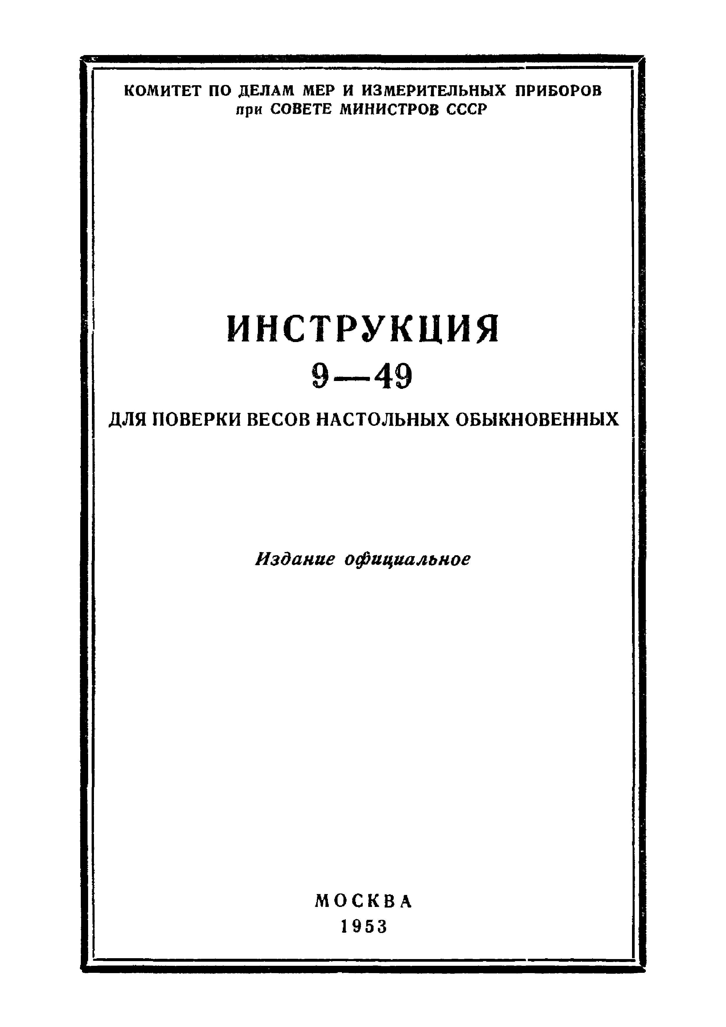 | Название рус.: | Инструкция 9-49 для поверки весов настольных обыкновенных |