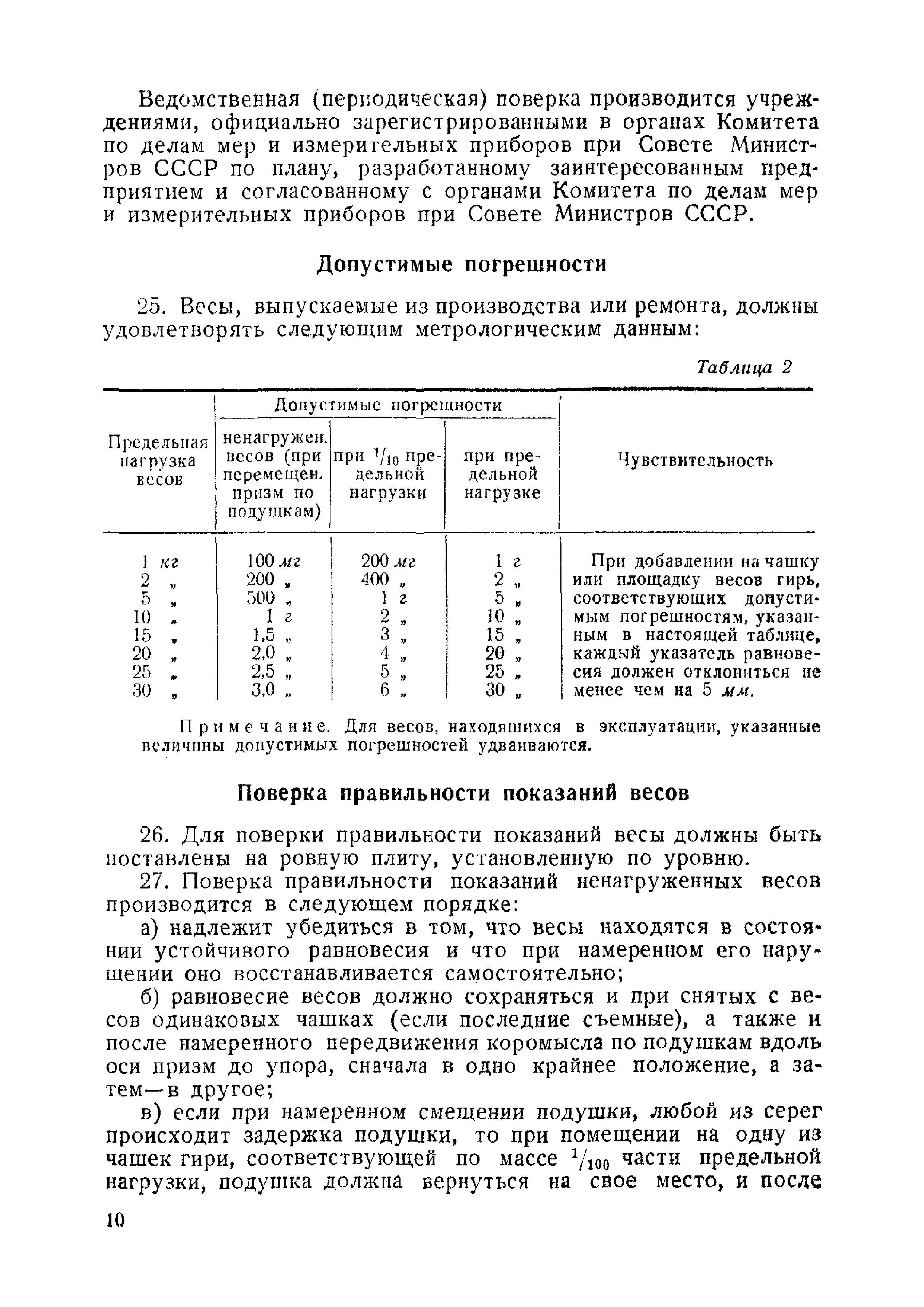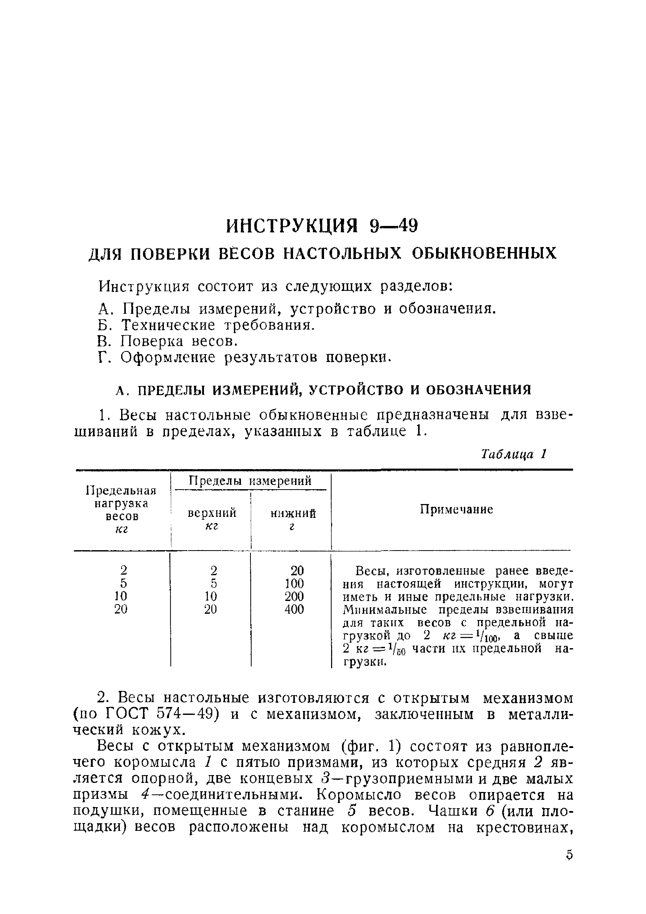 | Оглавление: | А. Пределы измерений, устройство и обозначения Б. Технические требования В. Поверка весов Общая часть Допустимые погрешности Поверка правильности показаний весов Г. Оформление результатов поверки |