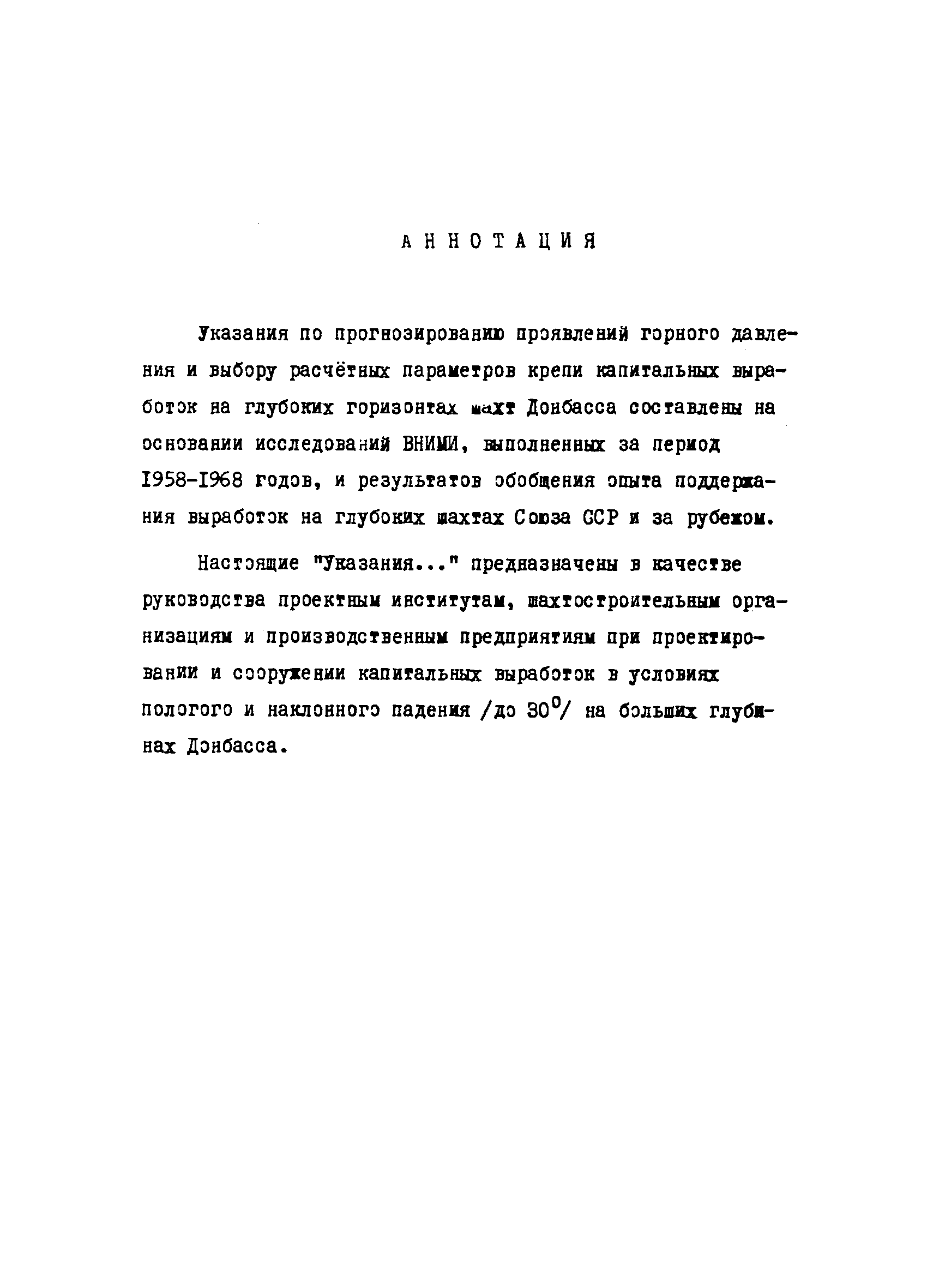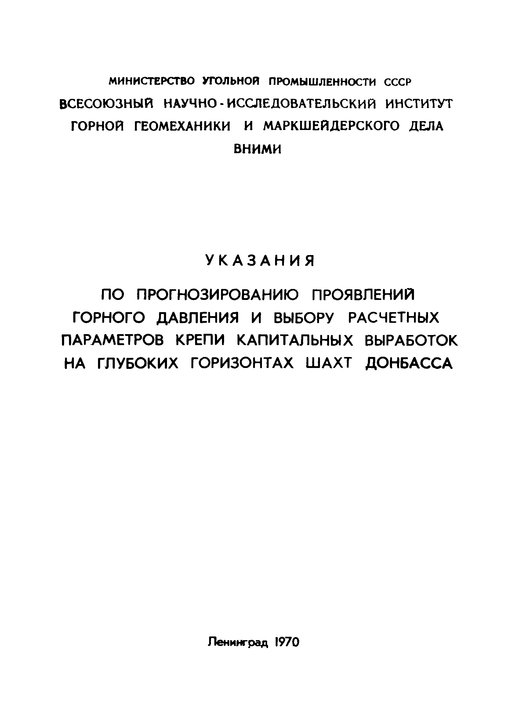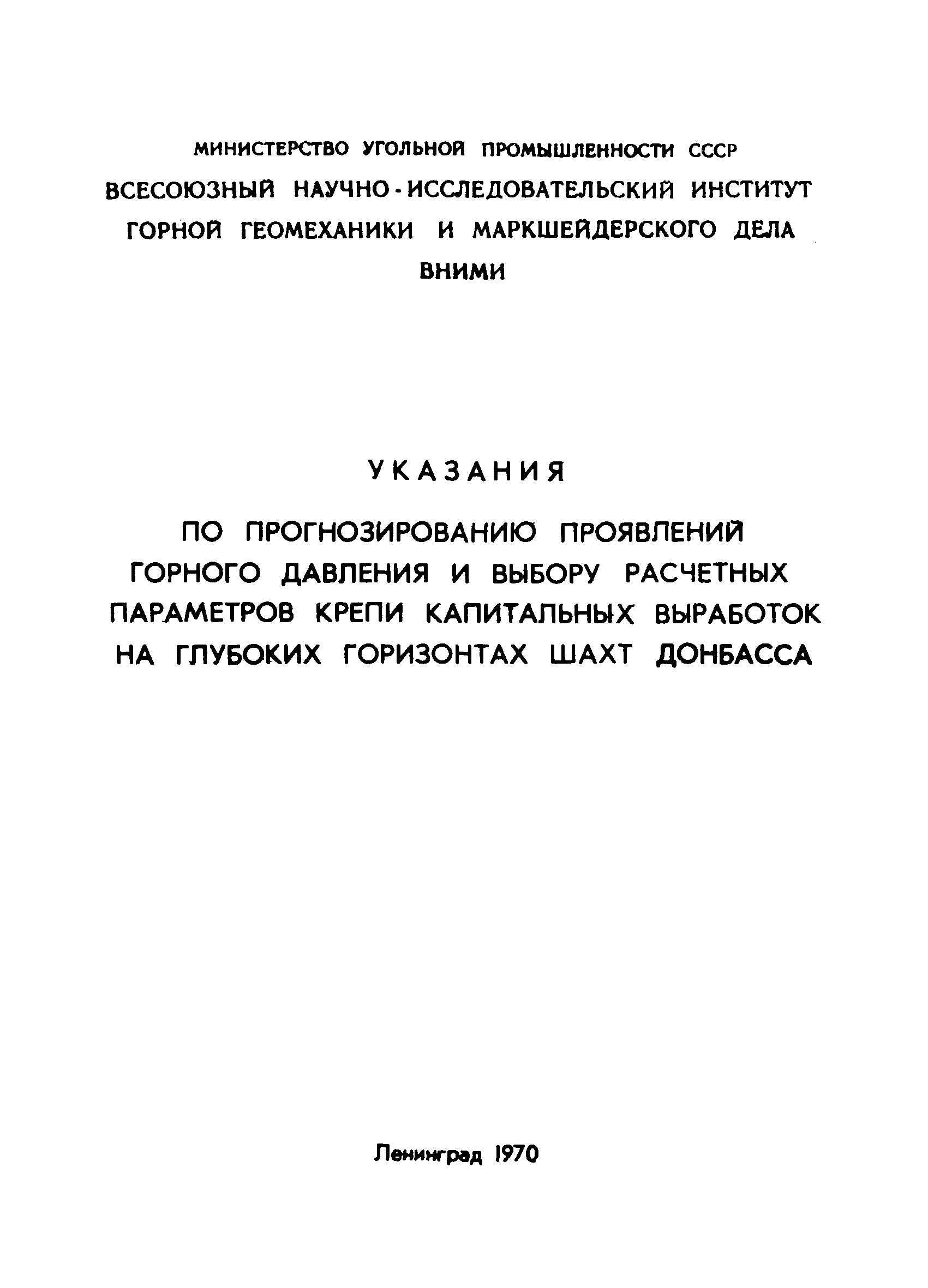 | Название рус.: | Указания по прогнозированию проявлений горного давления и выбору расчетных параметров крепи капитальных выработок на глубоких горизонтах шахт Донбасса |