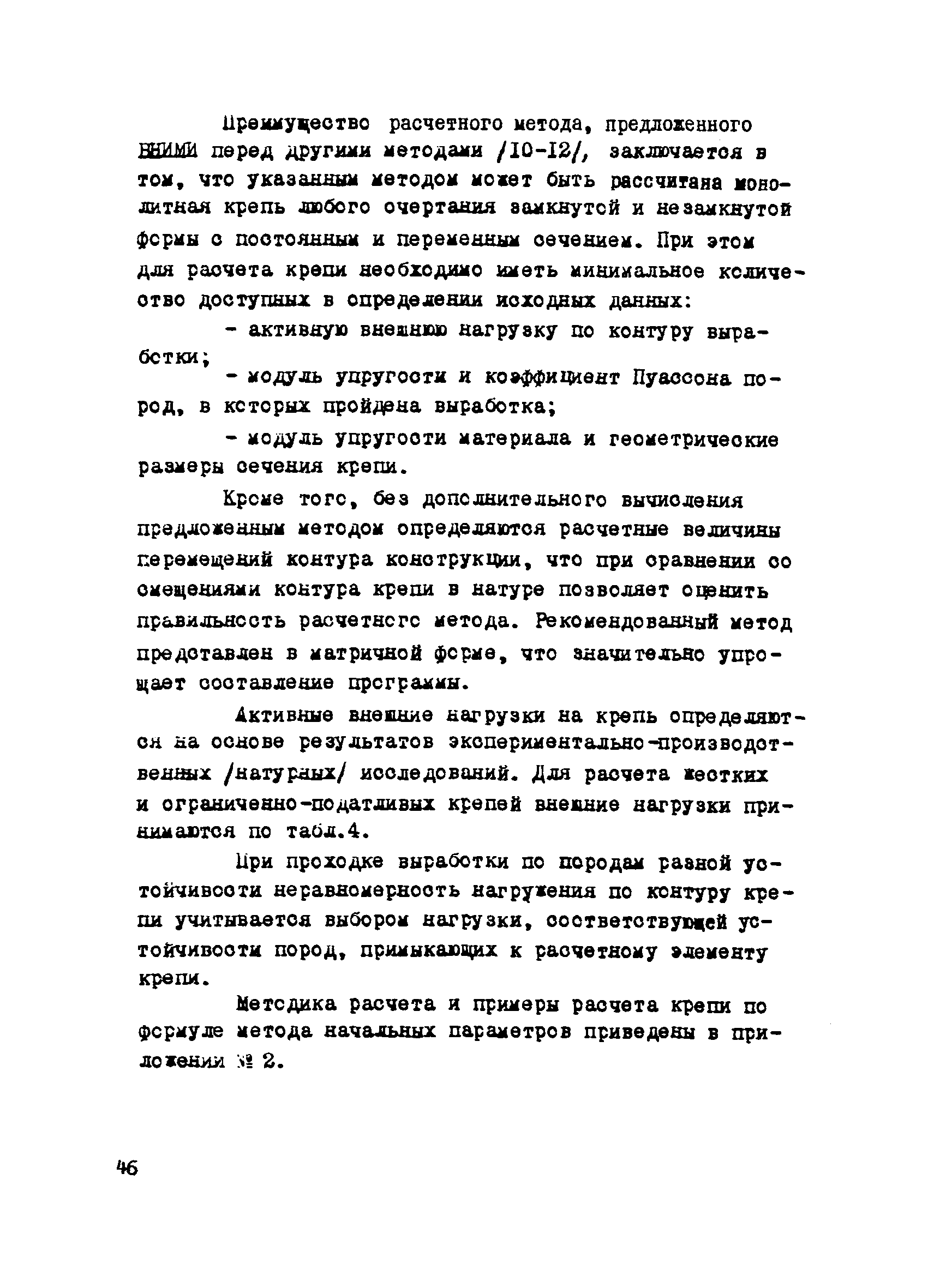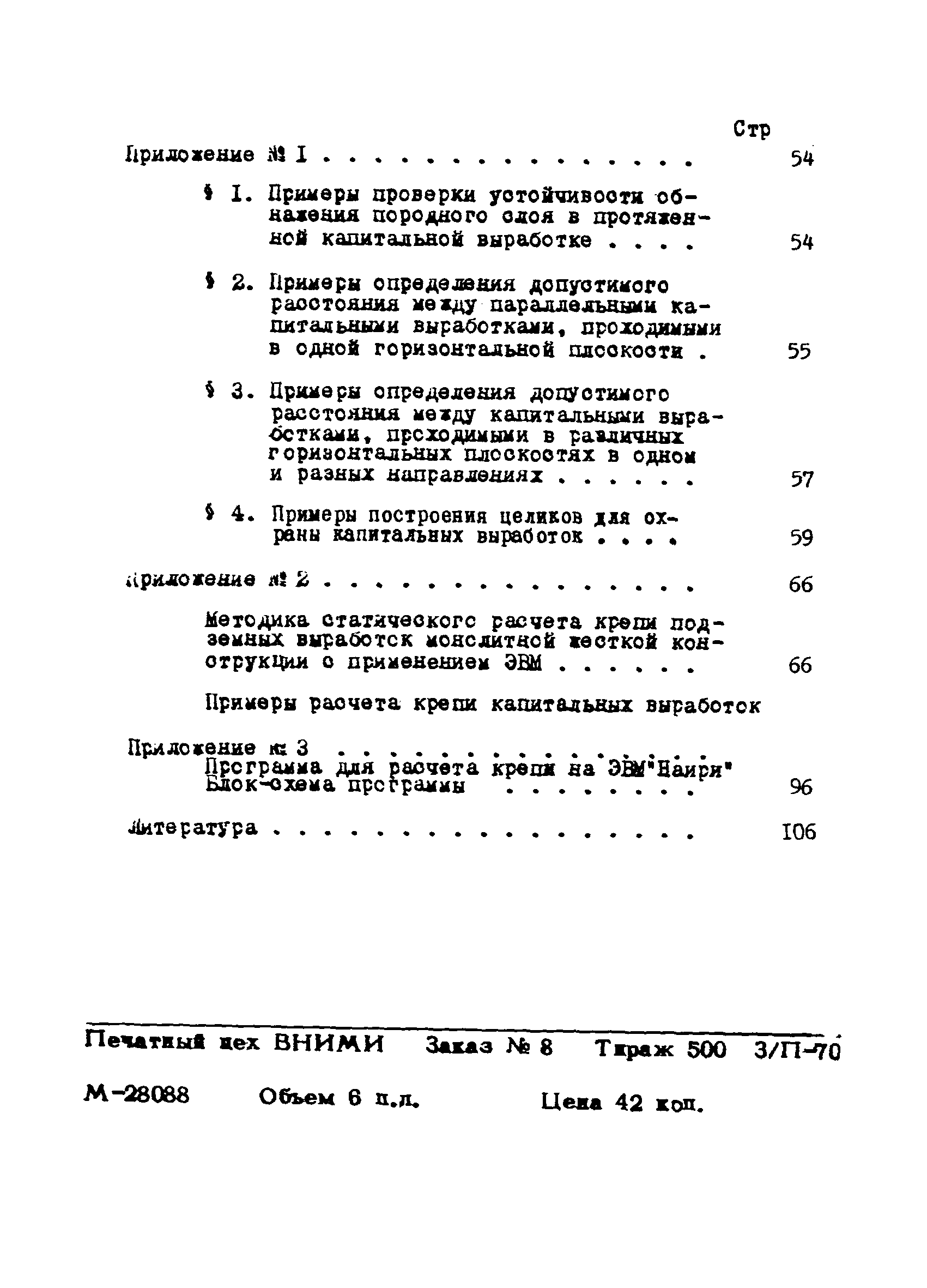 | Оглавление: | Введение 1. Общие положения 2. Область применения 3. Условия работы и характер деформации крепей, применяемых в капитальных выработках на больших глубинах 4. Выбор наиболее благоприятных условий проходки и поддержания, типов и основных расчетных параметров крепи капитальных выработок 5. Охрана горизонтальных капитальных выработок от вредного влияния очистных работ Приложение 1. 1. Примеры проверки устойчивости обнажения породного слоя в протяженной капитальной выработке 2. Примеры определения допустимого определения допустимого расстояния между параллельными капитальными выработками 3. Примеры определения допустимого расстояния между капитальными выработками, проходимыми в различных горизонтальных плоскостях в одном и разных направлениях 4. Примеры построения целиков для охраны капитальных выработок Приложение 2. Методика статического расчета крепи подземных выработок монолитной жесткой конструкции с применением ЭВМ Примеры расчета крепи капитальных выработок Приложение 3. Программа для расчета крепи на ЭВМ "Наири" Блок-схема программы Литература |