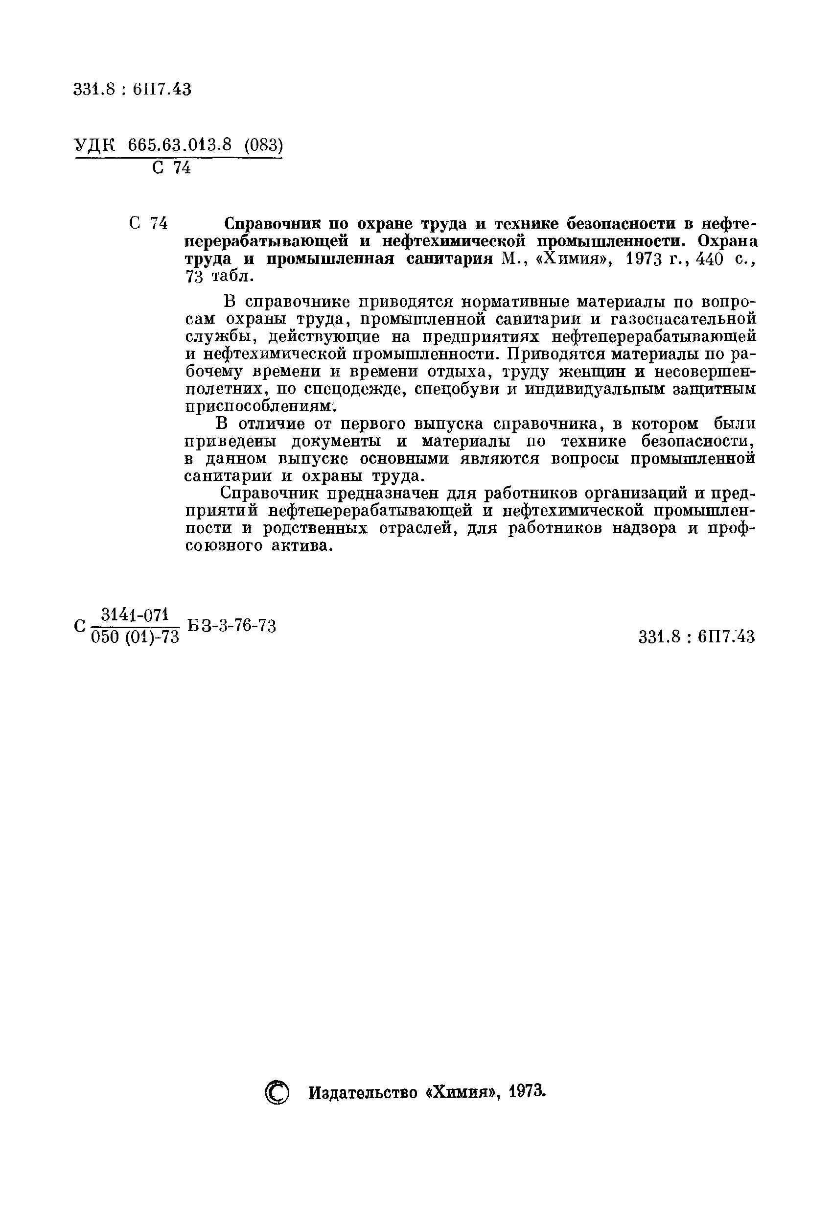 | Принят: | 25.11.1964 ЦК профсоюза рабочих нефтяной и химической промышленности 15.12.1964 Совет народного хозяйства РСФСР 08.12.1964 Государственный комитет химической промышленности при Госплане СССР 15.12.1964 Государственный комитет нефтеперерабатывающей и нефтехимической промышленности при Госплане СССР