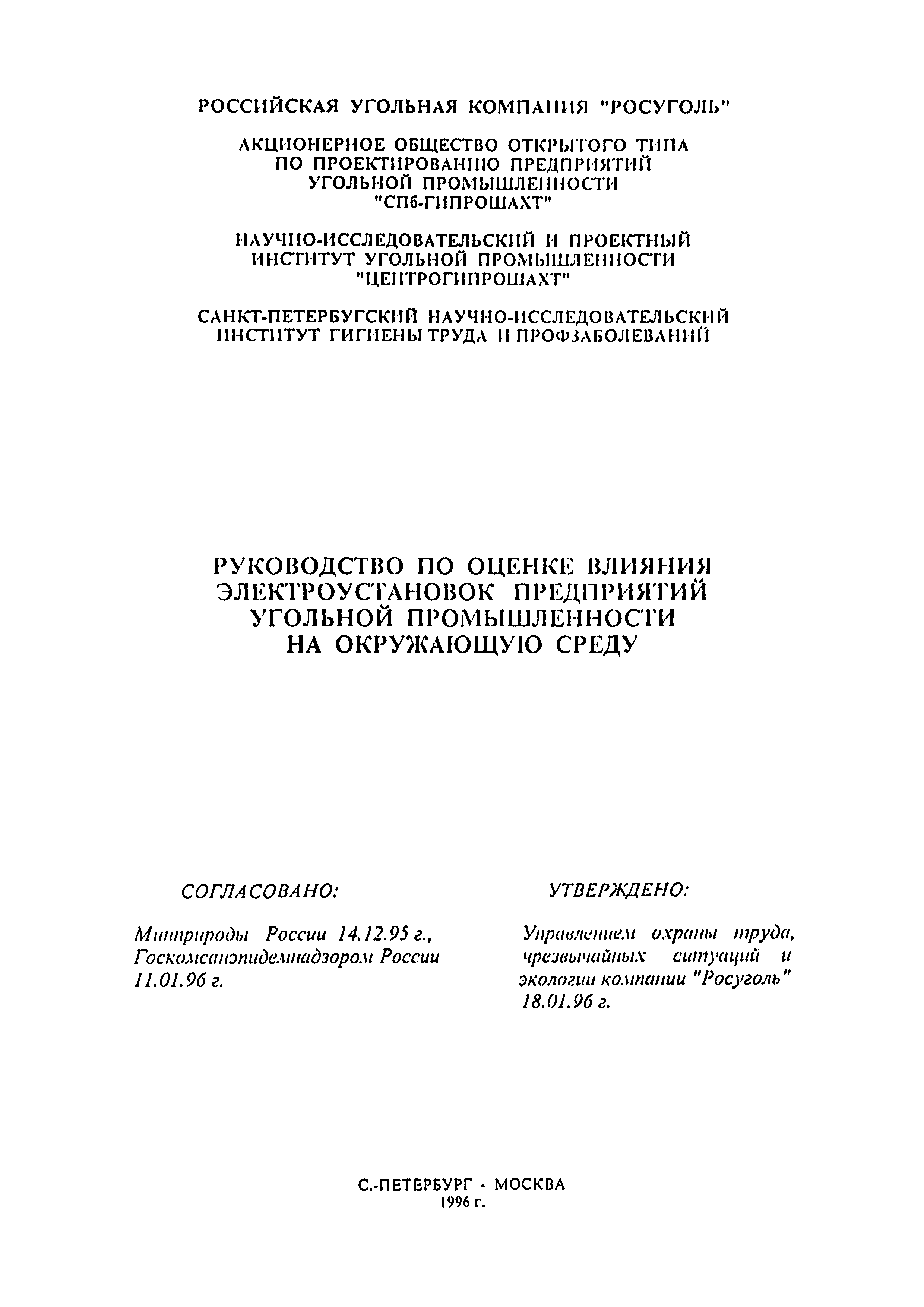 | Область применения: | Требования Руководства распространяются на проектирование защиты от воздействия электрических и магнитных полей в ТЭО (проектах) строительства новых, реконструкции, расширения и технического перевооружения шахт, разрезов, обогатительных и брикетных фабрик, других предприятий угольной промышленности, а также их отдельных объектов |