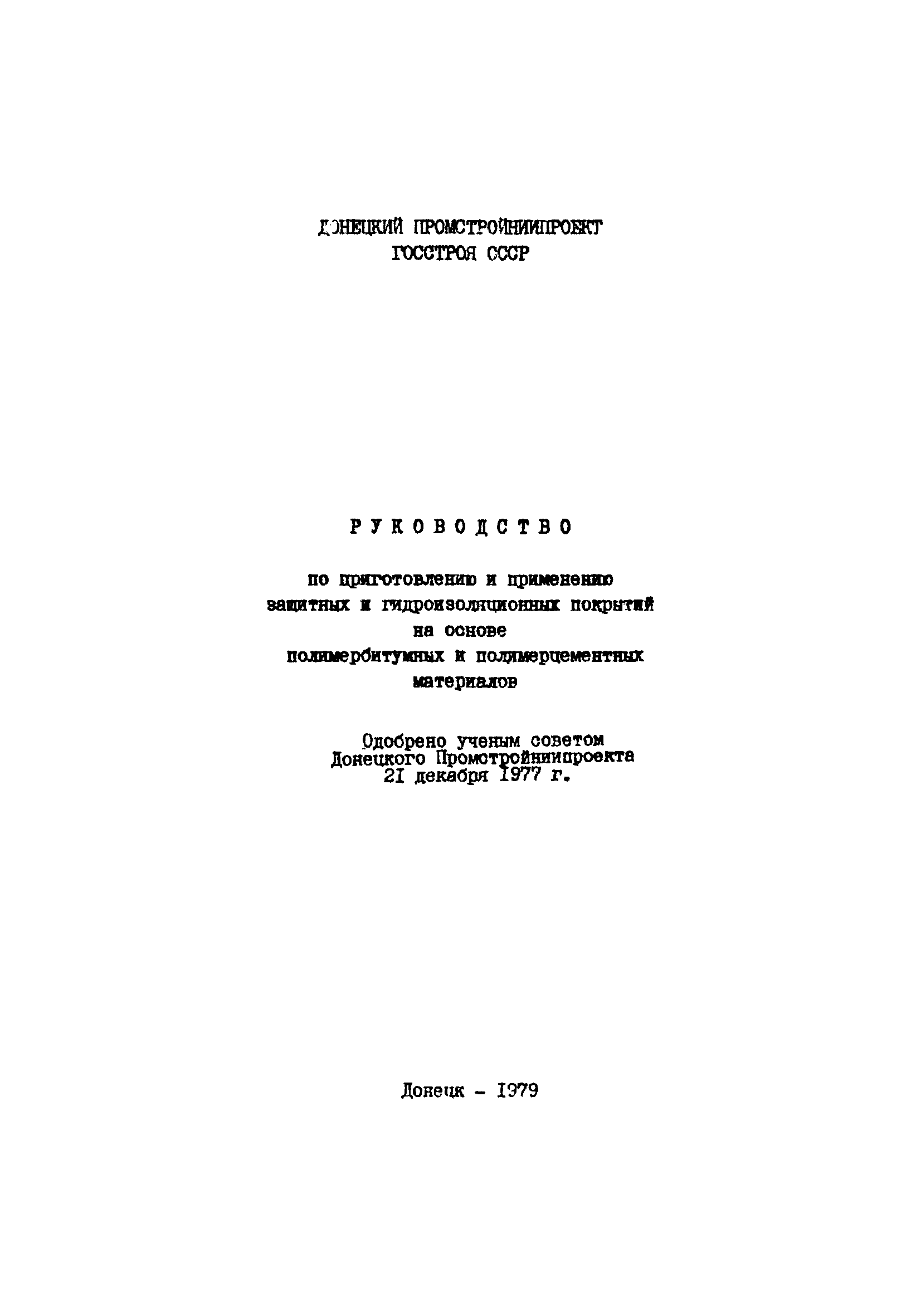 | Название рус.: | Руководство по приготовлению и применению защитных и гидроизоляционных покрытий на основе полимербитумных и полимерцементных материалов |