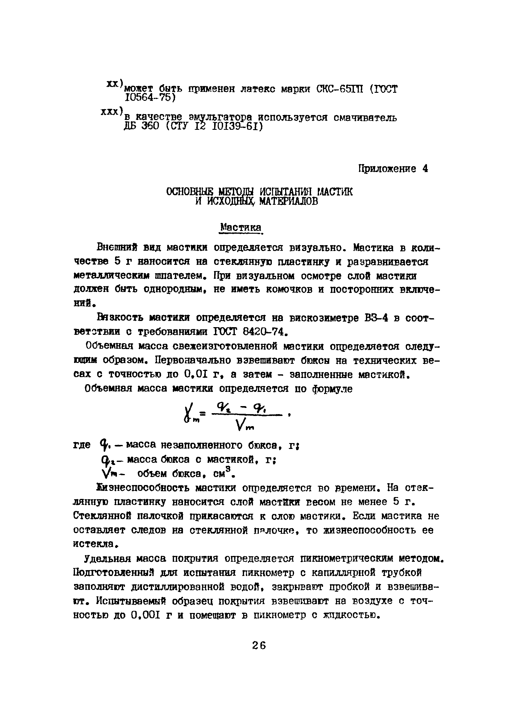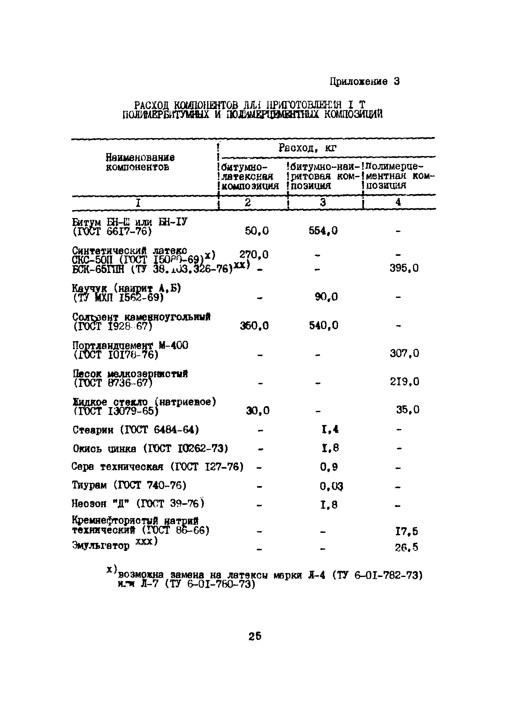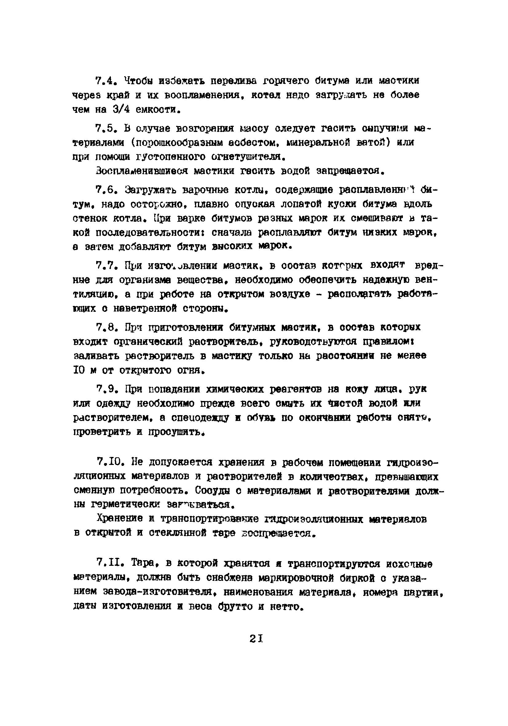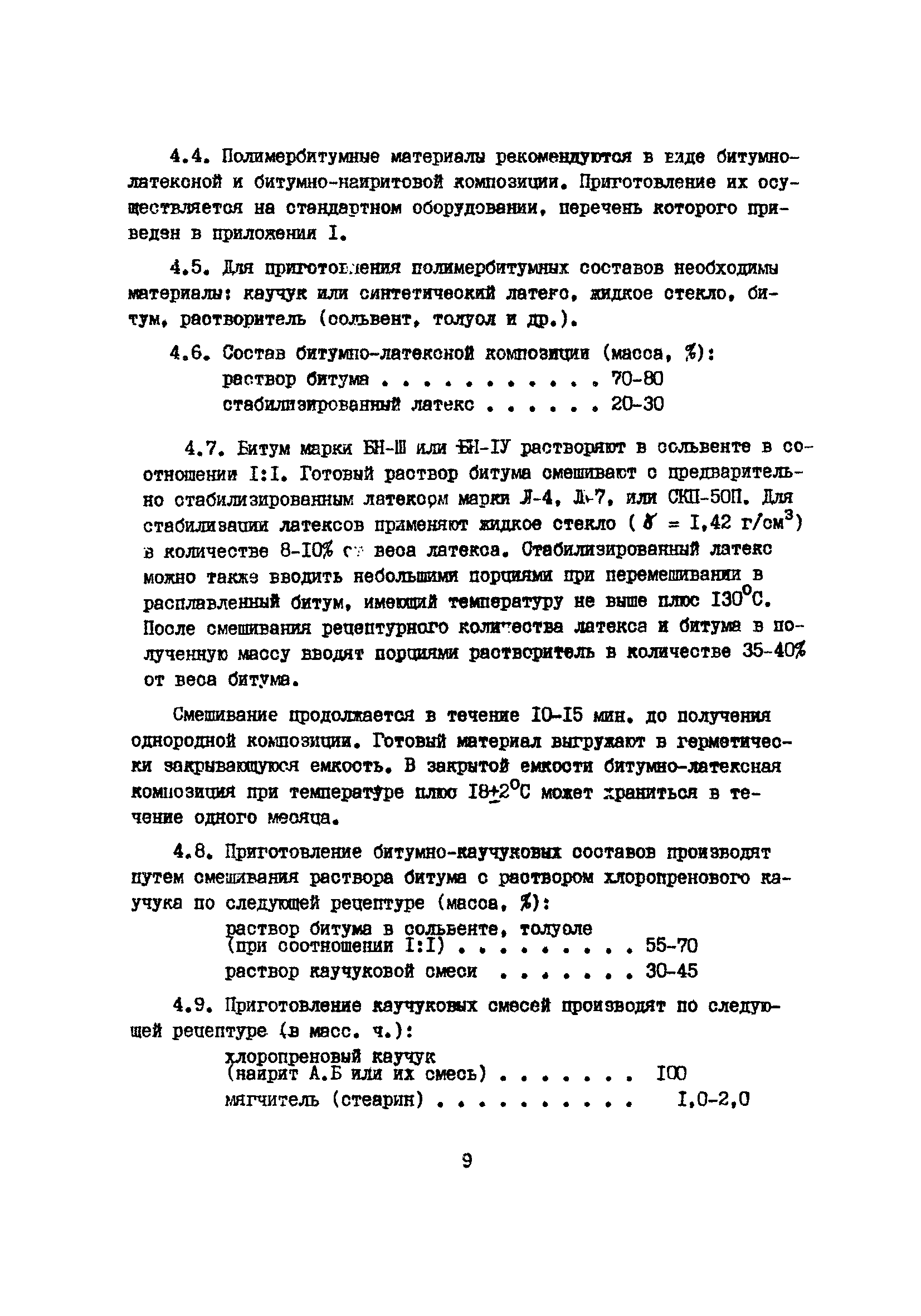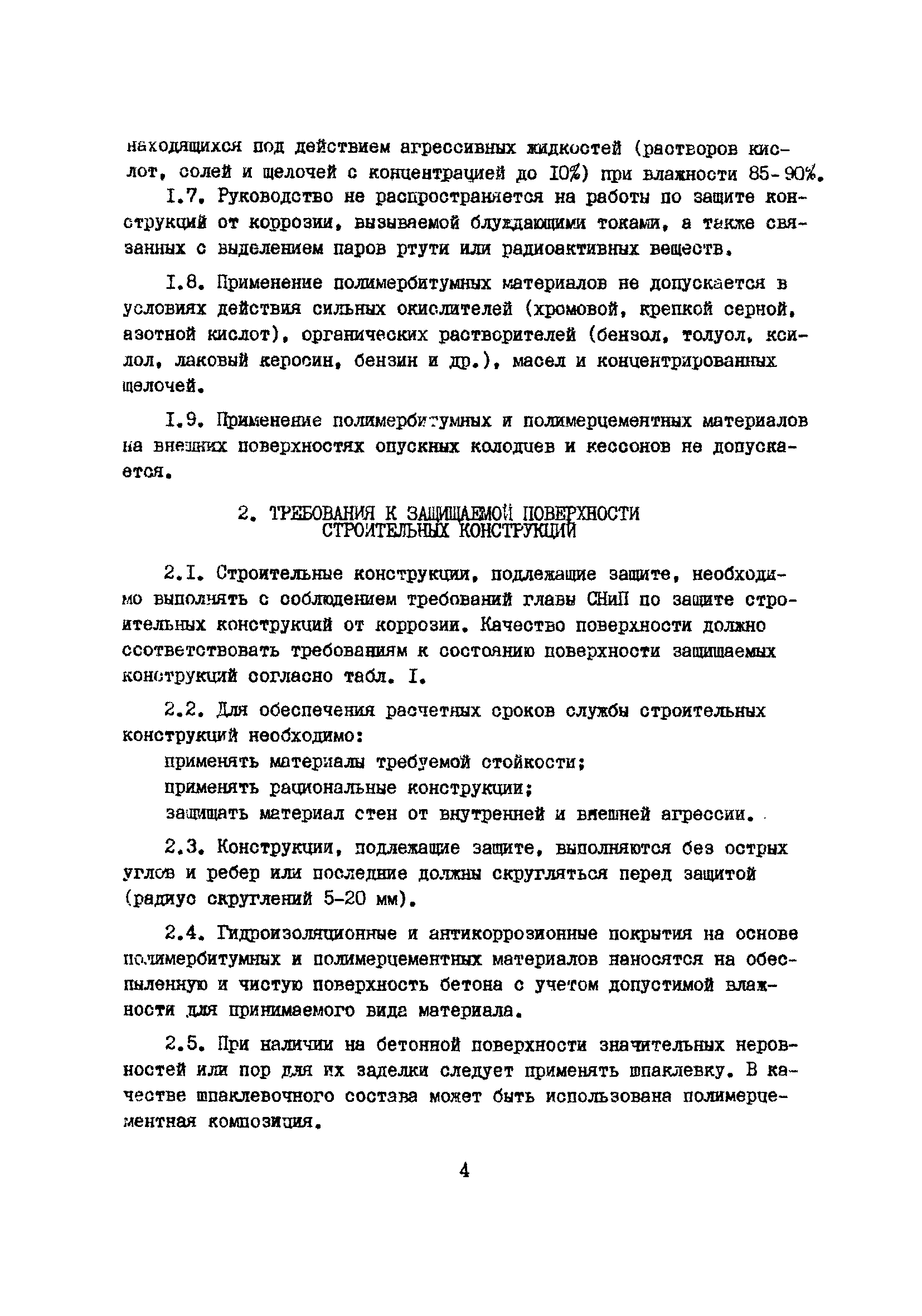 | Оглавление: | 1. Общие положения 2. Требования к защищаемой поверхности строительных конструкций 3. Требования к исходным материалам 4. Составы и технология приготовления полимербитумных и полимерцементных материалов 5. Конструктивные решения и технология устройства защитных покрытий 6. Контроль качества безрулонной гидроизоляции 7. Техника безопасности, противопожарные мероприятия и промсанитария Приложение 1. Перечень оборудования для приготовления полимербитумных и полимерцементных композиций Приложение 2. Перечень оборудования для нанесения полимербитумных и полимерцементных композиций Приложение 3. Расход компонентов для приготовления 1 т полимербитумных и полимерцементных композиций Приложение 4. Основные методы испытания мастик и исходных материалов Приложение 5. Пример расчета экономической эффективности применения полимербитумных материалов |