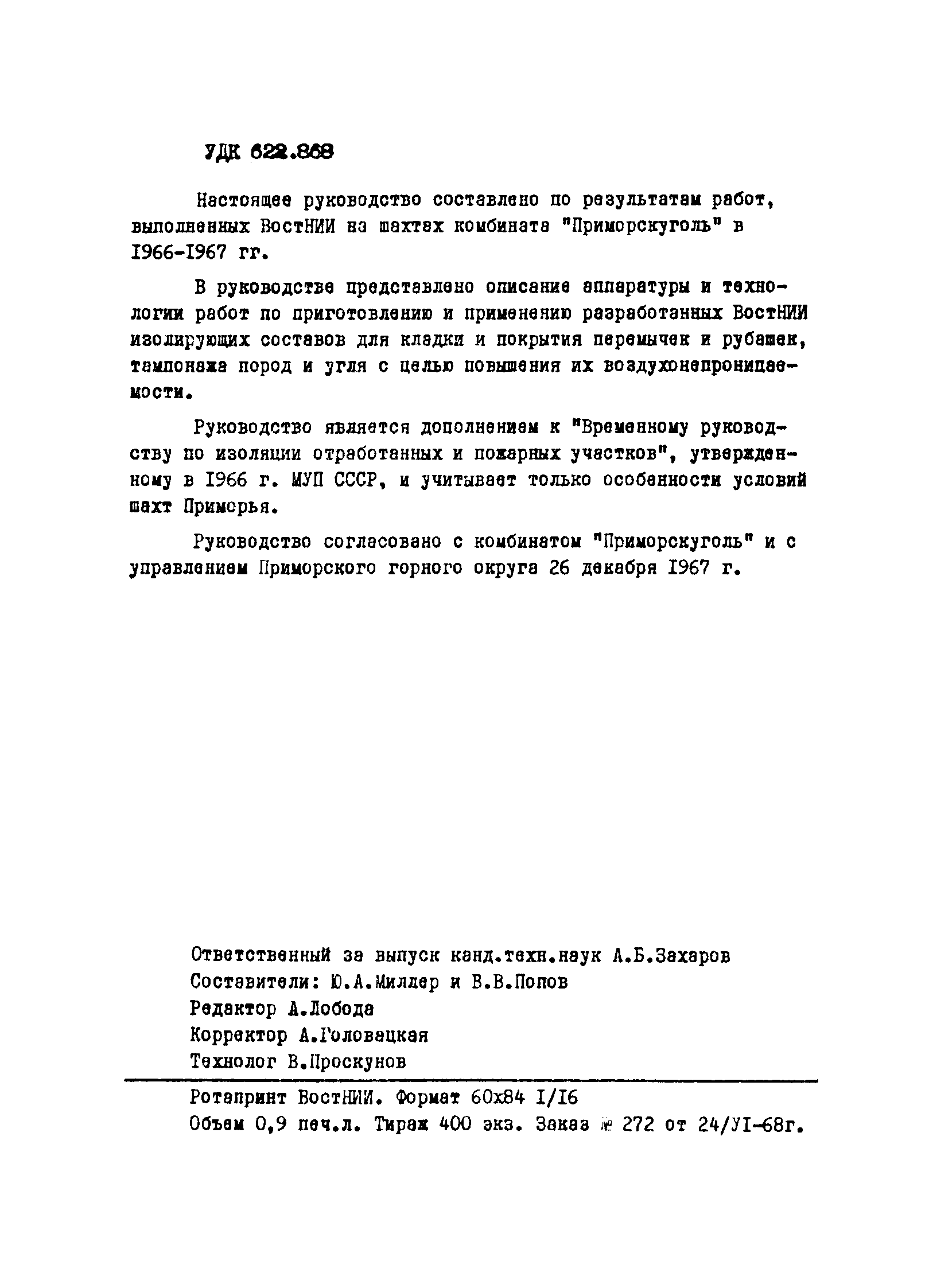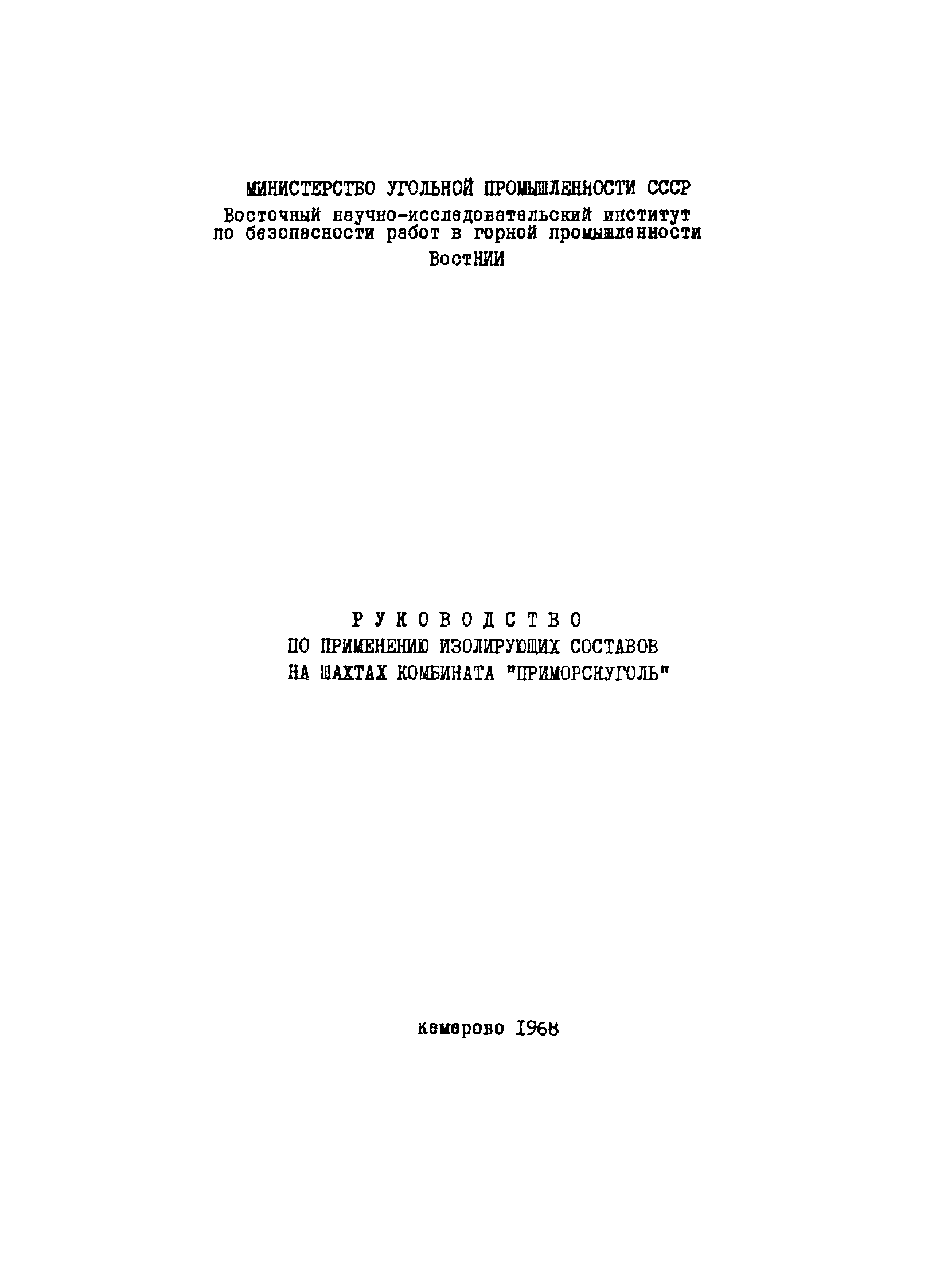 | Название рус.: | Руководство по применению изолирующих составов на шахтах комбината "Приморскуголь" |