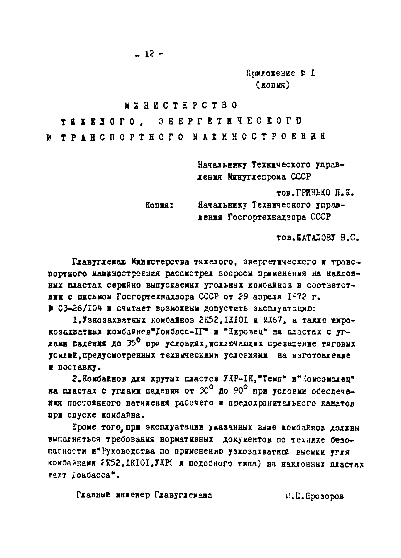 | Утверждён: | 30.11.1972 Министерство угольной промышленности СССР (USSR Ministry of the Coal Industry ) Министерство угольной промышленности УССР