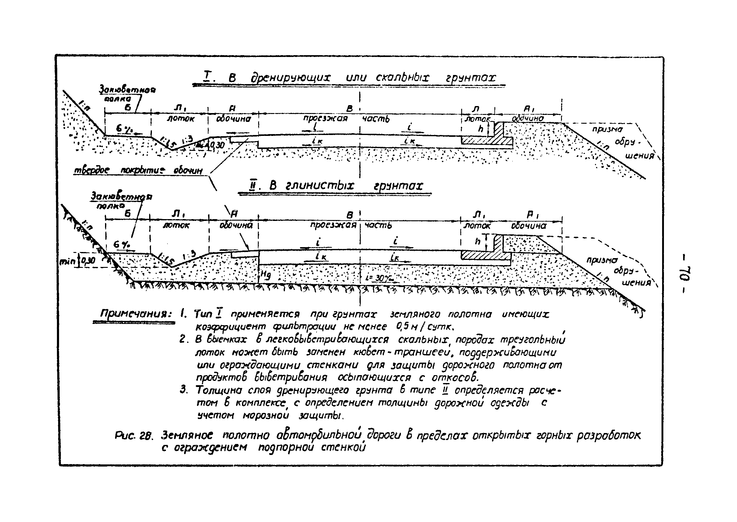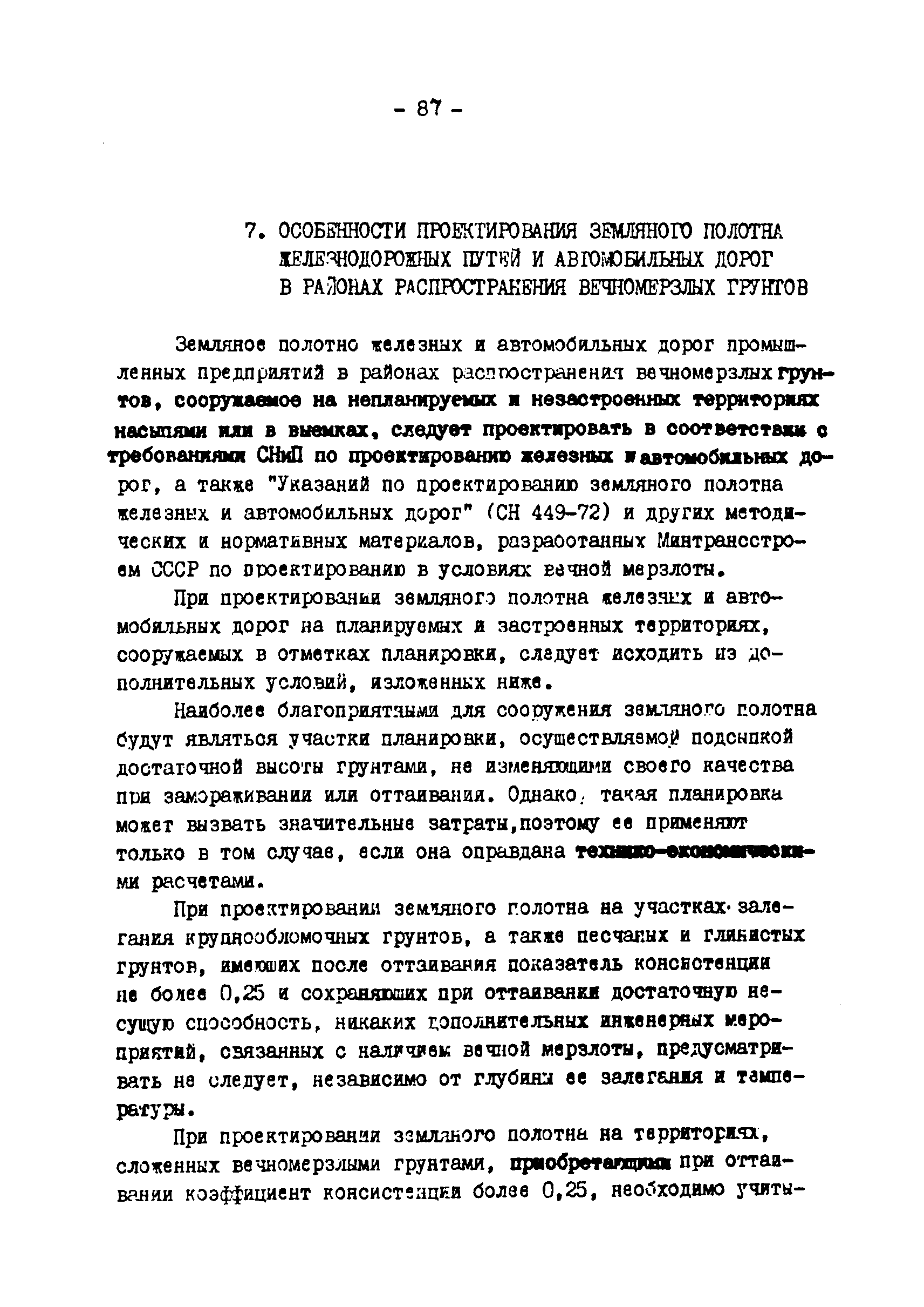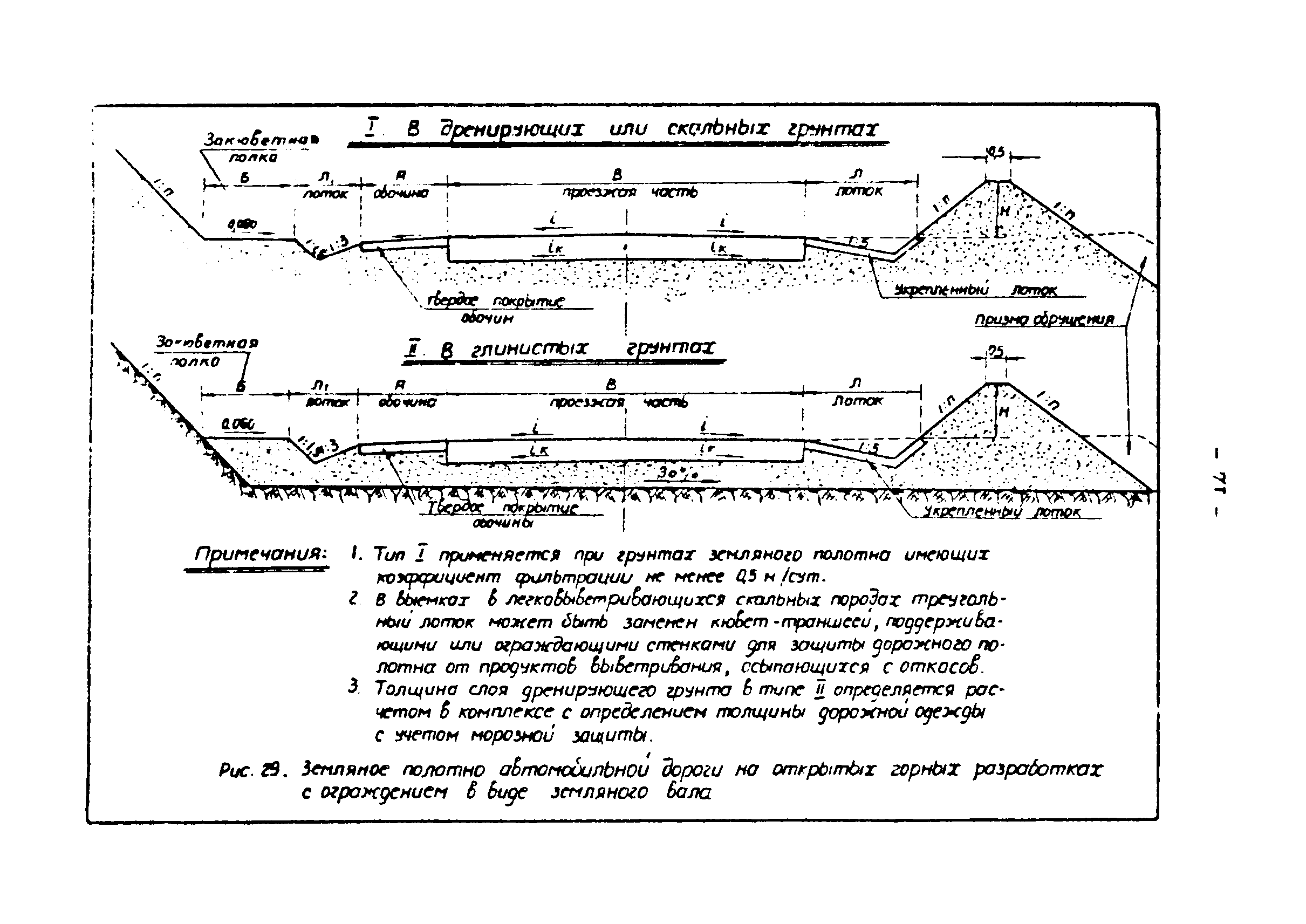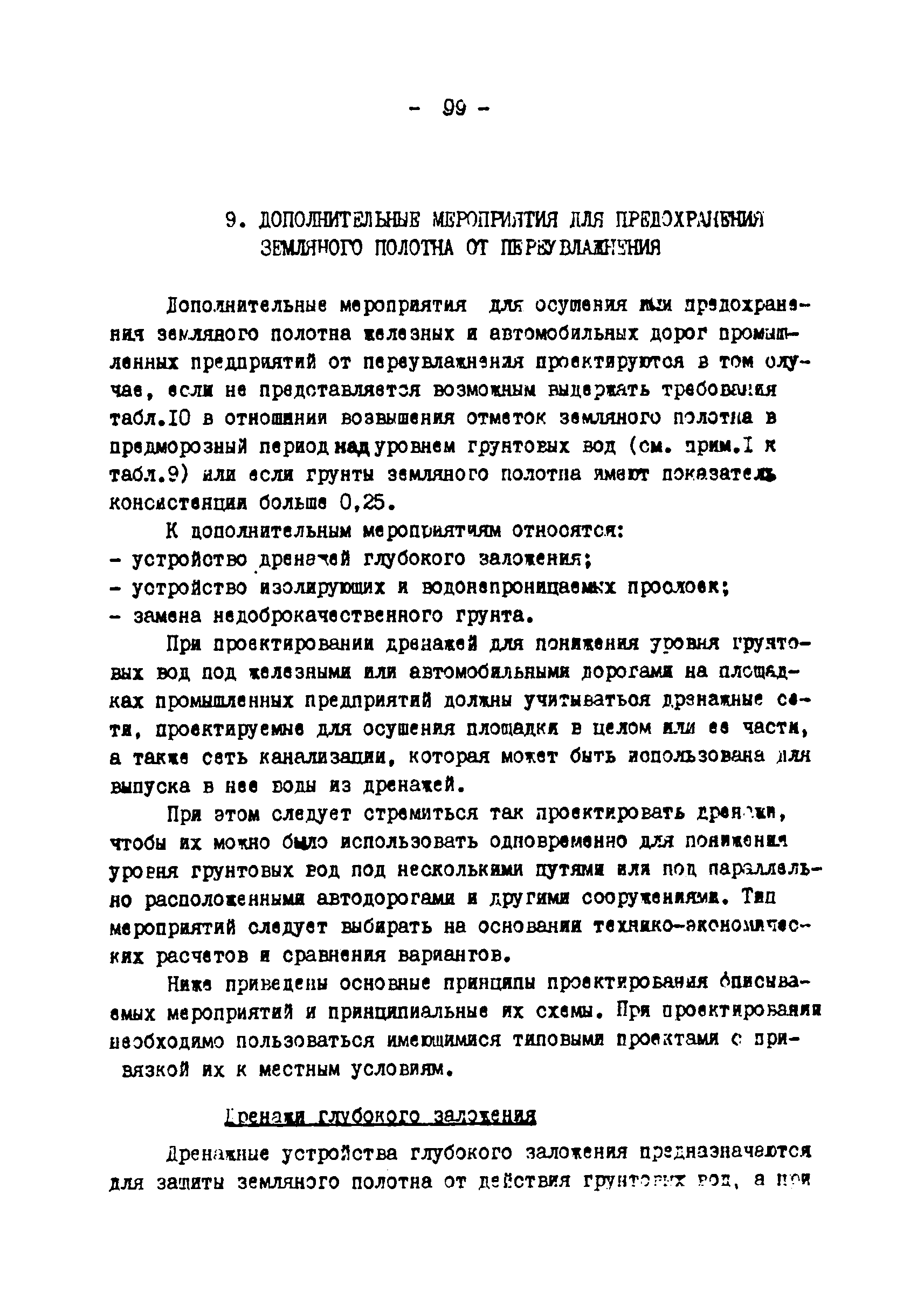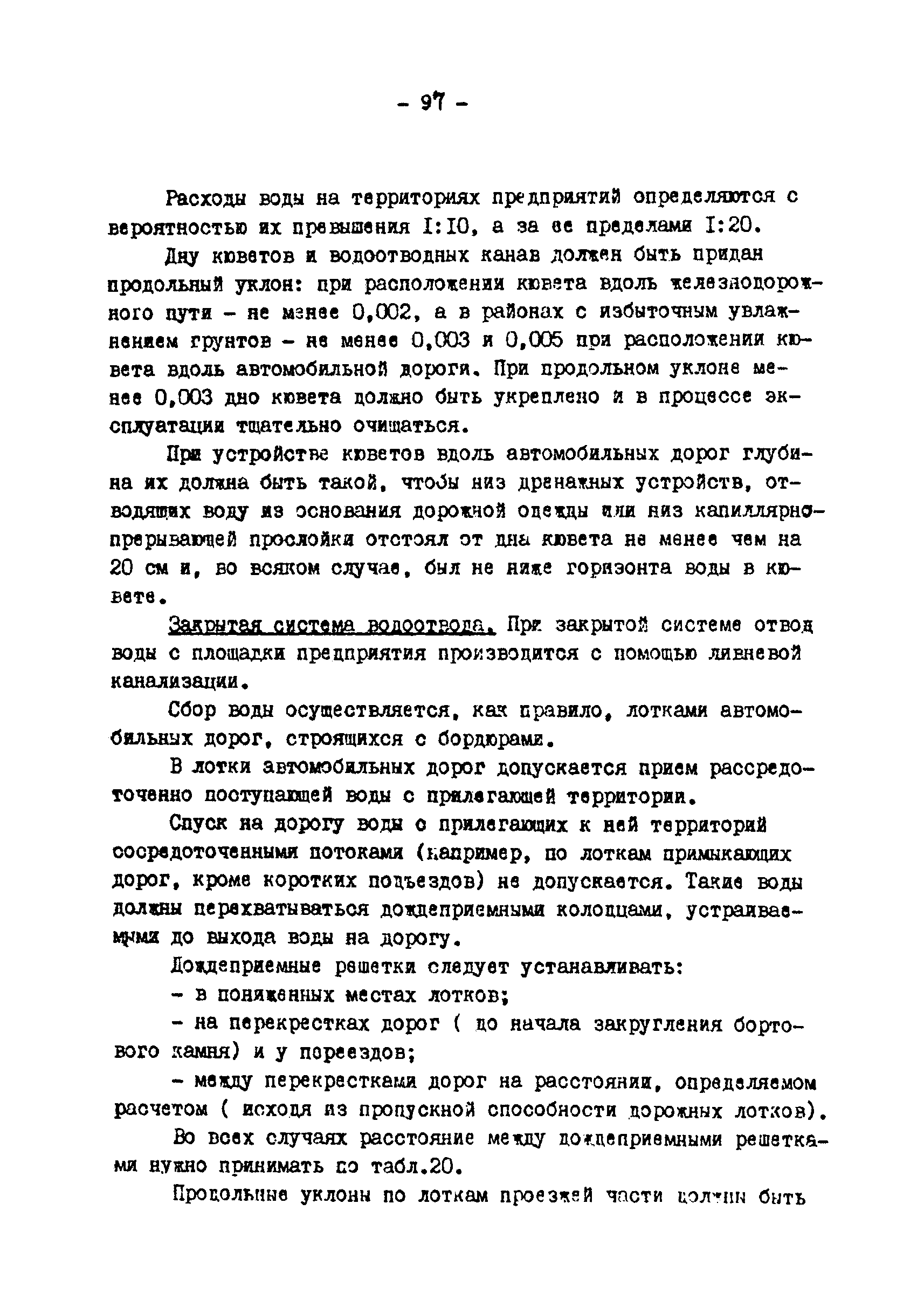 | Оглавление: | Предисловие 1. Общие положения 2. Классификация и качественные характеристики грунтов 3. Земляное полотно железнодорожных путей 4. Земляное полотно внутренних автомобильных дорог 5. Земляное полотно автомобильных дорог соединяющих селитебные территории с промышленными предприятиями 6. Особенности проектирования земляного полотна при засоленных грунтах 7. Особенности проектирования земляного полотна железнодорожных путей и автомобильных дорог в районах распространения вечномерзлых грунтов 8. Организация поверхностного водоотвода от железнодорожных путей и автомобильных дорог промышленных предприятий 9. Дополнительные мероприятия для предохранения земляного полотна от переувлажнения Приложение 1. Дренаж заглубленной балластной призмы железнодорожных путей Приложение 2. Перечень исходных данных для проектирования земляного полотна и водоотвода Приложение 3. Методика расчета толщины земляного слоя слабого и пучинистого грунтов дренирующими Приложение 4. Перечень нормативных документов, типовых проектов, методических материалов и литературы, используемых при проектировании земляного полотна железных дорог промышленных предприятий |