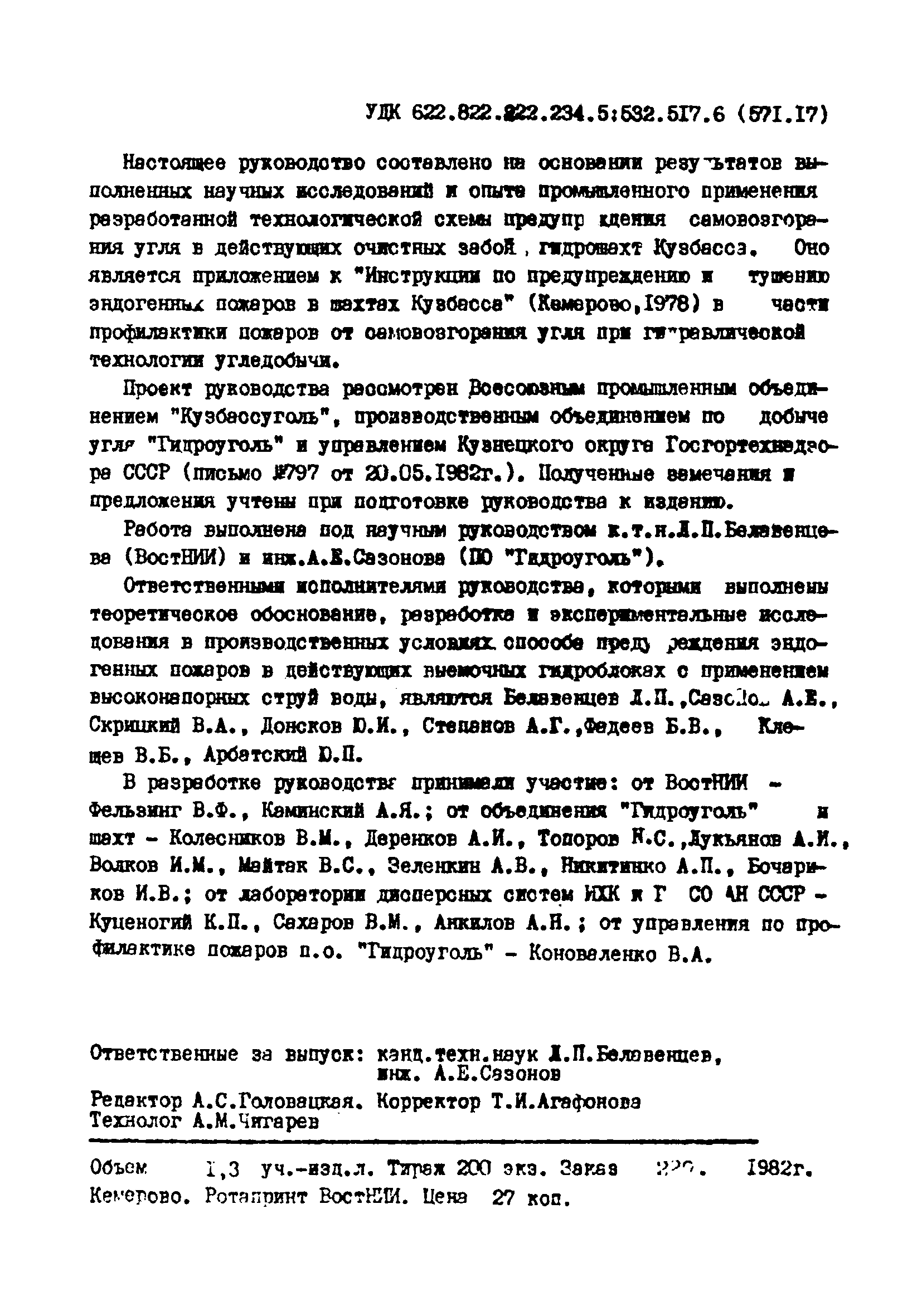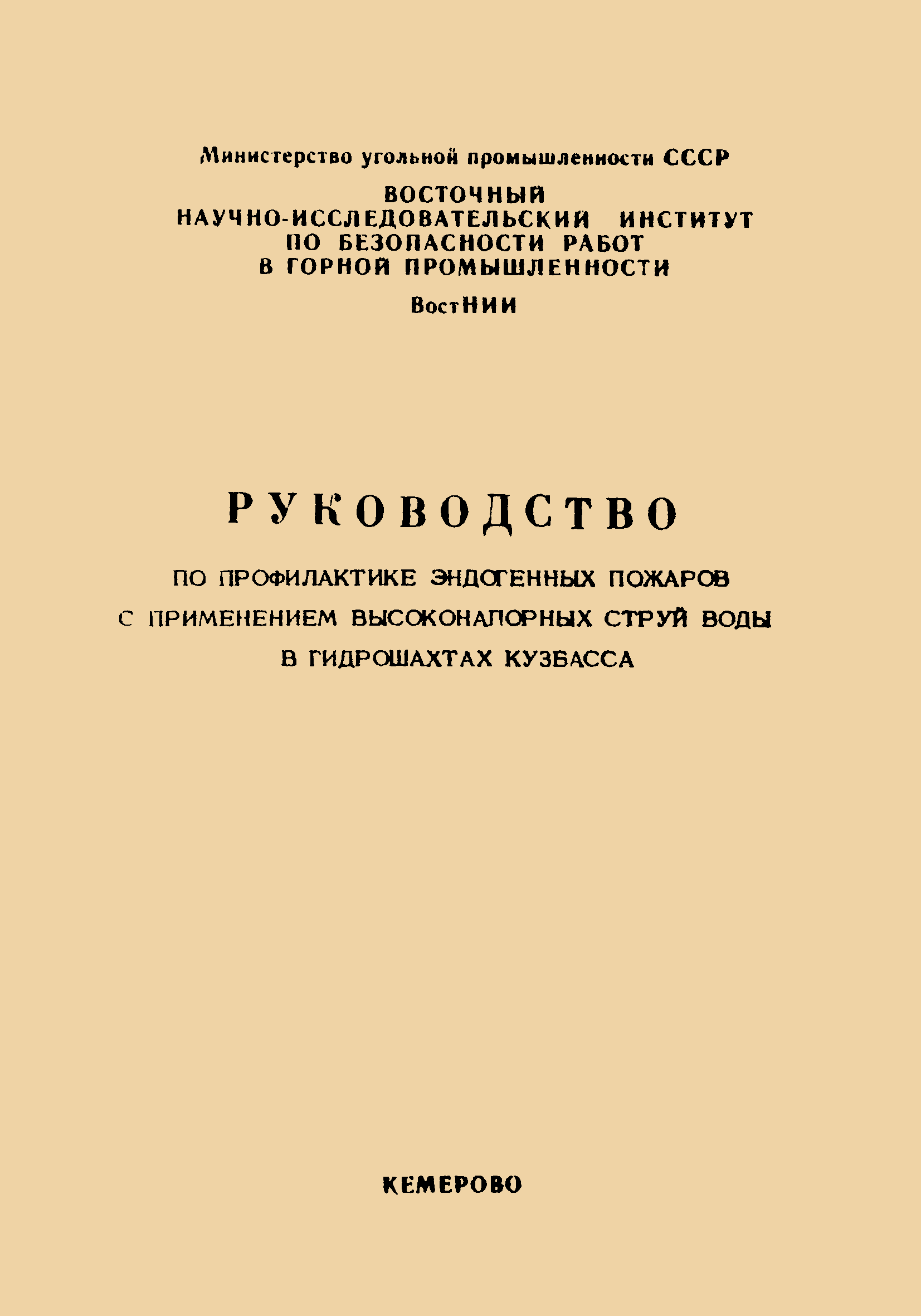 | Название рус.: | Руководство по профилактике эндогенных пожаров с применением высоконапорных струй воды в гидрошахтах Кузбасса |