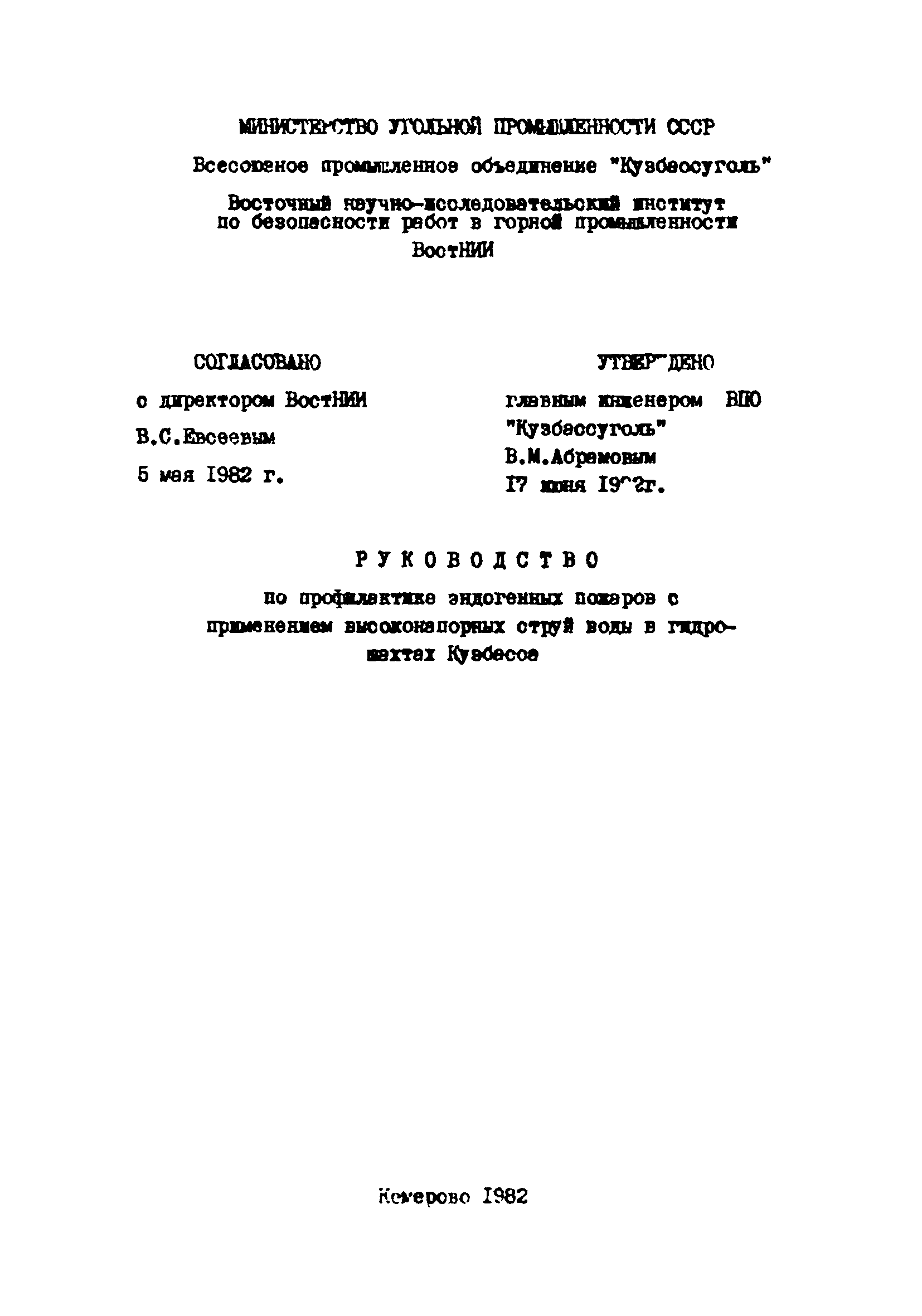 | Утверждён: | 17.06.1982 Кузбассуголь