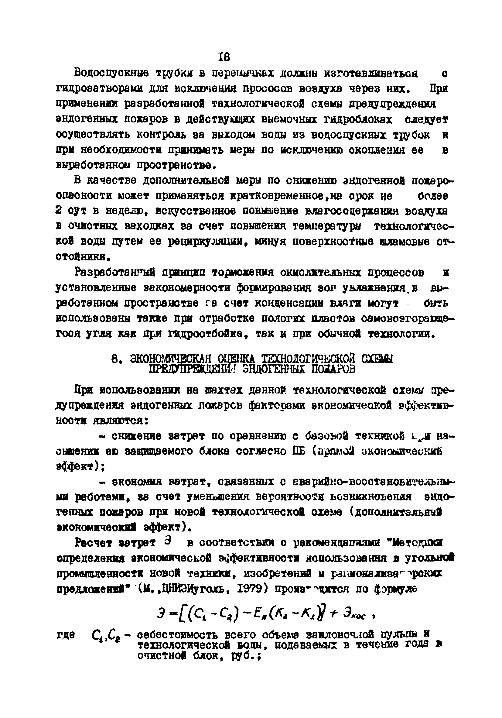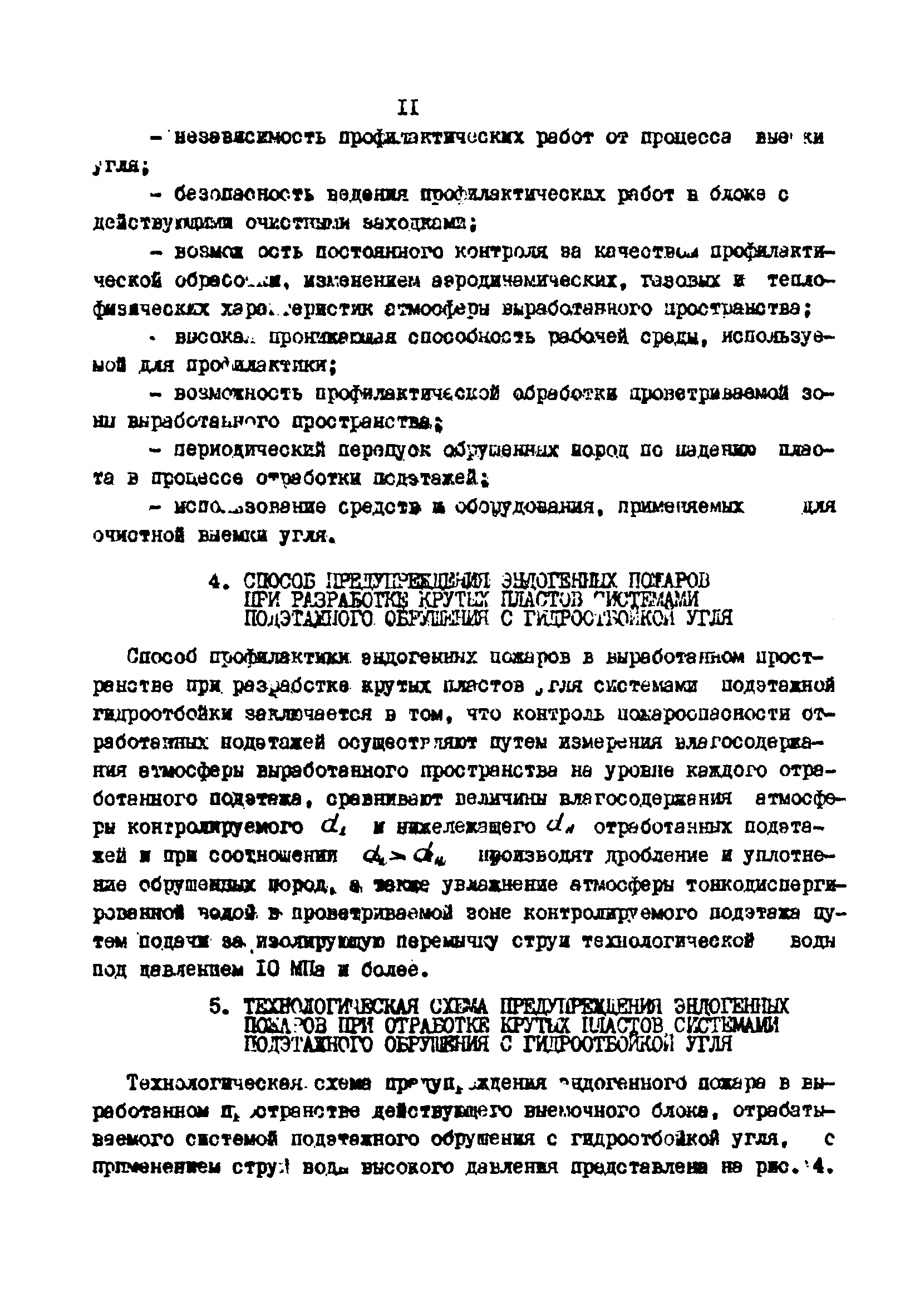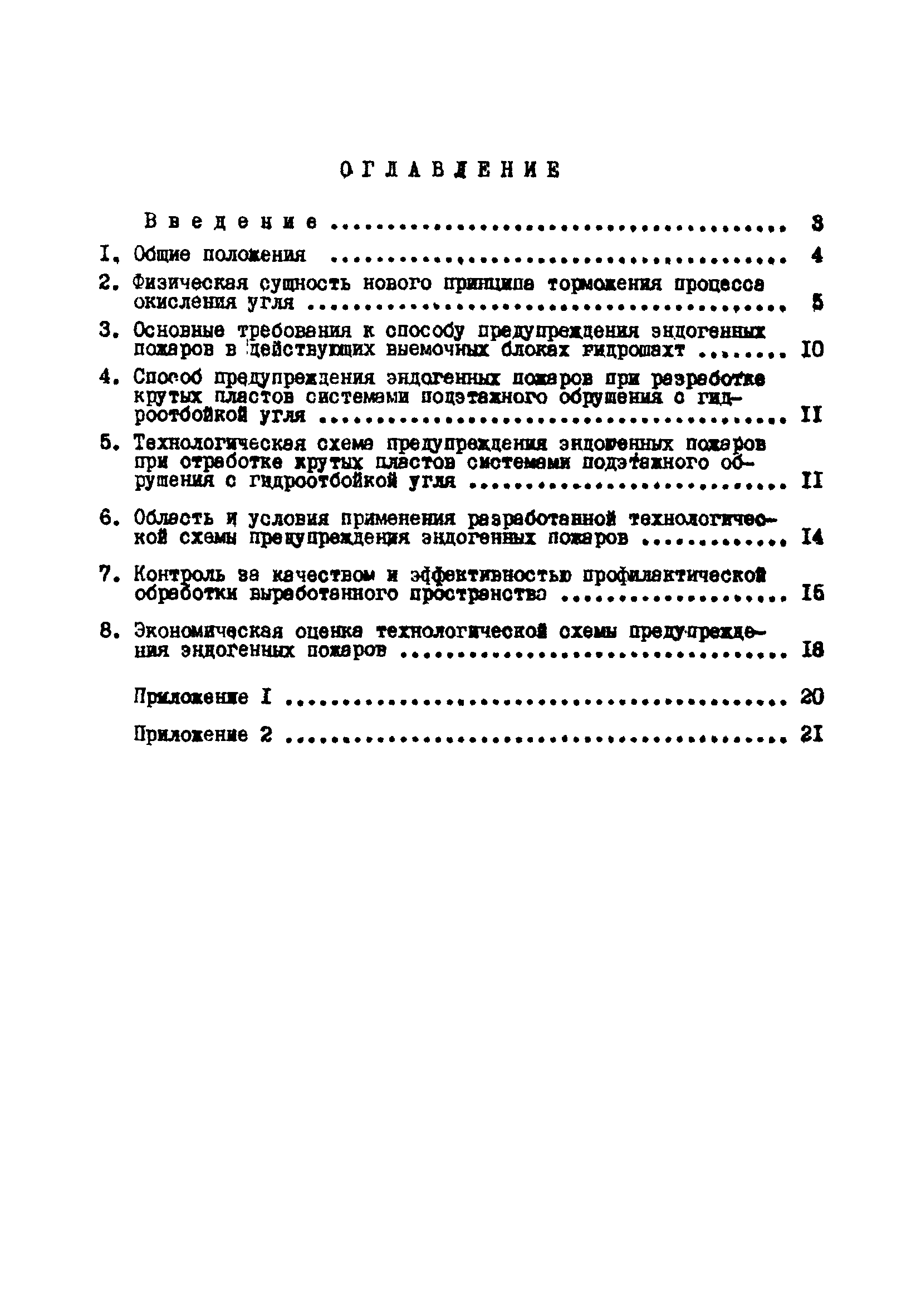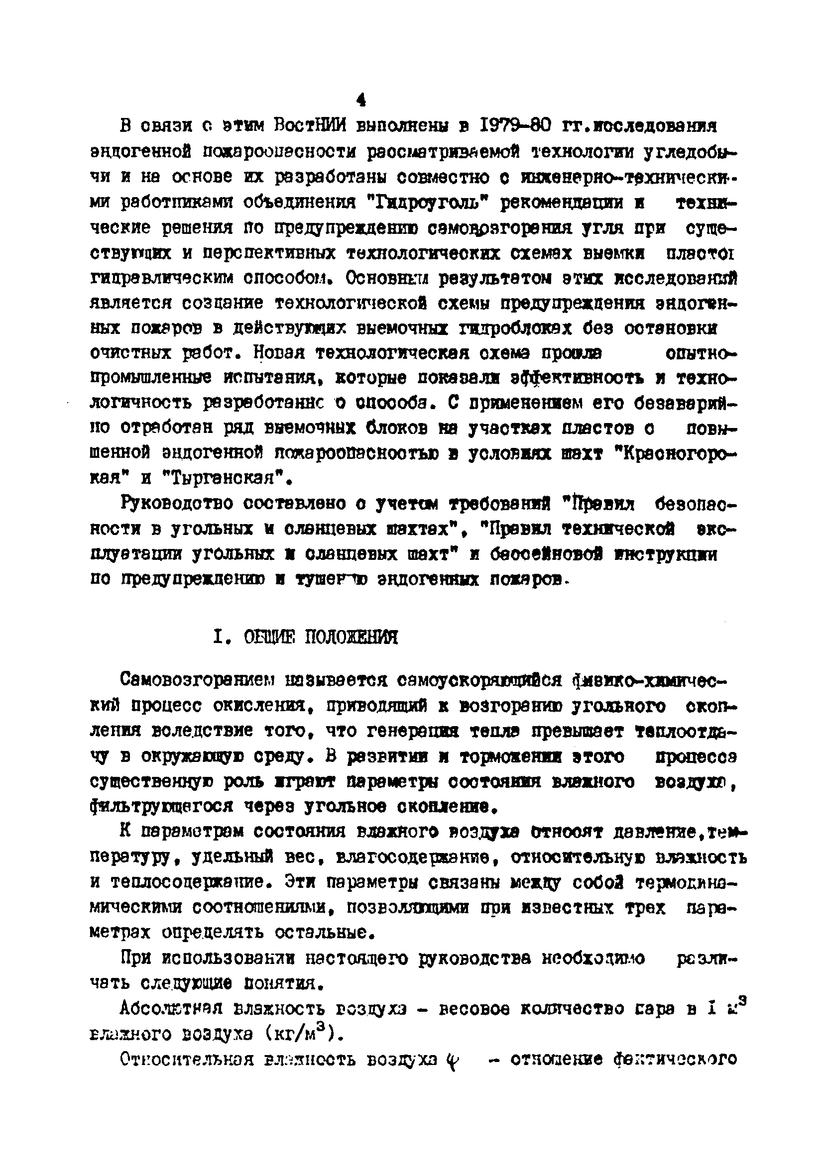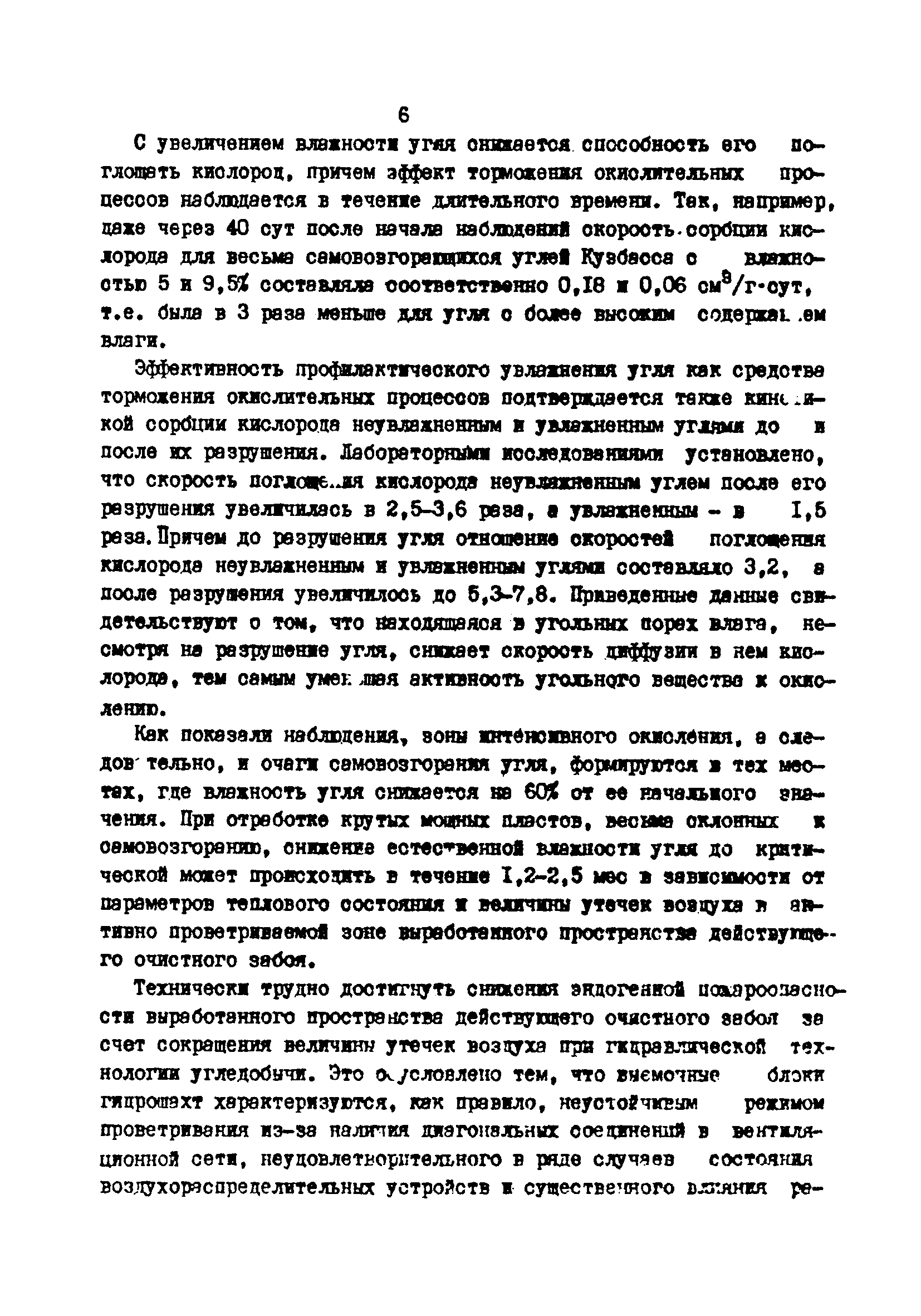 | Оглавление: | Введение 1. Общие положения 2. Физическая сущность нового принципа торможения процесса окисления угля 3. Основные требования к способу предупреждения эндогенных пожаров в действующих выемочных блоках гидрошахт 4. Способ предупреждения эндогенных пожаров при разработке крутых пластов системами подэтажного обрушения с гидроотбойкой угля 5. Технологическая схема предупреждения эндогенных пожаров при отработке крутых пластов системами подэтажного обрушения с гидроотбойкой угля 6. Область и условия применения разработанной технологической схемы предупреждения эндогенных пожаров 7. Контроль за качеством и эффективностью профилактической обработки выработанного пространства 8. Экономическая оценка технологической схемы предупреждения эндогенных пожаров Приложение 1 Приложение 2 |