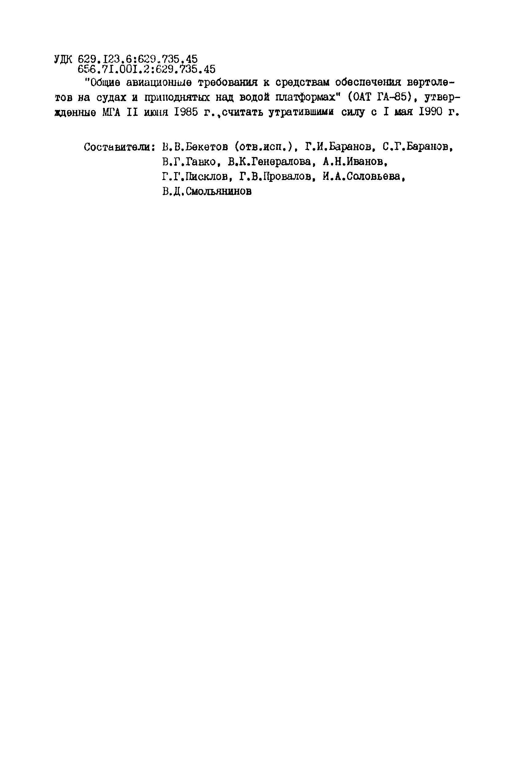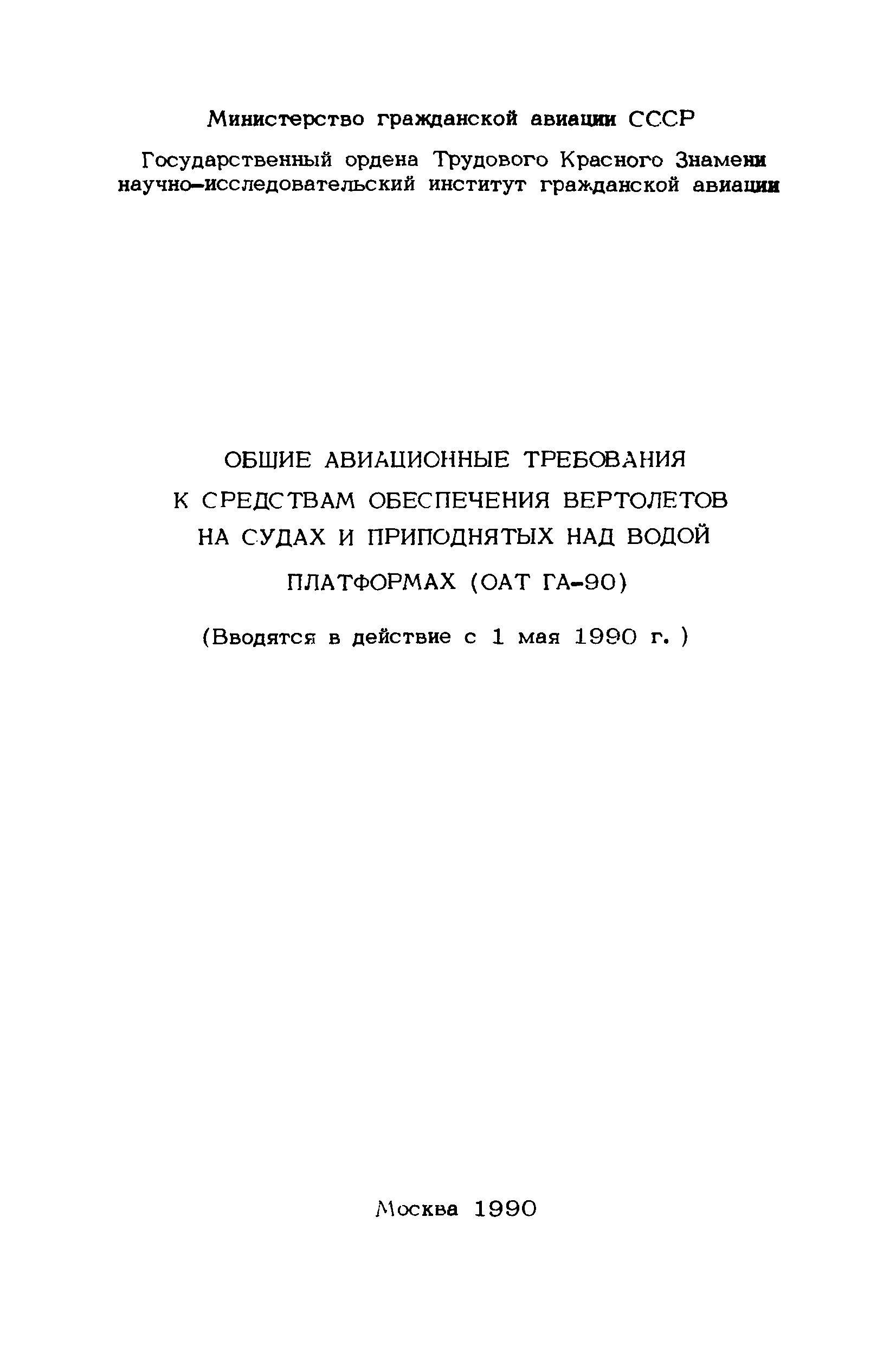 | | Заменяет собой: | - «Общие авиационные требования к средствам обеспечения вертолетов на судах и приподнятых над водой платформах (ОАТ ГА-85)»