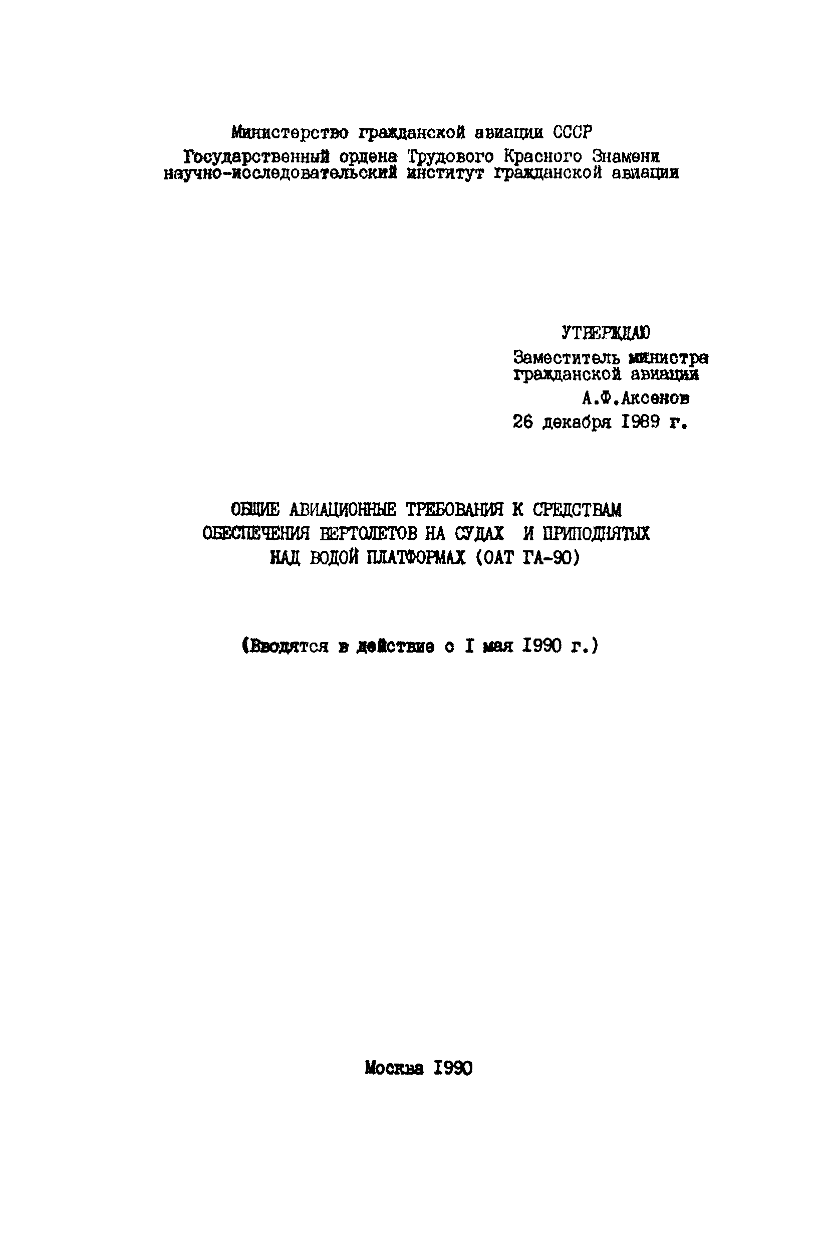| | Утверждён: | 26.12.1989 Министерство гражданской авиации СССР (USSR Ministry of Civil Aviation )