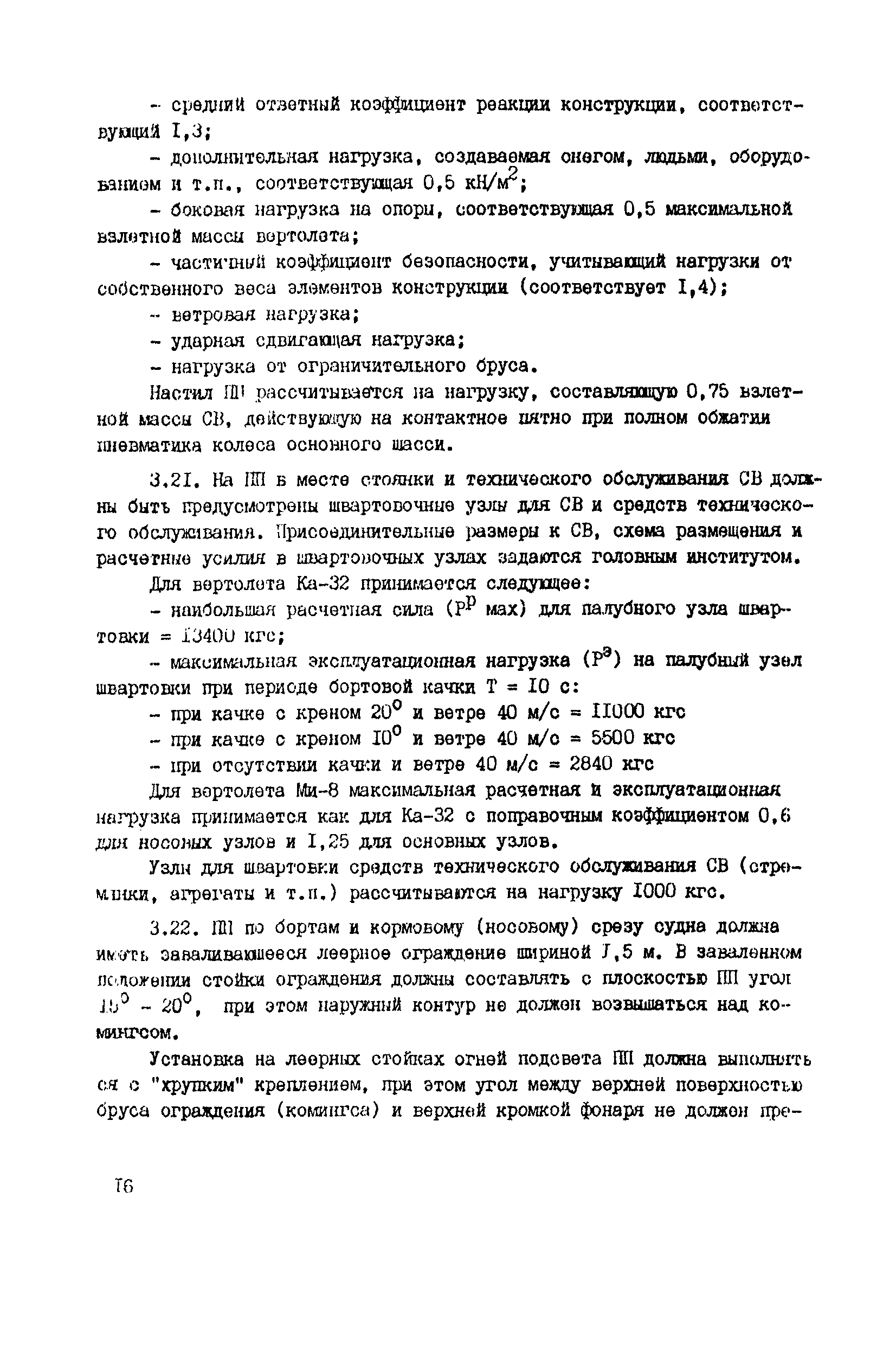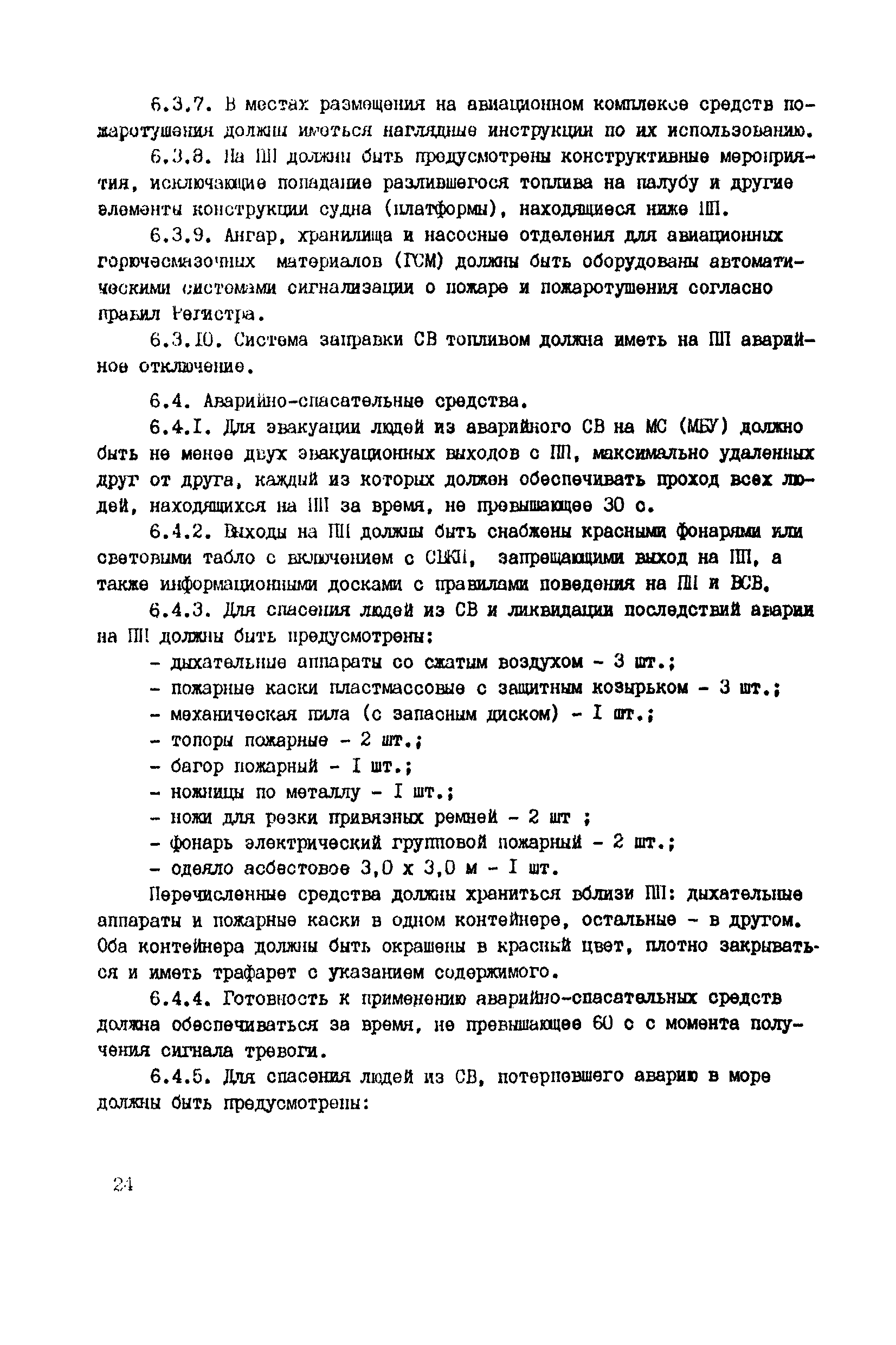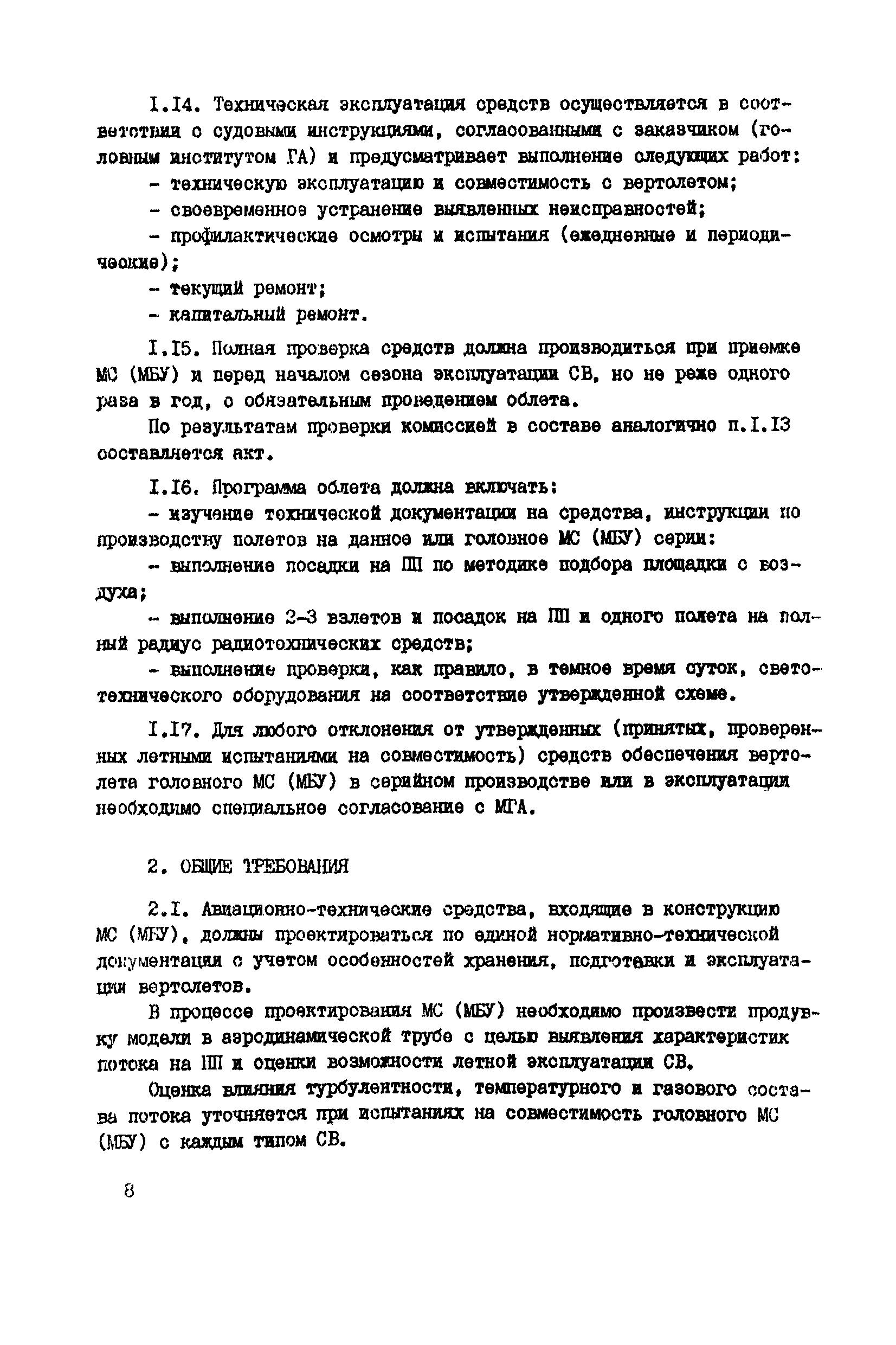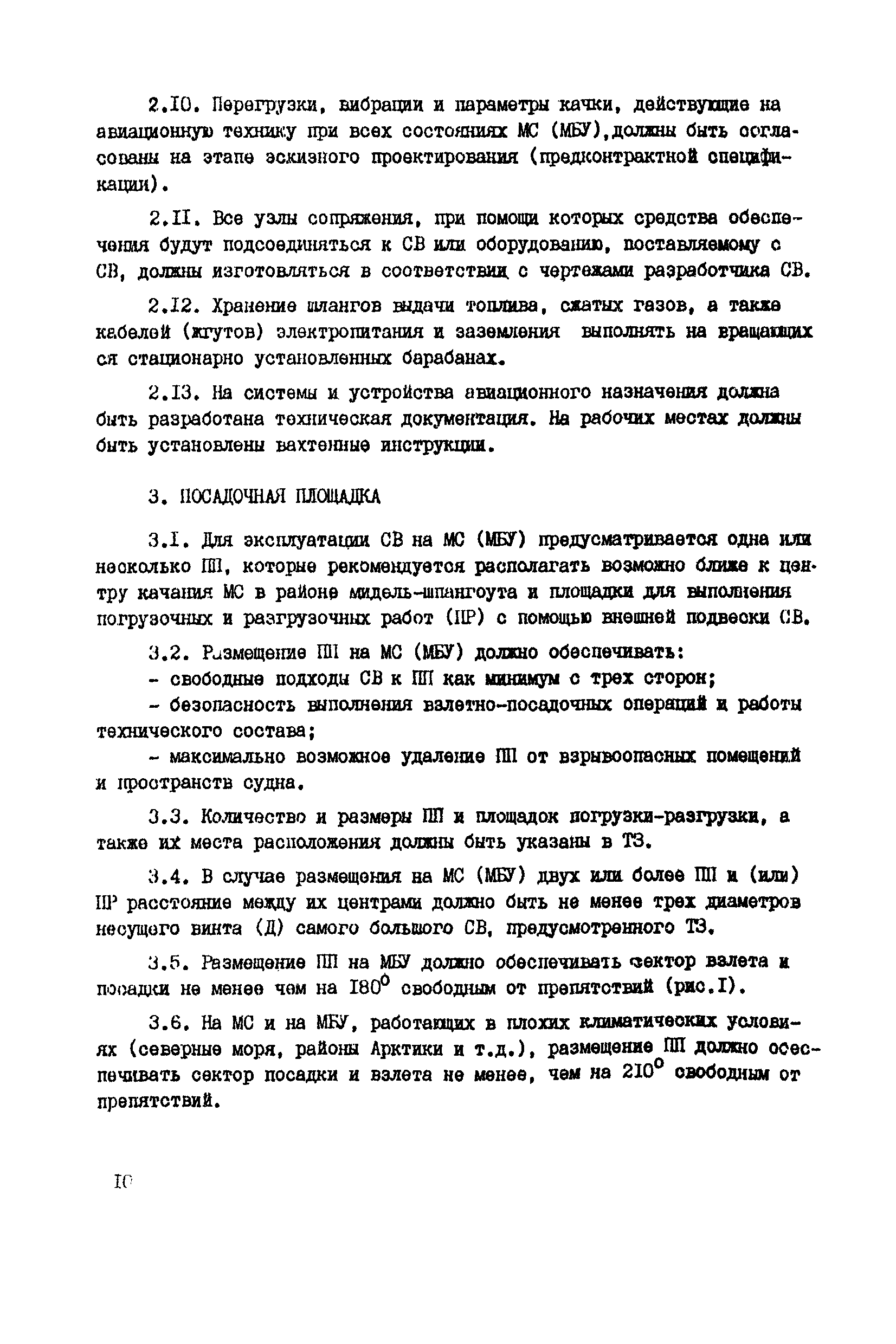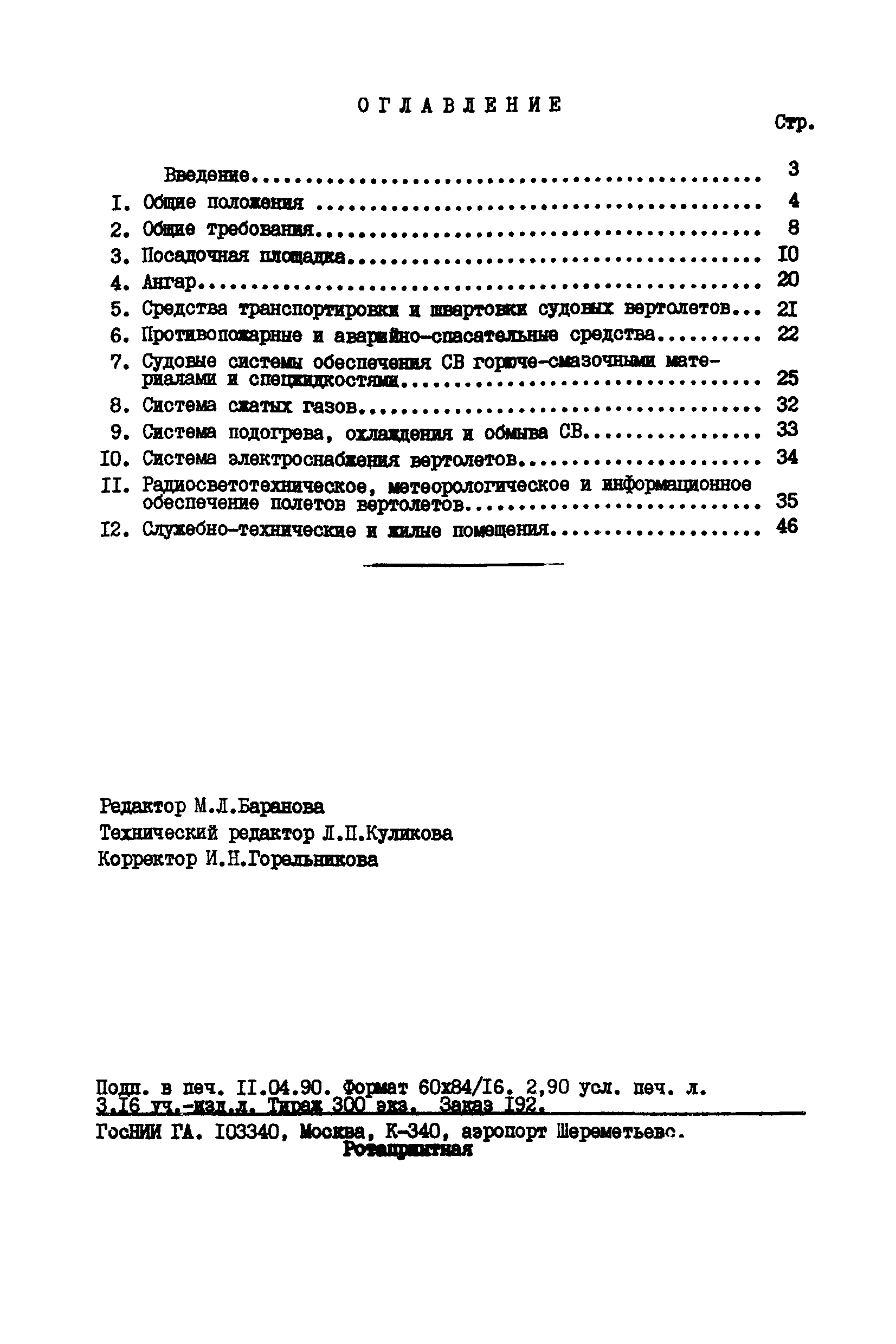 Общие авиационные требования к средствам обеспечения вертолетов на судах и приподнятых над водой платформах (ОАТ ГА-90)| Статус: | взамен | | Название рус.: | Общие авиационные требования к средствам обеспечения вертолетов на судах и приподнятых над водой платформах (ОАТ ГА-90) | | Дата добавления в базу: | 01.01.2021 | | Дата актуализации: | 01.01.2021 | | Дата введения: | 01.05.1990 | | Область применения: | Документ является основным руководством для заказчиков, проектантов, строителей морских и речных судов и приподнятых над водой платформ различных министерств и ведомств, на которых выполняют полеты вертолеты с базированием или без базирования на них. На МС и МБУ, где вертолеты не базируются, не требуется ряд систем и устройств, имеющихся на МС с базированием вертолетов (ангар, системы заправки спец жидкостями и газами, оборудование для техобслуживания, ремонта и т.п.). | | Оглавление: | Введение 1 Общие положения 2 Общие требования 3 Посадочная площадка 4 Ангар 5 Средства транспортировки и швартовки судовых вертолетов 6 Противопожарные и аварийно-спасательные средства 7 Судовые системы обеспечения СВ горюче—смазочными материалами и спецжидкостями 8 Система сжатых газов 9 Система подогрева, охлаждения и обмыва СВ 10 Система электроснабжения вертолетов 11Радиосветотехническое, метеорологическое и информационное обеспечение полетов вертолетов 12 Служебно—технические и жилые помещения | | Разработан: | ГОСНИИГА
