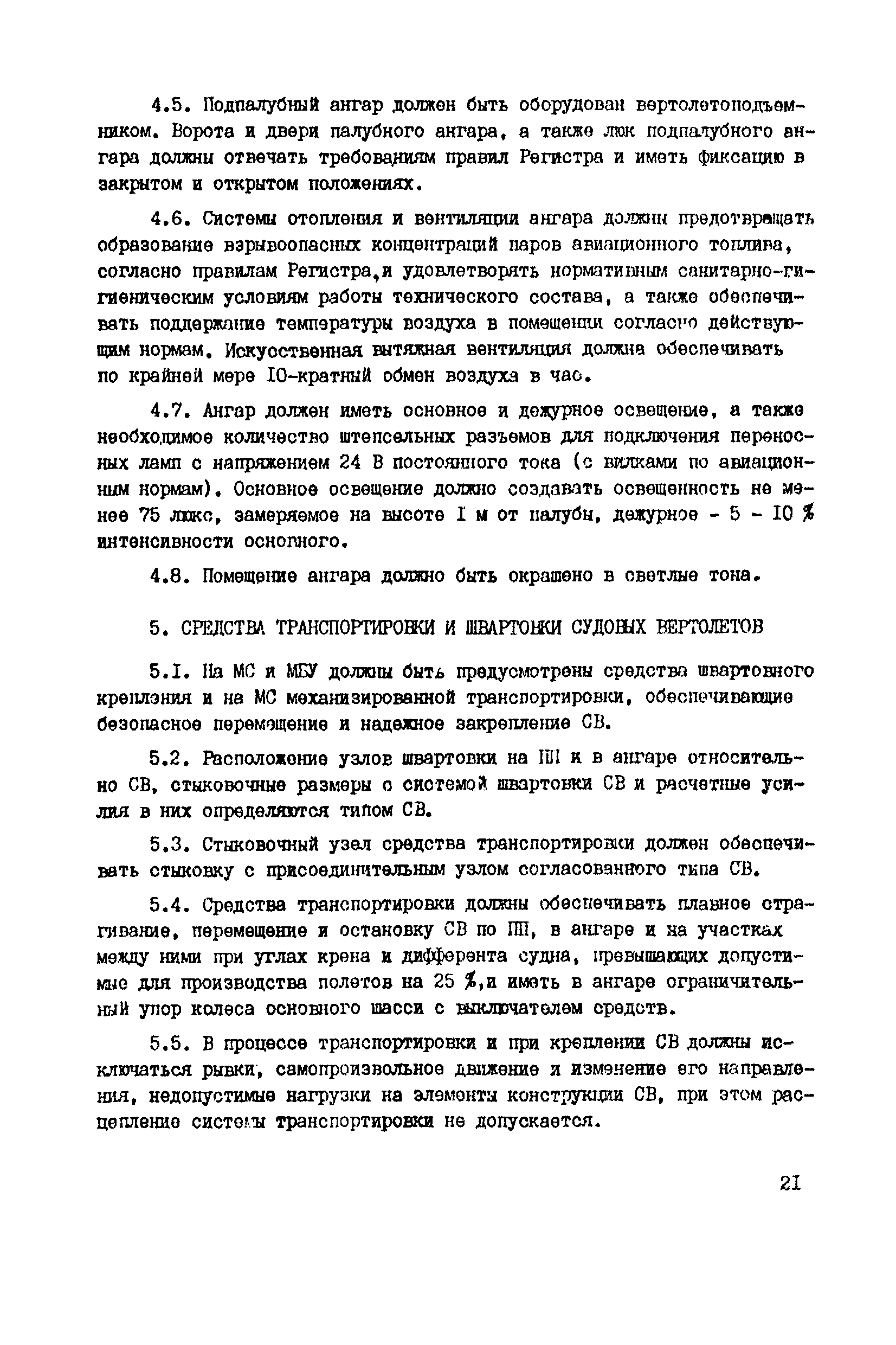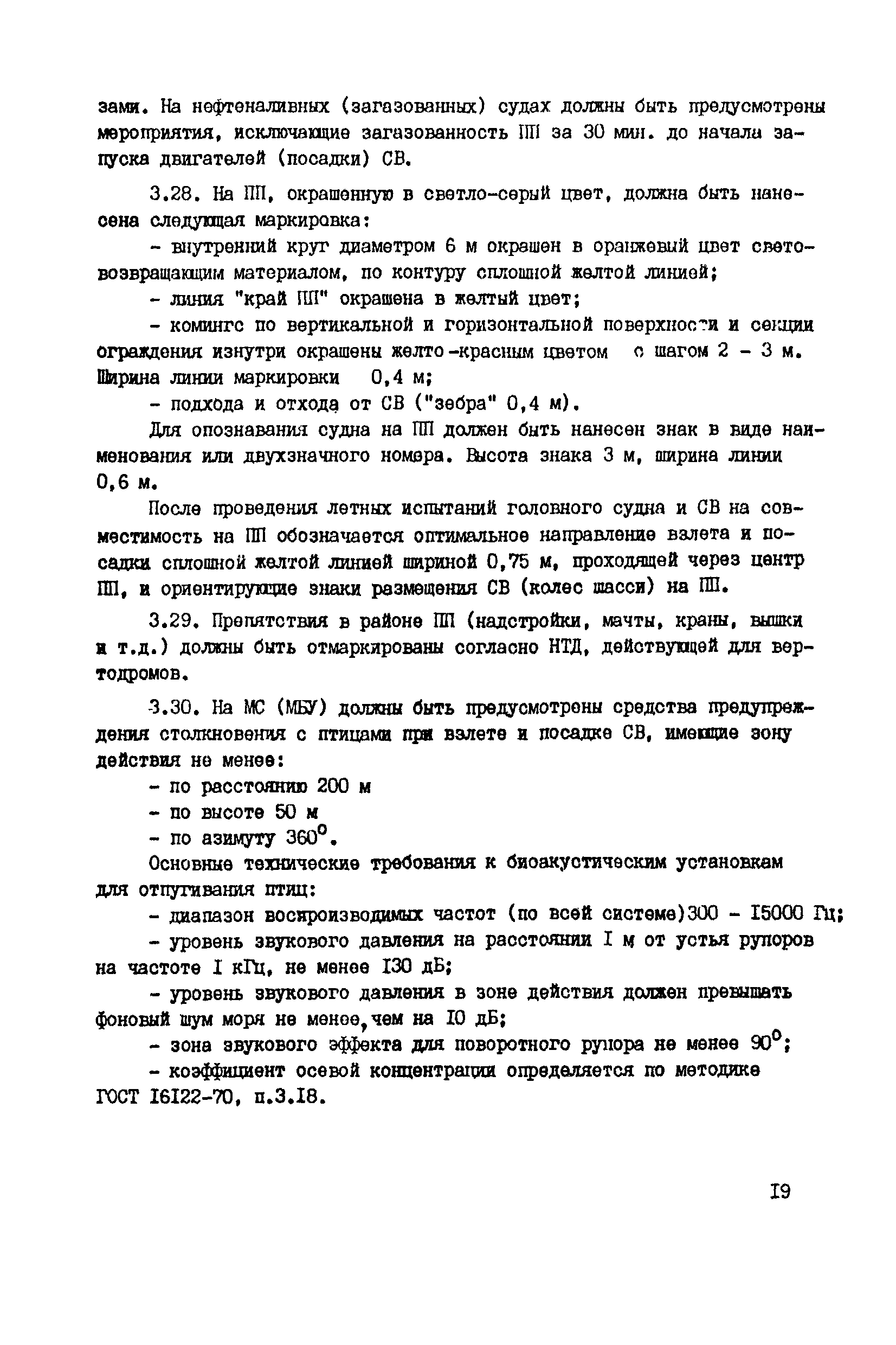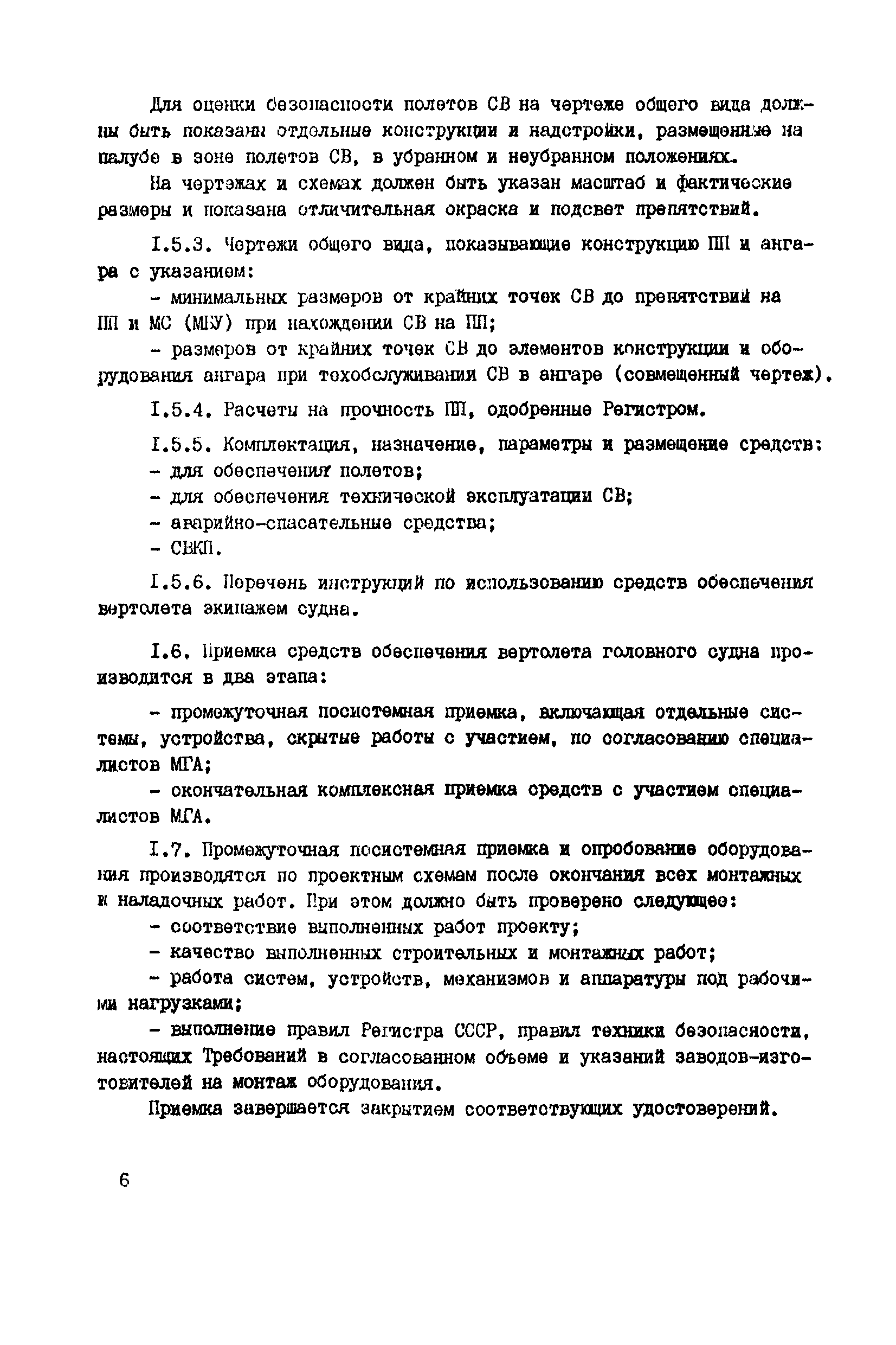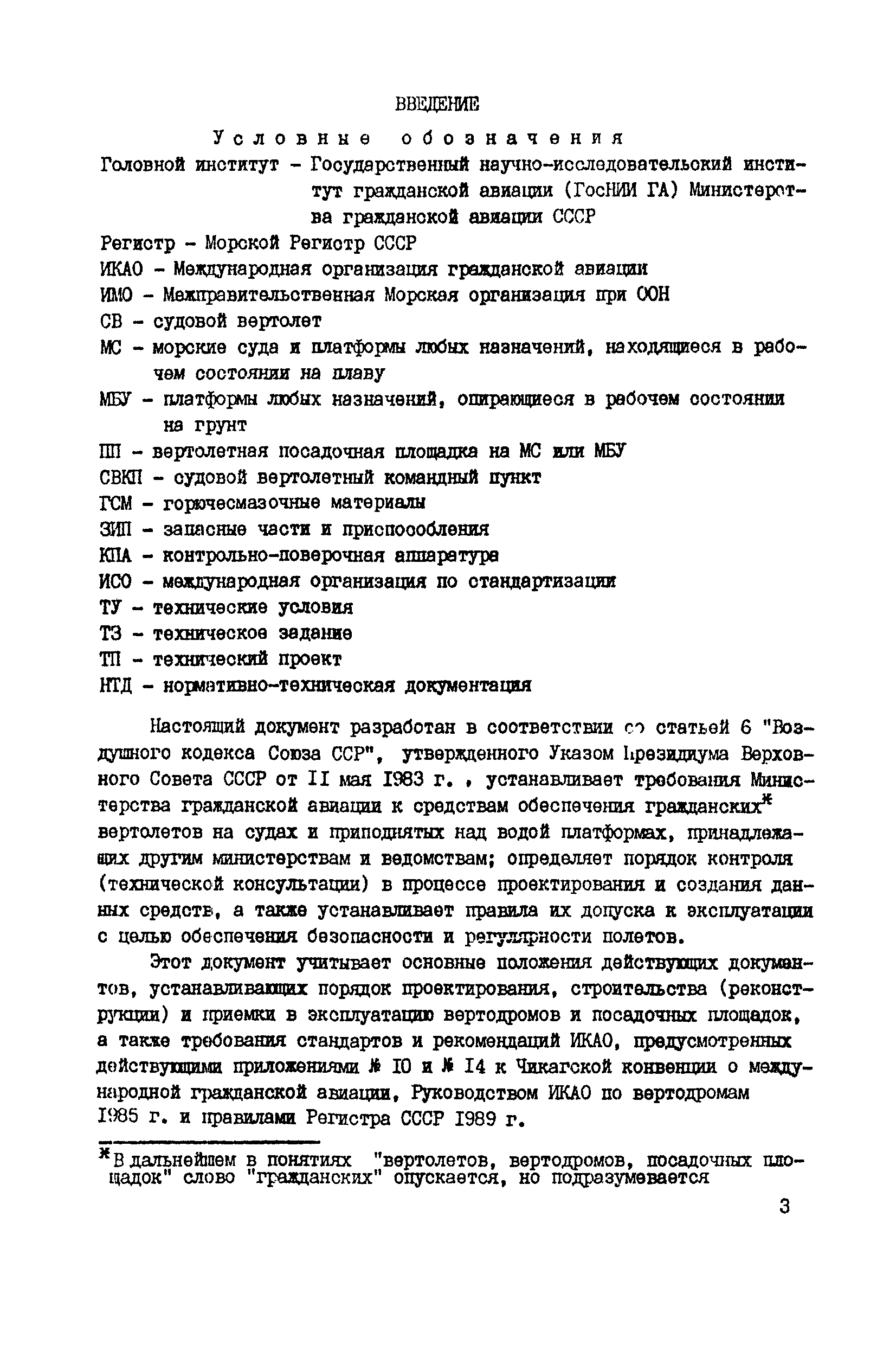 Общие авиационные требования к средствам обеспечения вертолетов на судах и приподнятых над водой платформах (ОАТ ГА-90)| Статус: | взамен | | Название рус.: | Общие авиационные требования к средствам обеспечения вертолетов на судах и приподнятых над водой платформах (ОАТ ГА-90) | | Дата добавления в базу: | 01.01.2021 | | Дата актуализации: | 01.01.2021 | | Дата введения: | 01.05.1990 | | Область применения: | Документ является основным руководством для заказчиков, проектантов, строителей морских и речных судов и приподнятых над водой платформ различных министерств и ведомств, на которых выполняют полеты вертолеты с базированием или без базирования на них. На МС и МБУ, где вертолеты не базируются, не требуется ряд систем и устройств, имеющихся на МС с базированием вертолетов (ангар, системы заправки спец жидкостями и газами, оборудование для техобслуживания, ремонта и т.п.). | | Оглавление: | Введение 1 Общие положения 2 Общие требования 3 Посадочная площадка 4 Ангар 5 Средства транспортировки и швартовки судовых вертолетов 6 Противопожарные и аварийно-спасательные средства 7 Судовые системы обеспечения СВ горюче—смазочными материалами и спецжидкостями 8 Система сжатых газов 9 Система подогрева, охлаждения и обмыва СВ 10 Система электроснабжения вертолетов 11Радиосветотехническое, метеорологическое и информационное обеспечение полетов вертолетов 12 Служебно—технические и жилые помещения | | Разработан: | ГОСНИИГА