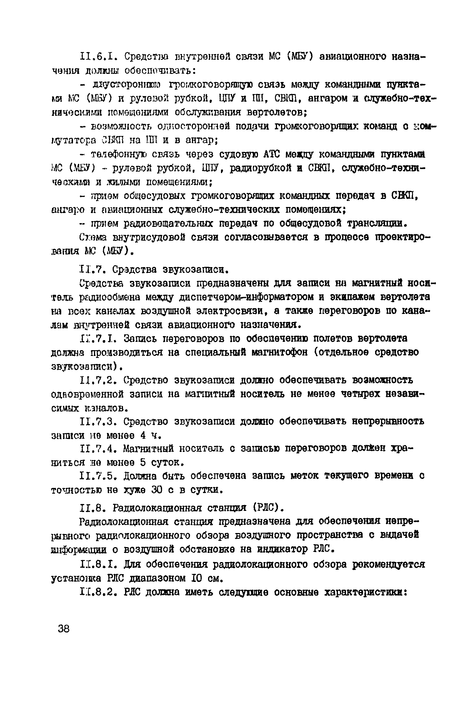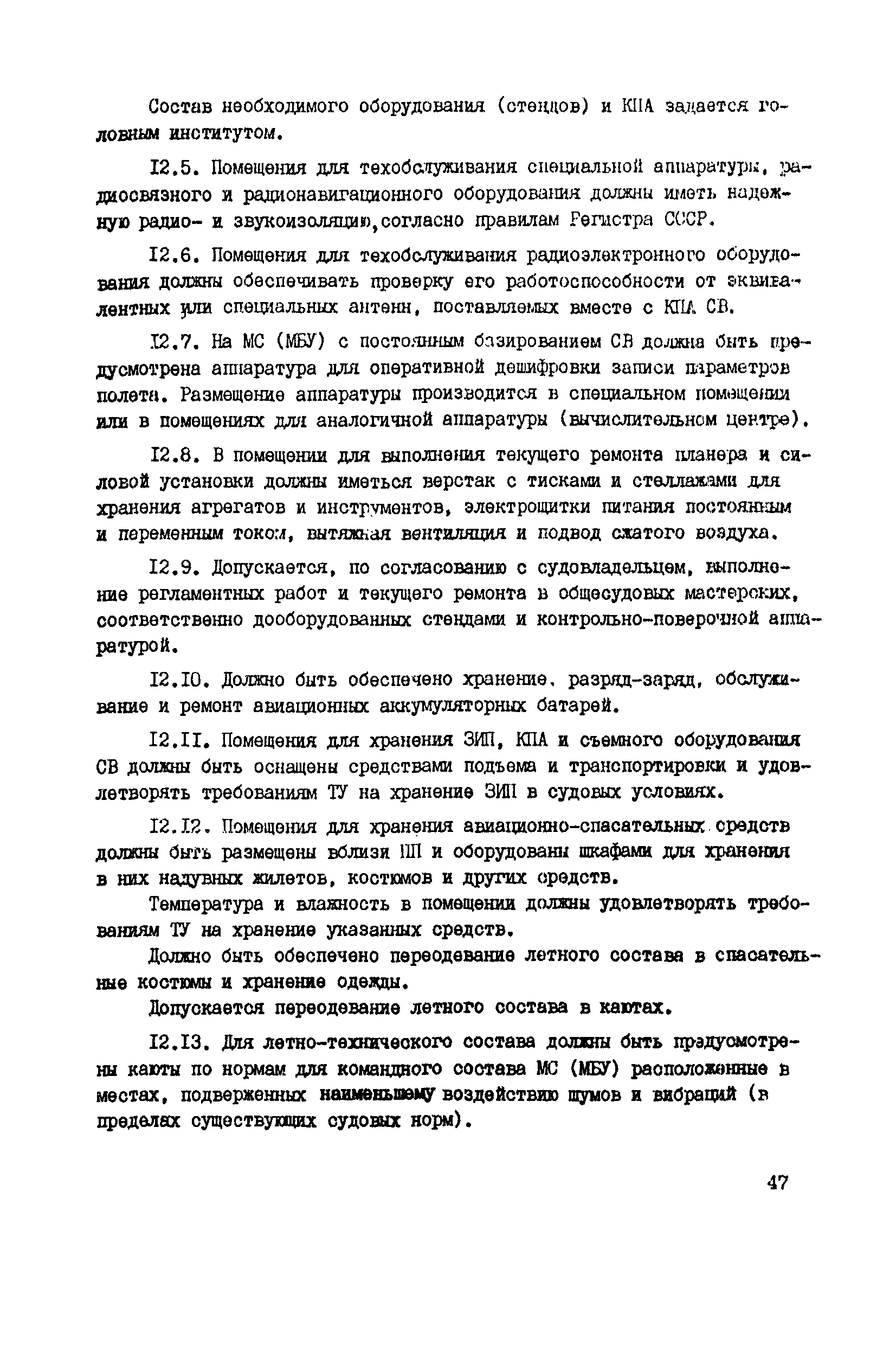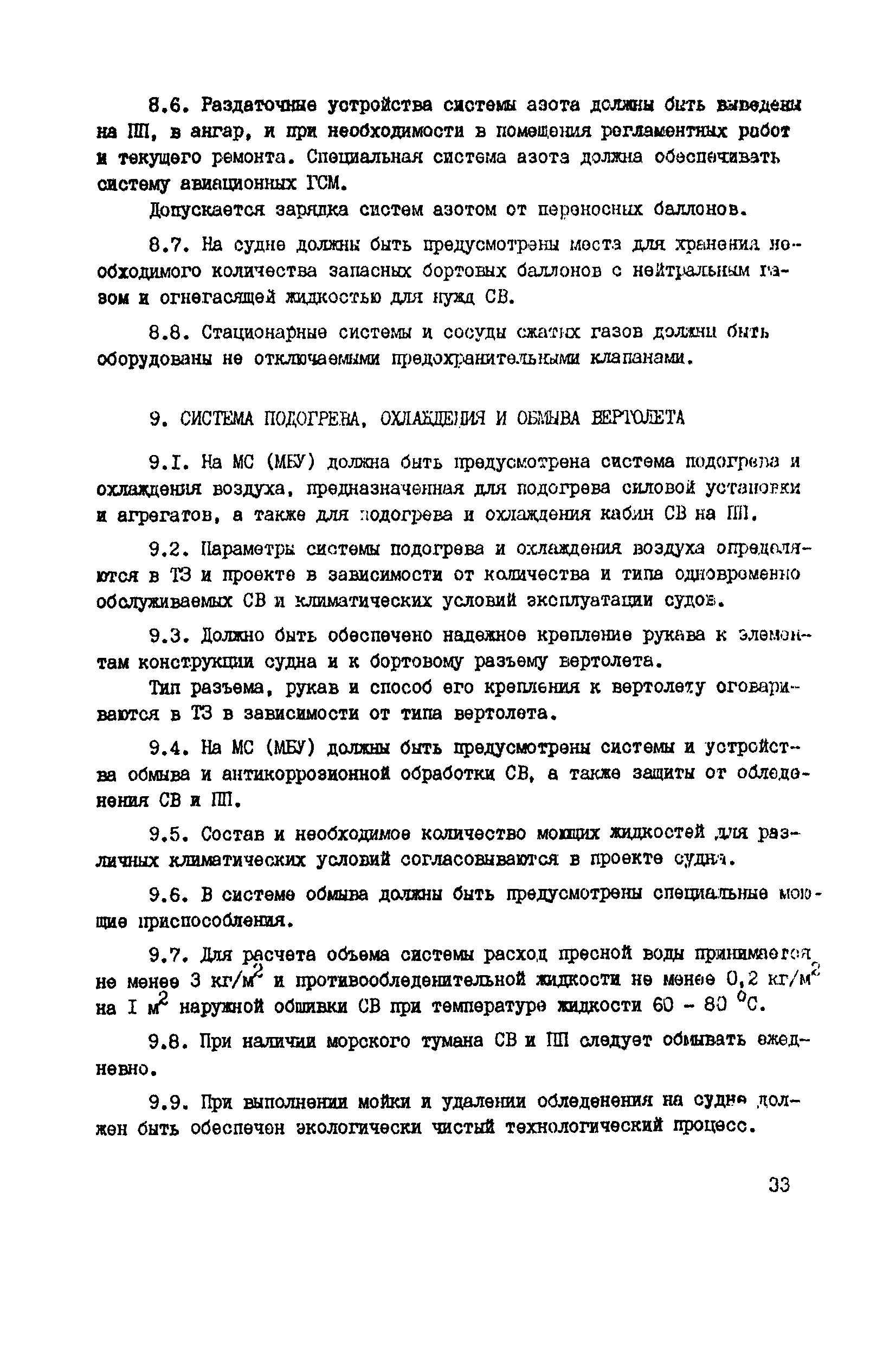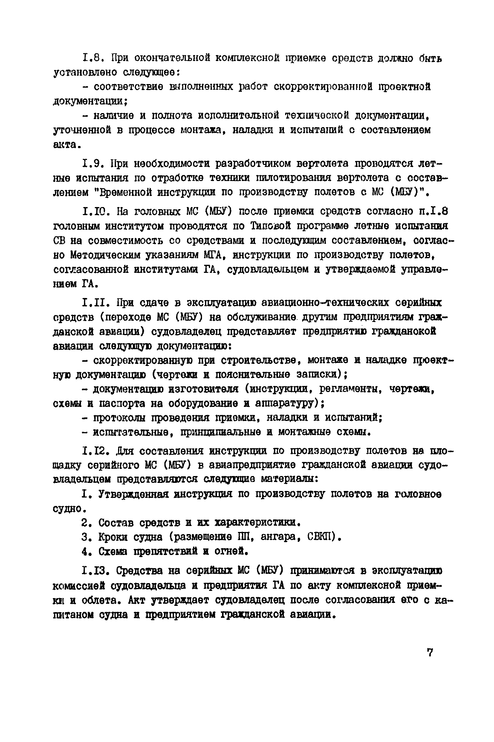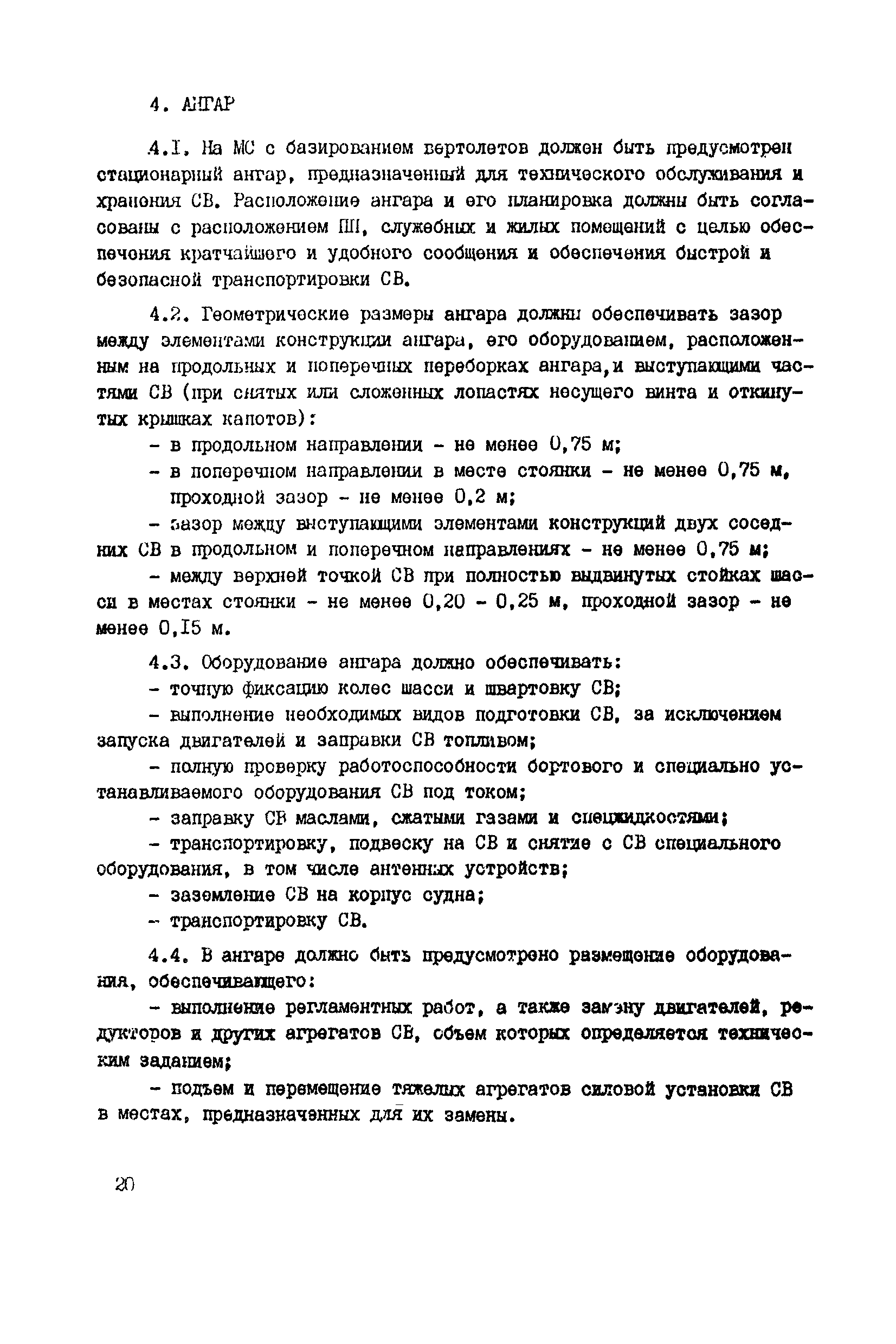 Общие авиационные требования к средствам обеспечения вертолетов на судах и приподнятых над водой платформах (ОАТ ГА-90)| Статус: | взамен | | Название рус.: | Общие авиационные требования к средствам обеспечения вертолетов на судах и приподнятых над водой платформах (ОАТ ГА-90) | | Дата добавления в базу: | 01.01.2021 | | Дата актуализации: | 01.01.2021 | | Дата введения: | 01.05.1990 | | Область применения: | Документ является основным руководством для заказчиков, проектантов, строителей морских и речных судов и приподнятых над водой платформ различных министерств и ведомств, на которых выполняют полеты вертолеты с базированием или без базирования на них. На МС и МБУ, где вертолеты не базируются, не требуется ряд систем и устройств, имеющихся на МС с базированием вертолетов (ангар, системы заправки спец жидкостями и газами, оборудование для техобслуживания, ремонта и т.п.). | | Оглавление: | Введение 1 Общие положения 2 Общие требования 3 Посадочная площадка 4 Ангар 5 Средства транспортировки и швартовки судовых вертолетов 6 Противопожарные и аварийно-спасательные средства 7 Судовые системы обеспечения СВ горюче—смазочными материалами и спецжидкостями 8 Система сжатых газов 9 Система подогрева, охлаждения и обмыва СВ 10 Система электроснабжения вертолетов 11Радиосветотехническое, метеорологическое и информационное обеспечение полетов вертолетов 12 Служебно—технические и жилые помещения | | Разработан: | ГОСНИИГА