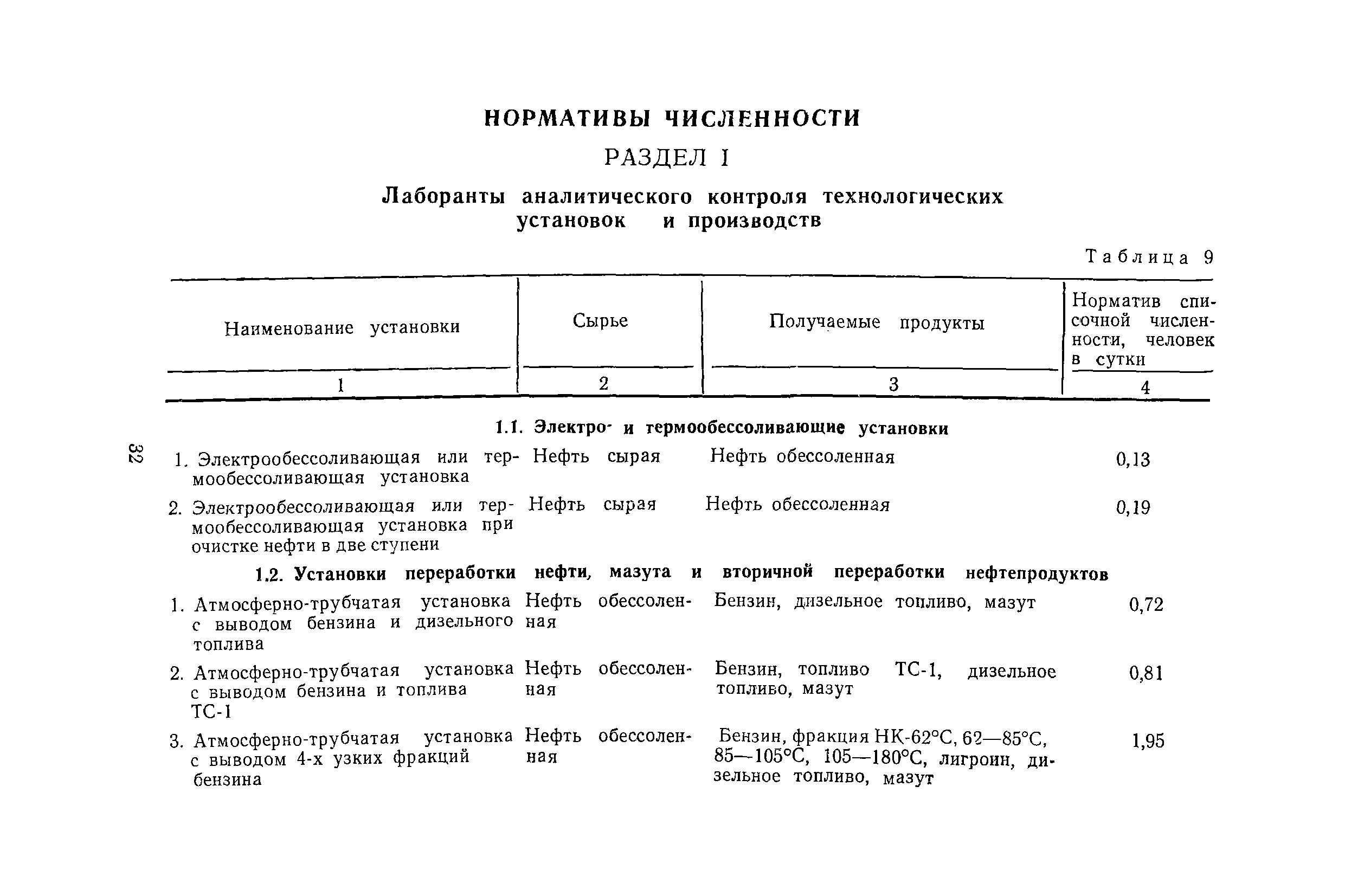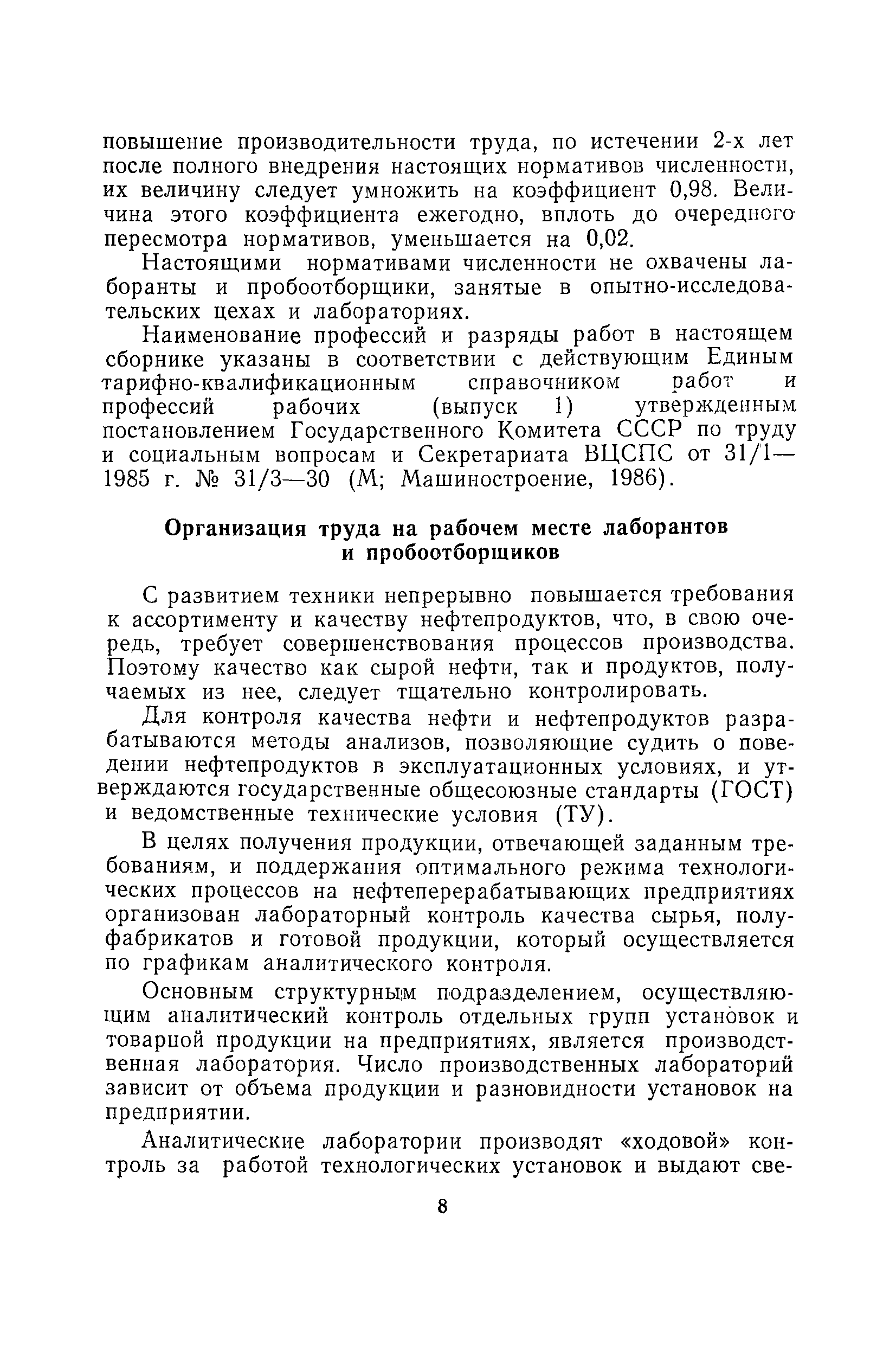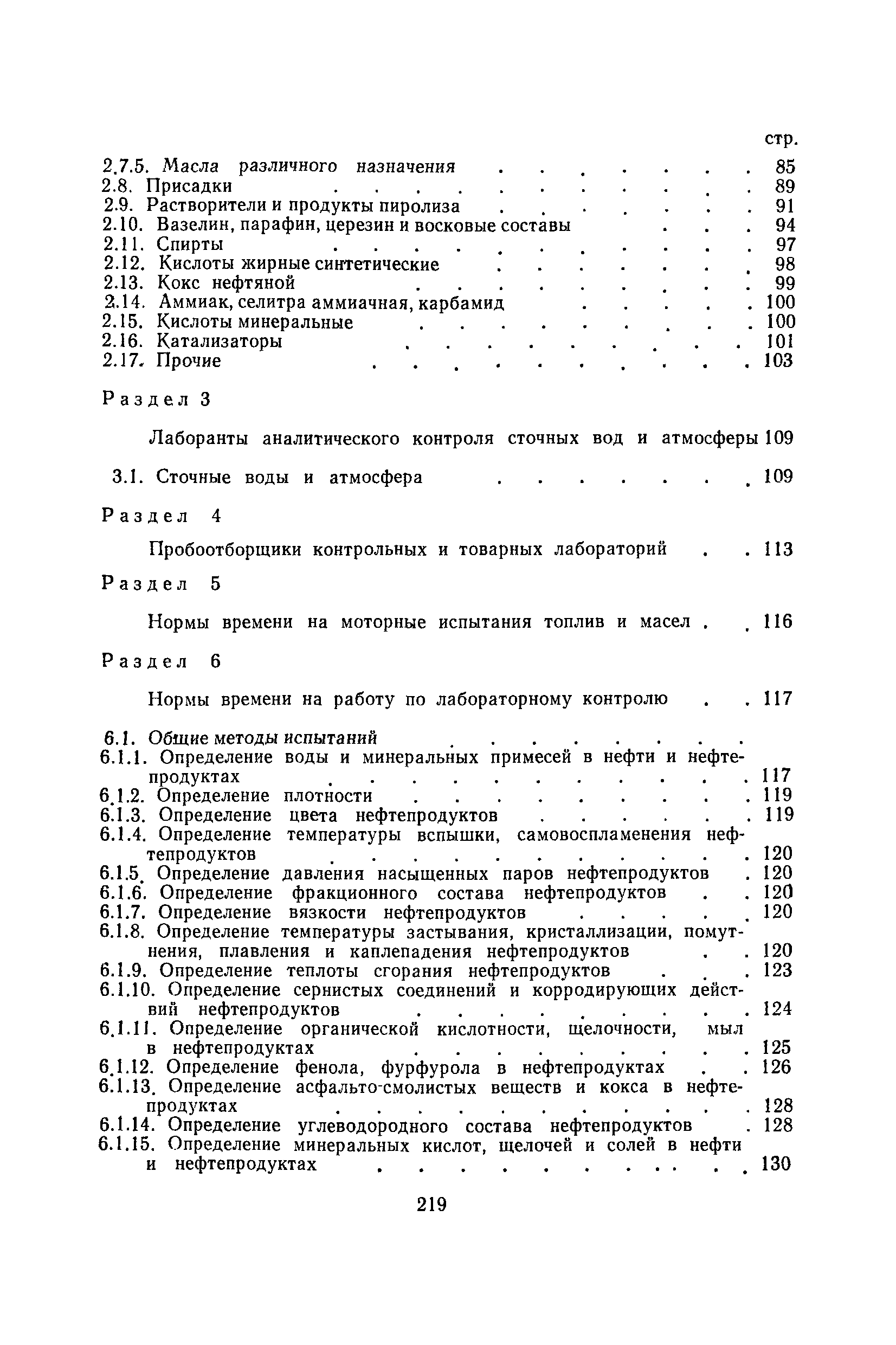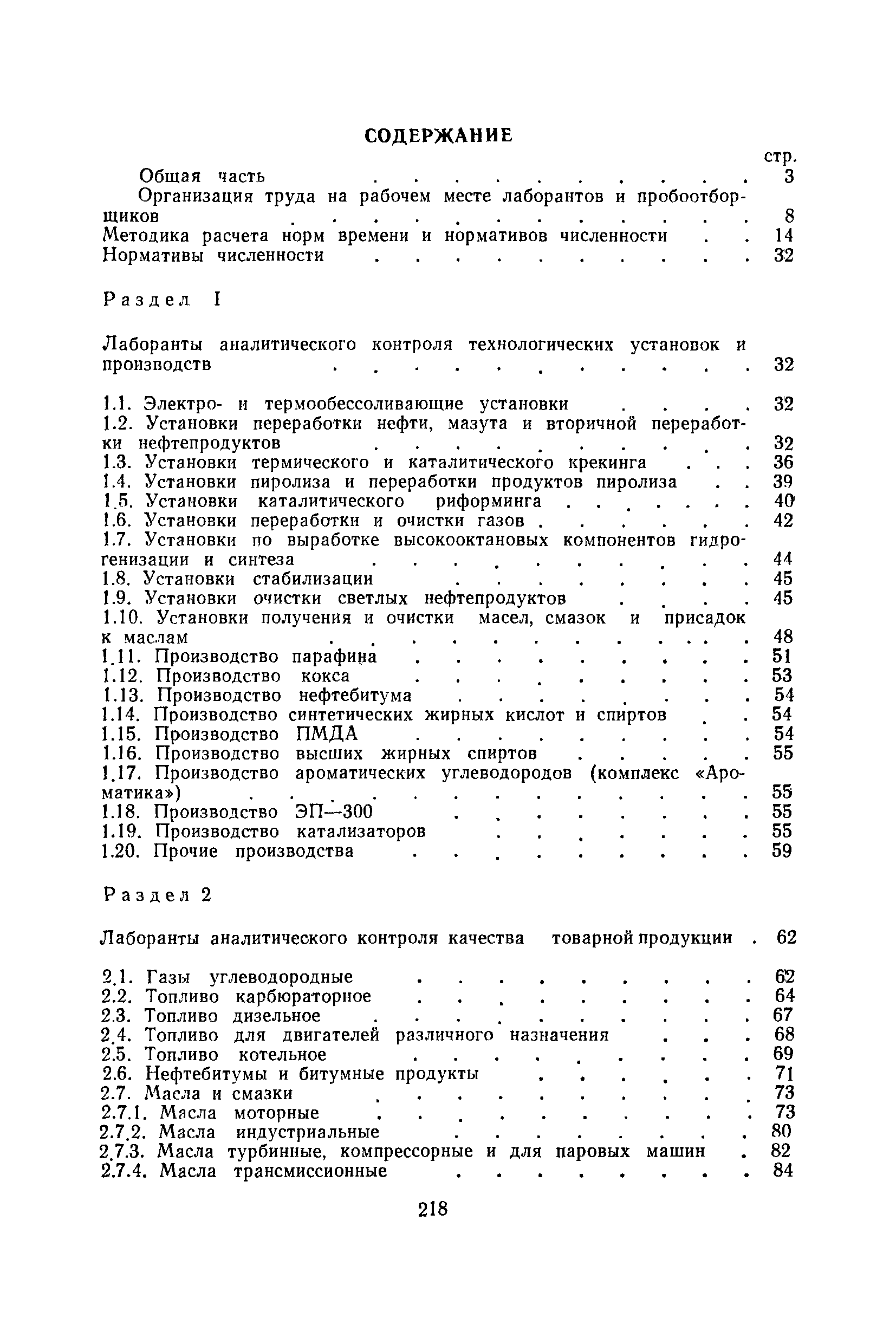 | Оглавление: | Общая часть Организация труда на рабочем месте лаборантов и пробоотборщиков Методика расчета норм времени и нормативов численности Нормативы численности Раздел 1. Лаборанты аналитического контроля технологических установок и производств 1.1. Электро- и термообессоливающие установки 1.2. Установки переработки нефти, мазута и вторичной переработки нефтепродуктов 1.3. Установки термического и каталитического крекинга 1.4. Установки пиролиза и переработки продуктов пиролиза 1.5. Установки каталитического риформинга 1.6. Установки переработки и очистки газов 1.7. Установки по выработке высокооктановых компонентов гидрогенизации и синтеза 1.8. Установки стабилизации 1.9. Установки очистки светлых нефтепродуктов 1.10. Установки получения и очистки масел, смазок и присадок к маслам 1.11. Производство парафина 1.12. Производство кокса 1.13. Производство нефтебитума 1.14. Производство синтетических жирных кислот и спиртов 1.15. Производство ПМДА 1.16. Производство высших жирных спиртов 1.17. Производство ароматических углеводородов (комплекс «Ароматика») 1.18. Производство ЭП-300 1.19. Производство катализаторов 1.20. Прочие производства Раздел 2. Лаборанты аналитического контроля качества товарной продукции 2.1. Газы углеводородные 2.2. Топливо карбюраторное 2.3. Топливо дизельное 2.4. Топливо для двигателей различного назначения 2.5. Топливо котельное 2.6. Нефтебитумы и битумные продукты 2.7. Масла и смазки 2.8. Присадки 2.9. Растворители и продукты пиролиза 2.10. Вазелин, парафин, церезин и восковые составы 2.11. Спирты 2.12. Кислоты жирные синтетические 2.13. Кокс нефтяной 2.14. Аммиак, селитра аммиачная, карбамид 2.15. Кислоты минеральные 2.16. Катализаторы 2.17 Прочие Раздел 3. Лаборанты аналитического контроля сточных вод и атмосферы 3.1. Сточные воды и атмосфера Раздел 4. Пробоотборщики контрольных и товарных лабораторий Раздел 5. Нормы времени на моторные испытания топлив и масел Раздел 6. Нормы времени на работы по лабораторному контролю 6.1. Общие методы испытаний 6.2. Хроматографические методы испытаний 6.3. Специальные методы испытаний 6.4. Методы испытаний неорганических веществ 6.5. Методы испытаний катализаторов и продуктов их производства 6.6. Методы испытаний сточных вод, речной воды и конденсата 6.7. Прочие методы испытаний |