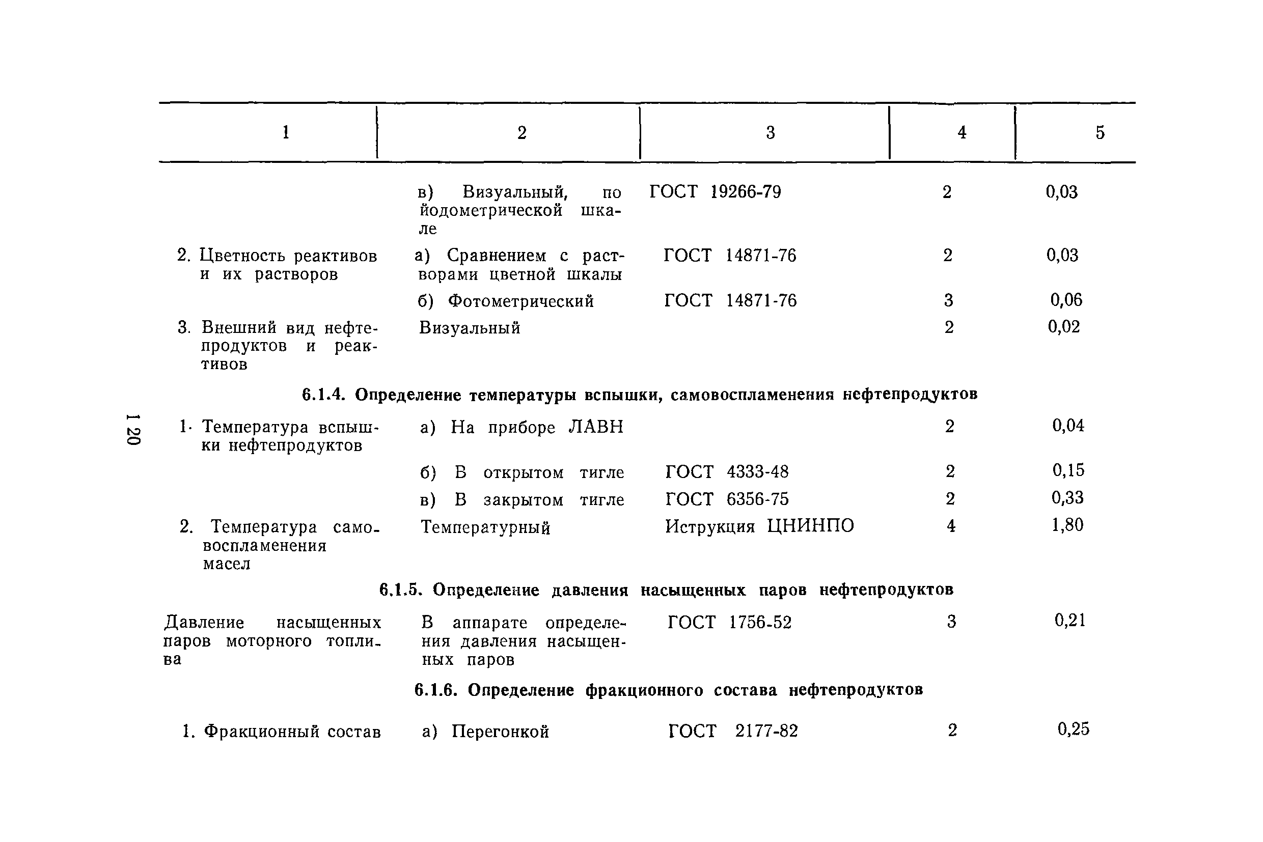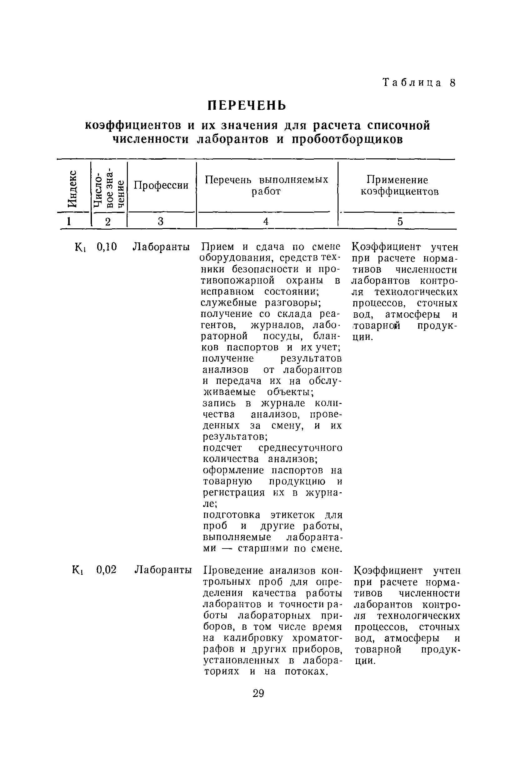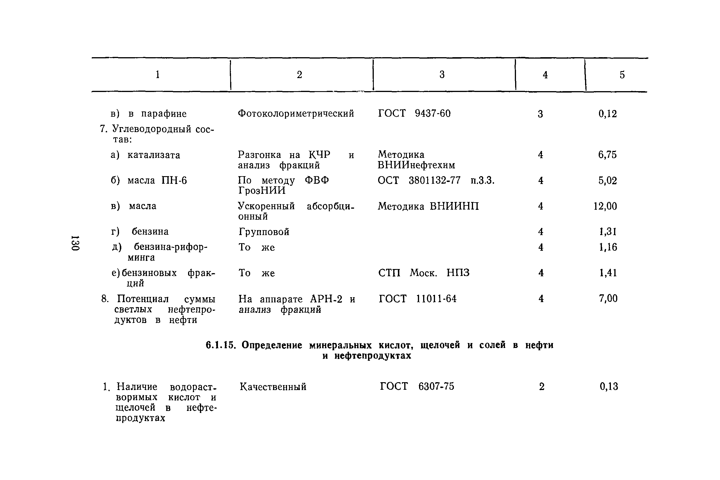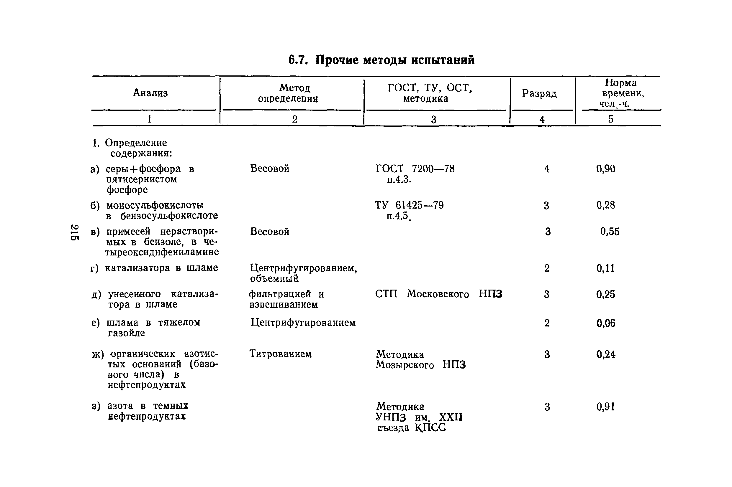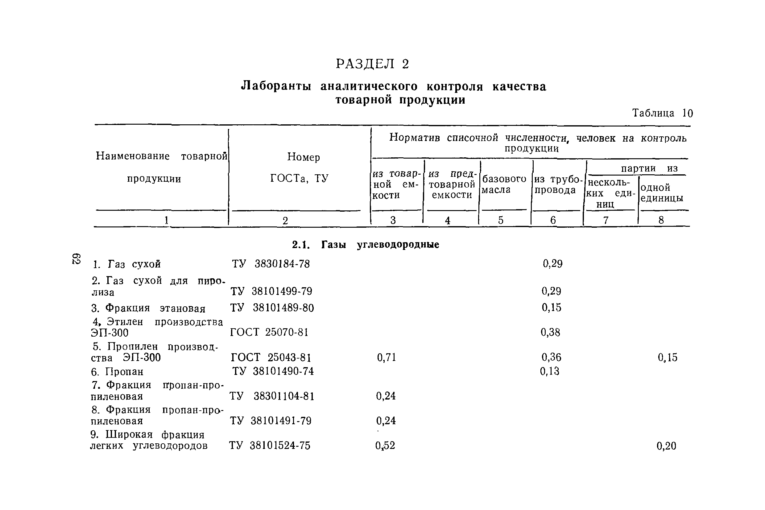| Оглавление: | Общая часть Организация труда на рабочем месте лаборантов и пробоотборщиков Методика расчета норм времени и нормативов численности Нормативы численности Раздел 1. Лаборанты аналитического контроля технологических установок и производств 1.1. Электро- и термообессоливающие установки 1.2. Установки переработки нефти, мазута и вторичной переработки нефтепродуктов 1.3. Установки термического и каталитического крекинга 1.4. Установки пиролиза и переработки продуктов пиролиза 1.5. Установки каталитического риформинга 1.6. Установки переработки и очистки газов 1.7. Установки по выработке высокооктановых компонентов гидрогенизации и синтеза 1.8. Установки стабилизации 1.9. Установки очистки светлых нефтепродуктов 1.10. Установки получения и очистки масел, смазок и присадок к маслам 1.11. Производство парафина 1.12. Производство кокса 1.13. Производство нефтебитума 1.14. Производство синтетических жирных кислот и спиртов 1.15. Производство ПМДА 1.16. Производство высших жирных спиртов 1.17. Производство ароматических углеводородов (комплекс «Ароматика») 1.18. Производство ЭП-300 1.19. Производство катализаторов 1.20. Прочие производства Раздел 2. Лаборанты аналитического контроля качества товарной продукции 2.1. Газы углеводородные 2.2. Топливо карбюраторное 2.3. Топливо дизельное 2.4. Топливо для двигателей различного назначения 2.5. Топливо котельное 2.6. Нефтебитумы и битумные продукты 2.7. Масла и смазки 2.8. Присадки 2.9. Растворители и продукты пиролиза 2.10. Вазелин, парафин, церезин и восковые составы 2.11. Спирты 2.12. Кислоты жирные синтетические 2.13. Кокс нефтяной 2.14. Аммиак, селитра аммиачная, карбамид 2.15. Кислоты минеральные 2.16. Катализаторы 2.17 Прочие Раздел 3. Лаборанты аналитического контроля сточных вод и атмосферы 3.1. Сточные воды и атмосфера Раздел 4. Пробоотборщики контрольных и товарных лабораторий Раздел 5. Нормы времени на моторные испытания топлив и масел Раздел 6. Нормы времени на работы по лабораторному контролю 6.1. Общие методы испытаний 6.2. Хроматографические методы испытаний 6.3. Специальные методы испытаний 6.4. Методы испытаний неорганических веществ 6.5. Методы испытаний катализаторов и продуктов их производства 6.6. Методы испытаний сточных вод, речной воды и конденсата 6.7. Прочие методы испытаний |