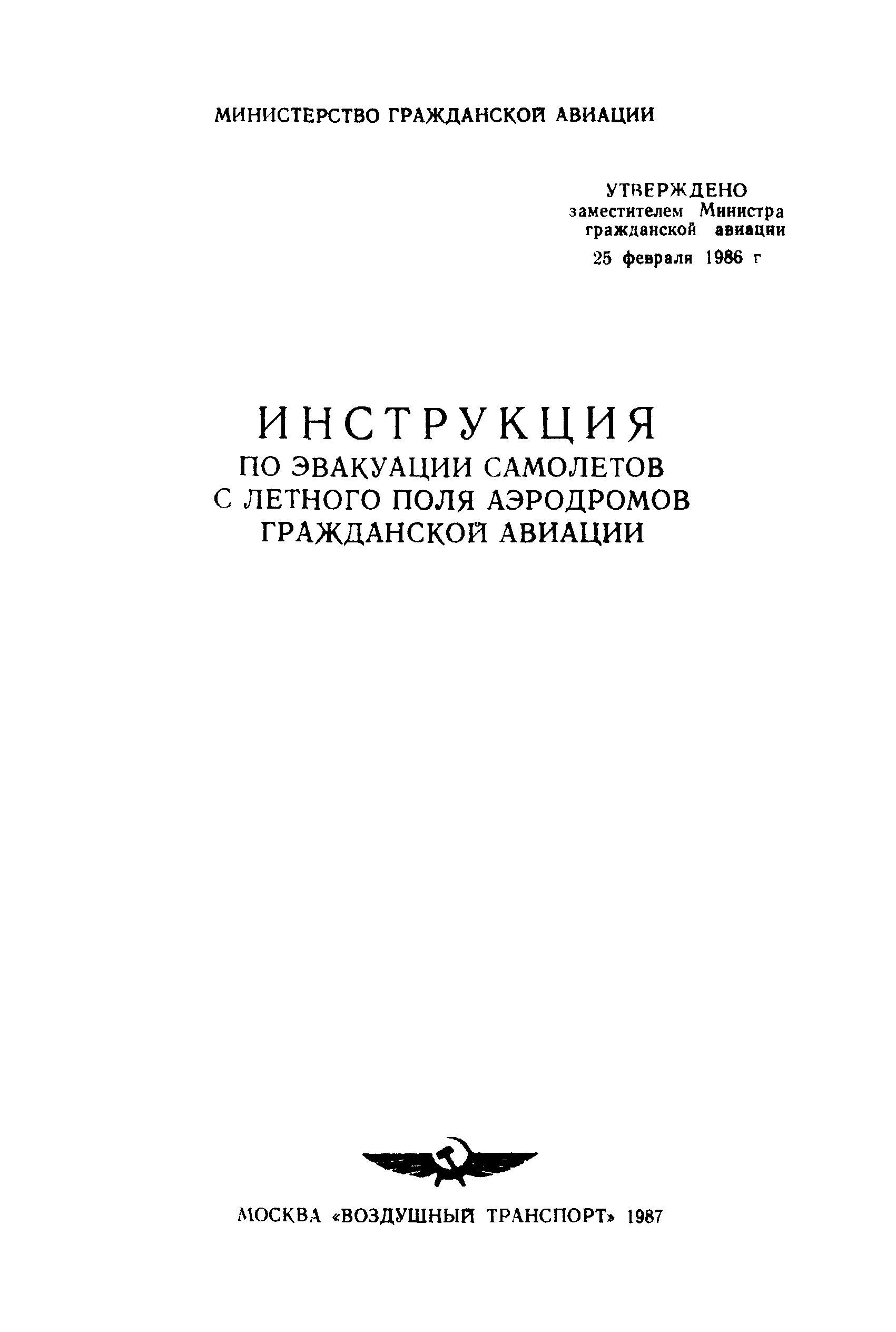 | Название рус.: | Инструкция по эвакуации самолетов с летного поля аэродромов гражданской авиации |