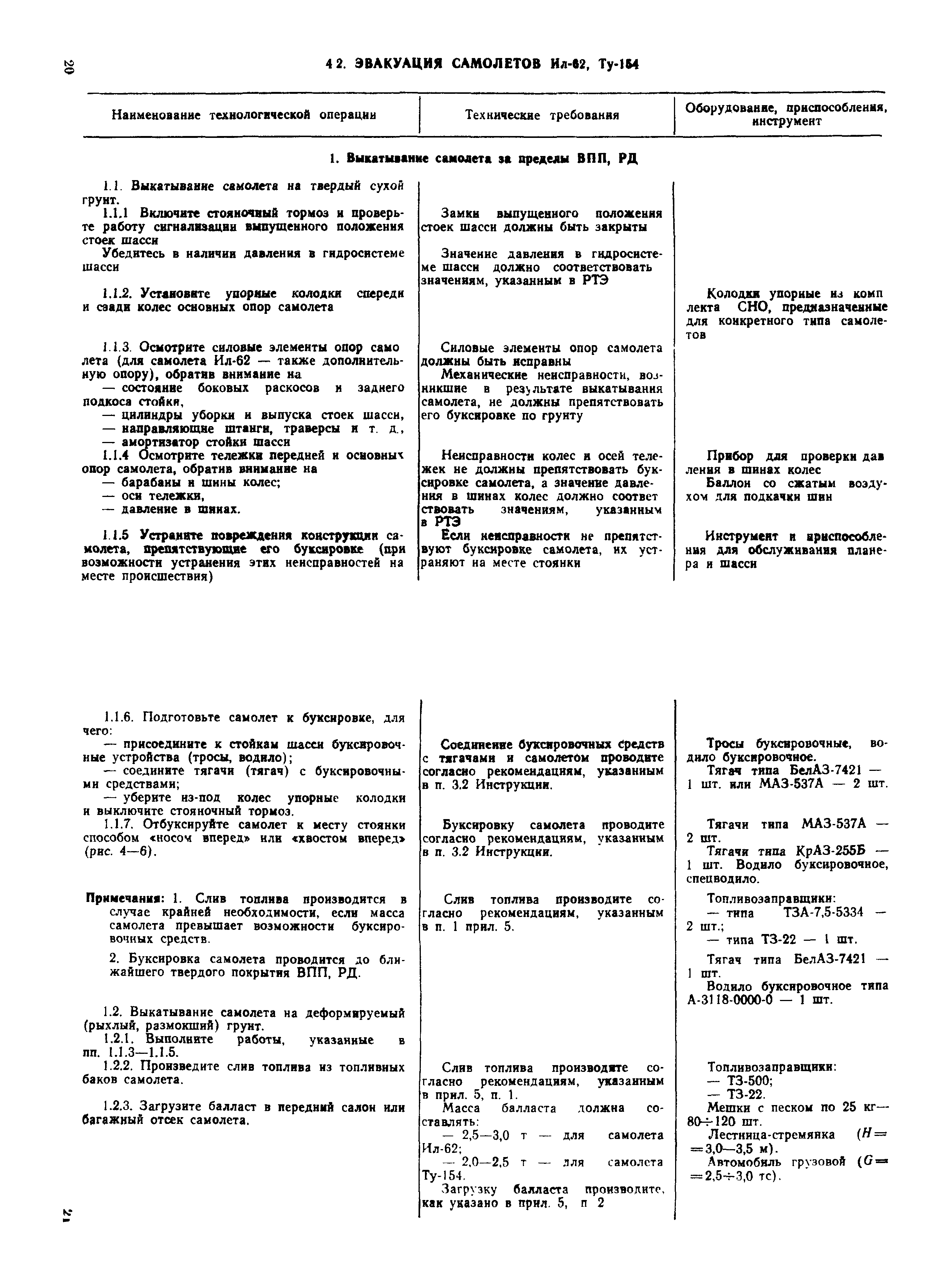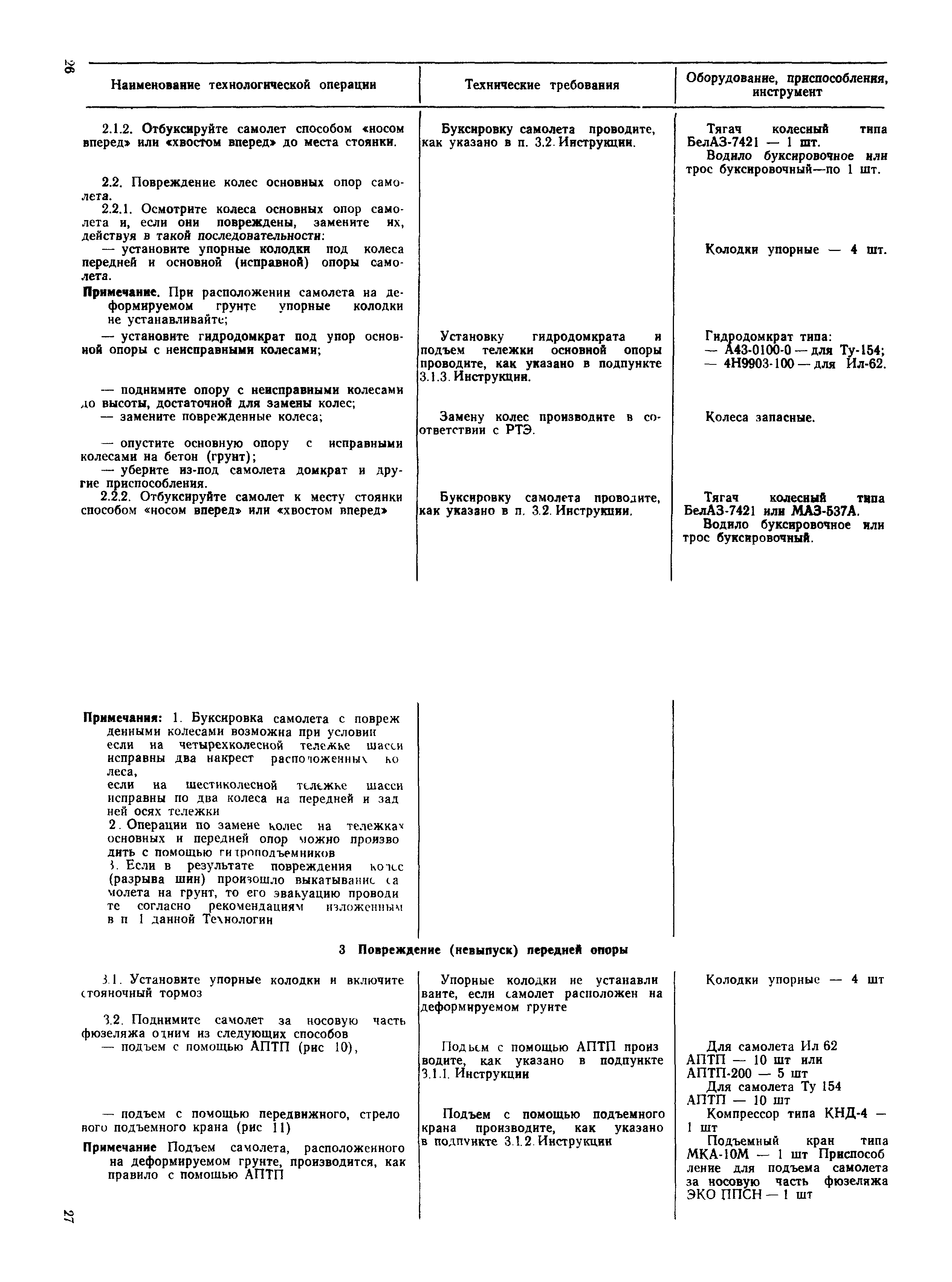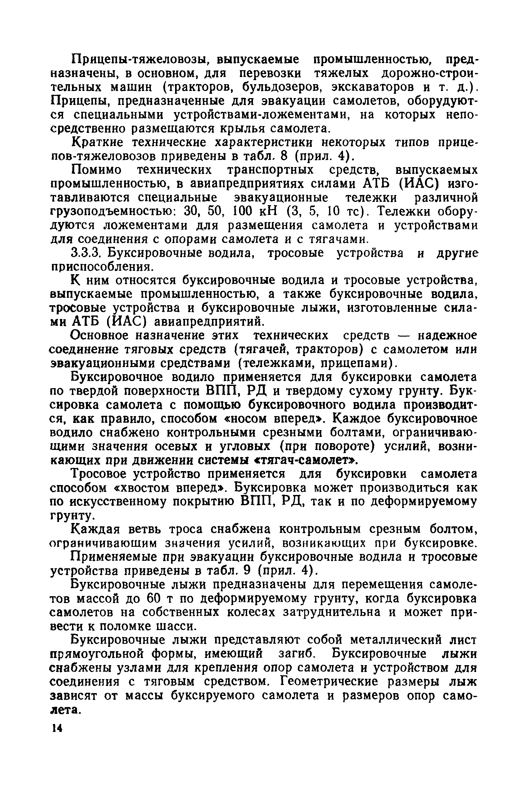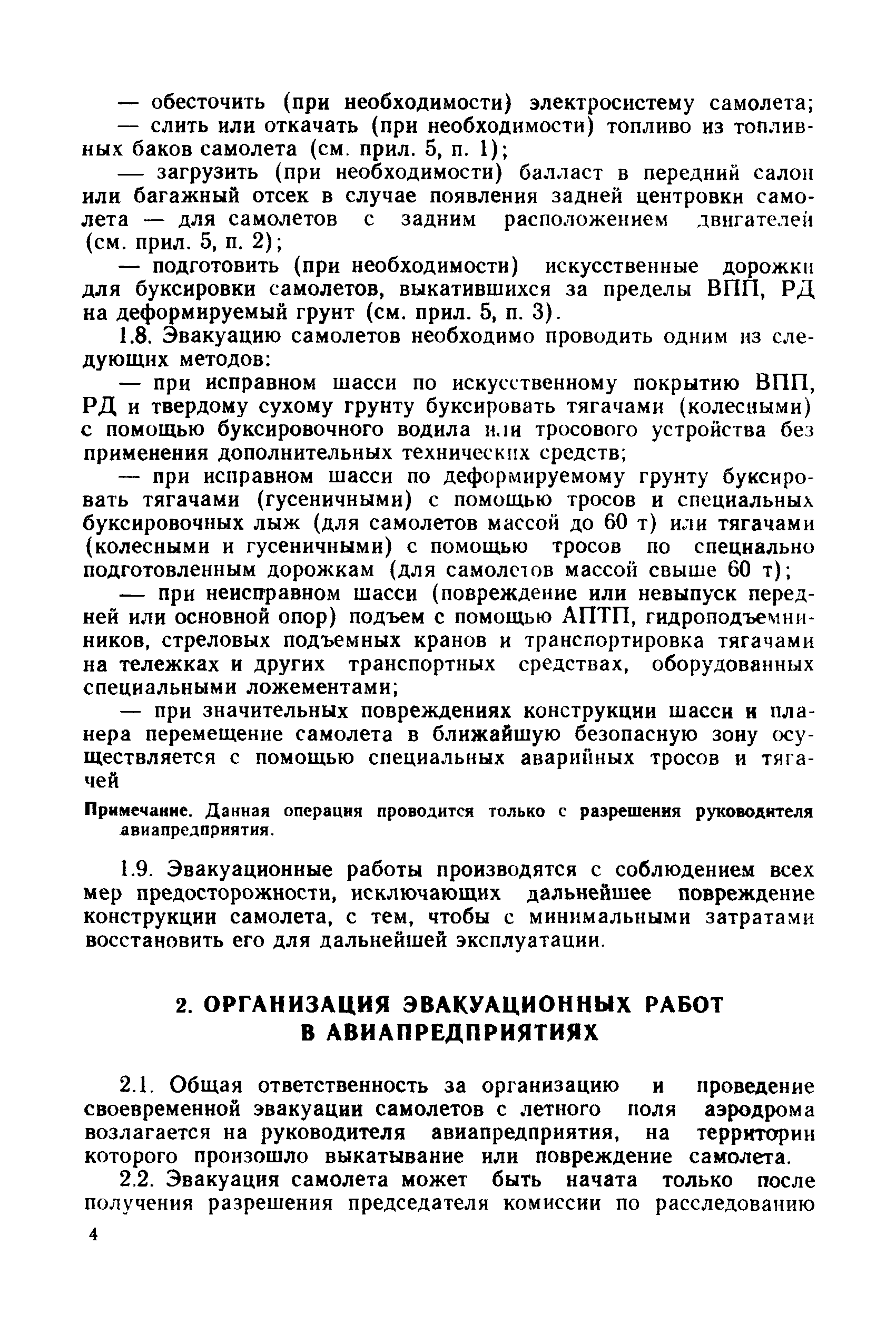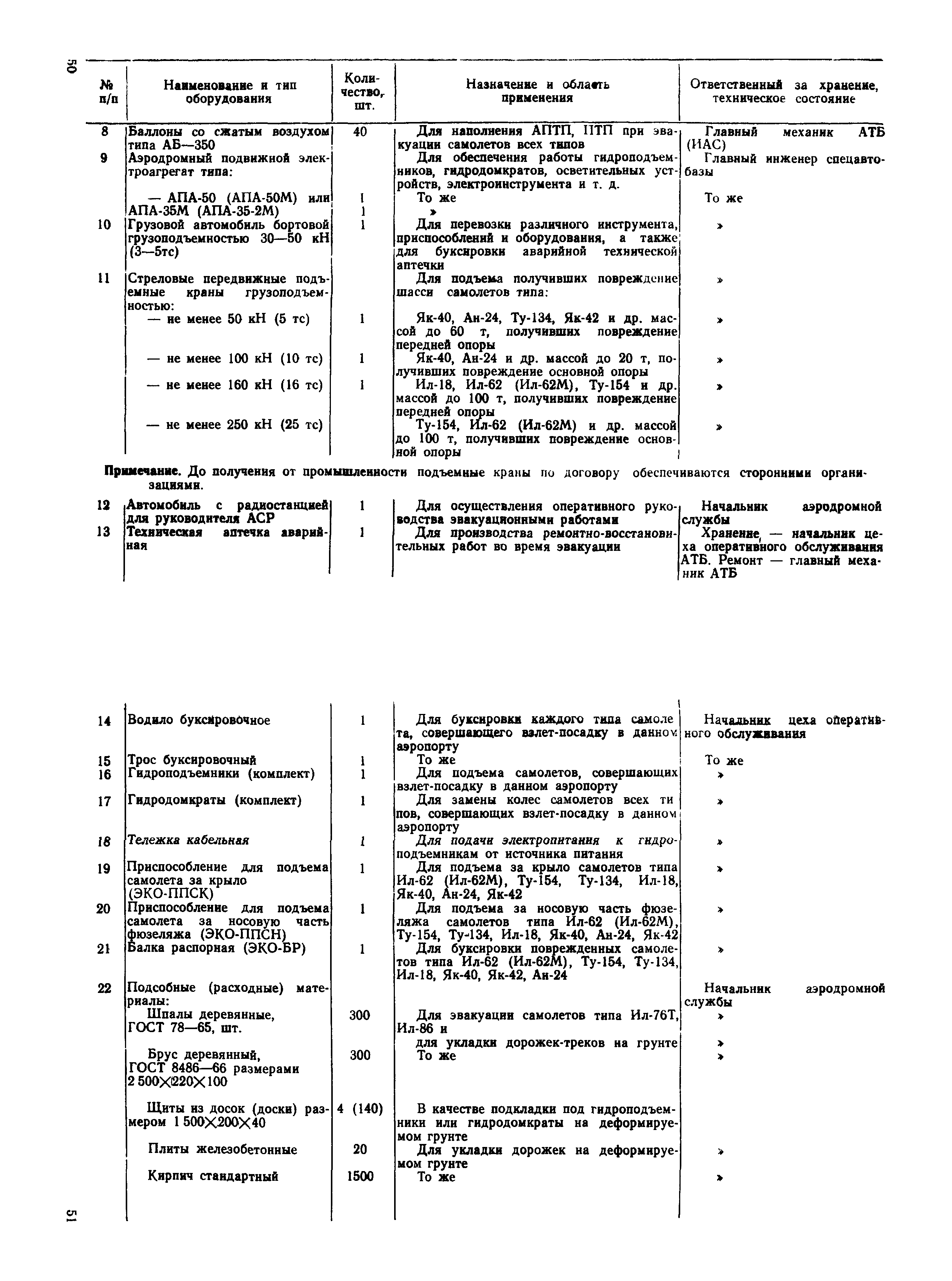 | Оглавление: | 1 Общие положения 2 Организация эвакуационных работ в авиапредприятиях 3 Технические средства, применяемые для эвакуации самолетов 3.1. Средства подъема самолетов 3.2. Основные правила буксировки (транспортировки) при проведении эвакуационных работ 3.3. Средства буксировки (транспортировки) самолетов 3.4. Вспомогательные средства, применяемые для эвакуации самолетов 4 Технология эвакуации самолетов с летного поля аэродромов гражданской авиации 4.1. Введение 4.2. Эвакуация самолетов Ил-62, Ту-154 4.3. Эвакуация самолетов типа Ил-18, Ан-12, Ан-24, Ан-26, Ту-134, Ан-28, Ан-30, Як-40, Л-410 и другие 5 Основные требования техники безопасности Приложение 1. Проект уточненных нормативов времени, необходимого для эвакуации самолетов Приложение 2. Табель средств механизации, оборудования, приспособлений и вспомогательных материалов, применяемых при проведении эвакуационных работ в авиапредприятиях Приложение 3. Перечень оборудования, входящего в состав технической аптечки Приложение 4. Краткие технические характеристики средств, применяемых при эвакуации самолетов Приложение 5. Мероприятия, проводимые перед эвакуацией самолетов Приложение 6. Схемы размещения ПТП, АПТП, АПТП-200 под самолетами Приложение 7. Специальные средства для буксировки самолетов по деформируемому грунту |