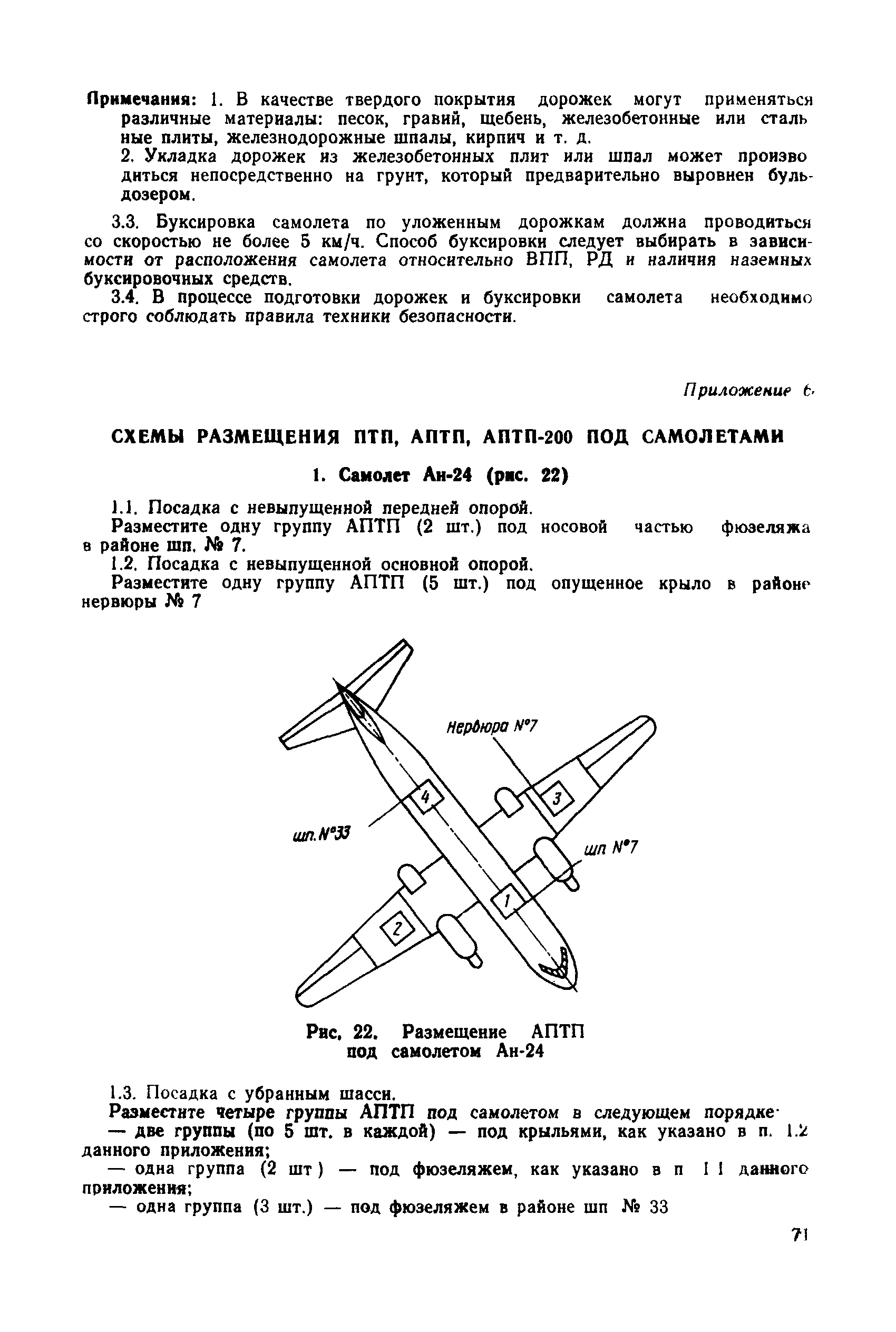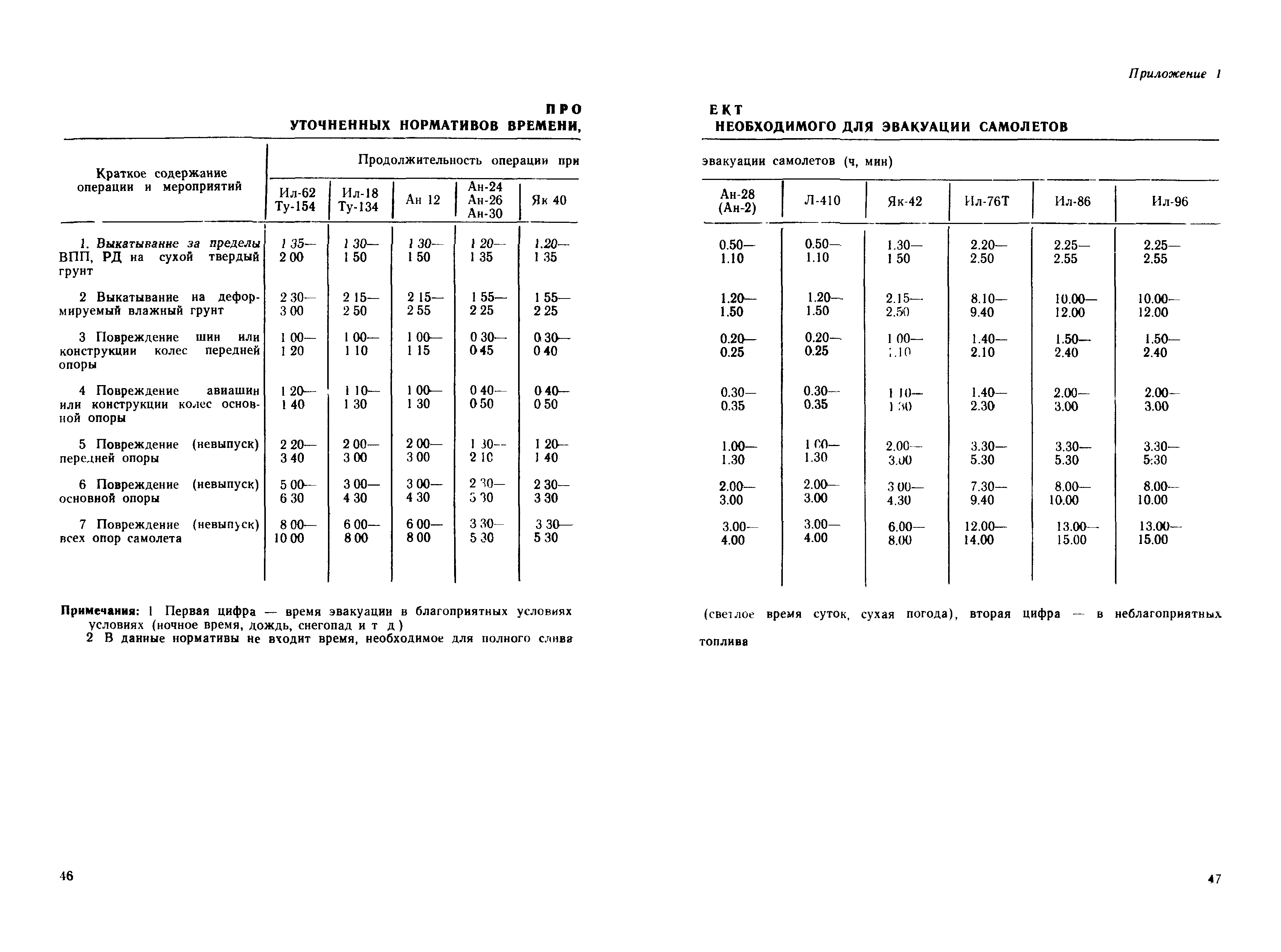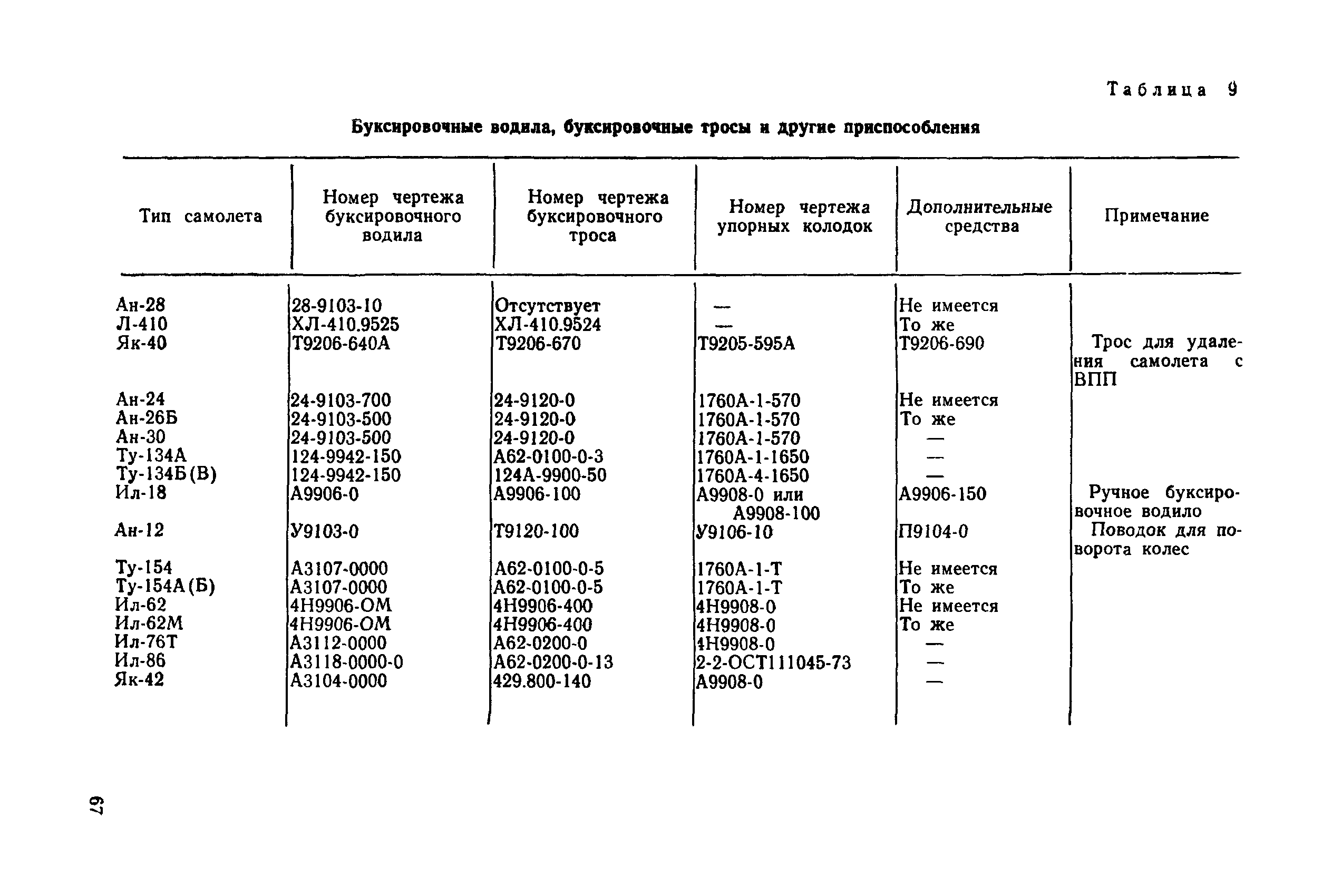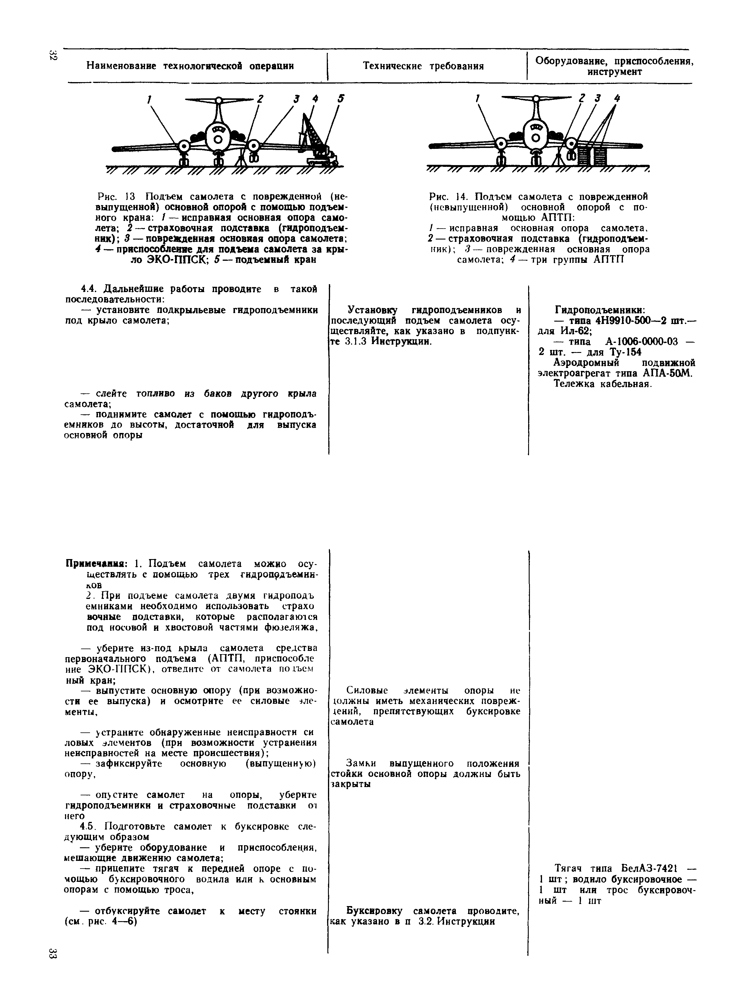 | Оглавление: | 1 Общие положения 2 Организация эвакуационных работ в авиапредприятиях 3 Технические средства, применяемые для эвакуации самолетов 3.1. Средства подъема самолетов 3.2. Основные правила буксировки (транспортировки) при проведении эвакуационных работ 3.3. Средства буксировки (транспортировки) самолетов 3.4. Вспомогательные средства, применяемые для эвакуации самолетов 4 Технология эвакуации самолетов с летного поля аэродромов гражданской авиации 4.1. Введение 4.2. Эвакуация самолетов Ил-62, Ту-154 4.3. Эвакуация самолетов типа Ил-18, Ан-12, Ан-24, Ан-26, Ту-134, Ан-28, Ан-30, Як-40, Л-410 и другие 5 Основные требования техники безопасности Приложение 1. Проект уточненных нормативов времени, необходимого для эвакуации самолетов Приложение 2. Табель средств механизации, оборудования, приспособлений и вспомогательных материалов, применяемых при проведении эвакуационных работ в авиапредприятиях Приложение 3. Перечень оборудования, входящего в состав технической аптечки Приложение 4. Краткие технические характеристики средств, применяемых при эвакуации самолетов Приложение 5. Мероприятия, проводимые перед эвакуацией самолетов Приложение 6. Схемы размещения ПТП, АПТП, АПТП-200 под самолетами Приложение 7. Специальные средства для буксировки самолетов по деформируемому грунту |