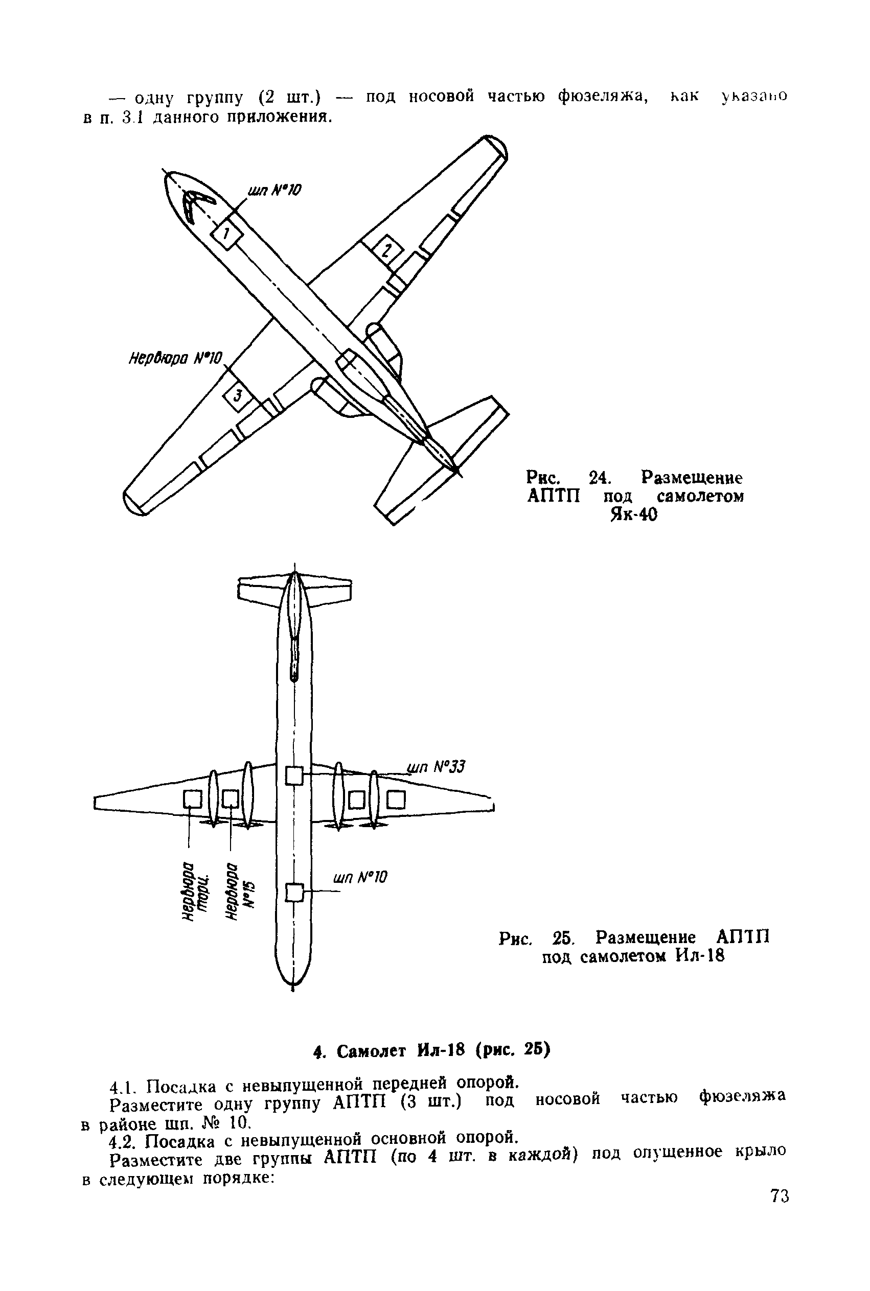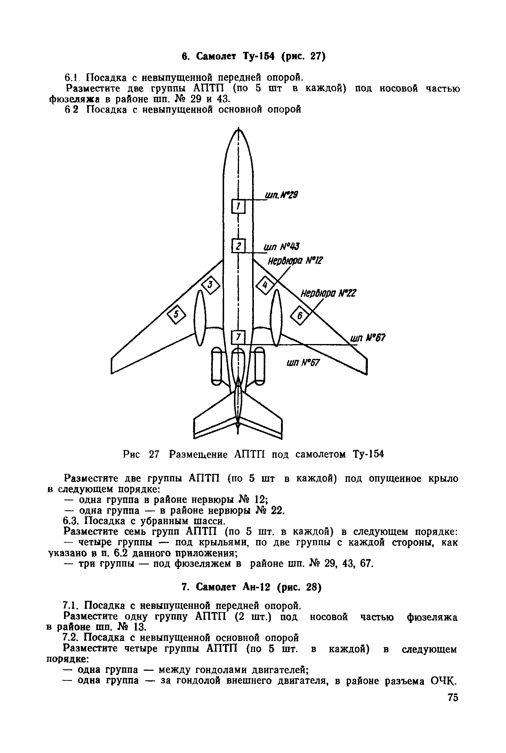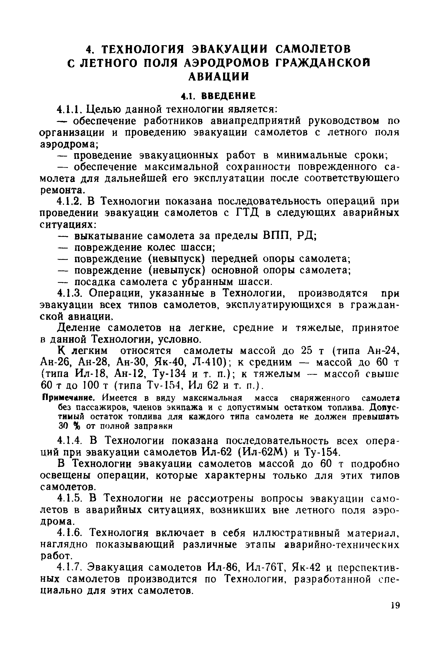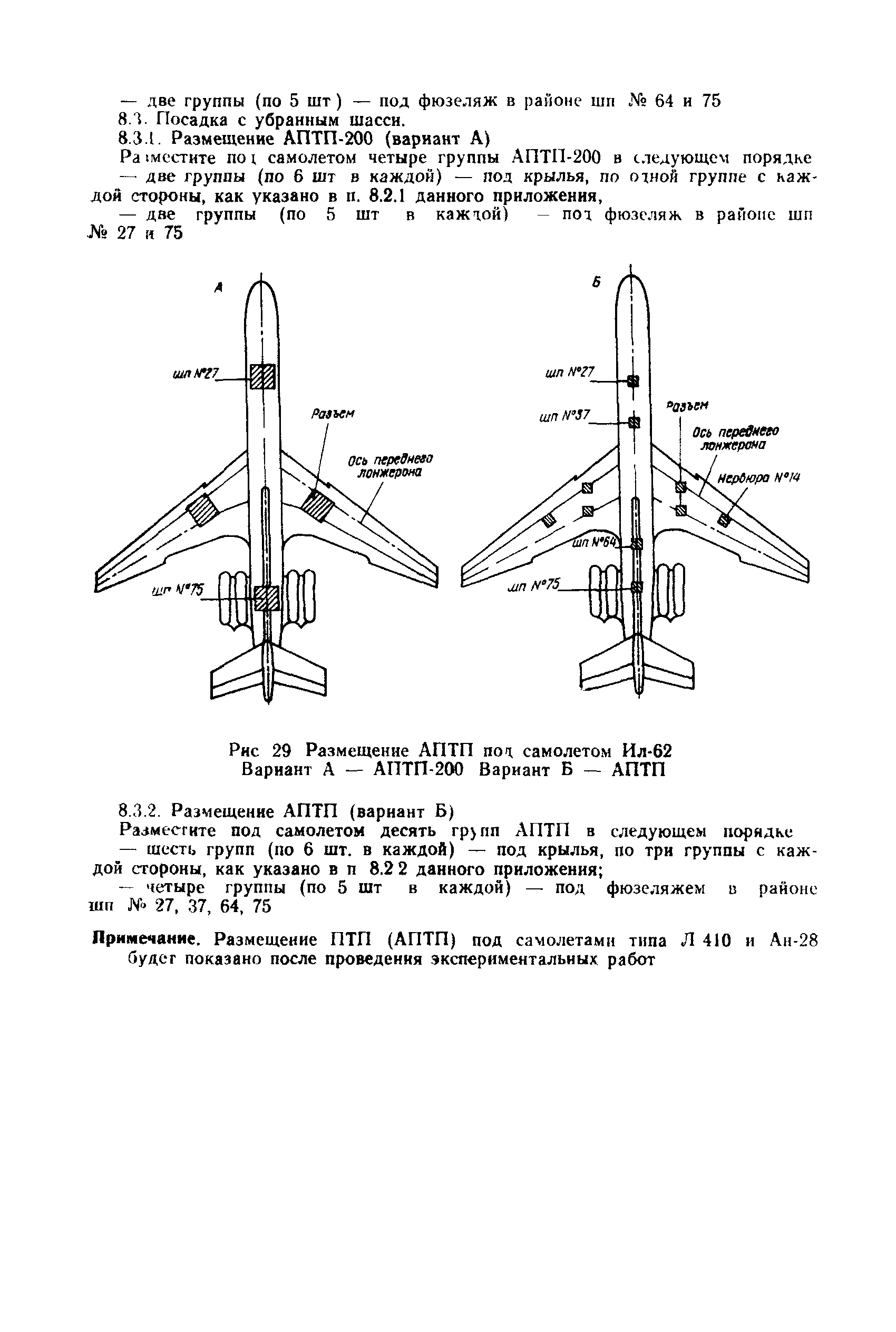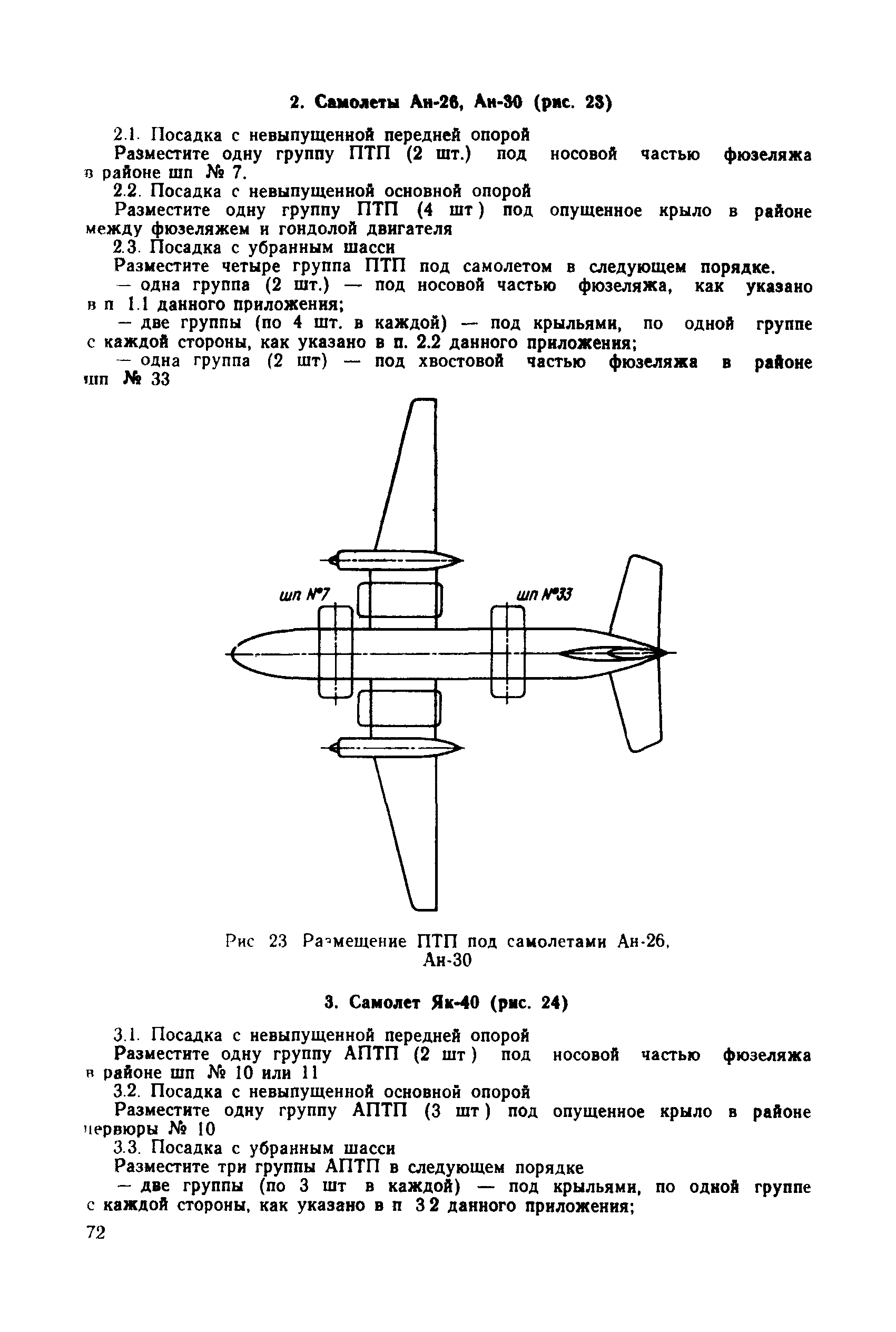 | Оглавление: | 1 Общие положения 2 Организация эвакуационных работ в авиапредприятиях 3 Технические средства, применяемые для эвакуации самолетов 3.1. Средства подъема самолетов 3.2. Основные правила буксировки (транспортировки) при проведении эвакуационных работ 3.3. Средства буксировки (транспортировки) самолетов 3.4. Вспомогательные средства, применяемые для эвакуации самолетов 4 Технология эвакуации самолетов с летного поля аэродромов гражданской авиации 4.1. Введение 4.2. Эвакуация самолетов Ил-62, Ту-154 4.3. Эвакуация самолетов типа Ил-18, Ан-12, Ан-24, Ан-26, Ту-134, Ан-28, Ан-30, Як-40, Л-410 и другие 5 Основные требования техники безопасности Приложение 1. Проект уточненных нормативов времени, необходимого для эвакуации самолетов Приложение 2. Табель средств механизации, оборудования, приспособлений и вспомогательных материалов, применяемых при проведении эвакуационных работ в авиапредприятиях Приложение 3. Перечень оборудования, входящего в состав технической аптечки Приложение 4. Краткие технические характеристики средств, применяемых при эвакуации самолетов Приложение 5. Мероприятия, проводимые перед эвакуацией самолетов Приложение 6. Схемы размещения ПТП, АПТП, АПТП-200 под самолетами Приложение 7. Специальные средства для буксировки самолетов по деформируемому грунту |