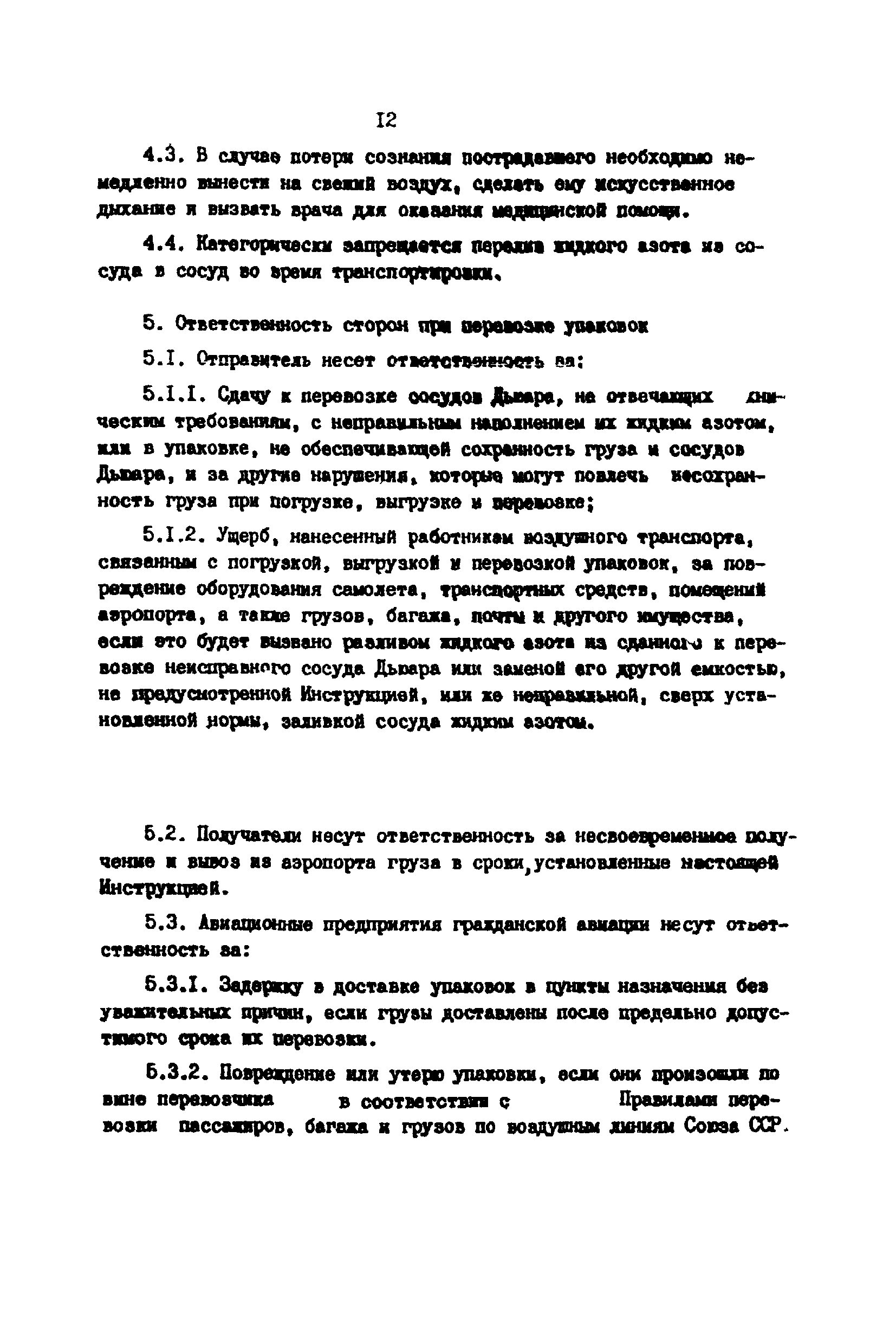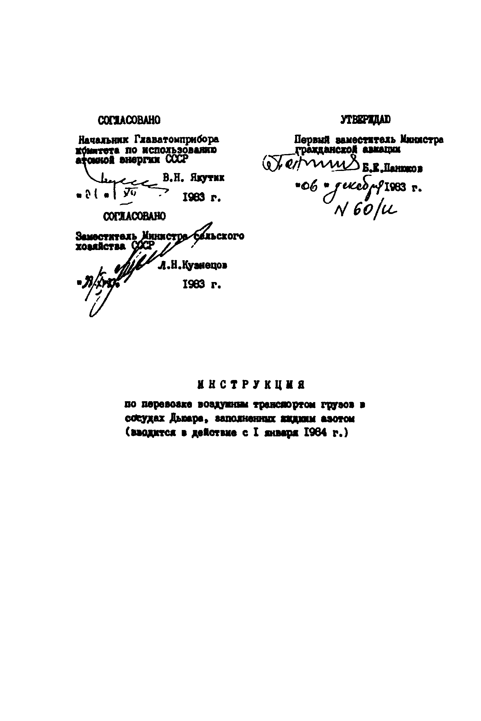 - «Инструкция по перевозке воздушным транспортом семени сельскохозяйственных животных в сосудах Дьюара, заполненных жидким азотом»