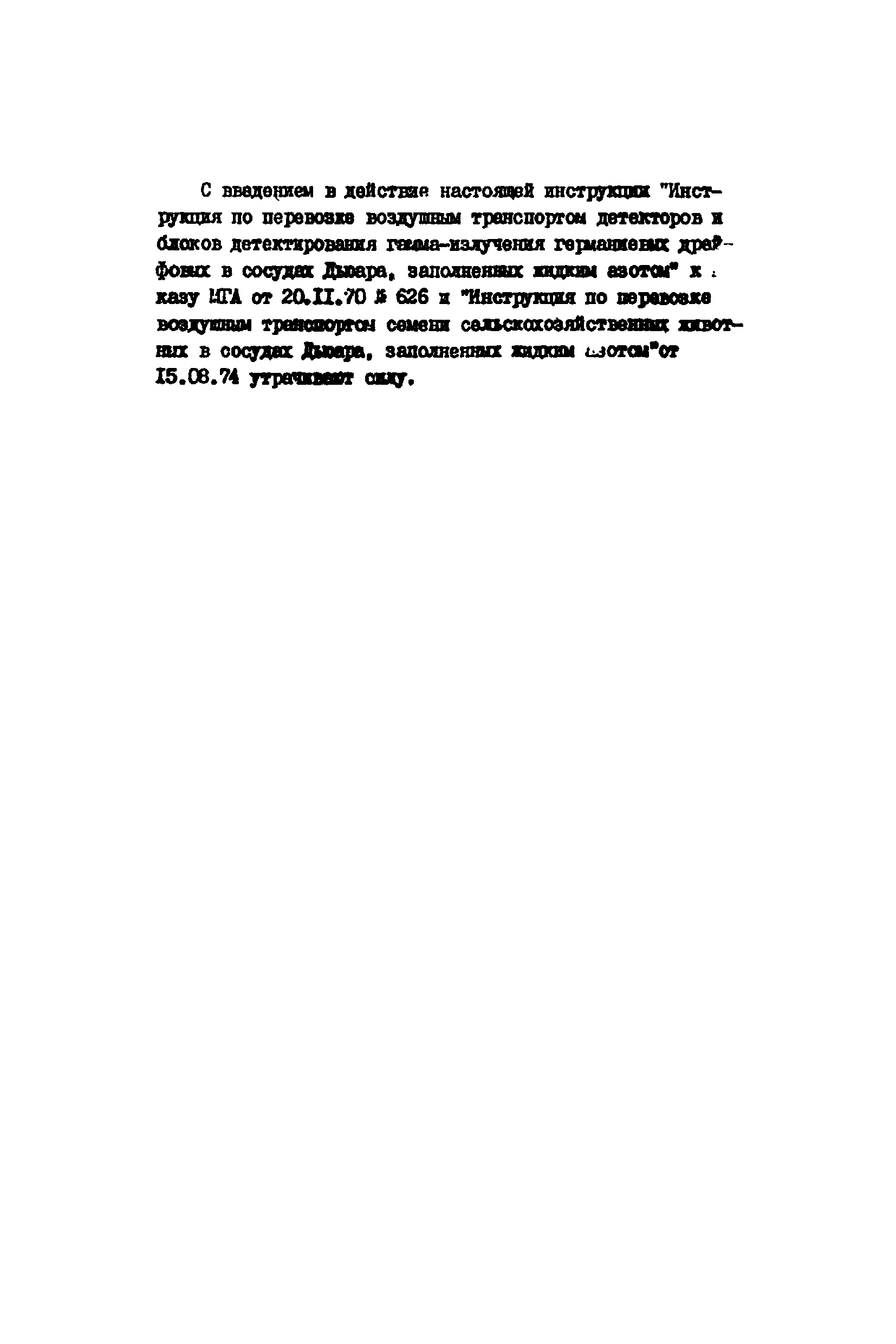 | Заменяет собой: | - «Инструкция по перевозке воздушным транспортом детекторов и блоков детектирования гама-излучения германиевых дрейфовых в сосудах Дьюара, заполненных жидким азотом»