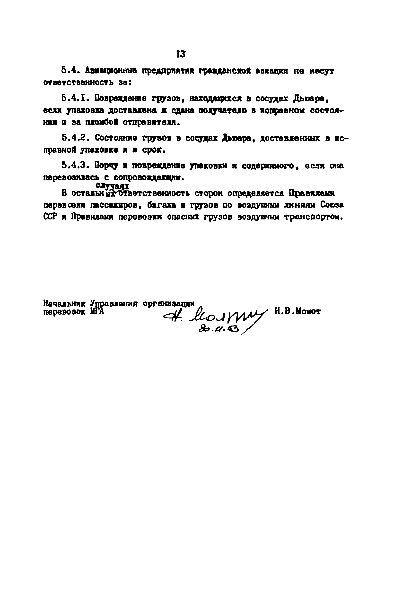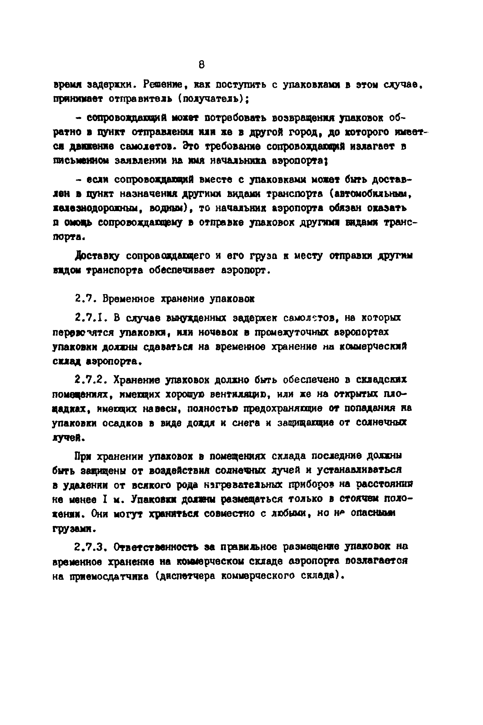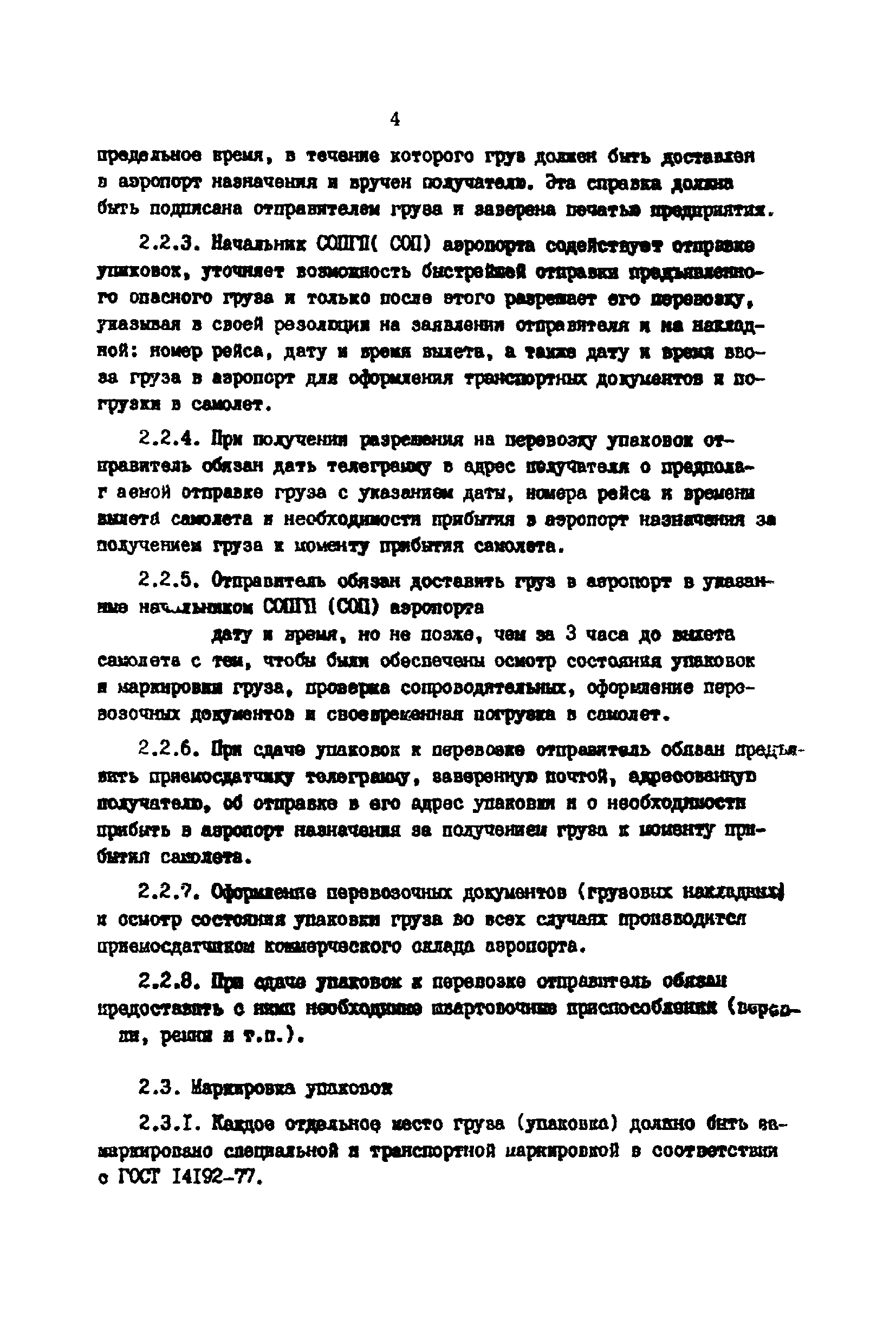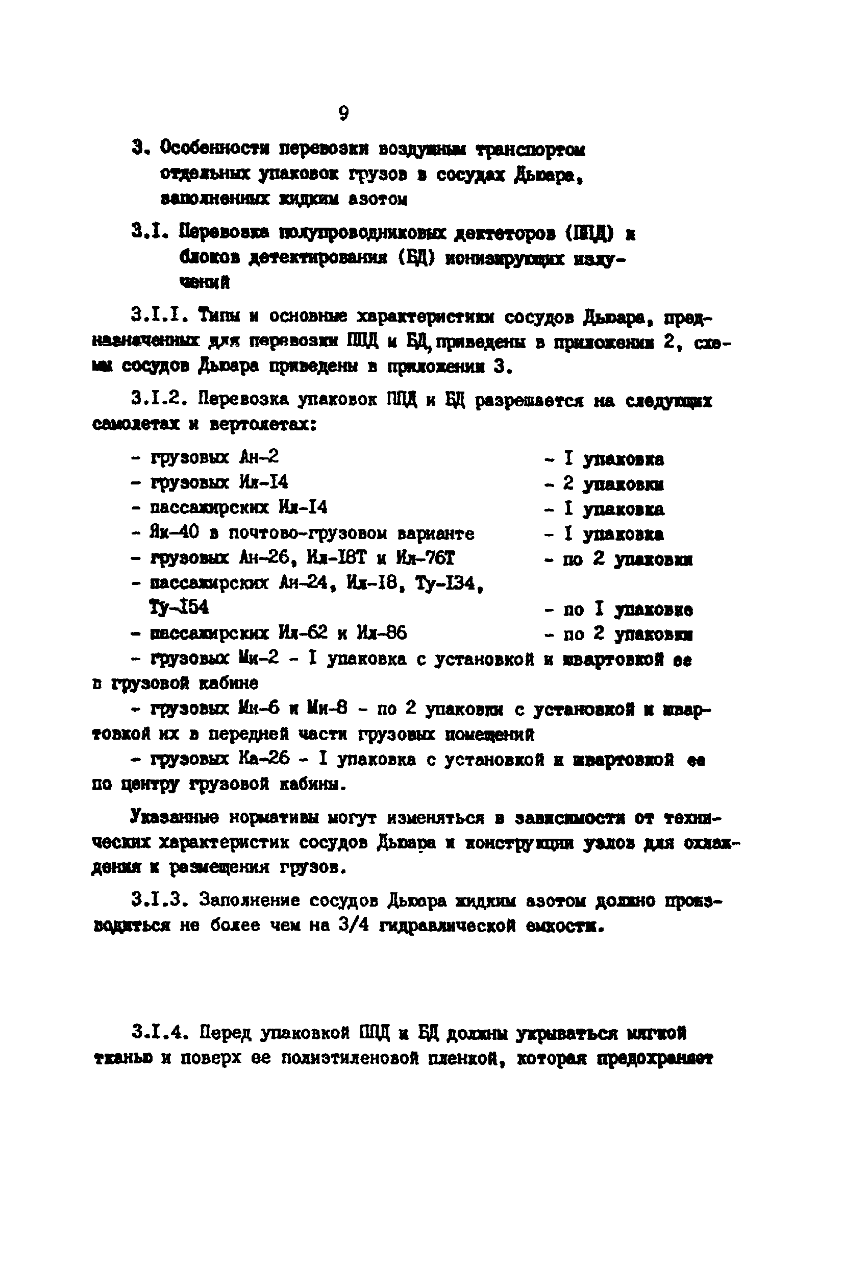 | Оглавление: | 1. Общие положения 2. Условия перевозок упаковок 2.1. Общие условия 2.2. Оформление заявлений и разрешений на право перевозки и транспортных документов. Прием и сдача грузов к перевозке 2.3. Маркировка упаковок 2.4. Погрузка-выгрузка упаковок 2.5. Правила размещения и швартовки упаковок в самолетах 2.6. Мероприятия при задержках в доставке упаковок 2.7. Временное хранение упаковок 3. Особенности перевозки воздушным транспортом отдельных упаковок грузов в сосудах Дьюара, заполненных жидким азотом 3.1. Перевозка полупроводниковых детекторов (ППД) и блоков детектирования (БД) ионизирующих излучений 3.2. Перевозка семени сельскохозяйственных животных и вакцины против болезни Марека птиц 4. Правила техники безопасности при перевозке и временном хранении упаковок 5. Ответственность сторон при перевозке упаковок Приложение 1. Образцы этикеток транспортной и специальной маркировки упаковок Приложение 2. Технические характеристики сосудов Дьюара, заполненных жидким азотом, для перевозки грузов воздушным транспортом Приложение 3. Схема сосуда Дьюара для перевозки ППД и БД |