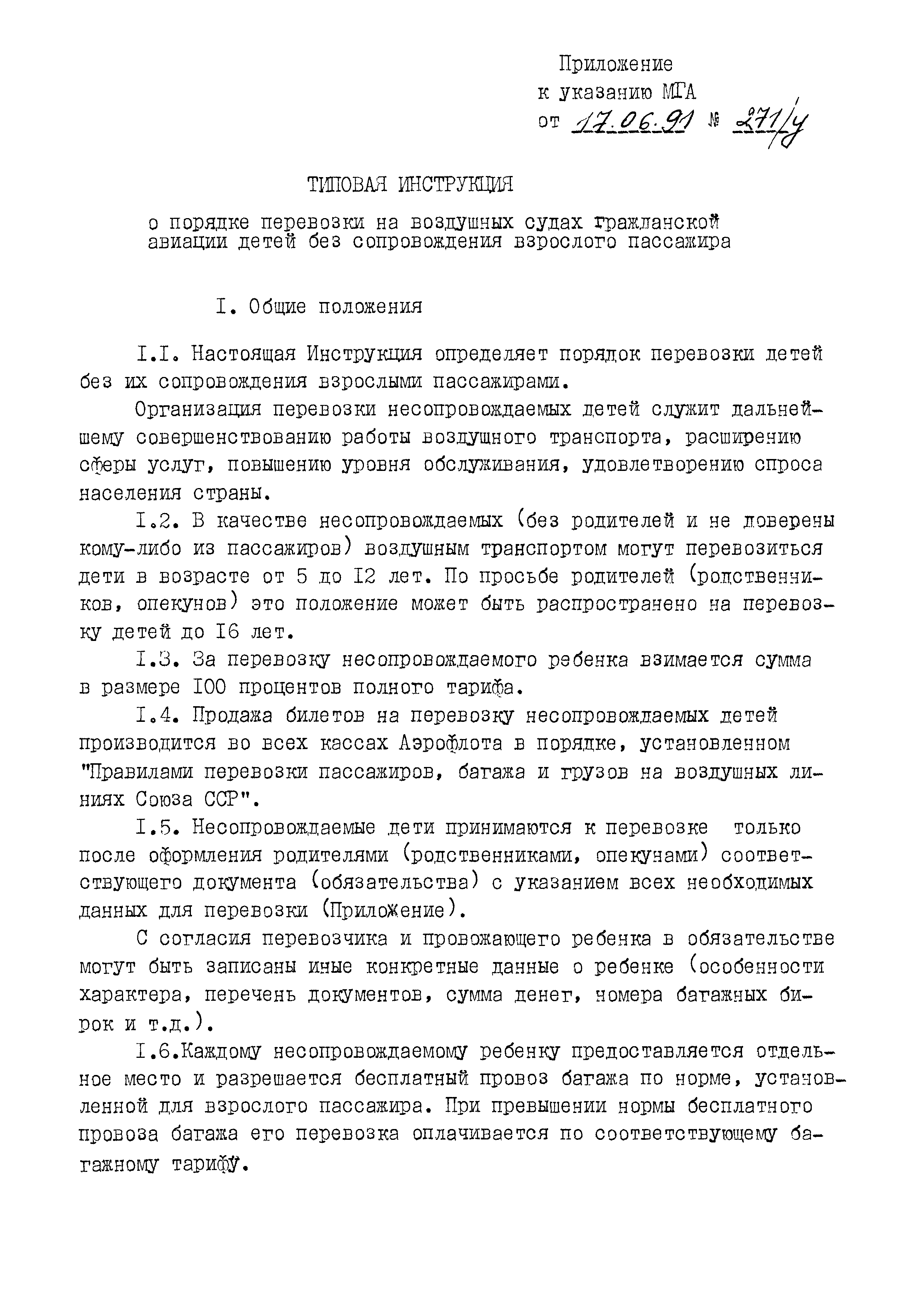 | Название рус.: | Типовая инструкция о порядке перевозки на воздушных судах гражданской авиации детей без сопровождения взрослого пассажира |