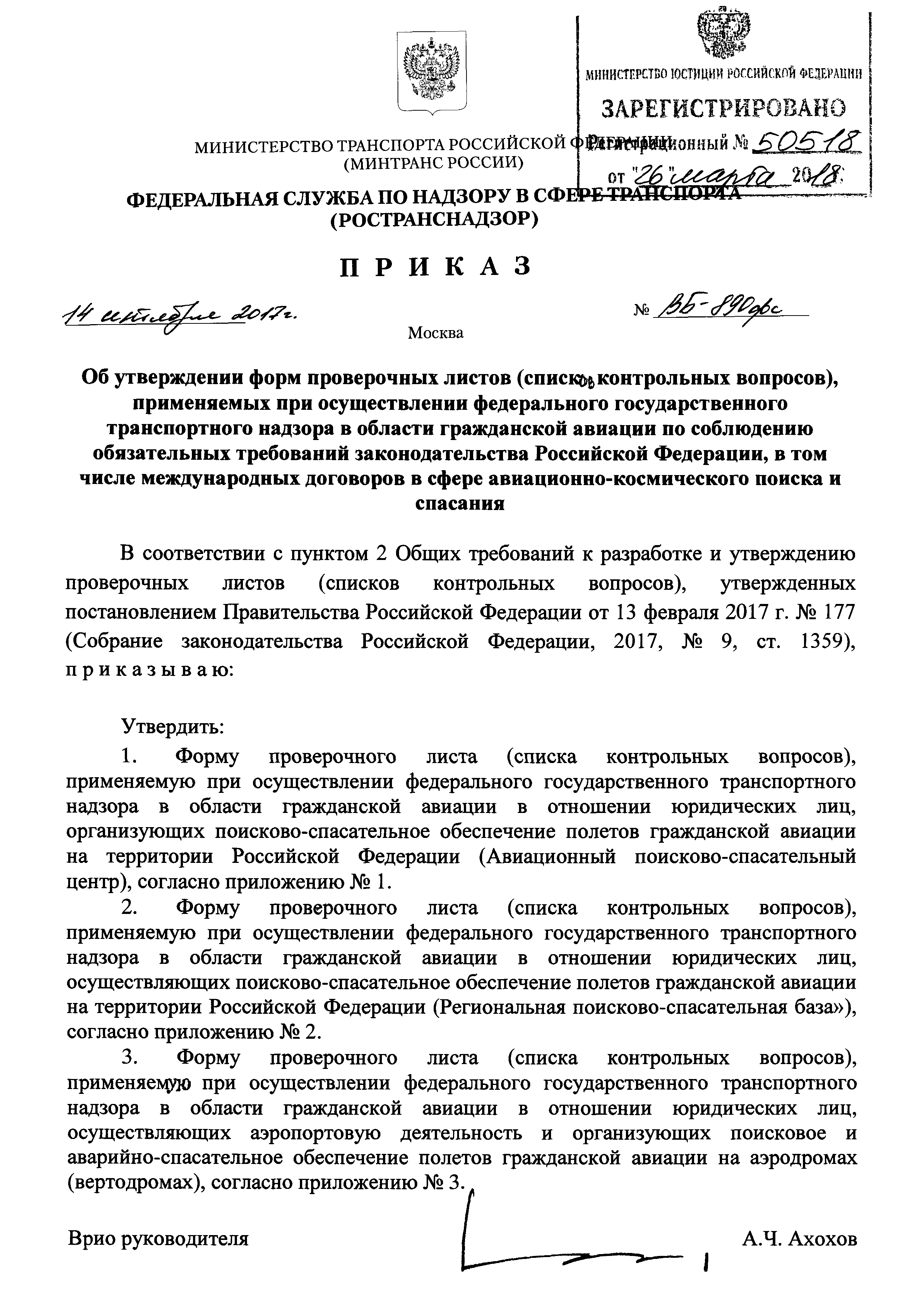 | Утверждён: | 14.09.2017 Федеральная служба по надзору в сфере транспорта (ВБ-890фс) |