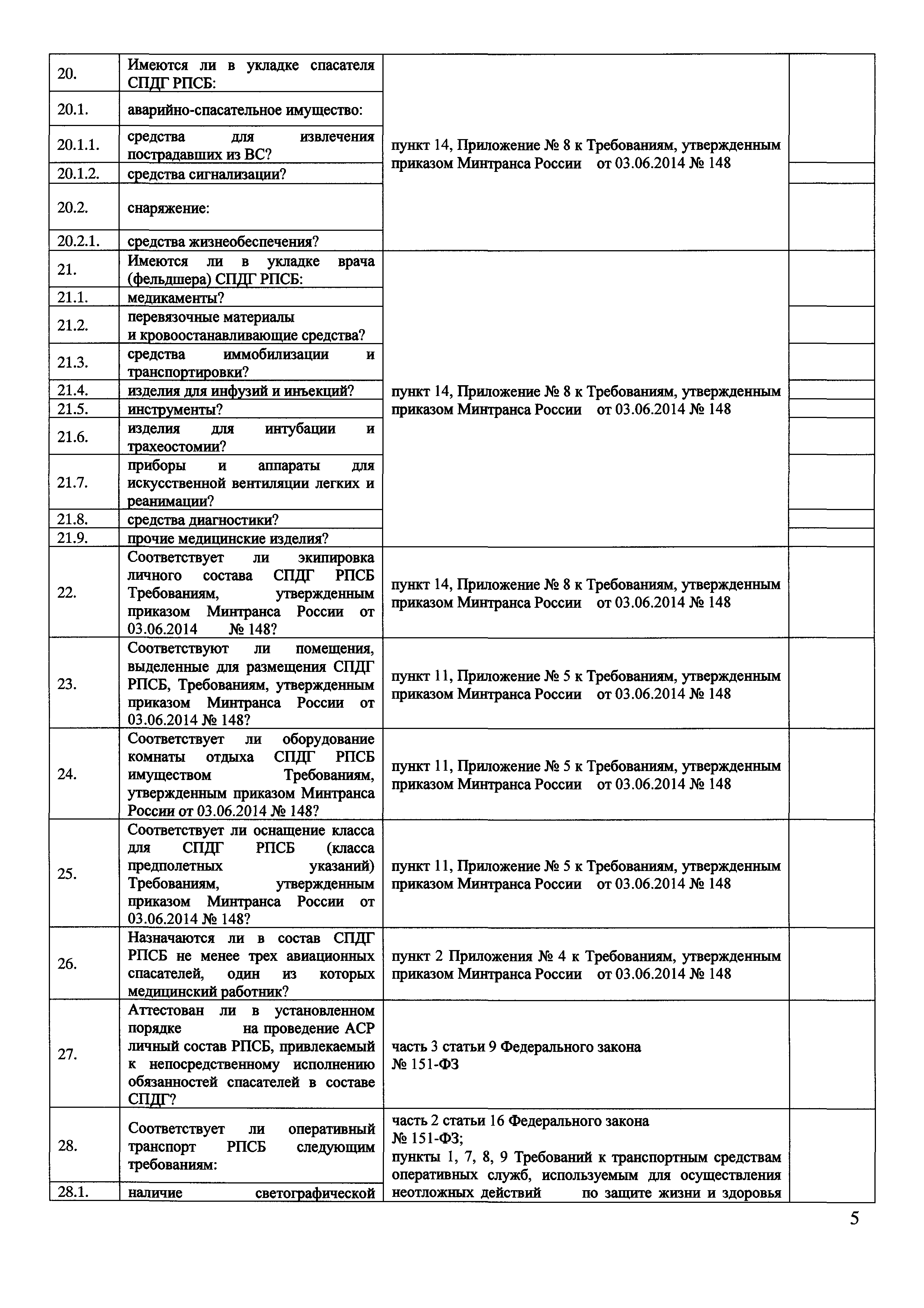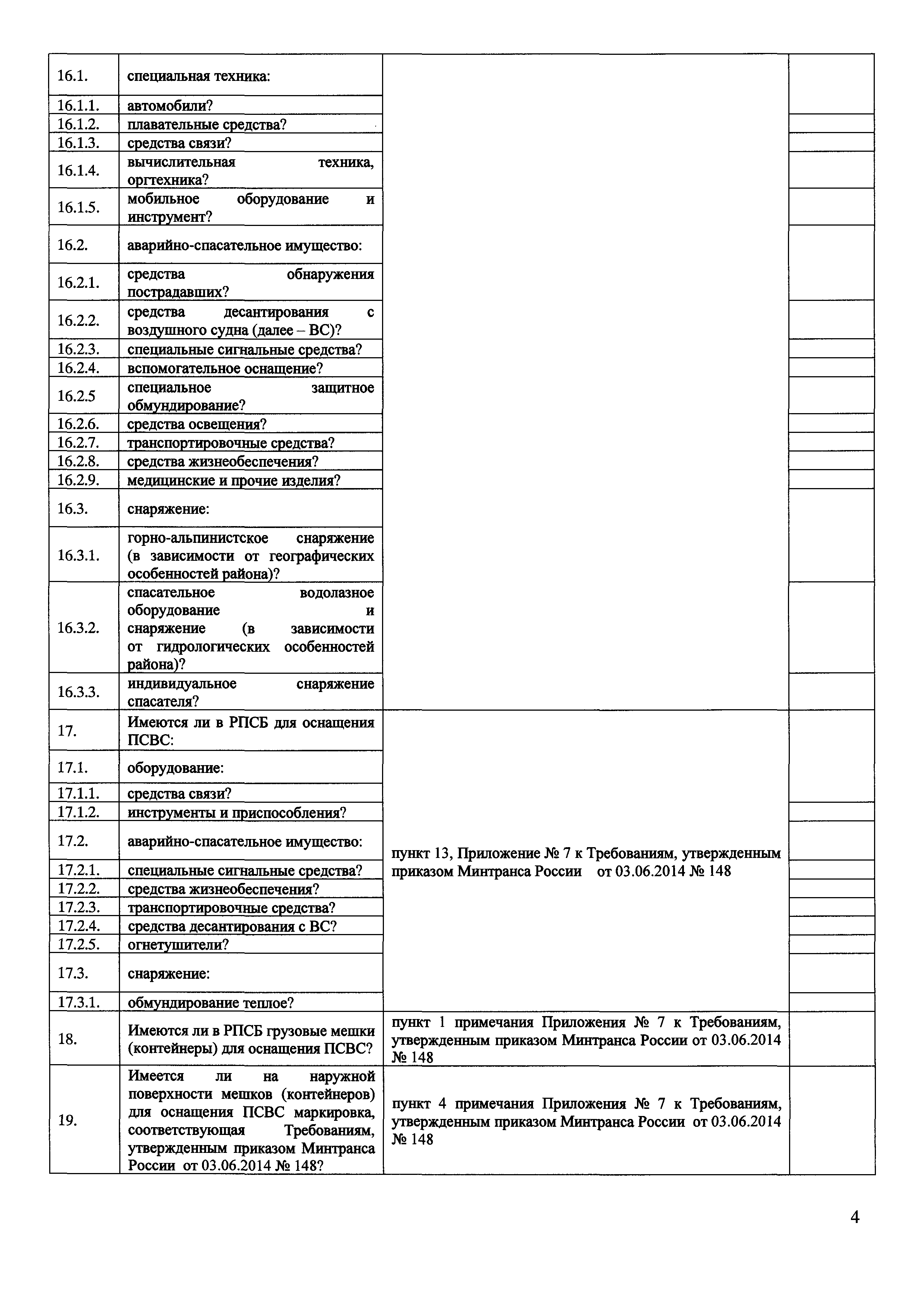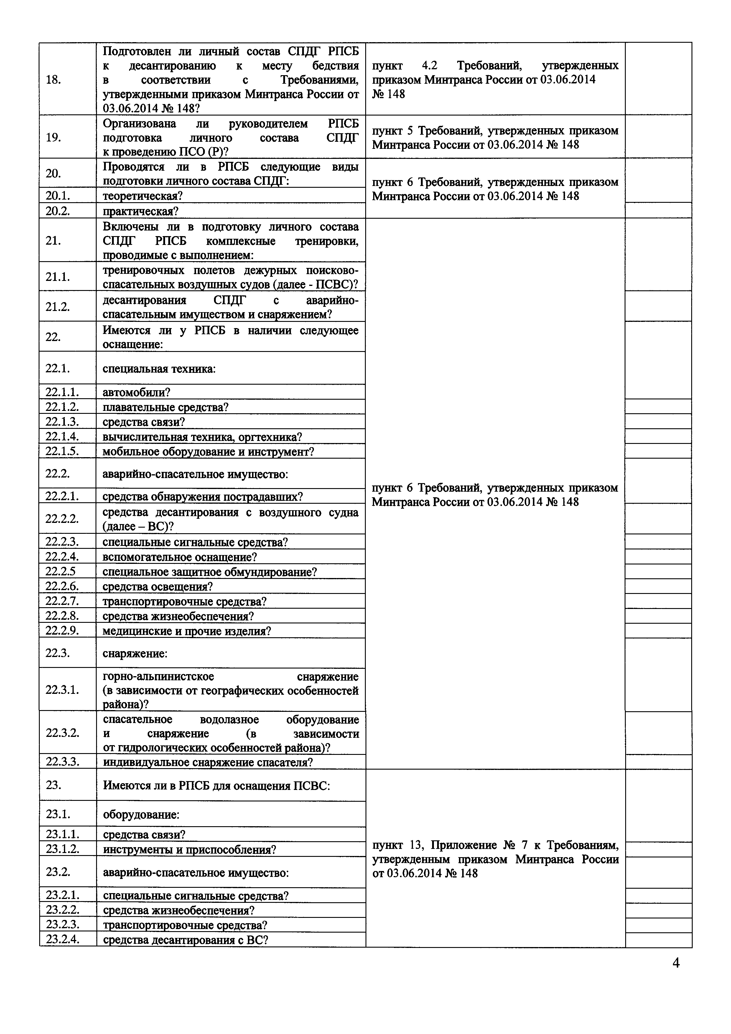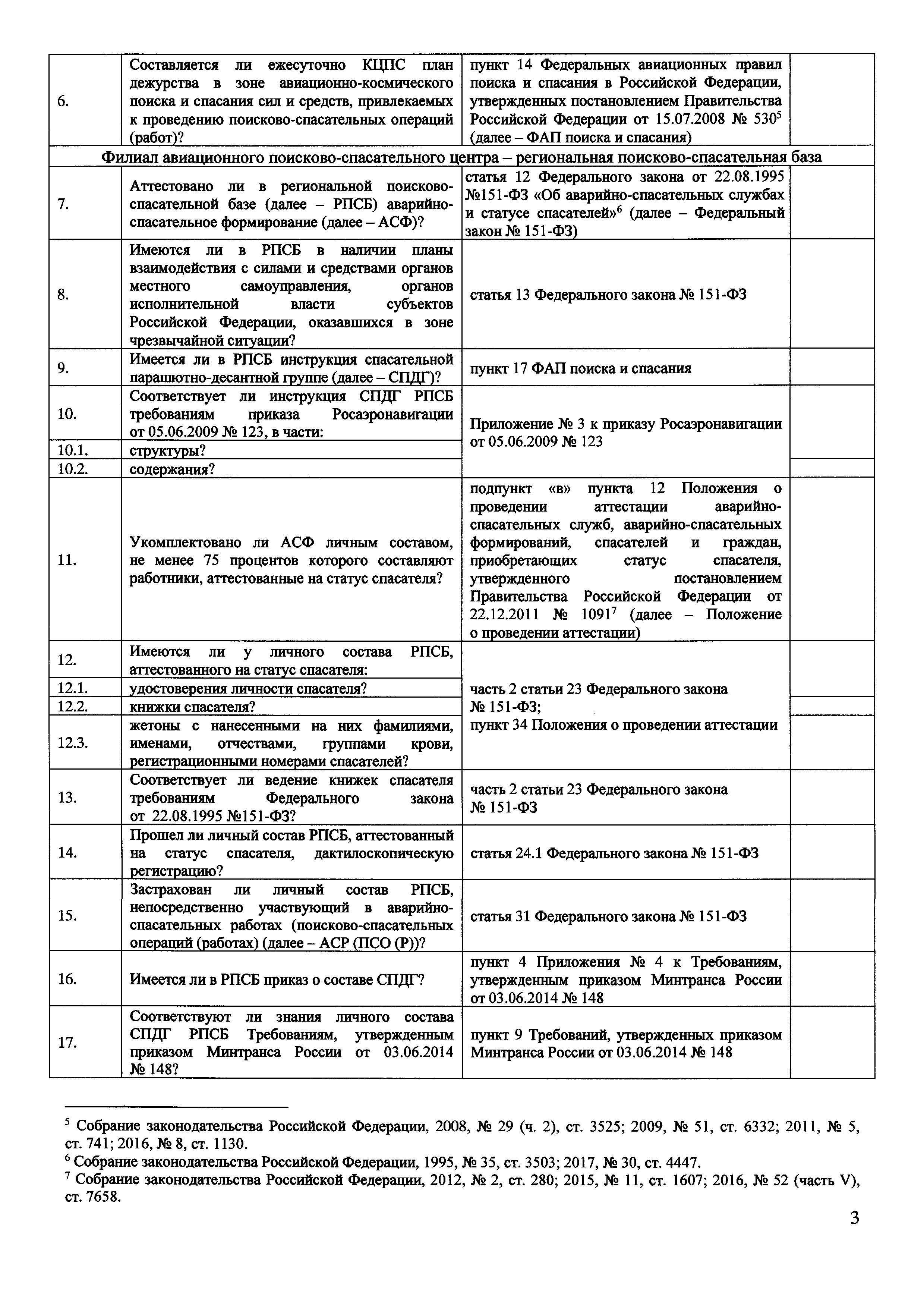 | Оглавление: | Приложение № 1. Форма проверочного листа (списка контрольных вопросов), применяемую при осуществлении федерального государственного транспортного надзора в области гражданской авиации в отношении юридических лиц, организующих поисково-спасательное обеспечение полетов гражданской авиации на территории Российской Федерации (Авиационный поисково-спасательный центр) Приложение № 2 Форма проверочного листа (списка контрольных вопросов), применяемую при осуществлении федерального государственного транспортного надзора в области гражданской авиации в отношении юридических лиц, осуществляющих поисково-спасательное обеспечение полетов гражданской авиации на территории Российской Федерации (Региональная поисково-спасательная база) Приложение № 3. Форма проверочного листа (списка контрольных вопросов), применяемую при осуществлении федерального государственного транспортного надзора в области гражданской авиации в отношении юридических лиц, осуществляющих аэропортовую деятельность и организующих поисковое и аварийно-спасательное обеспечение полетов гражданской авиации на аэродромах (вертодромах) (Служба поискового и аварийно-спасательное обеспечение полетов гражданской авиации) |