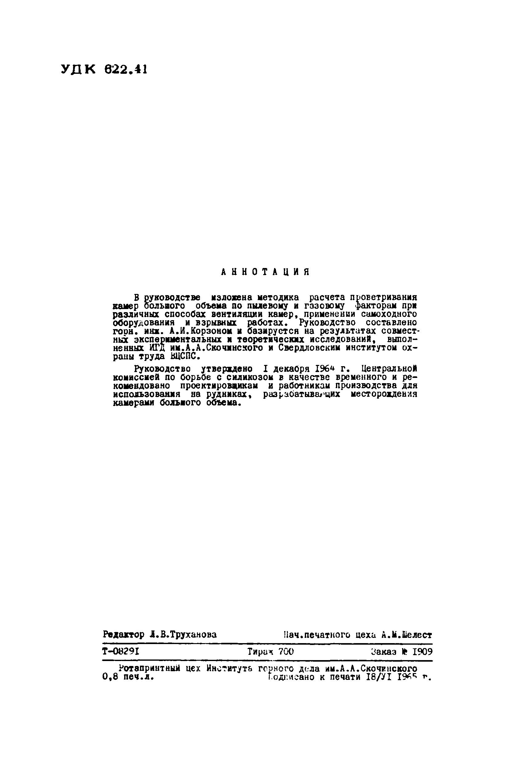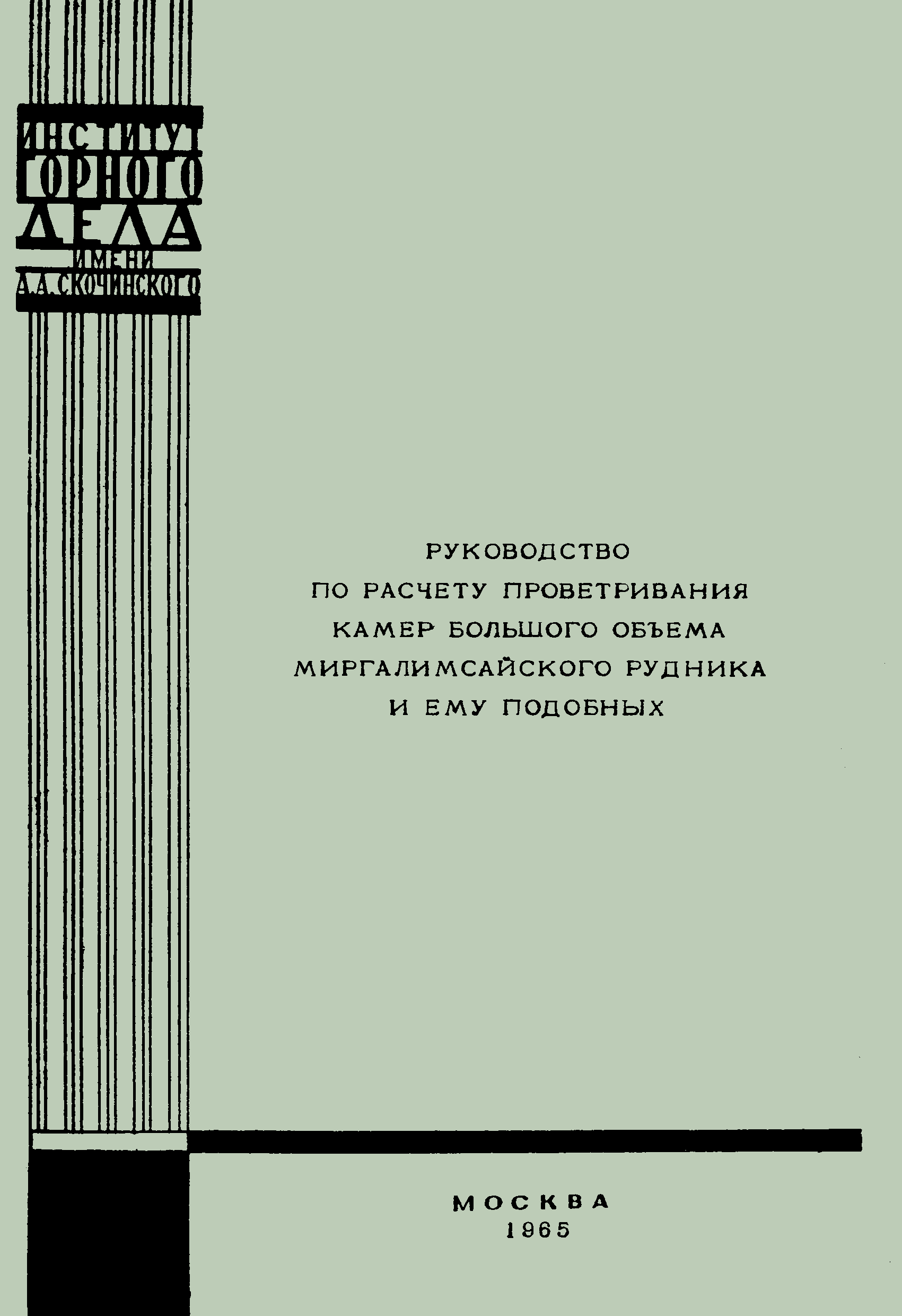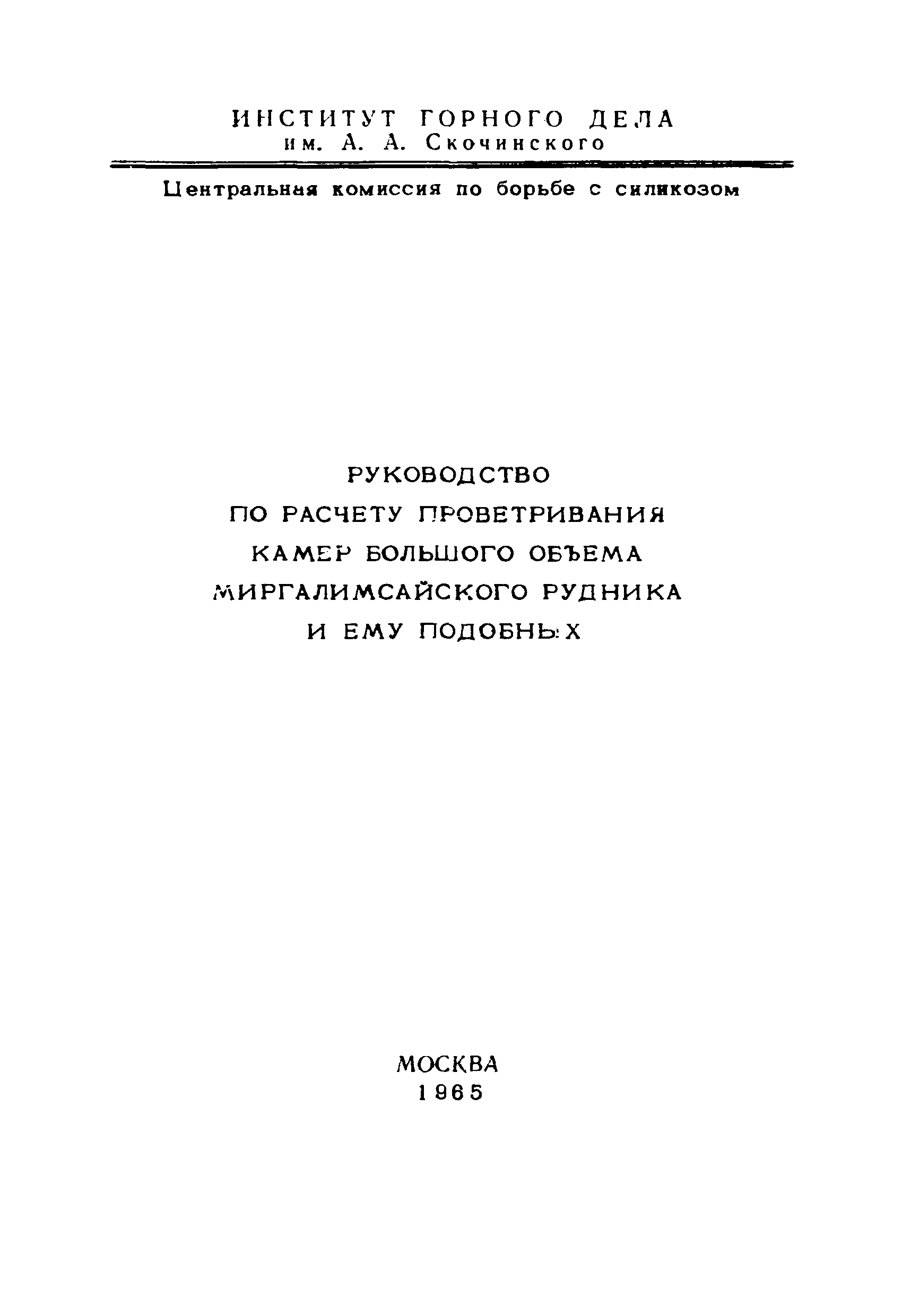| Название рус.: | Руководство по расчету проветривания камер большого объема Миргалимсайского рудника и ему подобных |