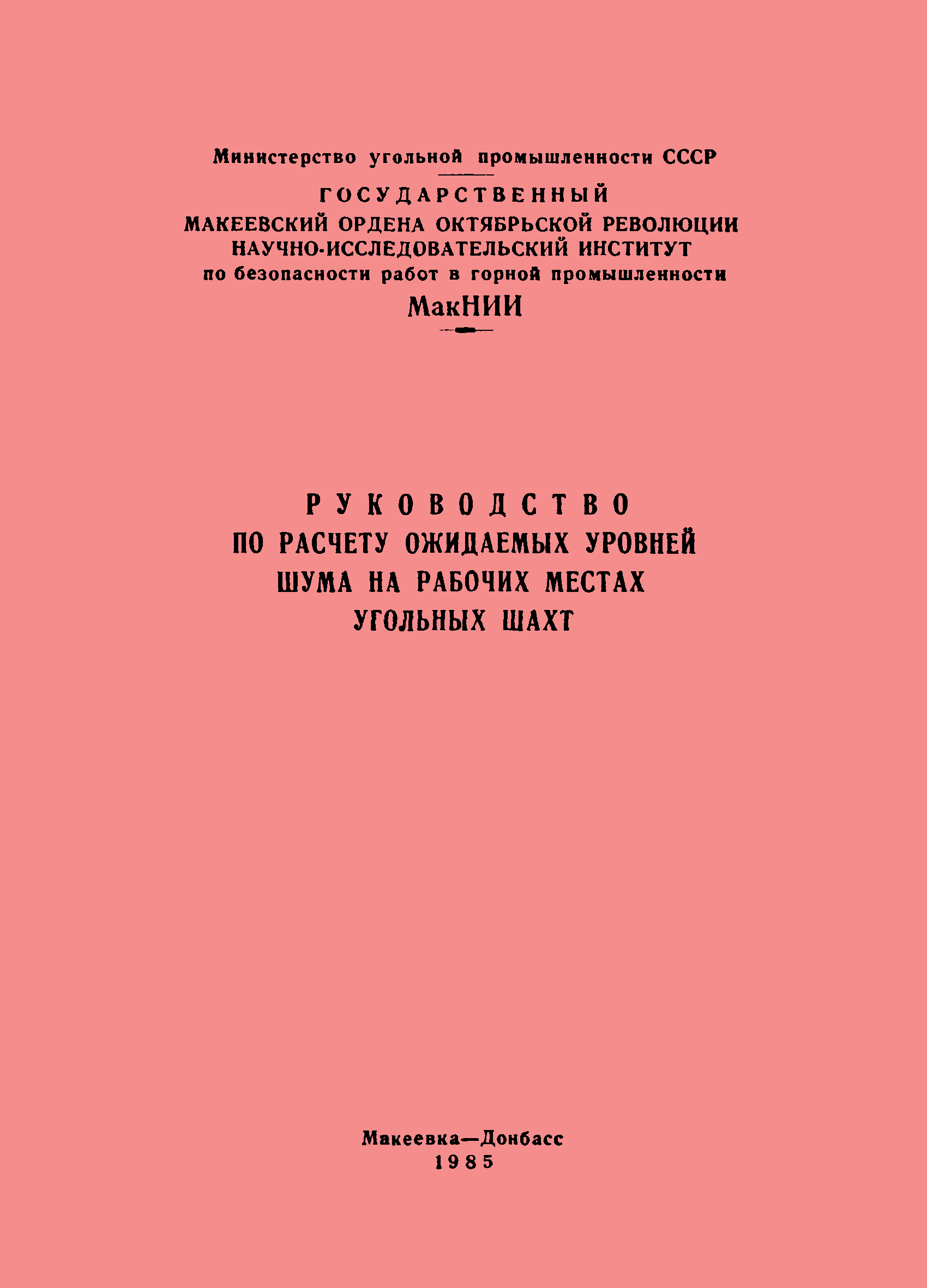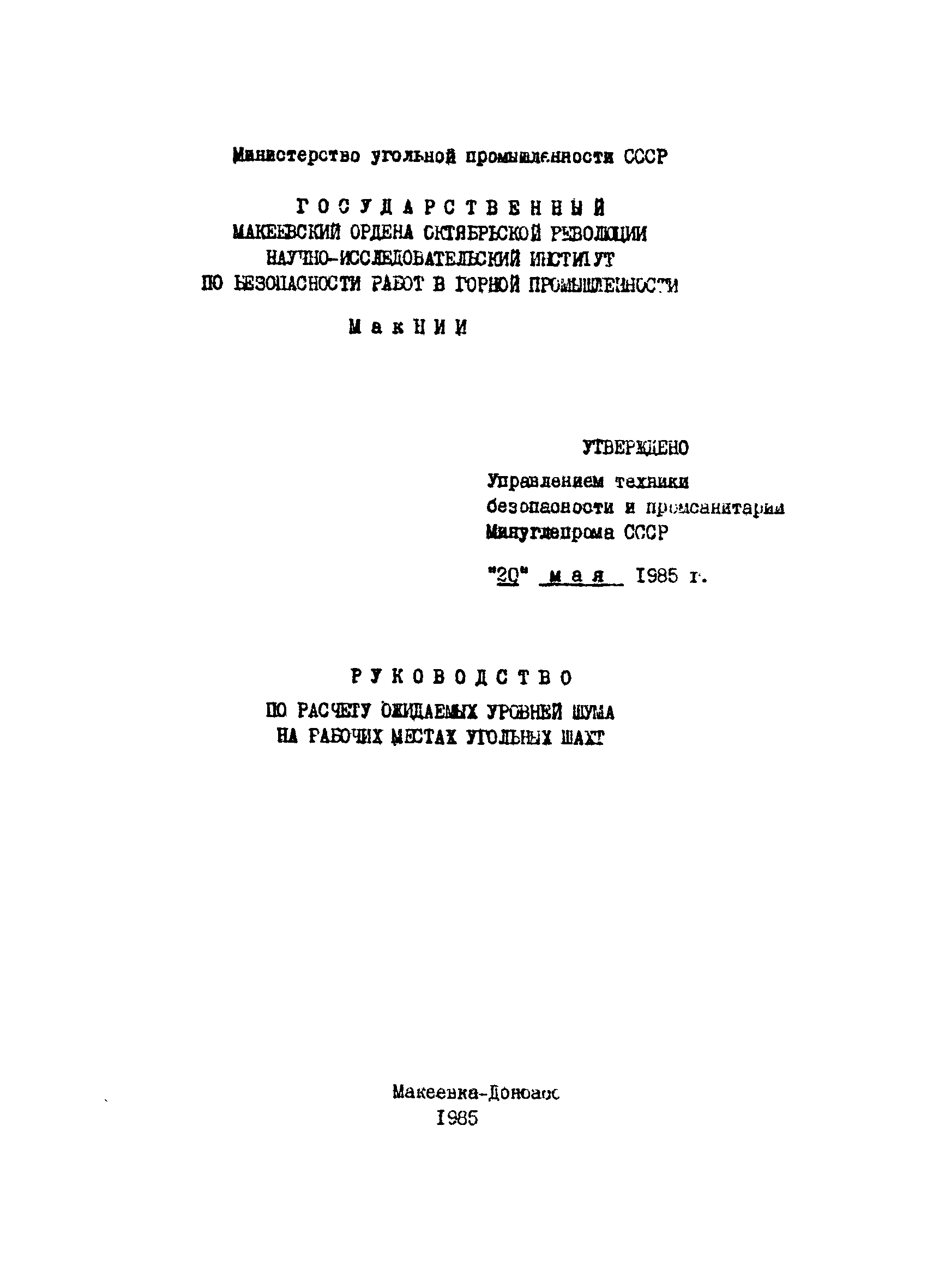 | Название рус.: | Руководство по расчету ожидаемых уровней шума на рабочих местах угольных шахт |