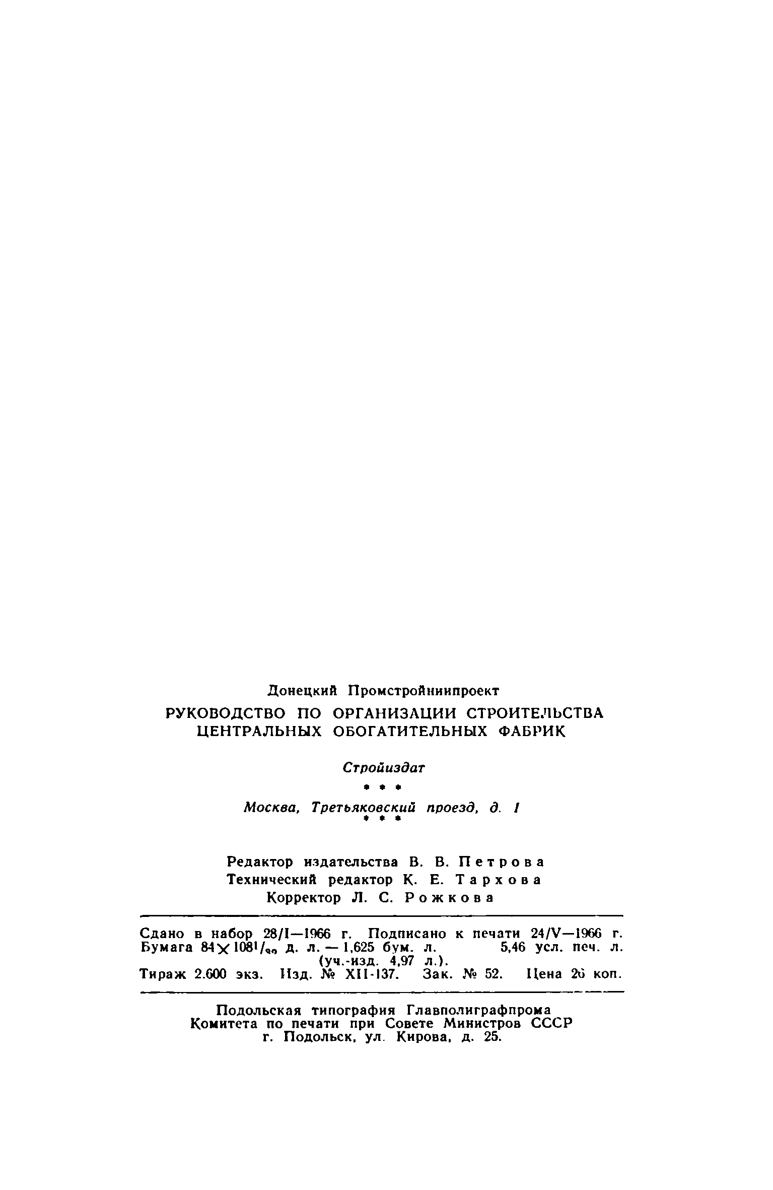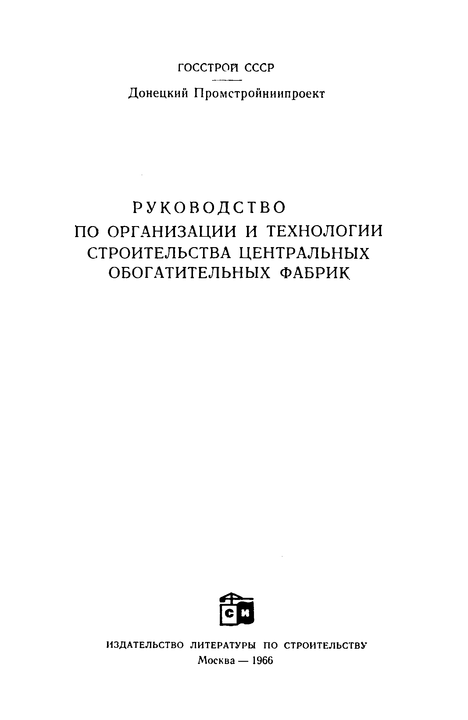 | Название рус.: | Руководство по организации и технологии строительства центральных обогатительных фабрик |