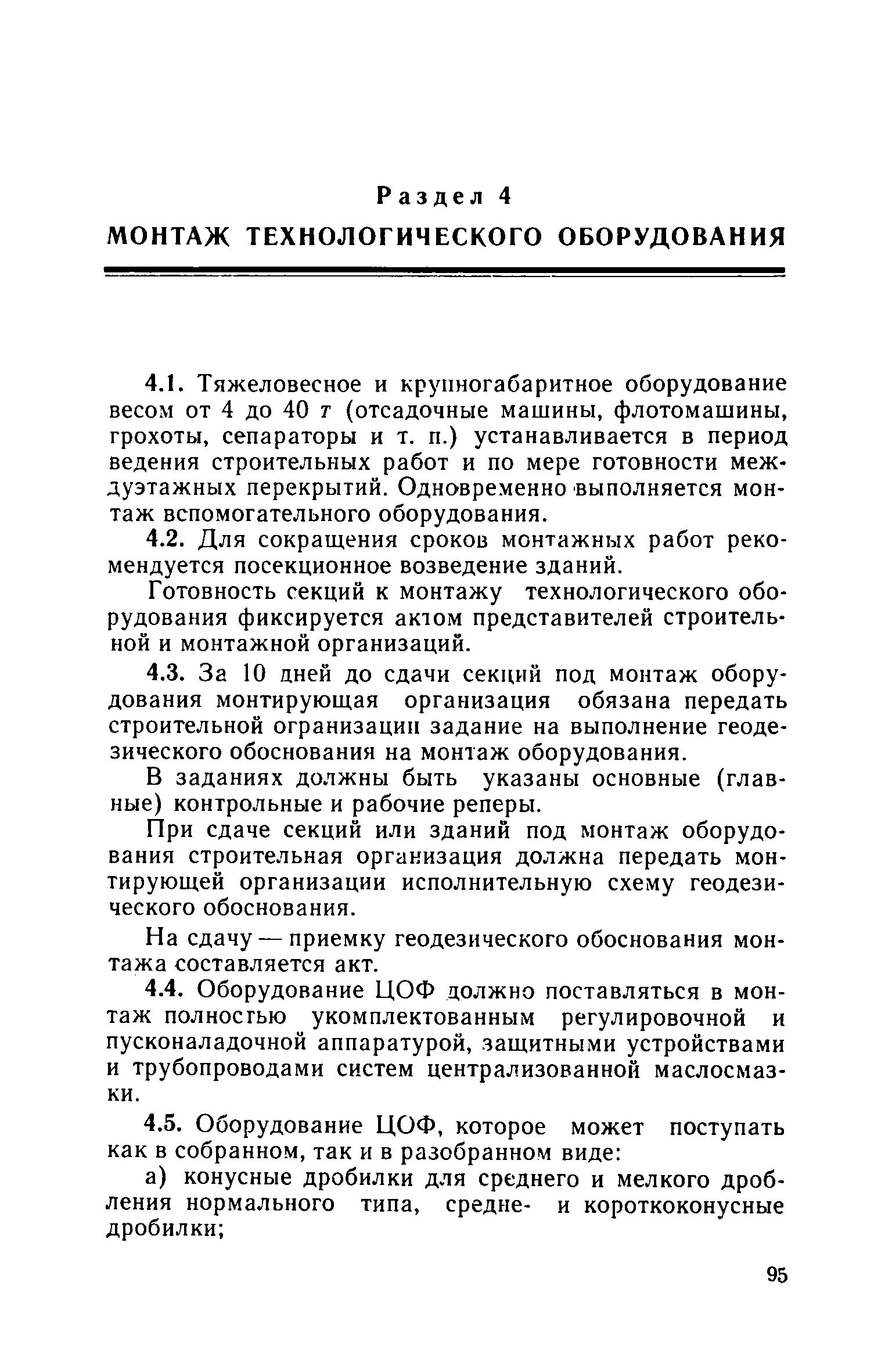 | Оглавление: | Раздел 1. Состав, объем и очередность работ Общие положения Подготовительный период Основной период Пусковой комплекс Очередность строительства Нормы продолжительности строительства ЦОФ и отдельных промышленных зданий и сооружений Строительный генеральный план промышленной площадки Раздел 2. Проектирование поточного строительства Раздел 3. Технология производства строительно-монтажных работ Водоотлив и искусственное понижение уровня грунтовых вод Земляные работы Бетонные и железобетонные работы Монтажные работы Раздел 4. Монтаж технологического оборудования |