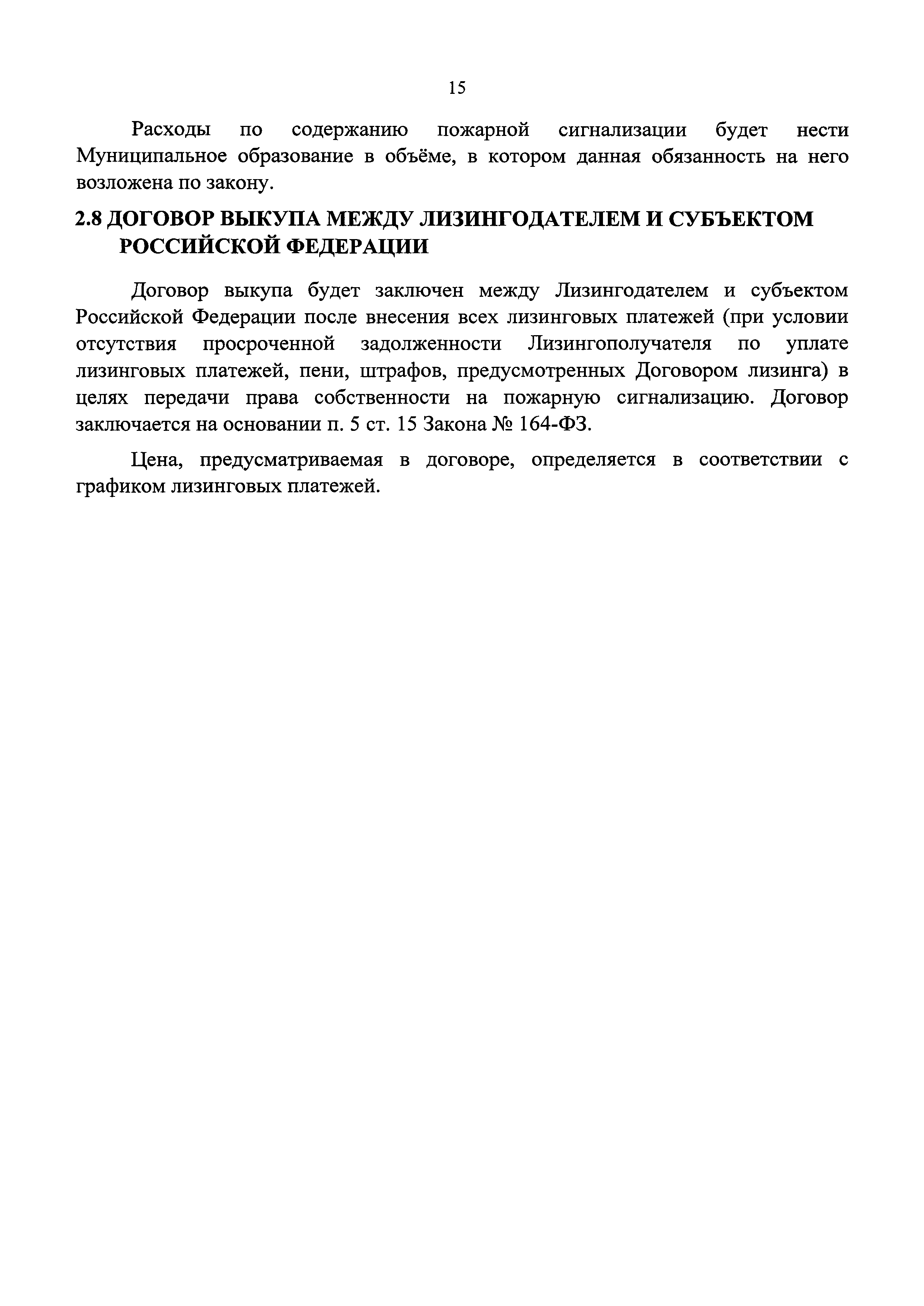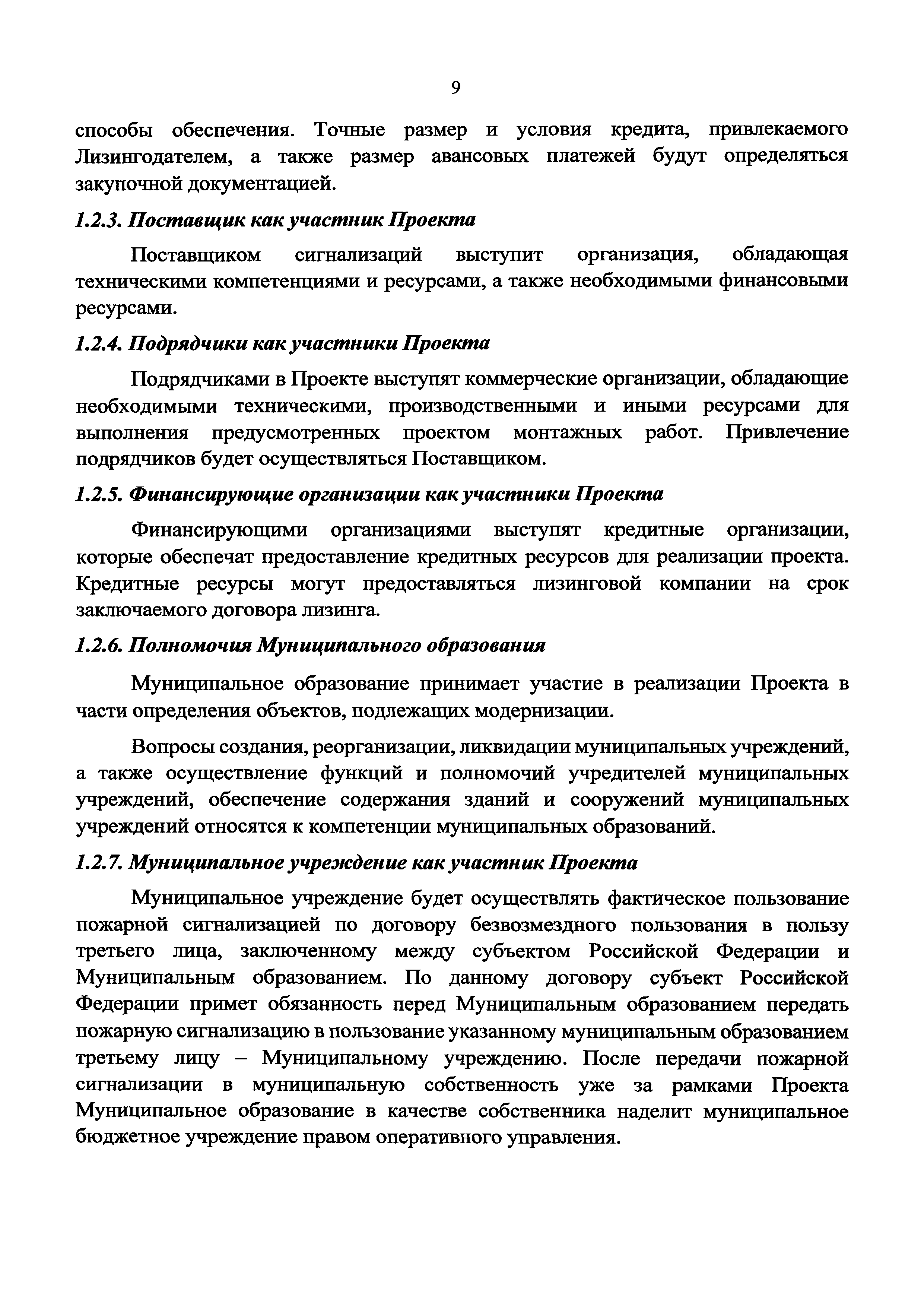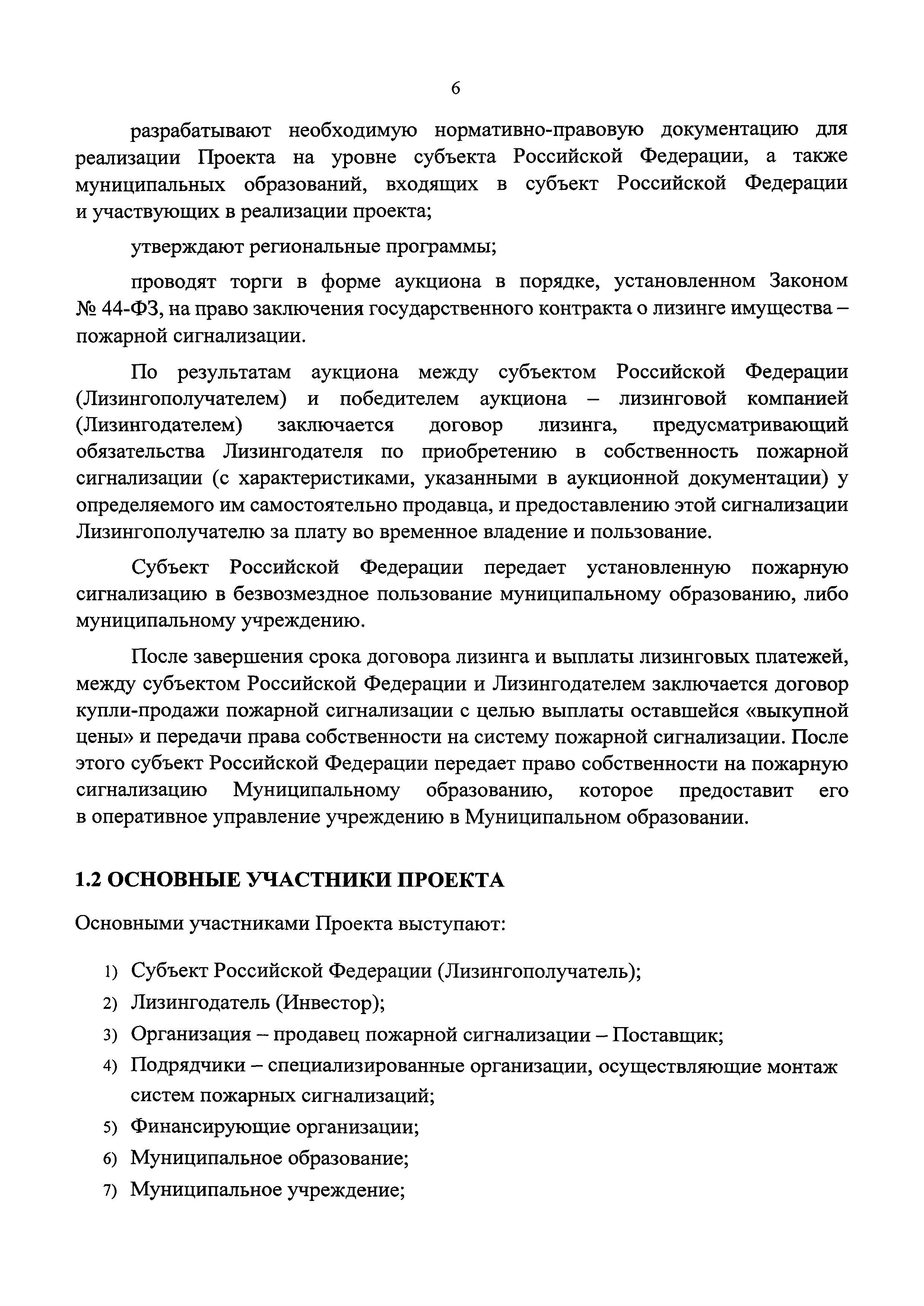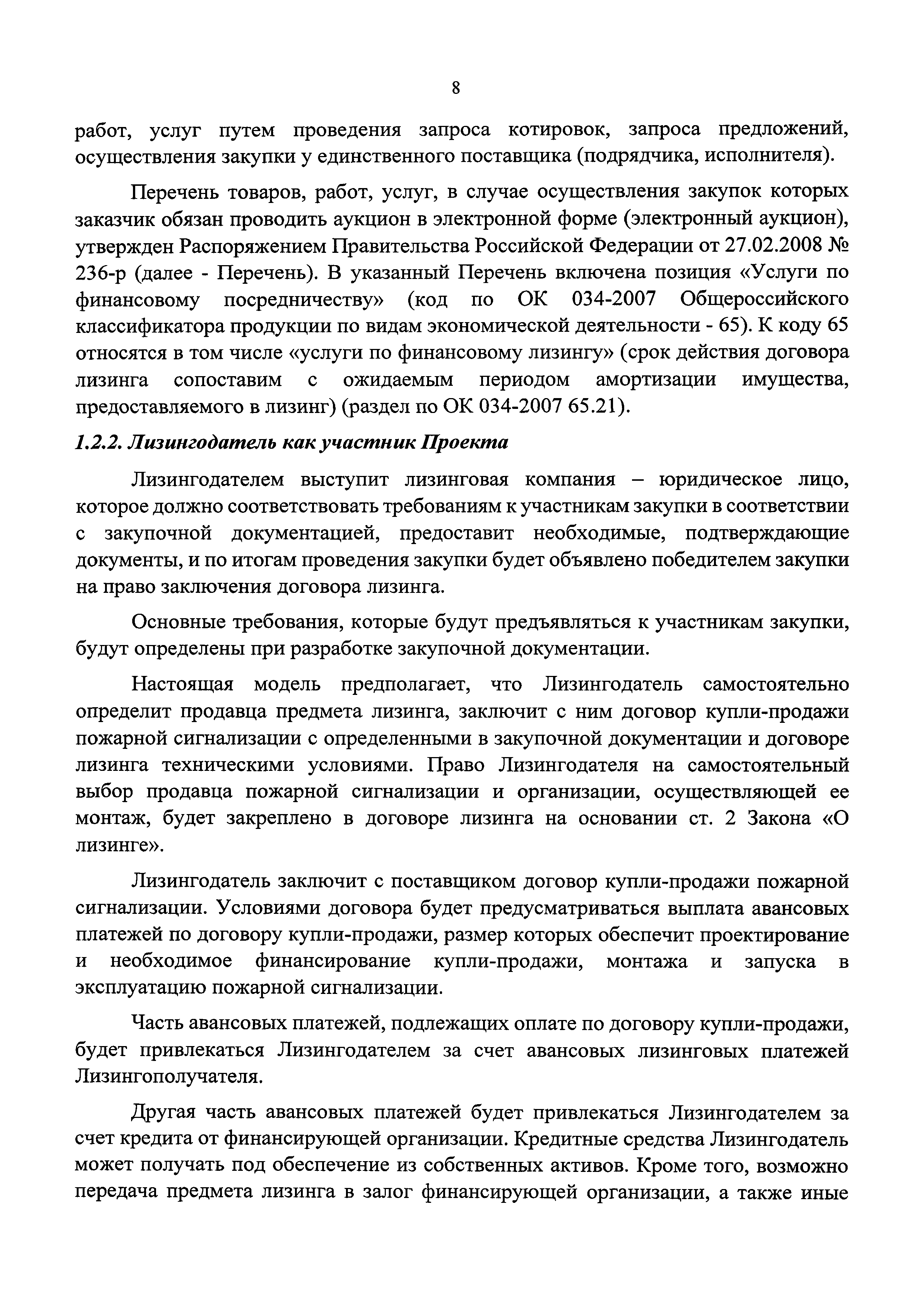 | Оглавление: | Введение 1 Описание модели, основные участники модели 1.1 Описание содержания модели, права и обязанности сторон, применимое законодательство 1.2 Основные участники проекта 2 Договорная (организационно-функциональная) схема реализации проекта 2.1 Договор лизинга 2.2 Договор банковской гарантии 2.3 Договор купли-продажи пожарной сигнализации 2.4 Кредитные договоры 2.5 Договор страхования предмета лизинга 2.6 Договоры подряда 2.7 Договор безвозмездного пользования (договор ссуды) 2.8 Договор выкупа между лизингодателем и субъектом Российской Федерации 3 Финансирование проекта, возврат частных инвестиций и механизмы бюджетного финансирования 3.1 Финансирование проекта 3.2 Возврат инвестиций лизингодателя и механизмы бюджетного финансирования уплаты лизинговых платежей субъектом Российской Федерации 4 Анализ рисков проекта |
